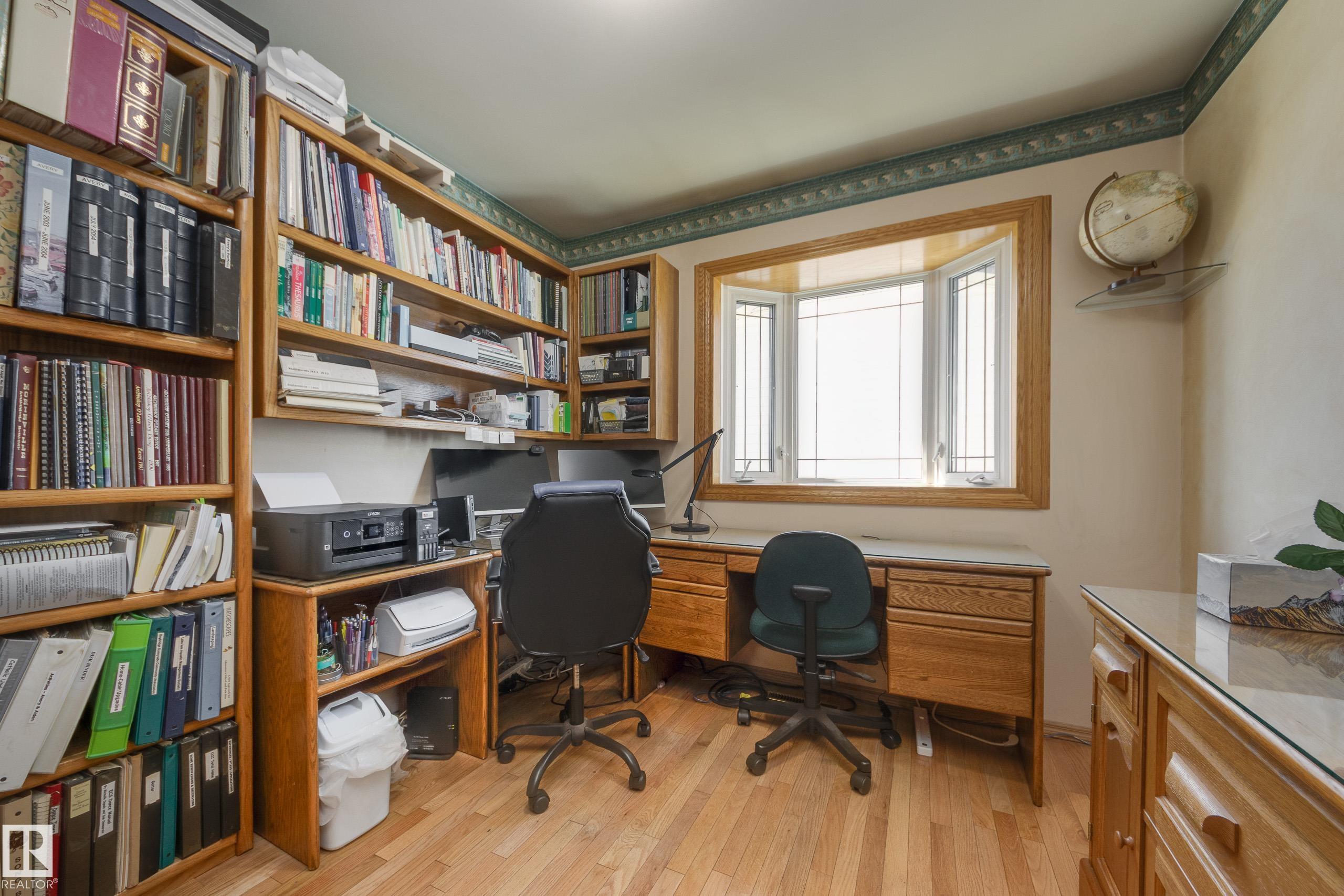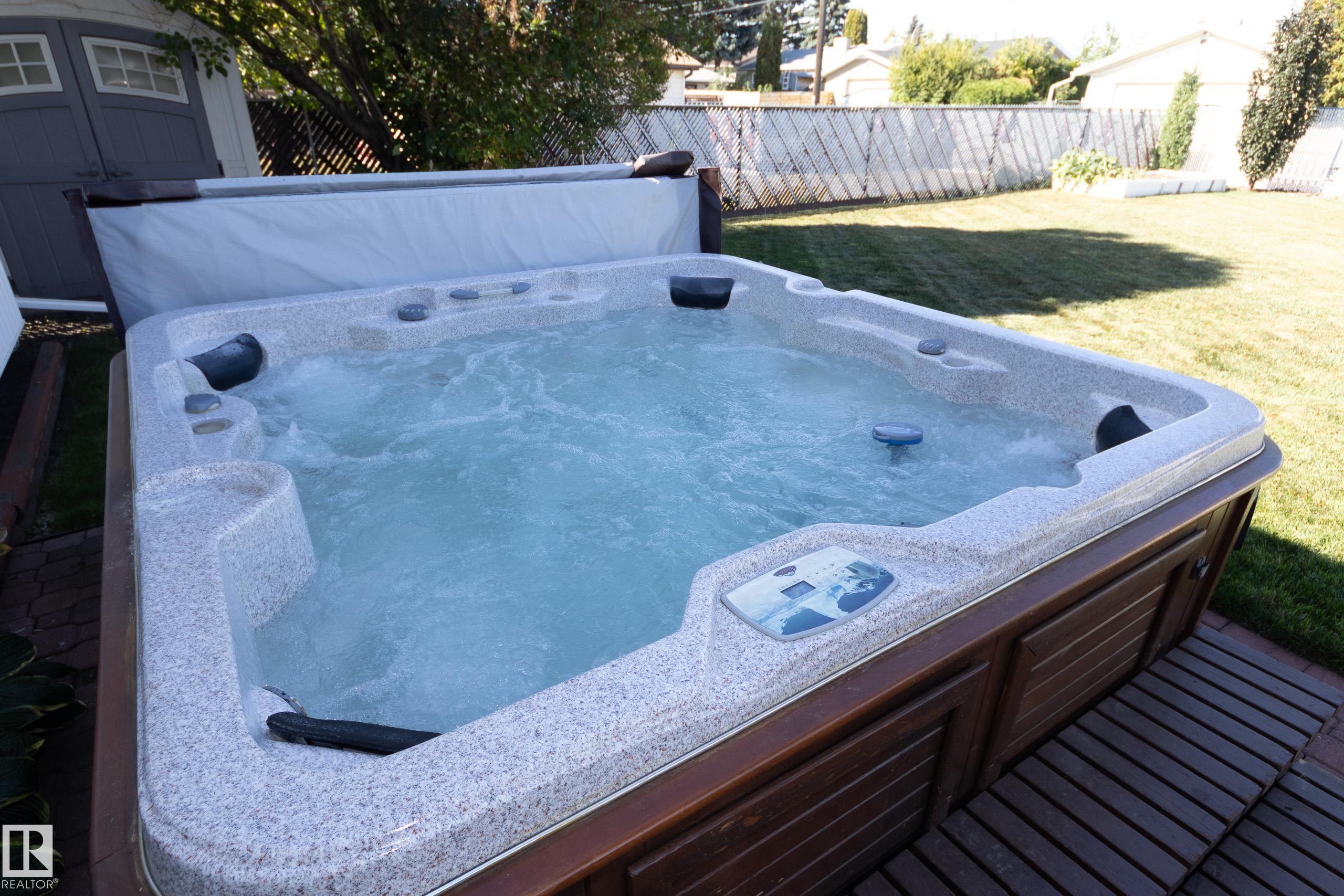 Location, Location, Location! Facing Balwin Park with a new outdoor play centre, arena, ball courts, &  community hall, this beautiful bungalow offers the ideal family lifestyle. A wonderfully landscaped front yard with paver walkway & well planned perennial garden gives year round colour. Newer roof, vinyl siding & PVC windows make for  low maintenance costs. Step inside to find gleaming hardwood floors & bright windows with park views. The spacious living room flows seamlessly into a large dining area, perfect for hosting family gatherings. The kitchen overlooks a fully fenced, private backyard featuring raised flower beds & flowering trees. The main level offers three bedrooms & a full bath.  Enjoy family nights in the huge rec room with dry bar & a wine room. A 2nd bathroom & additional bedroom complete the basement. The backyard is designed for entertaining, unwind under the stars in the outdoor hot tub, gather around the firepit, or host summer BBQs on the large patio.  Quick possession available!