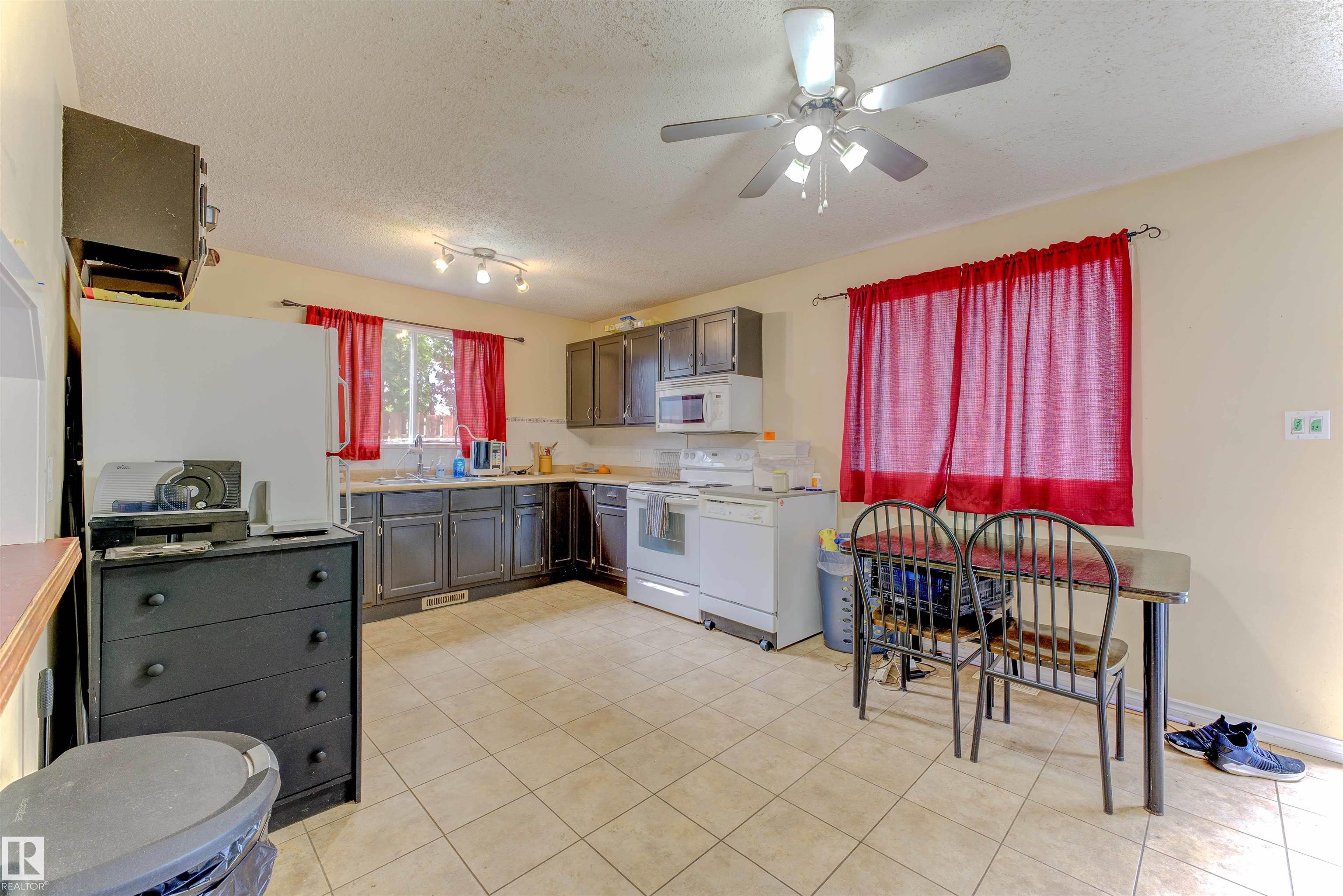 This home needs some TLC, but has a double car detached garage, and a massive fenced back yard, [with the lot being a huge 1302sq meters (14,014 sq ft.!)]. The garage is also oversized, at about 700 sq ft. [The typical double car garage is maybe 20' x 22', or a little over 400sq ft.]. There is also a large deck off the back of the house, with plenty of room for entertaining friends or family while having a BBQ. The main bath upstairs is also oversized, at 13' long by 5' wide! There are 3 bedrooms upstairs, and another bedroom and 3/4 bath downstairs. The home has a living room off the front entry, with an electric fireplace, and a wood stove downstairs in the family room. There is plenty of space for a growing family and with the fenced back yard, lots of room for pets or children to play. The home is also in a partial crescent, with very low traffic flow.