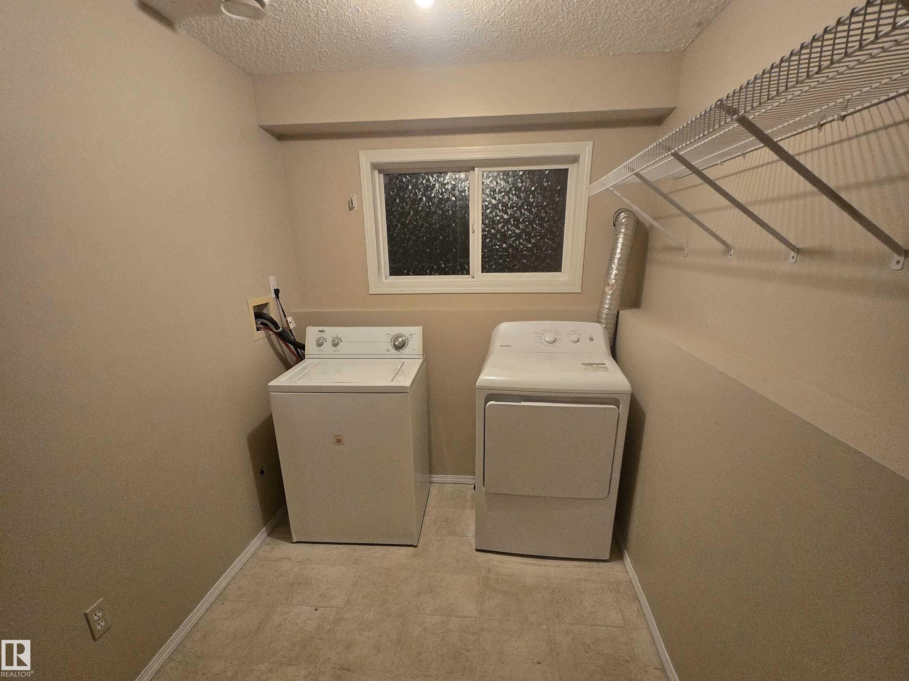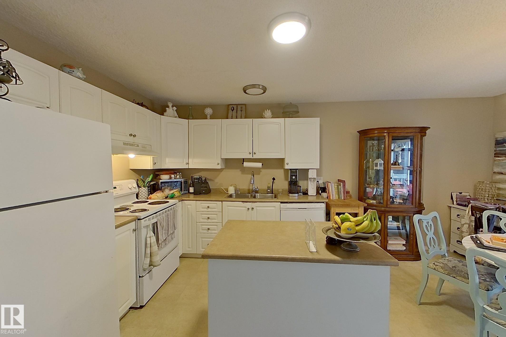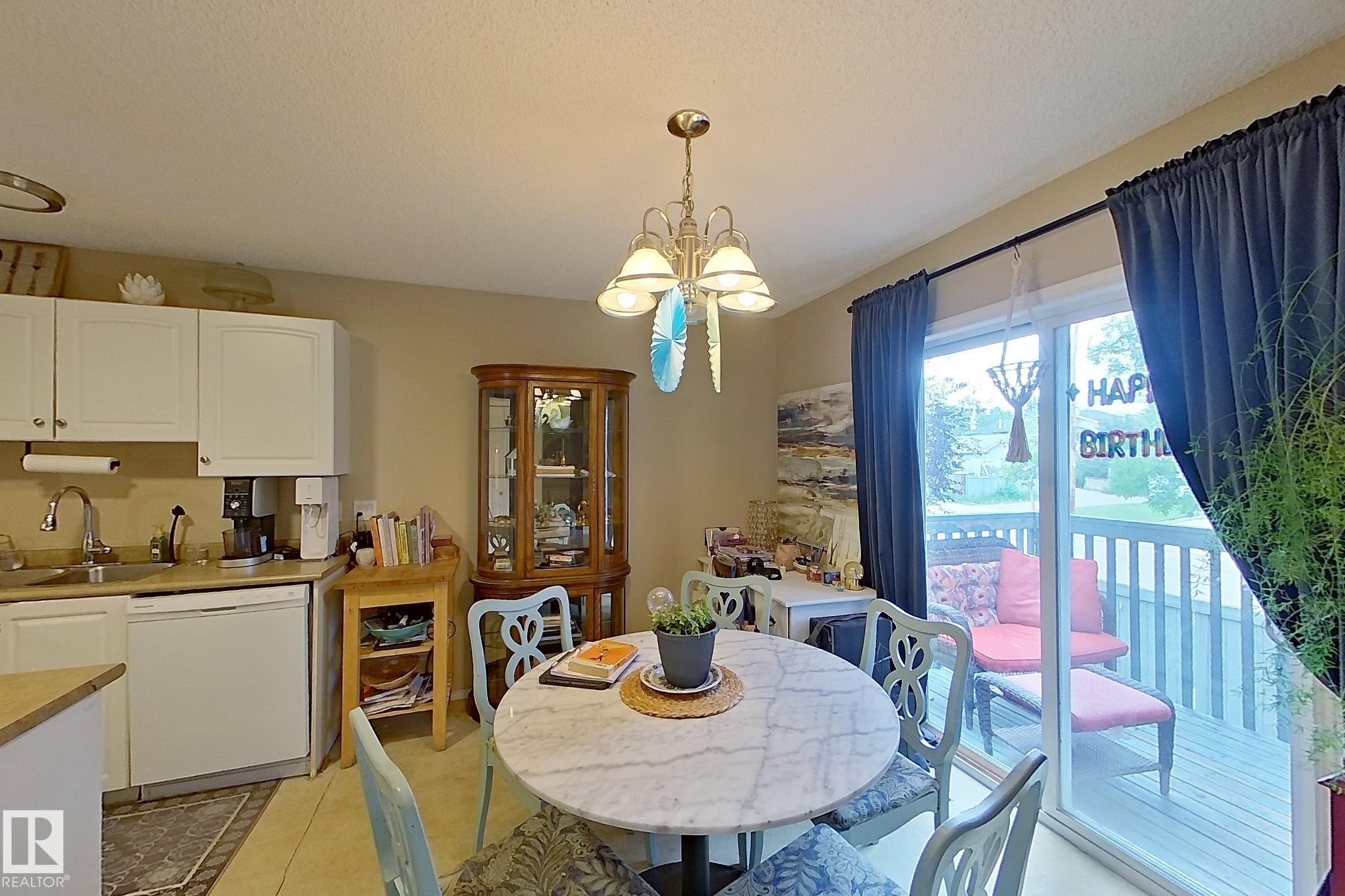 This well-maintained 3-bedroom with attached garage, two-storey townhouse offers low condo fees, spacious living, and is located within walking distance to Klarvatten Lake. Step into a bright and inviting living room filled with natural light. The large kitchen features a stylish movable island and opens to a private deck that backs onto green space ? perfect for relaxing or entertaining. A convenient 2-piece bathroom completes the main floor. Upstairs, you?ll find three generously sized bedrooms, including a primary bedroom with a large closet, and a full 4-piece bathroom. The lower level offers a finished and large laundry room and an oversized single garage with bonus storage room. The unit has recently been painted, offering a clean and refreshed appearance. Located close to parks, schools, public transit, shopping, and offering a quick commute to the military base, downtown, and the Henday.