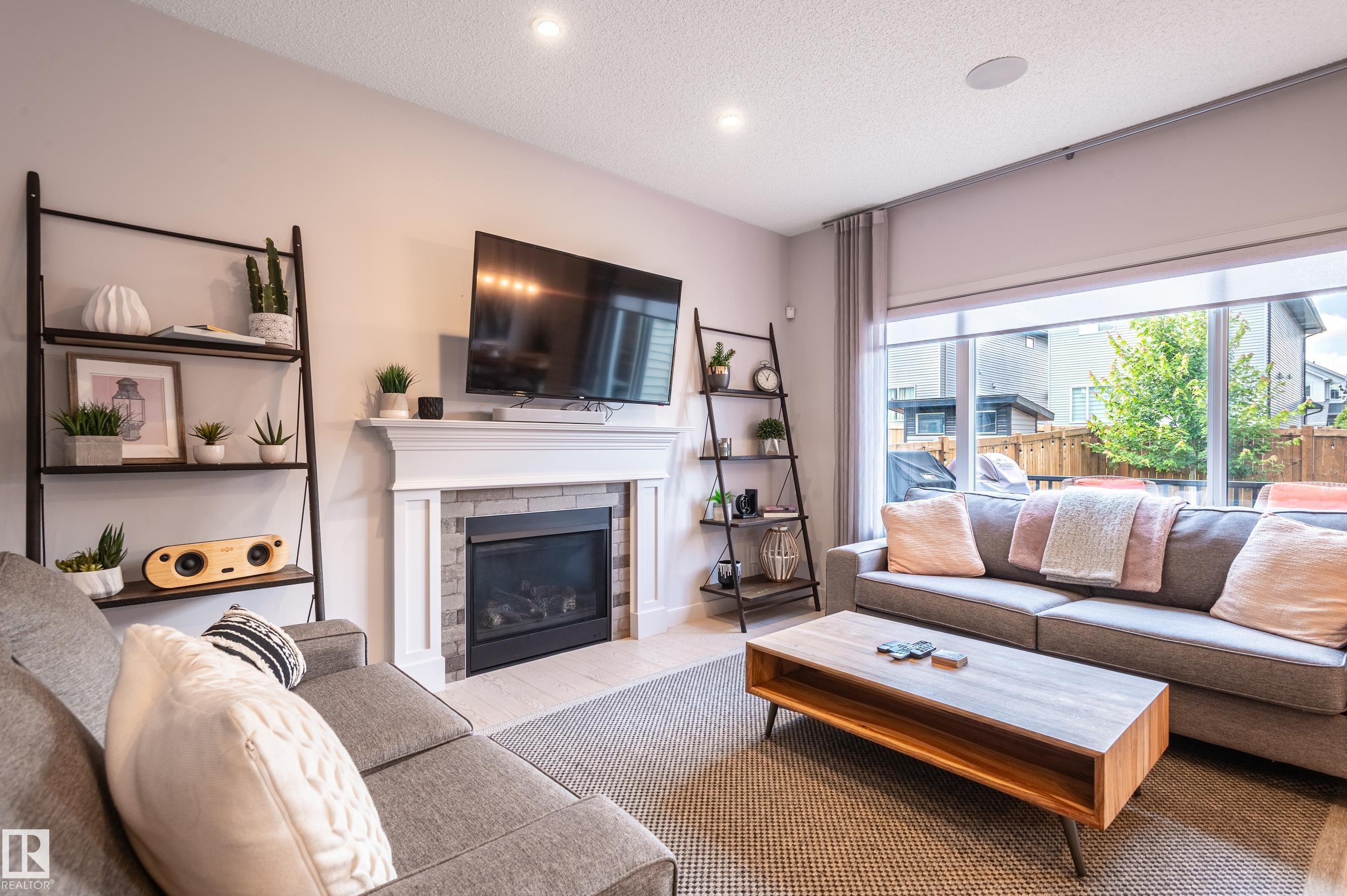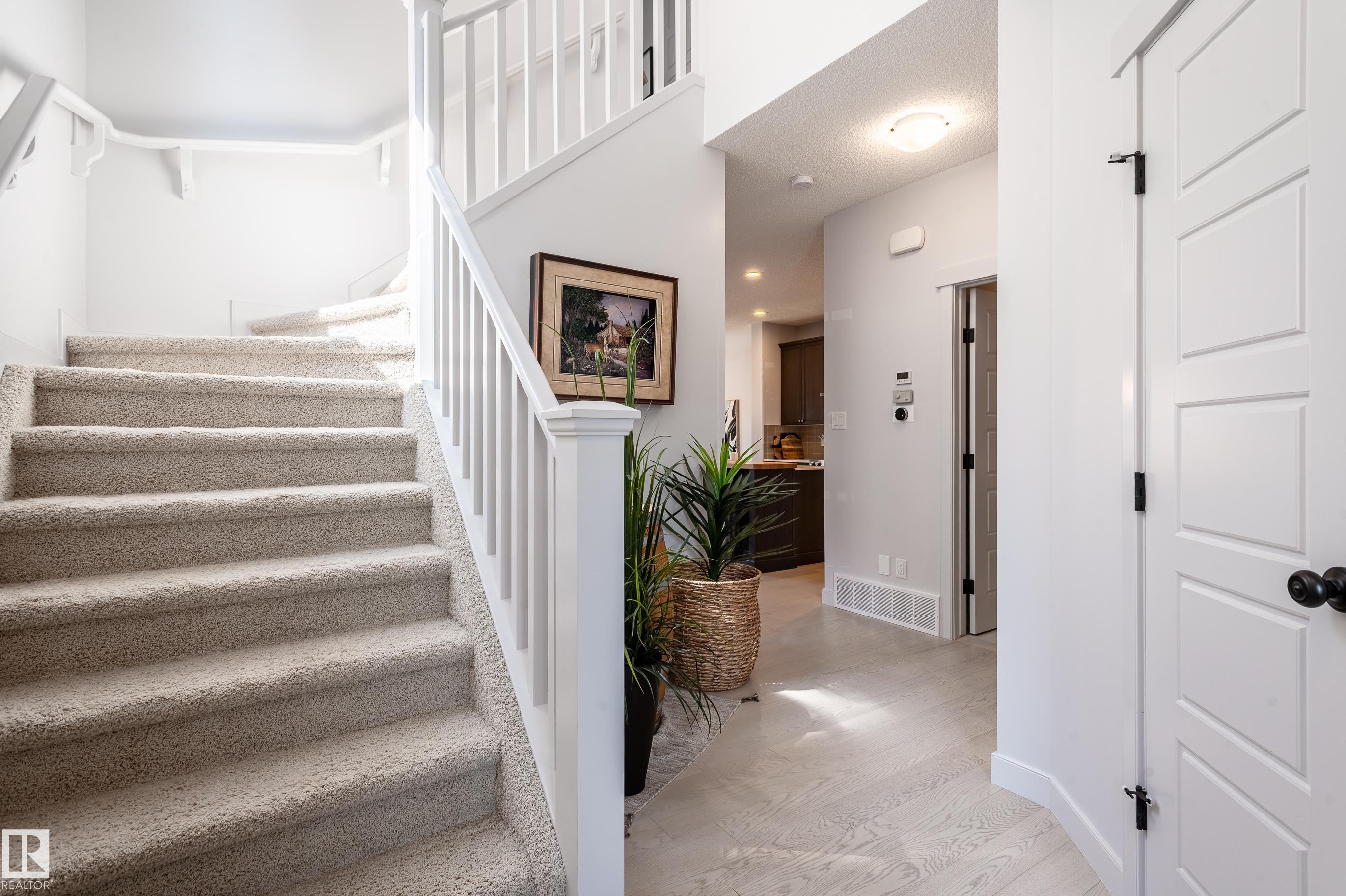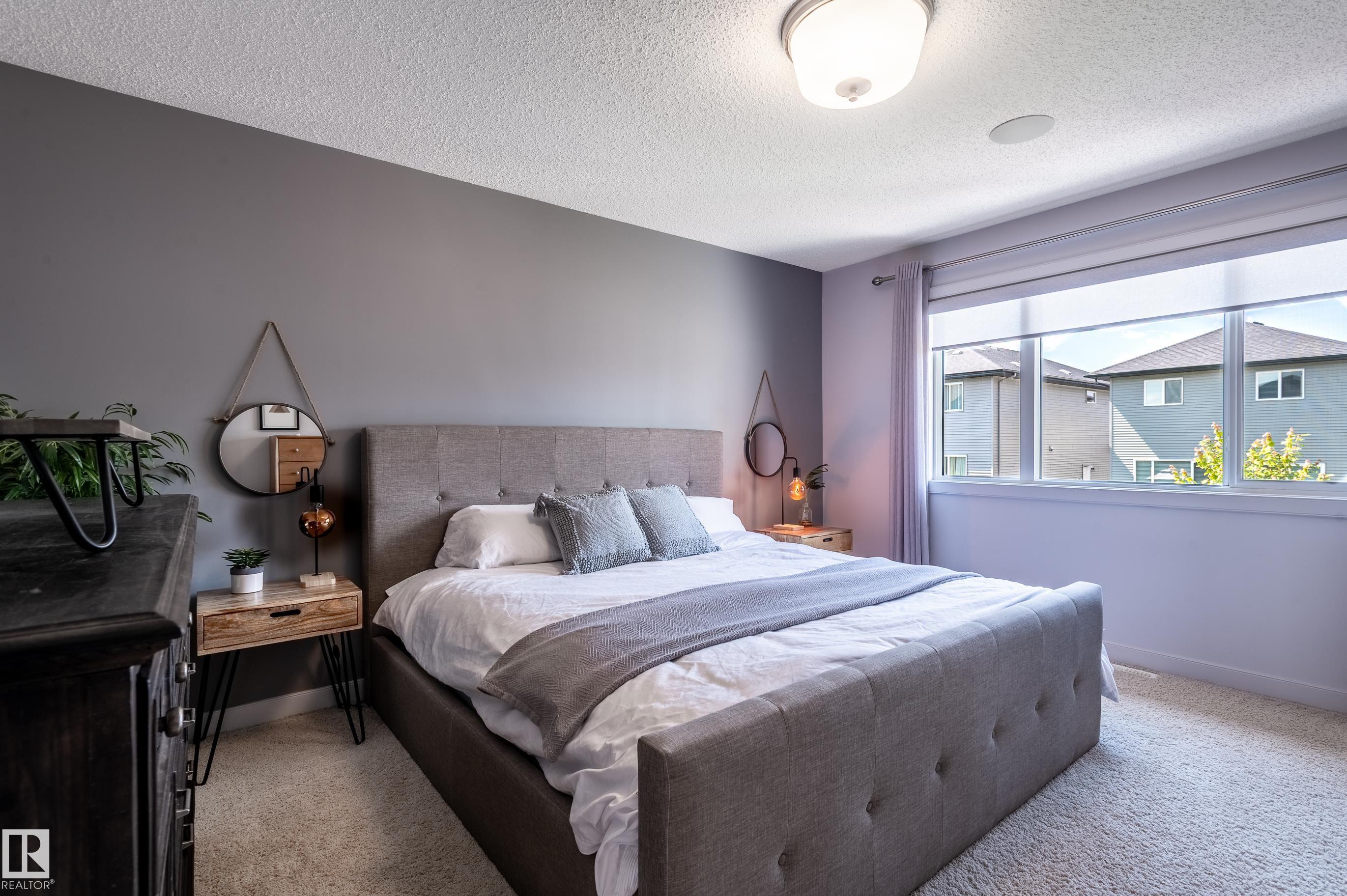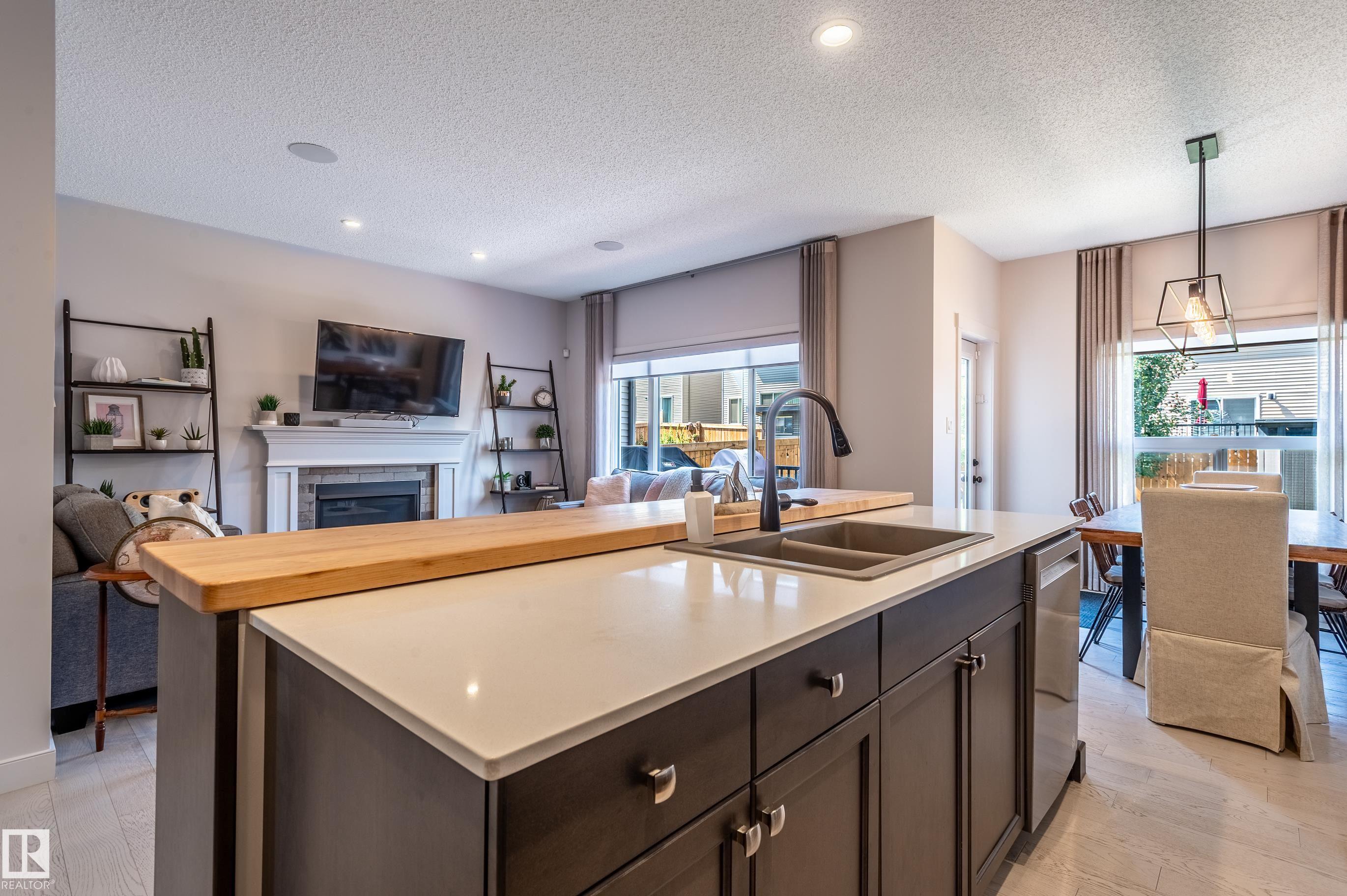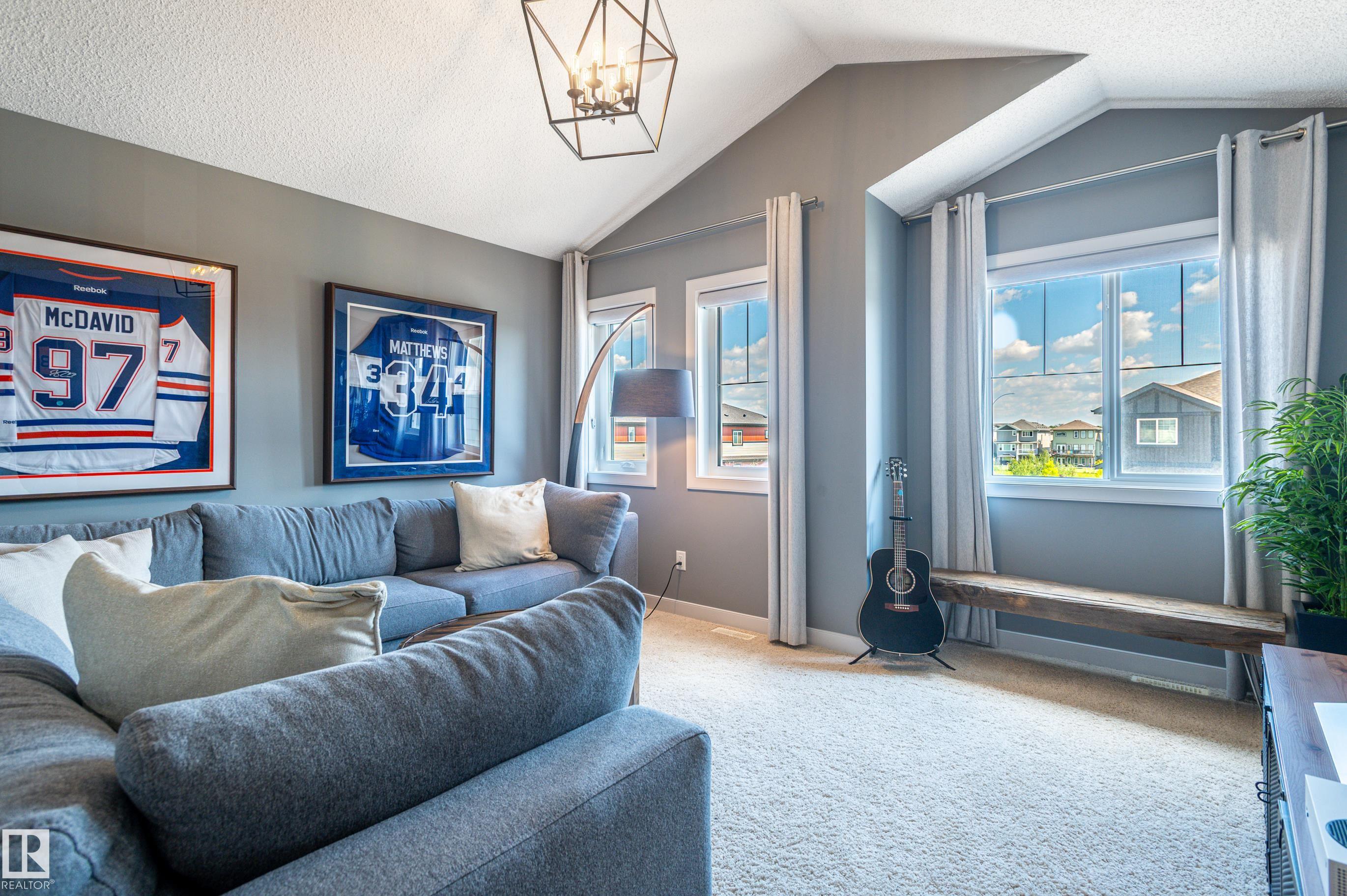 Experience luxury living in this masterfully crafted former Pacesetter showhome in Secord, where every detail exudes sophistication. Luxury vinyl plank flooring seamlessly flows throughout an open-concept main floor, anchored by a cozy gas fireplace & built-in speaker system for effortless ambiance. The gourmet kitchen features quartz countertops, stainless steel appliances, a walk-through pantry, & a stunning wooden bar top eat-up island?perfect for morning coffee or wine & charcuterie w/ guests. Extend your living space outdoors to the custom composite deck surrounded by an ideal backyard. Upstairs, a grand bonus room w/ vaulted ceilings awaits, offering an ultimate retreat. Enjoy year-round comfort w/ central AC. Downstairs, the unfinished basement includes an additional framed/drywalled bedroom, presenting endless possibilities. This incomparable home is finished to perfection & designed for those seeking both comfort & elegance. This is premium living in one of Edmonton's most desirable communities.