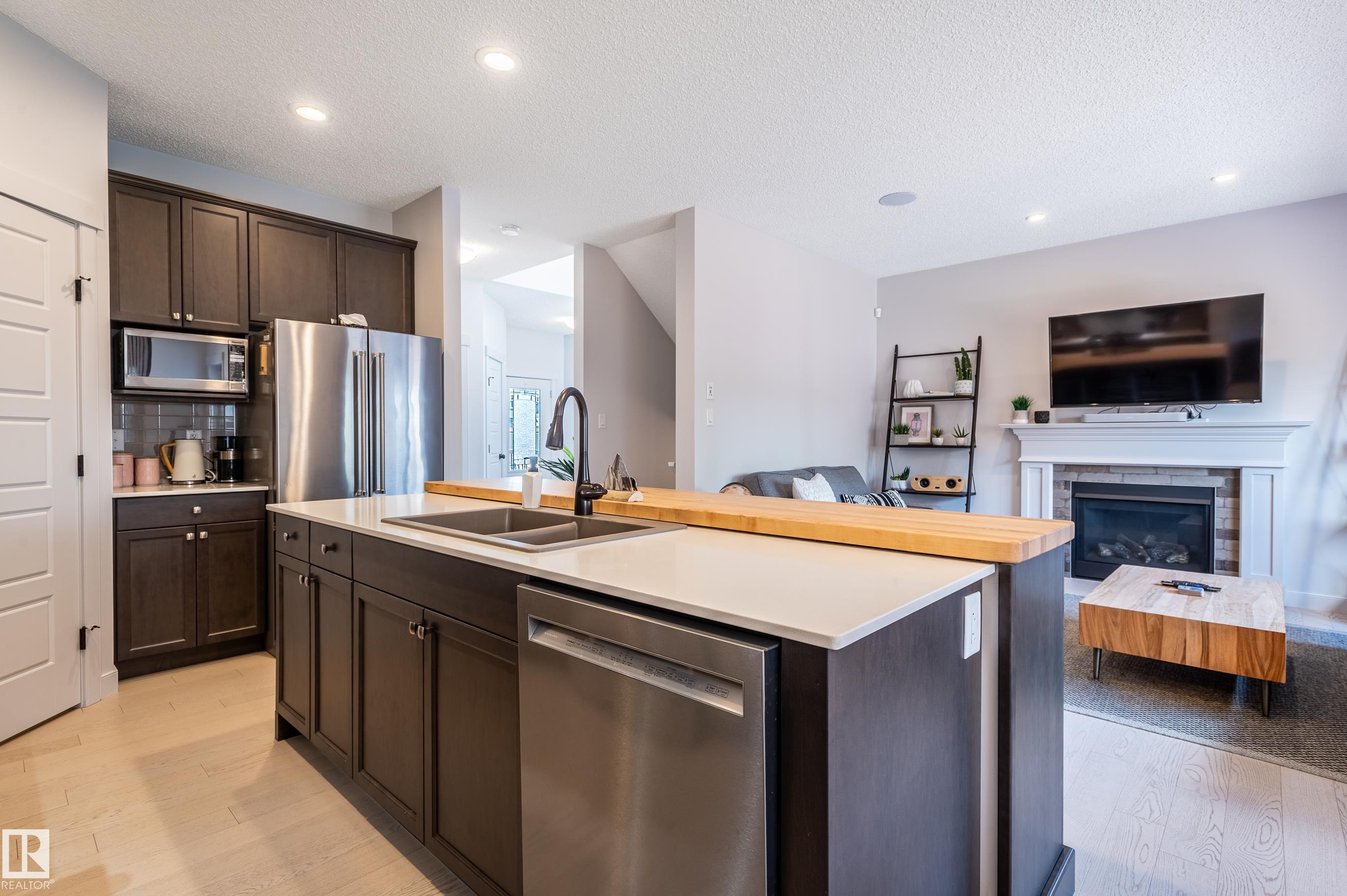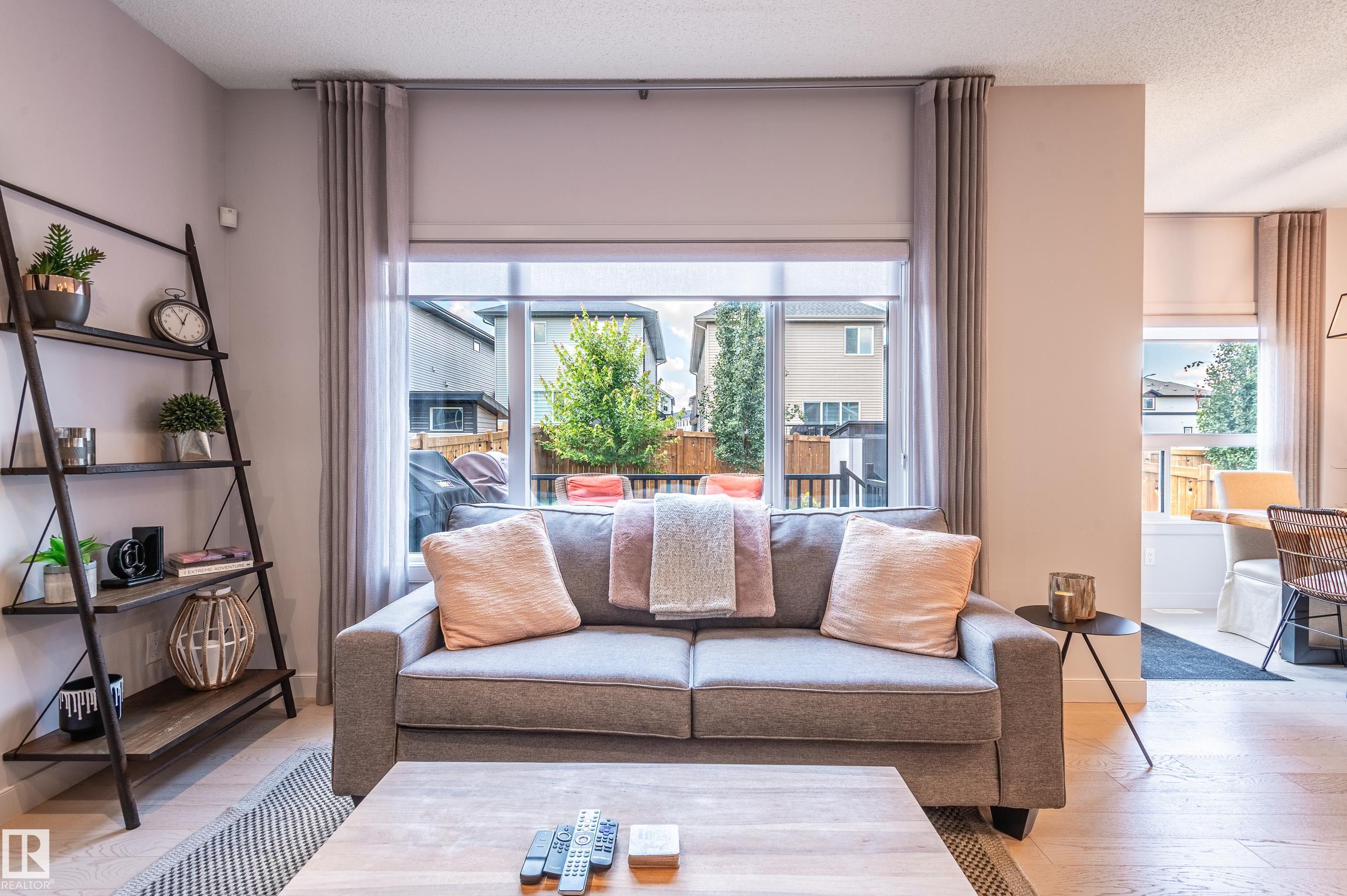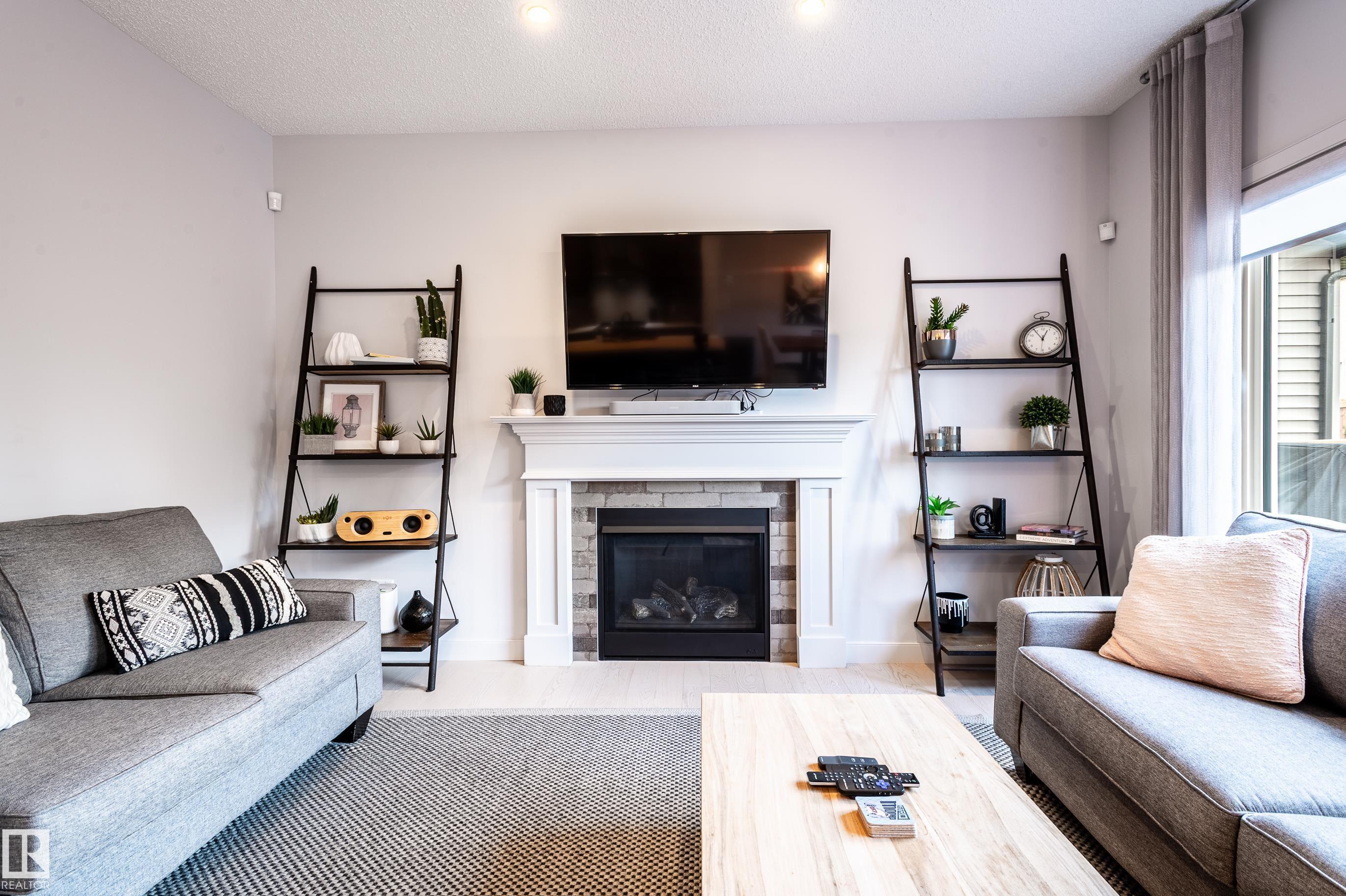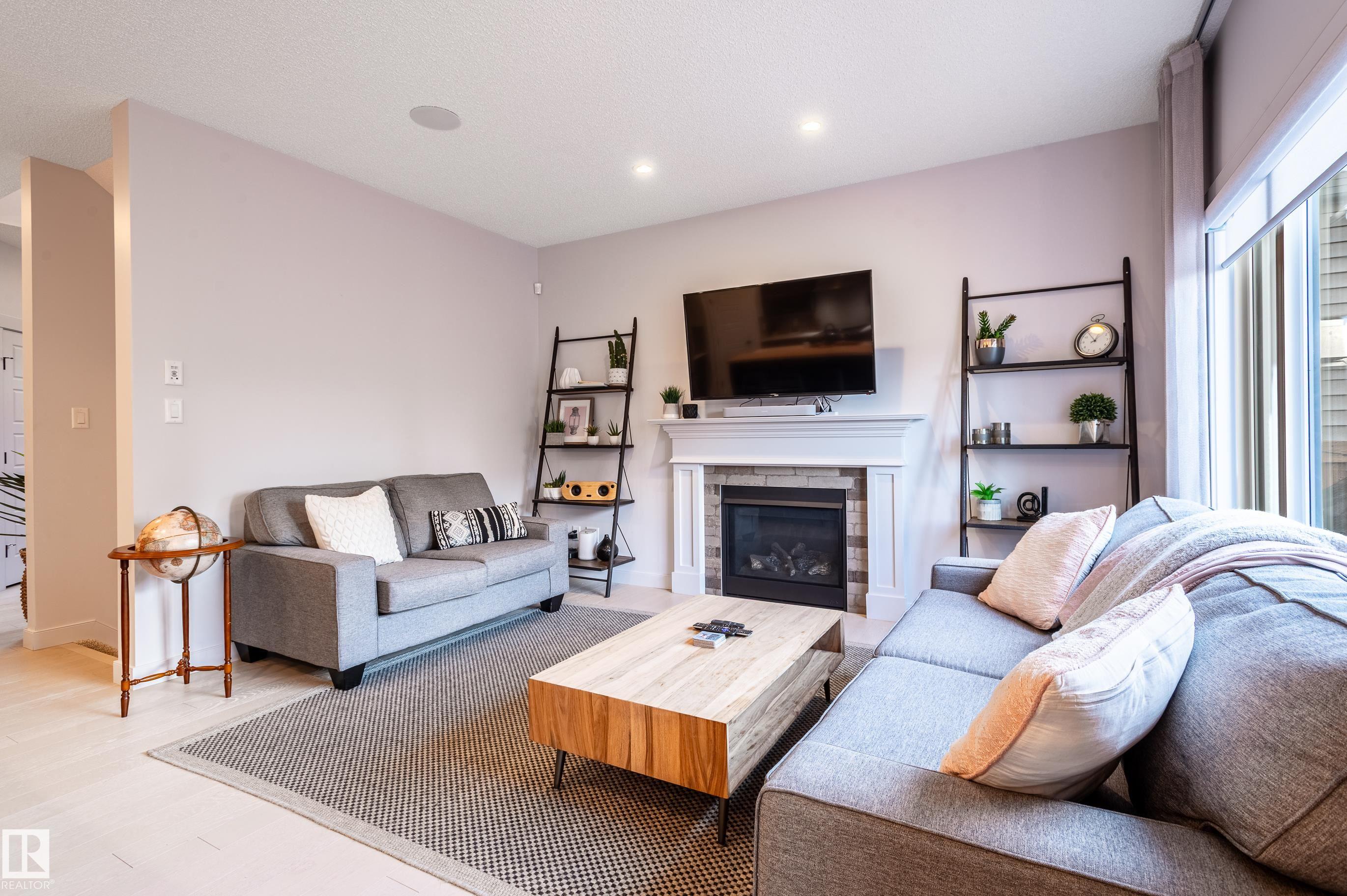 Experience luxury living in this masterfully crafted former Pacesetter showhome in Secord, where every detail exudes sophistication. Luxury vinyl plank flooring seamlessly flows throughout an open-concept main floor, anchored by a cozy gas fireplace & built-in speaker system for effortless ambiance. The gourmet kitchen features quartz countertops, stainless steel appliances, a walk-through pantry, & a stunning wooden bar top eat-up island?perfect for morning coffee or wine & charcuterie w/ guests. Extend your living space outdoors to the custom composite deck surrounded by an ideal backyard. Upstairs, a grand bonus room w/ vaulted ceilings awaits, offering an ultimate retreat. Enjoy year-round comfort w/ central AC. Downstairs, the unfinished basement includes an additional framed/drywalled bedroom, presenting endless possibilities. This incomparable home is finished to perfection & designed for those seeking both comfort & elegance. This is premium living in one of Edmonton's most desirable communities.
