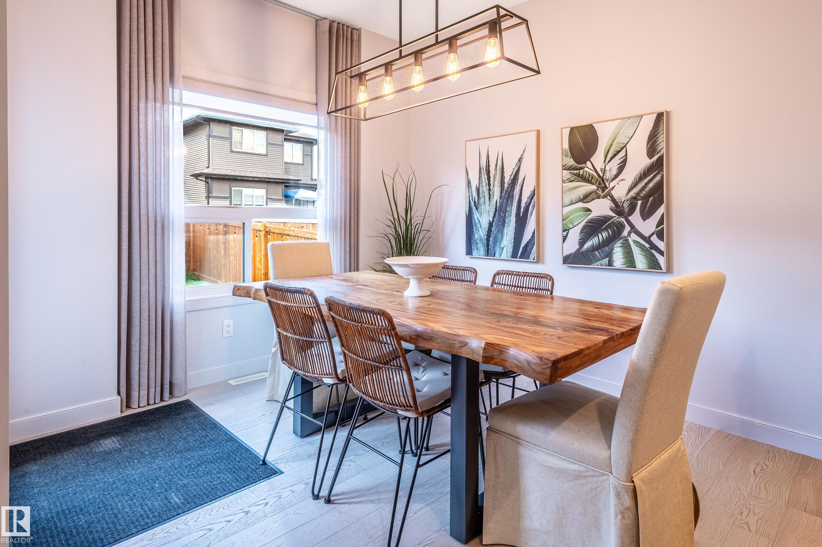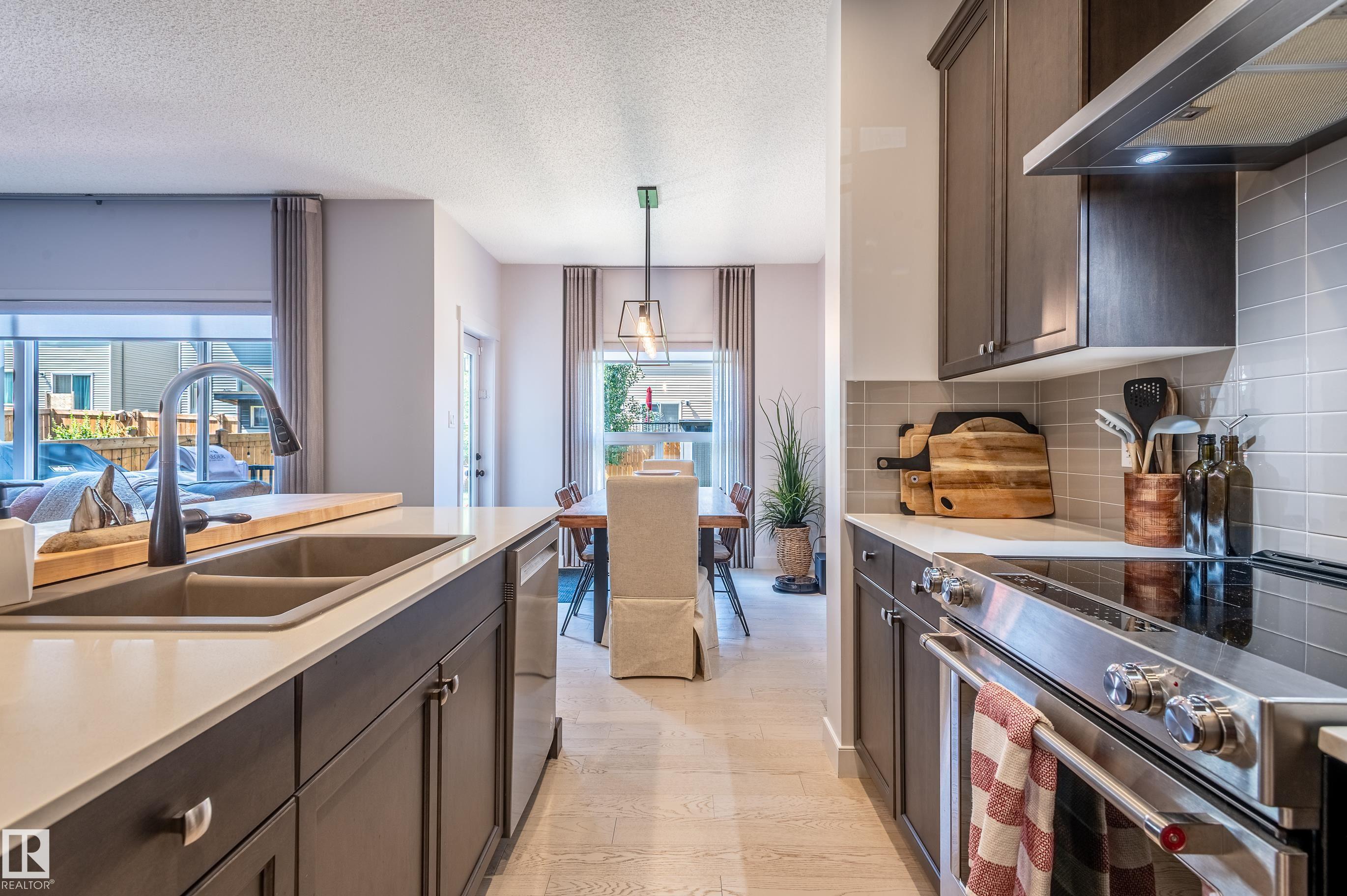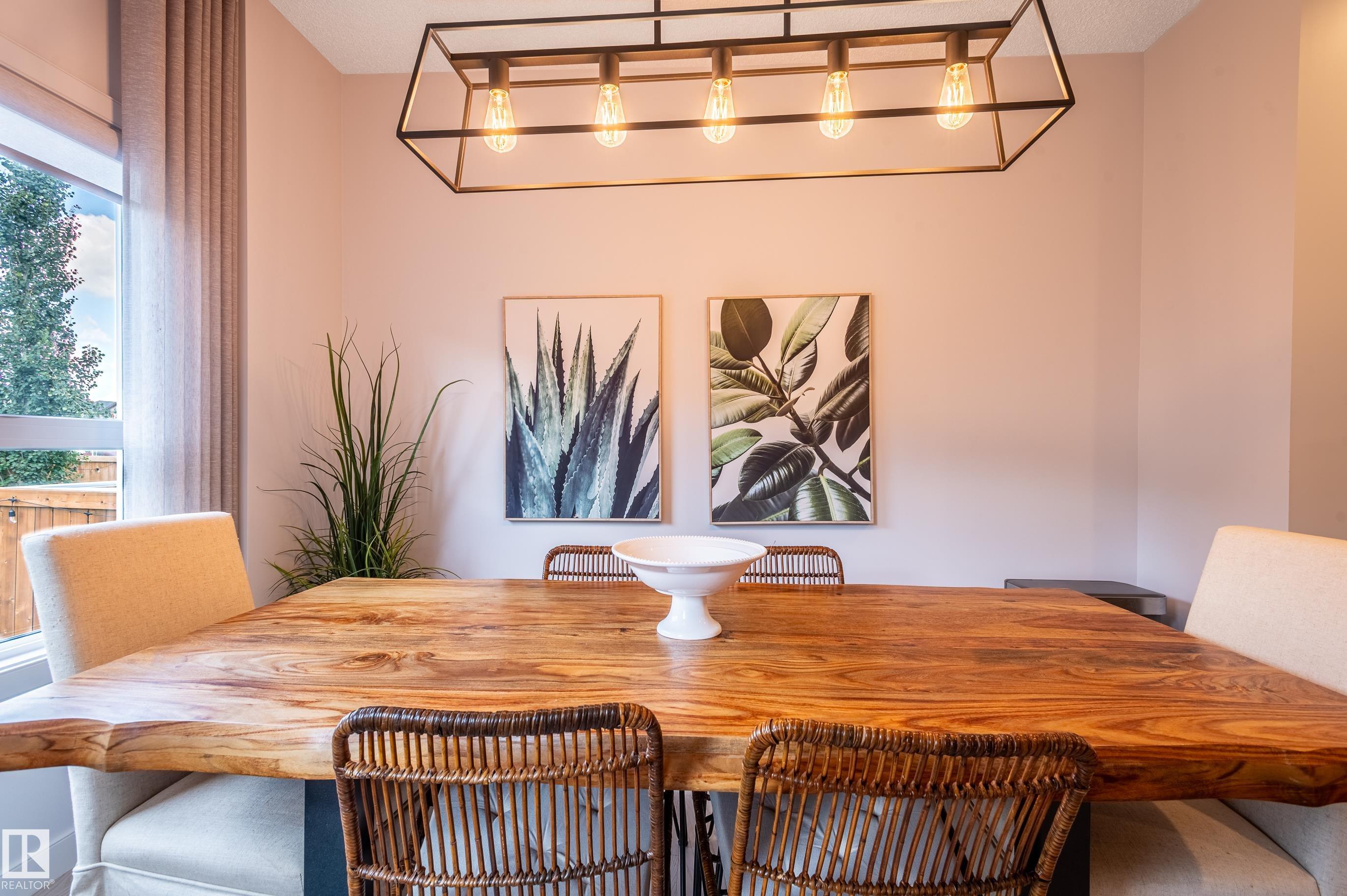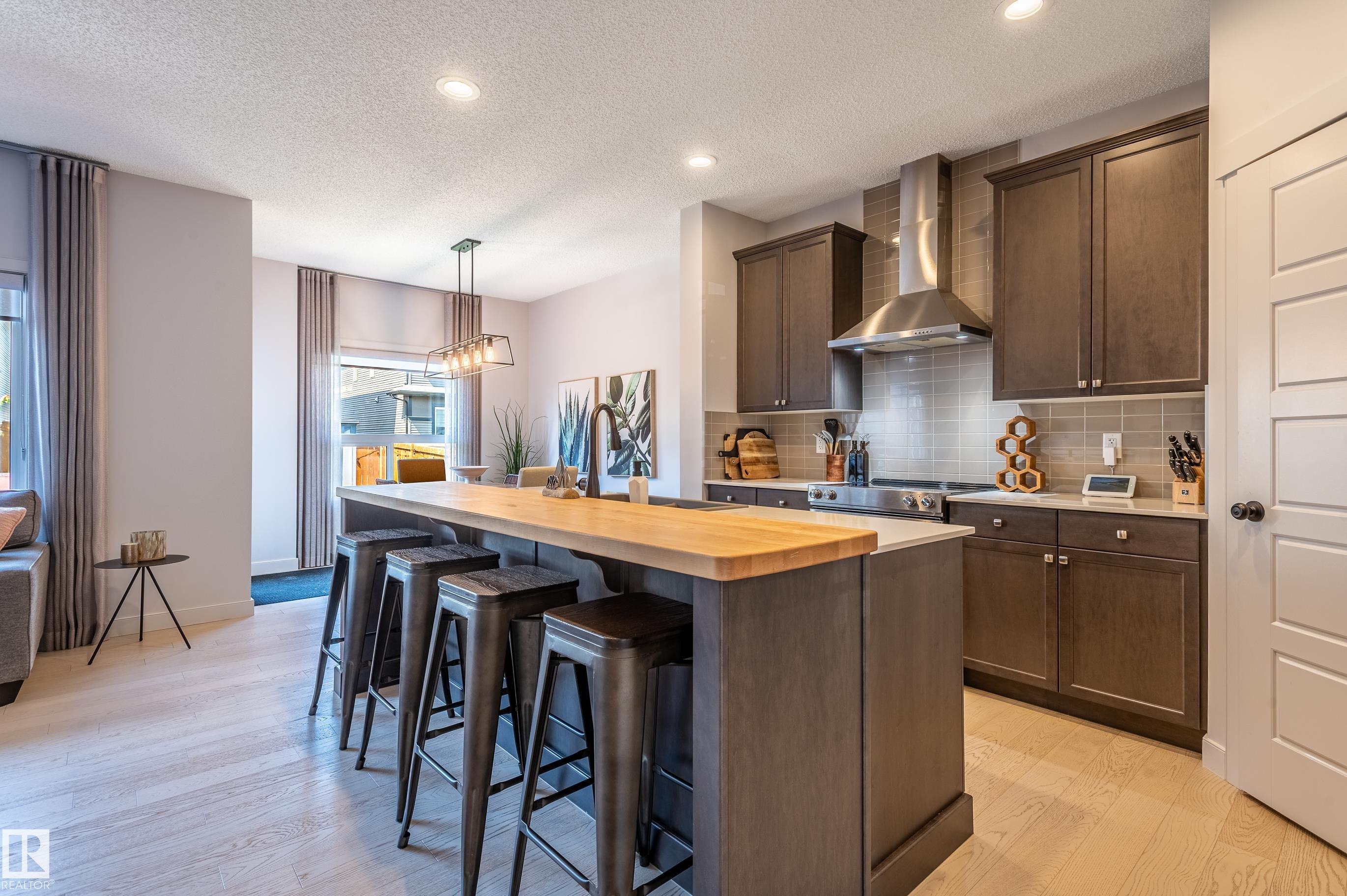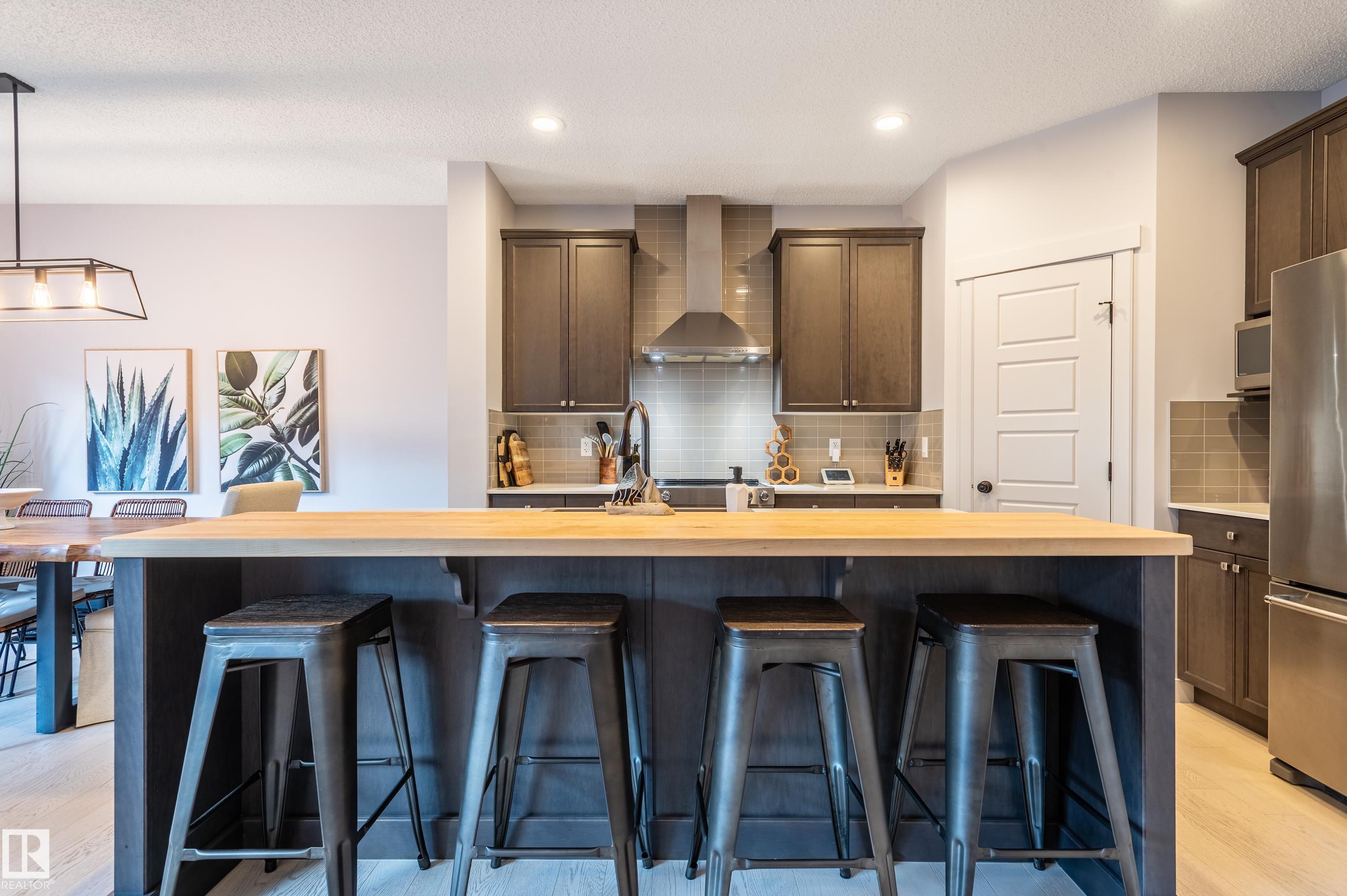 Experience luxury living in this masterfully crafted former Pacesetter showhome in Secord, where every detail exudes sophistication. Luxury vinyl plank flooring seamlessly flows throughout an open-concept main floor, anchored by a cozy gas fireplace & built-in speaker system for effortless ambiance. The gourmet kitchen features quartz countertops, stainless steel appliances, a walk-through pantry, & a stunning wooden bar top eat-up island?perfect for morning coffee or wine & charcuterie w/ guests. Extend your living space outdoors to the custom composite deck surrounded by an ideal backyard. Upstairs, a grand bonus room w/ vaulted ceilings awaits, offering an ultimate retreat. Enjoy year-round comfort w/ central AC. Downstairs, the unfinished basement includes an additional framed/drywalled bedroom, presenting endless possibilities. This incomparable home is finished to perfection & designed for those seeking both comfort & elegance. This is premium living in one of Edmonton's most desirable communities.