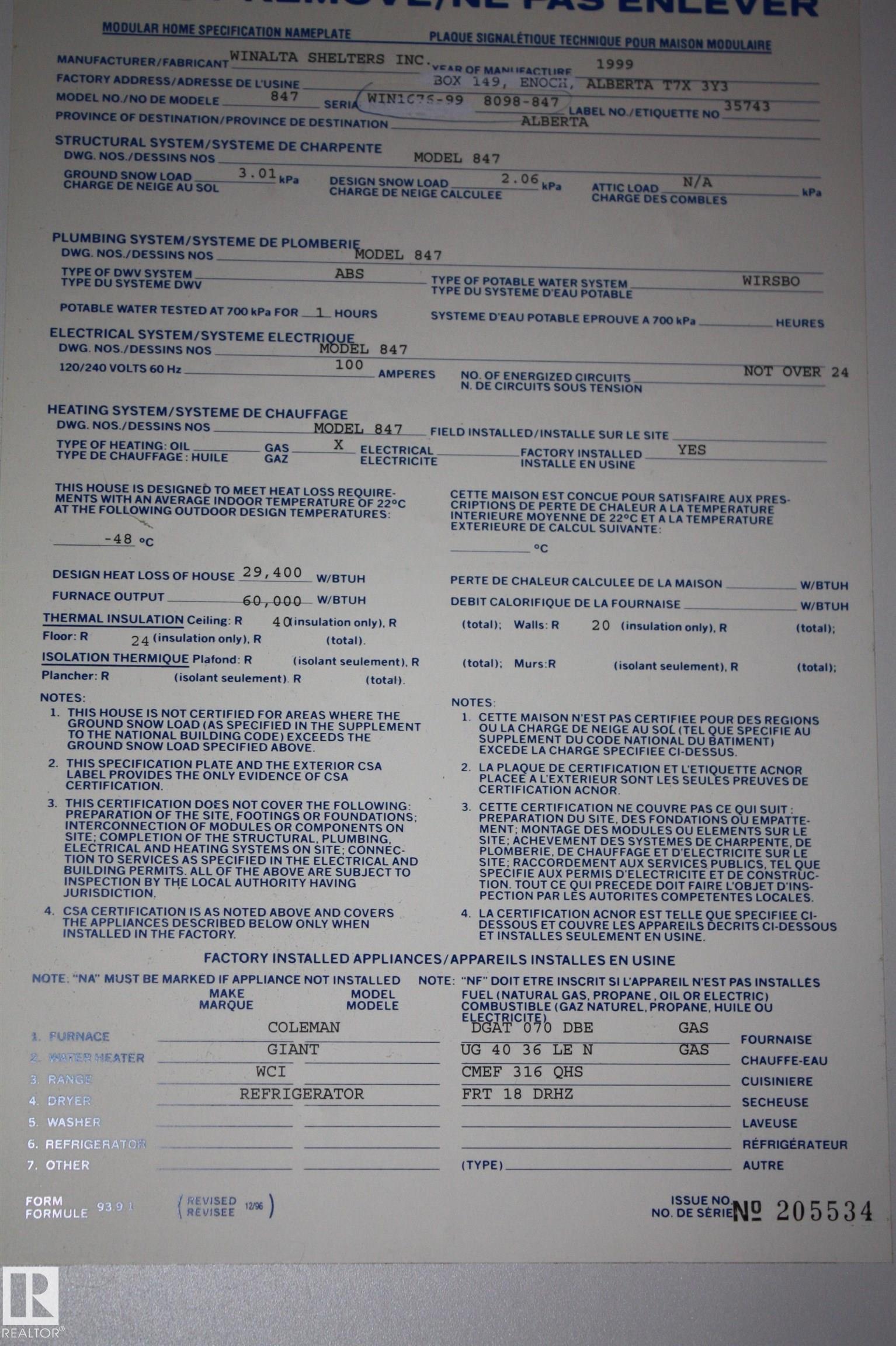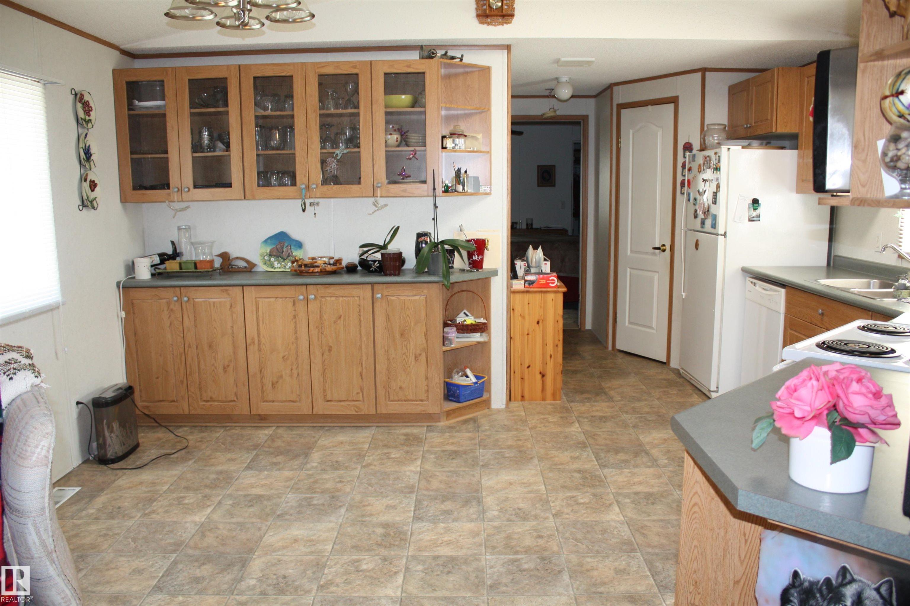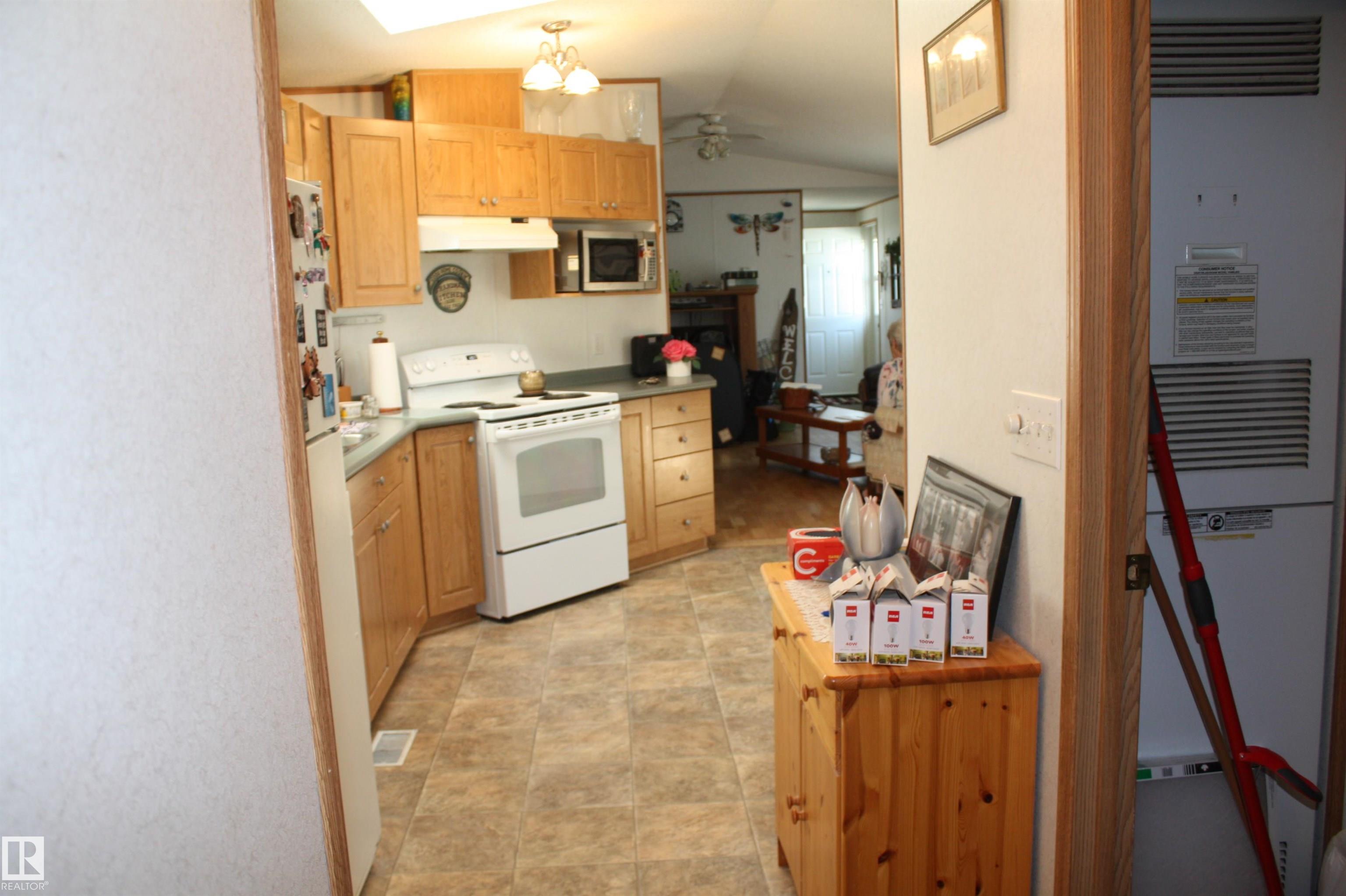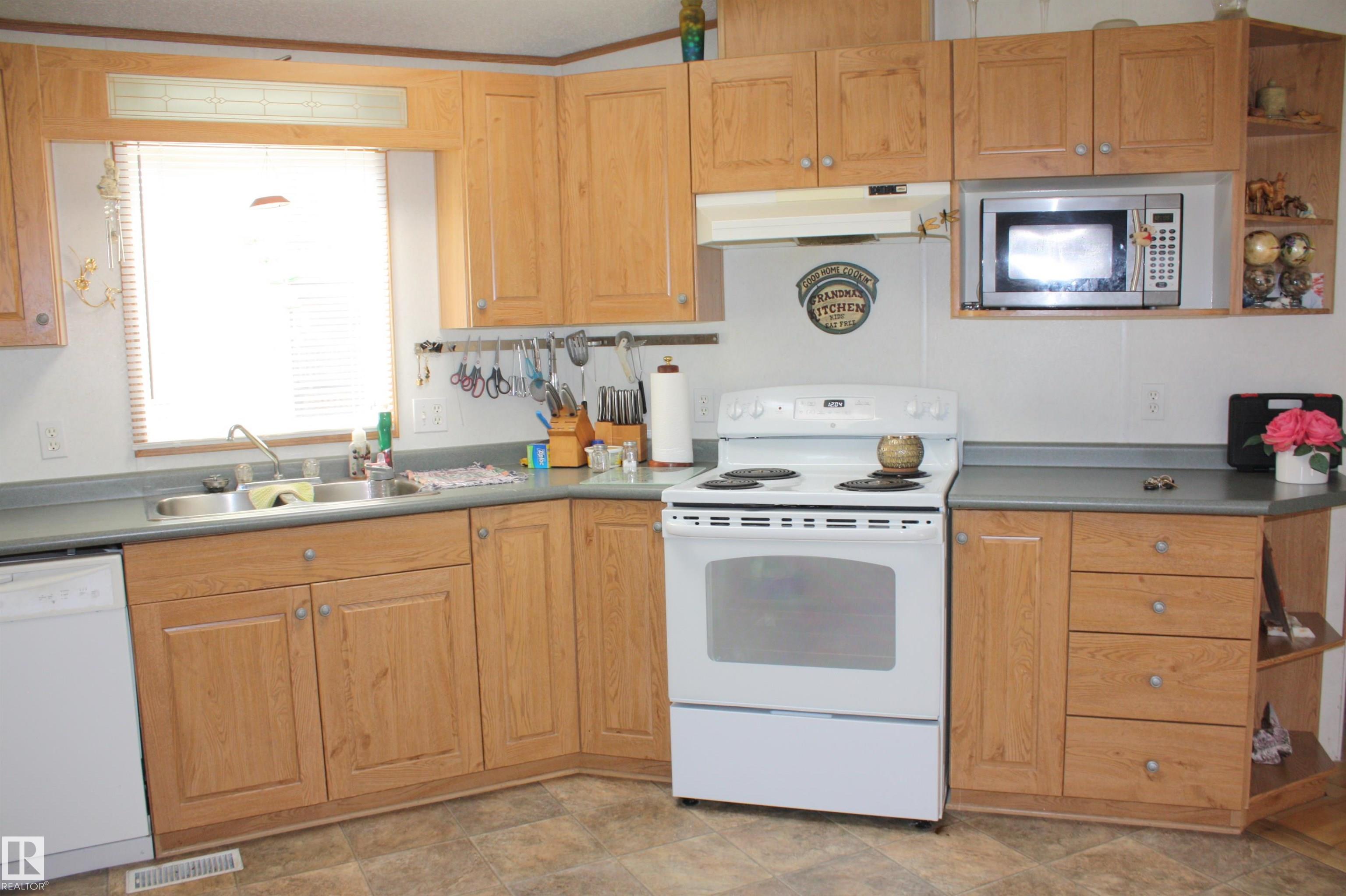 Very well cared for 16 x76 (1216 sq.ft.) 3 bedroom, 2 4pce bath moible home built in 1999, with single car detached garage.Home has open concept with vaulted ceilings, and skylight in kitchen/dining area. Dining room has beautiful built in hutch .Master bedroom with 4 pce ensuite is situated at back of mobile for privacy away from kids or stay over guests. Second 4pce bath is up front to service the other 2 bedrooms. New shingles on garage and mobile 2023, HWT 7 yrs old, Original furnace ( just replaced ignition switch it runs like a top). Mobile is in a family friendly crescent with school bus access. SITS ON A 50' X 100 ' LOT.