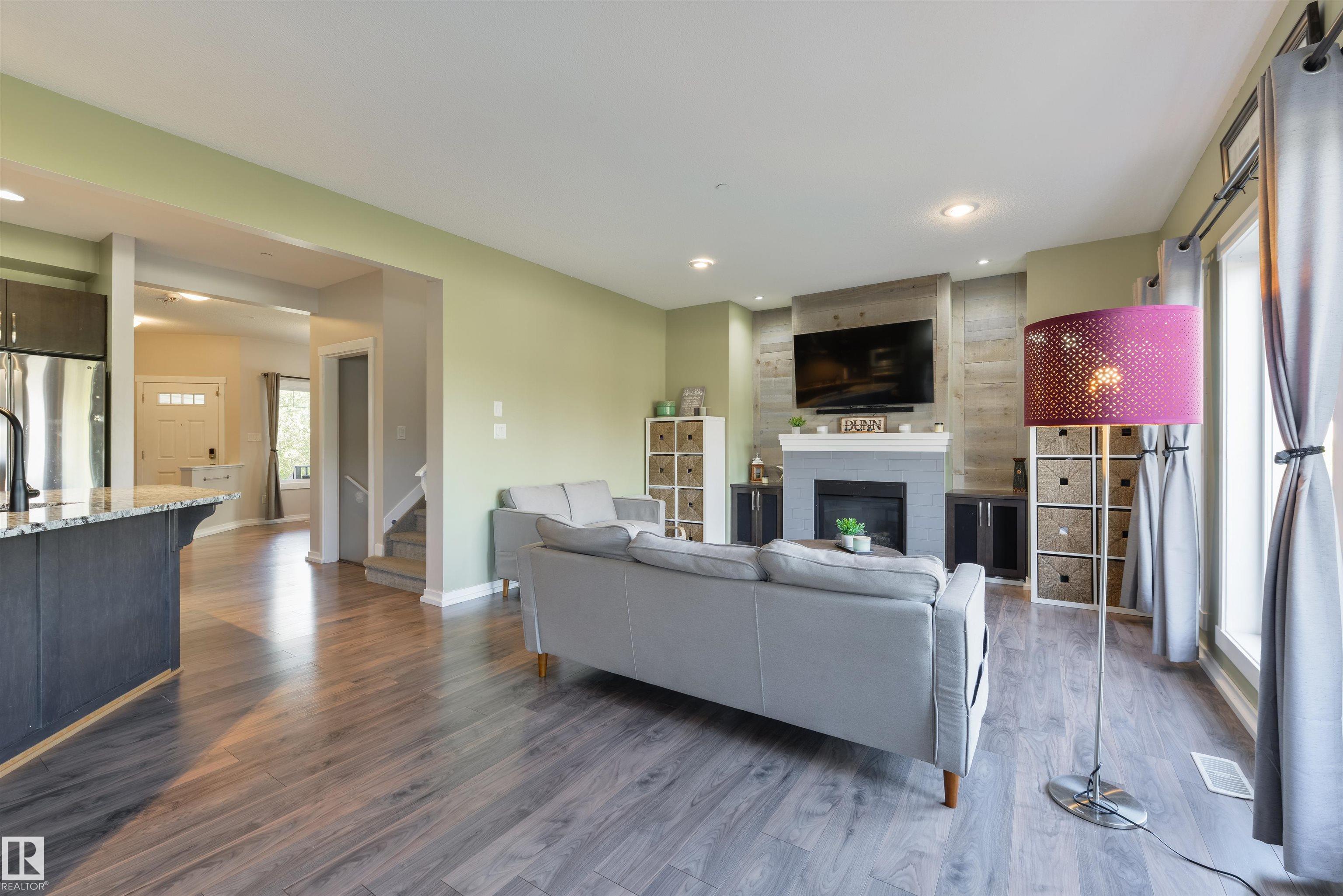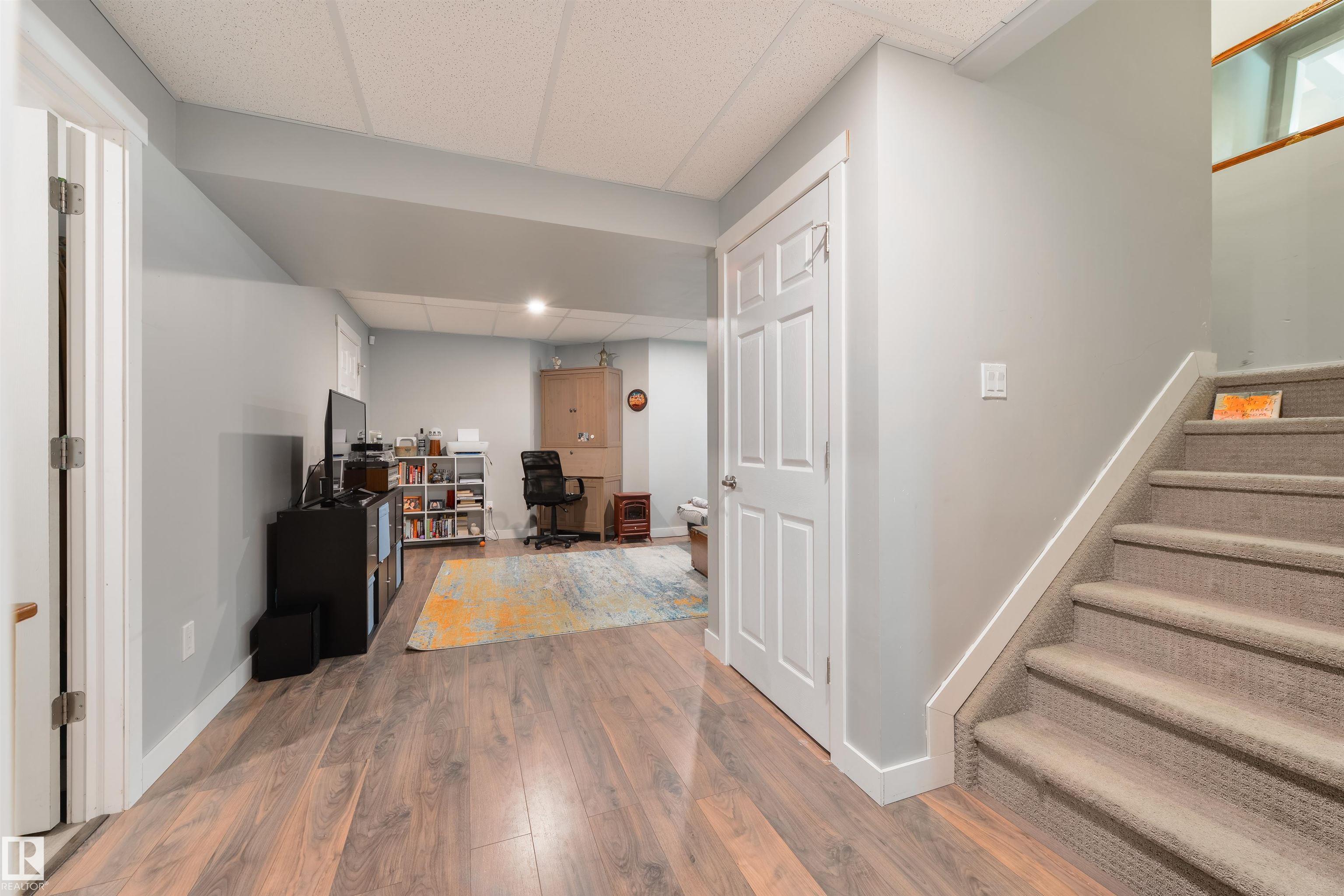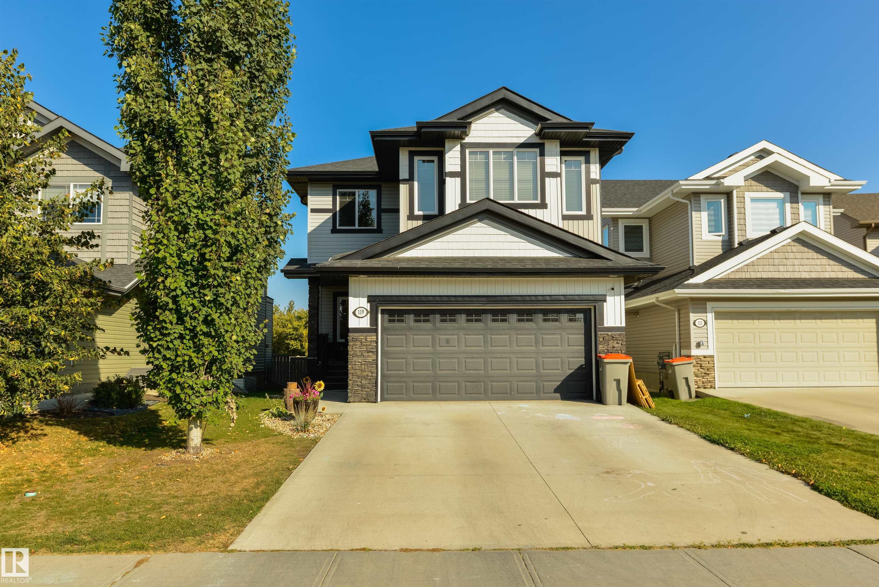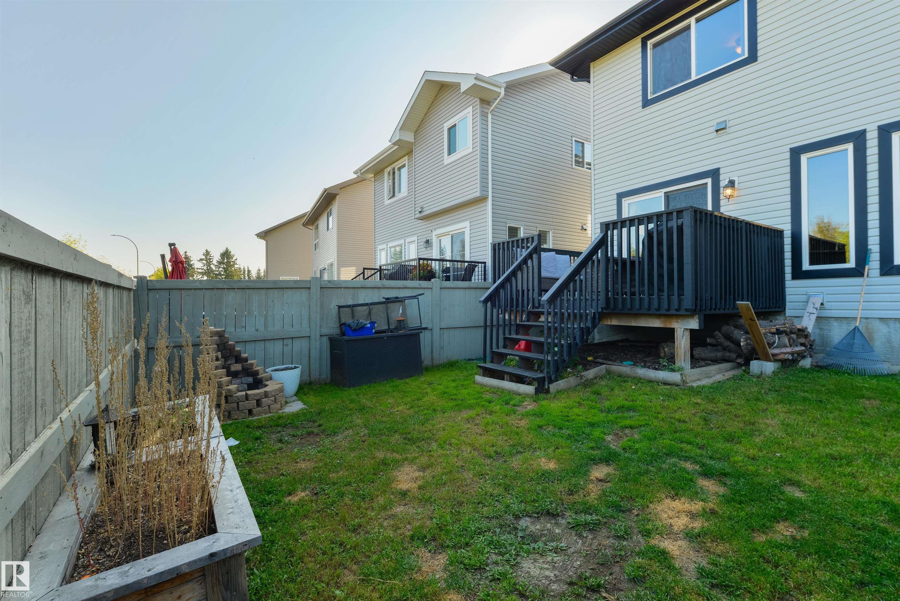 FOUR top-floor bedrooms plus a BONUS ROOM ? this home was made for families!! 9? ceilings, central A/C, main-floor laundry, dedicated office/den, great kitchen with built-in stainless steel appliances, center island, GRANITE countertops, WALK-IN pantry, separate dinette, cozy living room with gas fireplace, FIVE total bedrooms including a king-sized owner?s suite with walk-in closet & 5pc ensuite, a finished basement, and a double-attached HEATED garage ? the layout & the details here are perfect! Within walking distance to schools, parks, playgrounds, & Stony Plain?s downtown amenities, this home is located on a NO-THROUGH street, and is complete with an exterior deck, fully landscaped & fenced yard, with quick & easy access to commuter highways.