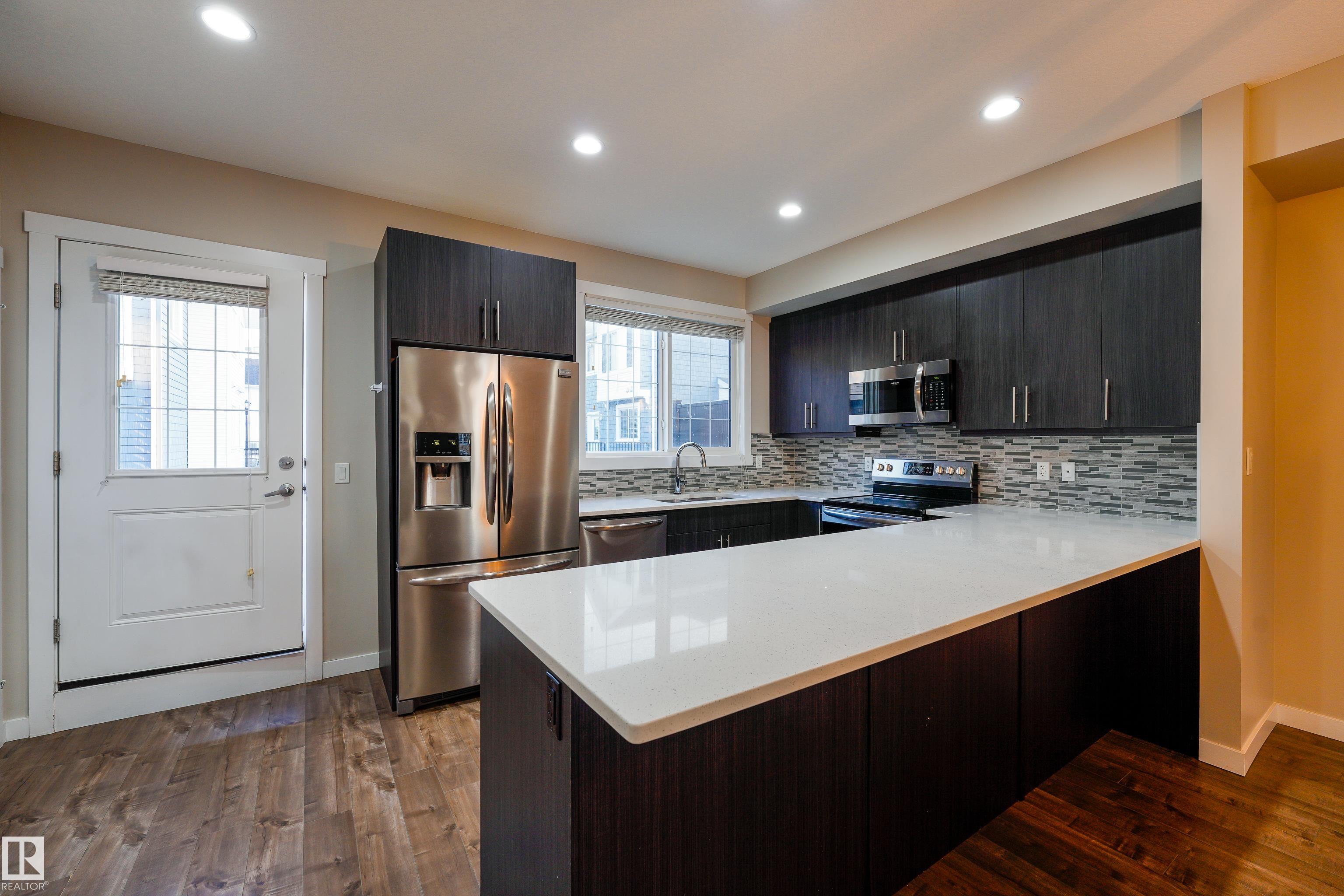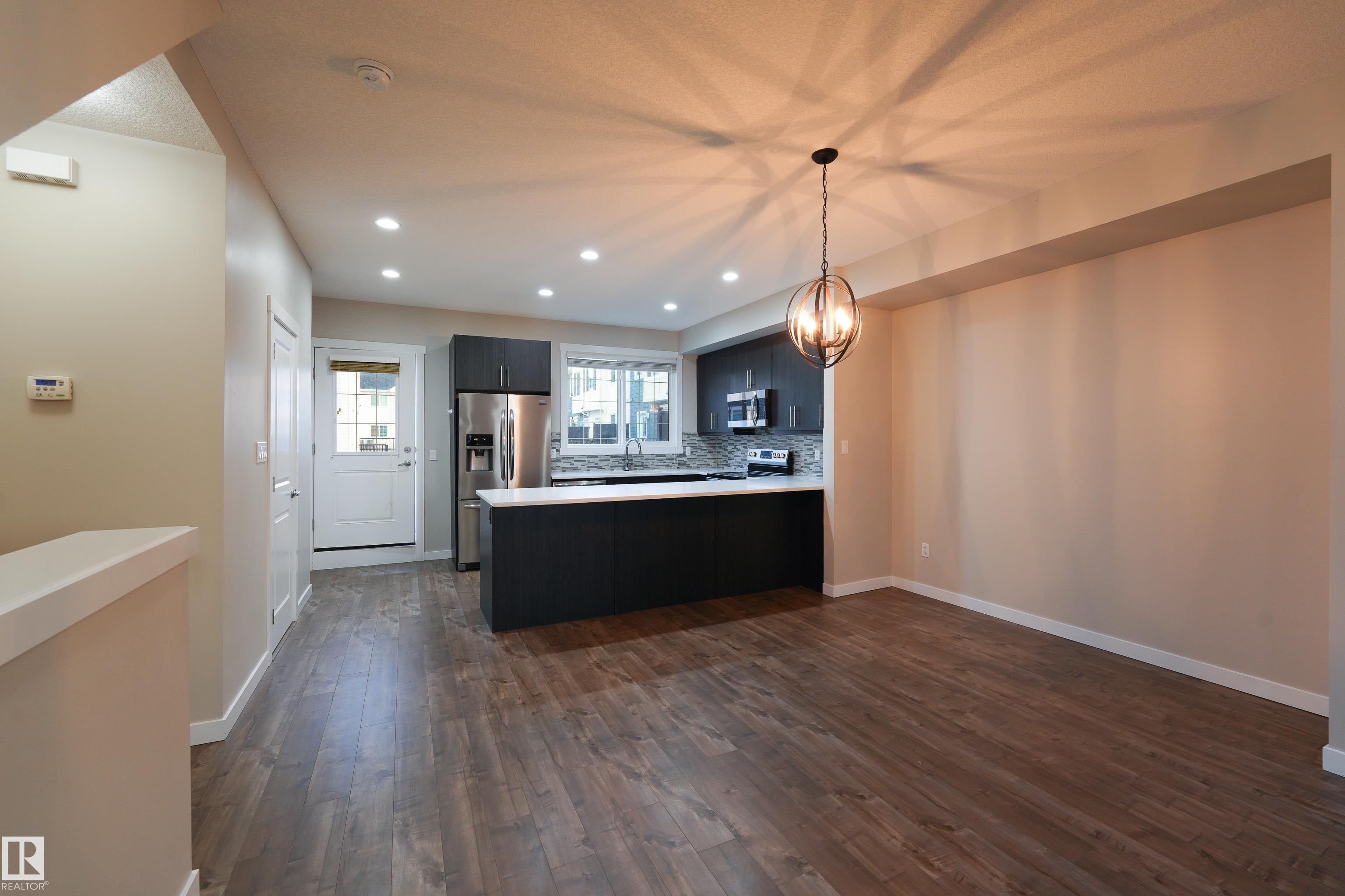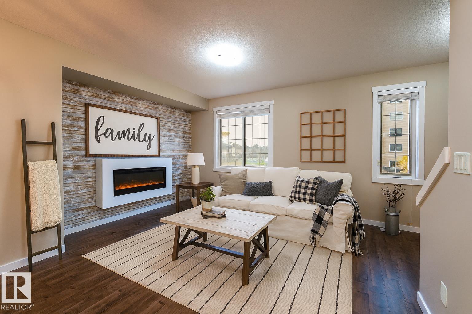 Welcome to this 3 bedroom 2.5 bath townhouse for sale offering AMAZING VALUE for first-time home buyers, investors, and young families. Previously a SHOW HOME, it features 9 FT CEILINGS, CENTRAL A/C, and MODERN FINISHES throughout. The entry level includes a large foyer with flex space perfect for a HOME OFFICE or GYM, plus a DOUBLE ATTACHED GARAGE. The main floor showcases a U-shaped kitchen with STAINLESS STEEL APPLIANCES, QUARTZ COUNTERTOPS, and ample cabinetry, along with a balcony and GAS BBQ OUTLET. The dining area opens to a bright living room with cozy fireplace. Upstairs, the primary suite offers a WALK-IN CLOSET & FULL ENSUITE alongside two bedrooms, a second full bath, and laundry. PRIME LOCATION, near Heritage Valley Town Centre, South Common, Airport Mall, groceries, and easy access to ANTHONY HENDAY, QE2, and YEG AIRPORT. Walking distance to Dr. Lila Fahlman School.