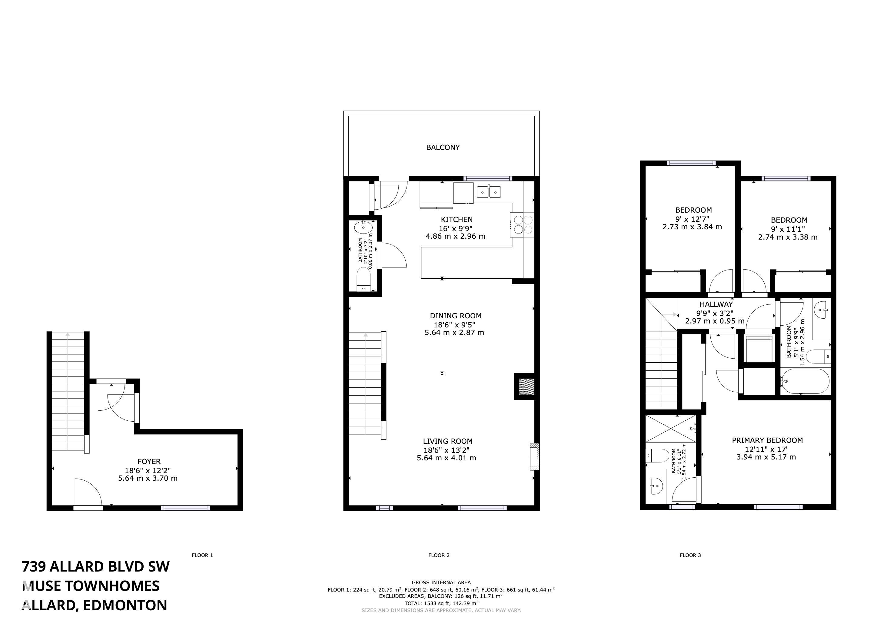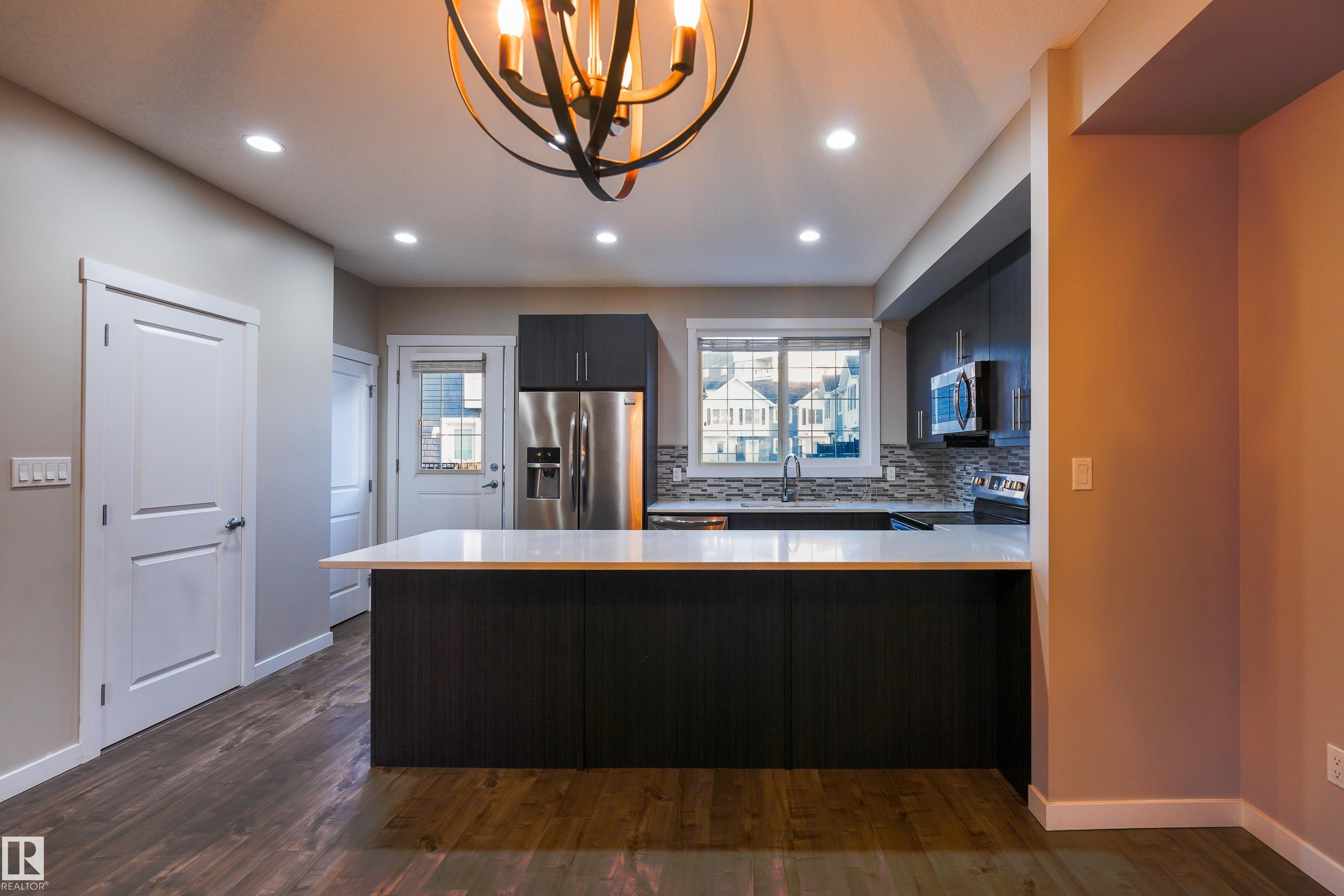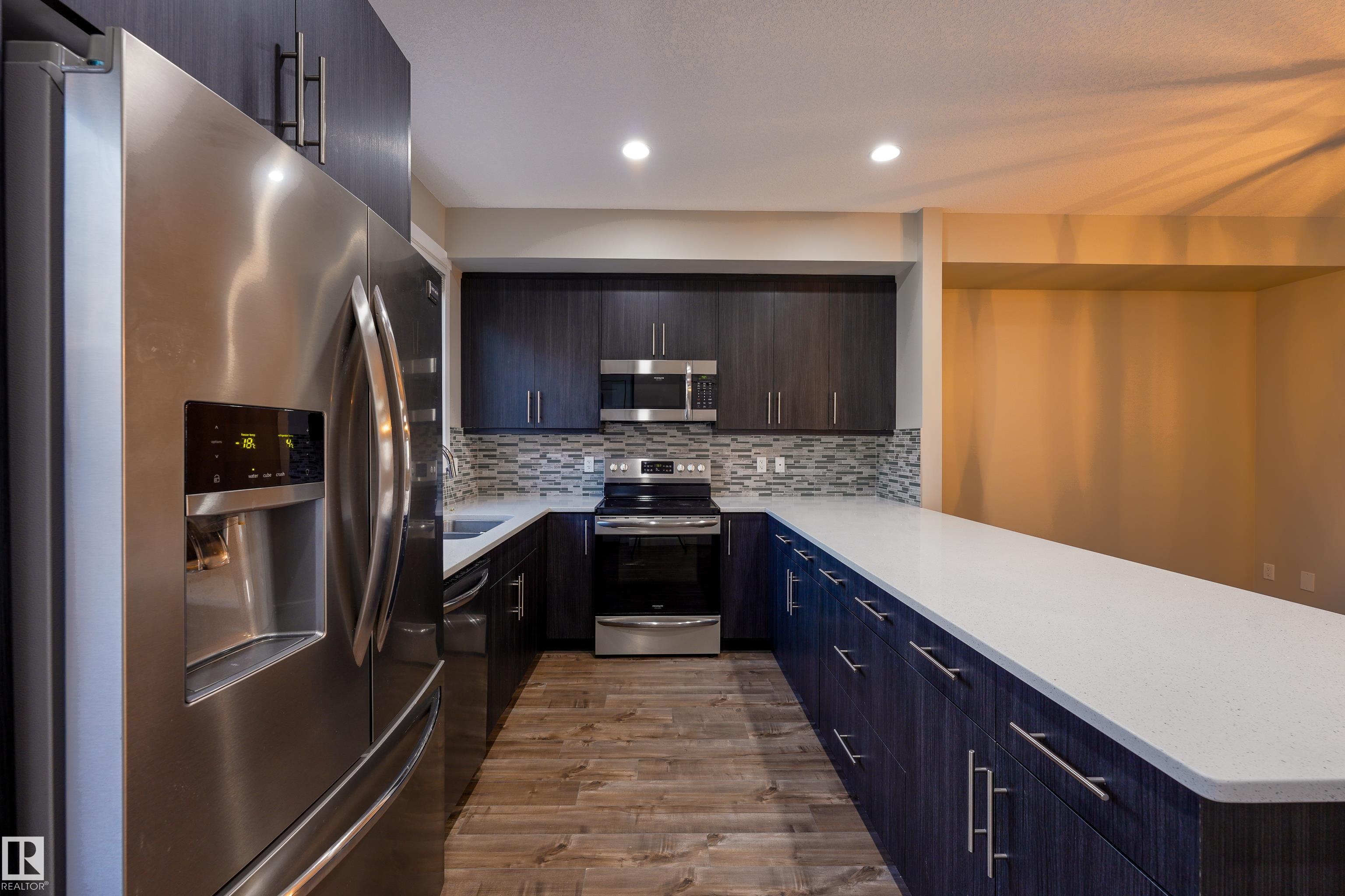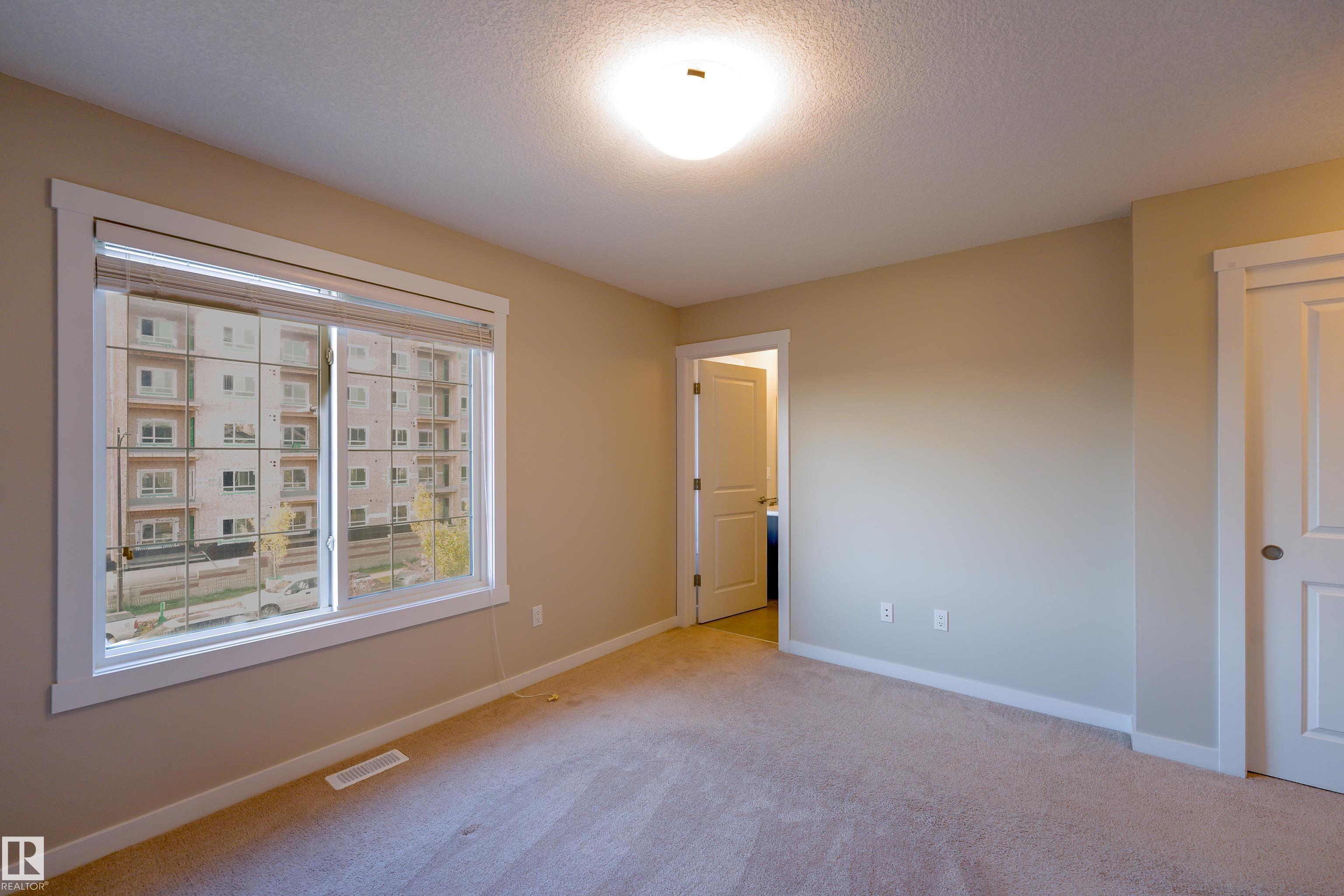 Welcome to this 3 bedroom 2.5 bath townhouse for sale offering AMAZING VALUE for first-time home buyers, investors, and young families. Previously a SHOW HOME, it features 9 FT CEILINGS, CENTRAL A/C, and MODERN FINISHES throughout. The entry level includes a large foyer with flex space perfect for a HOME OFFICE or GYM, plus a DOUBLE ATTACHED GARAGE. The main floor showcases a U-shaped kitchen with STAINLESS STEEL APPLIANCES, QUARTZ COUNTERTOPS, and ample cabinetry, along with a balcony and GAS BBQ OUTLET. The dining area opens to a bright living room with cozy fireplace. Upstairs, the primary suite offers a WALK-IN CLOSET & FULL ENSUITE alongside two bedrooms, a second full bath, and laundry. PRIME LOCATION, near Heritage Valley Town Centre, South Common, Airport Mall, groceries, and easy access to ANTHONY HENDAY, QE2, and YEG AIRPORT. Walking distance to Dr. Lila Fahlman School.