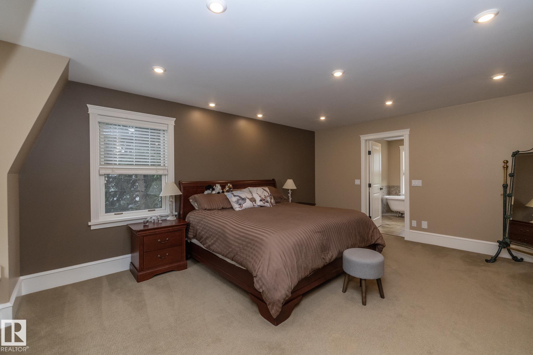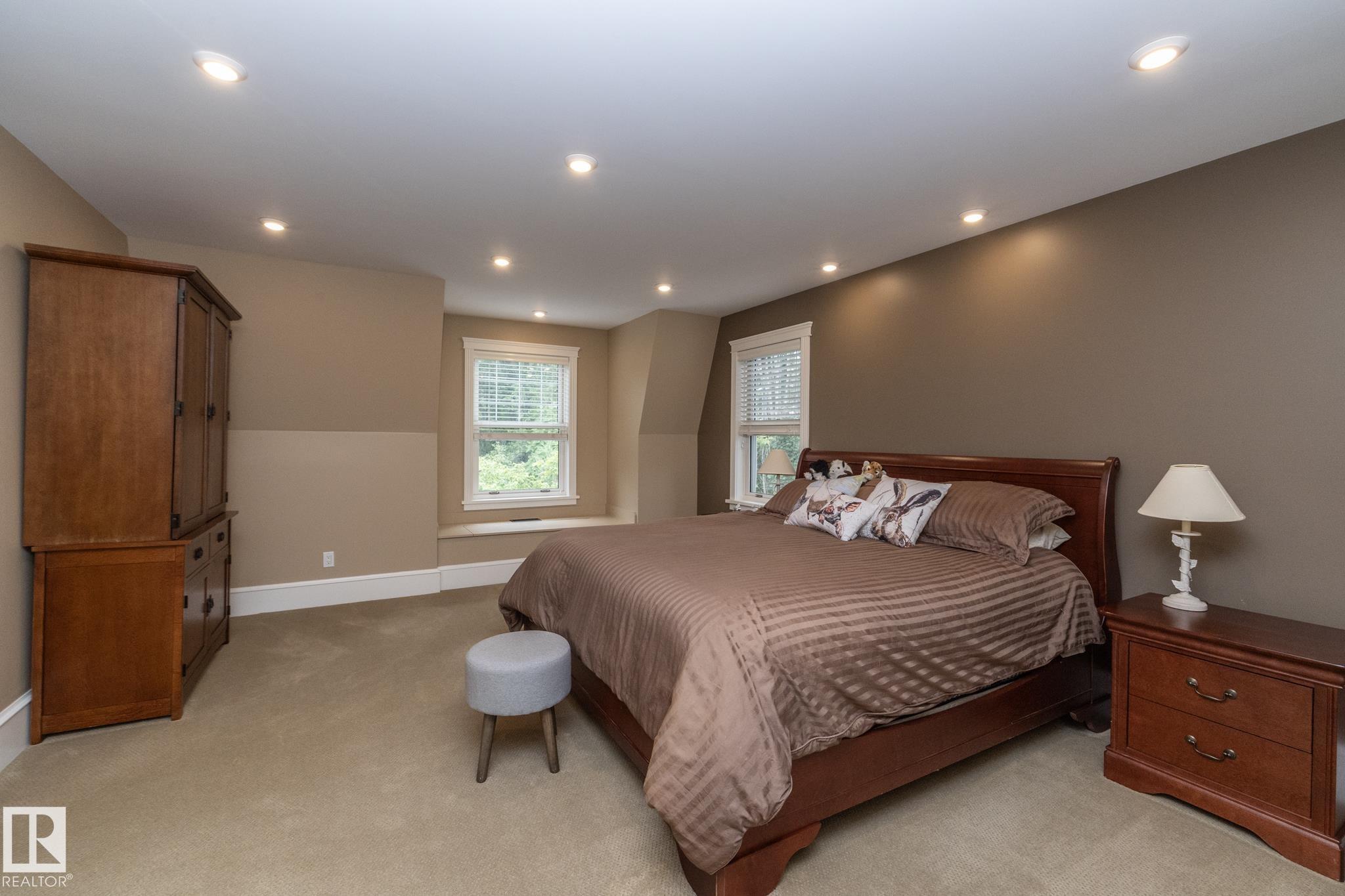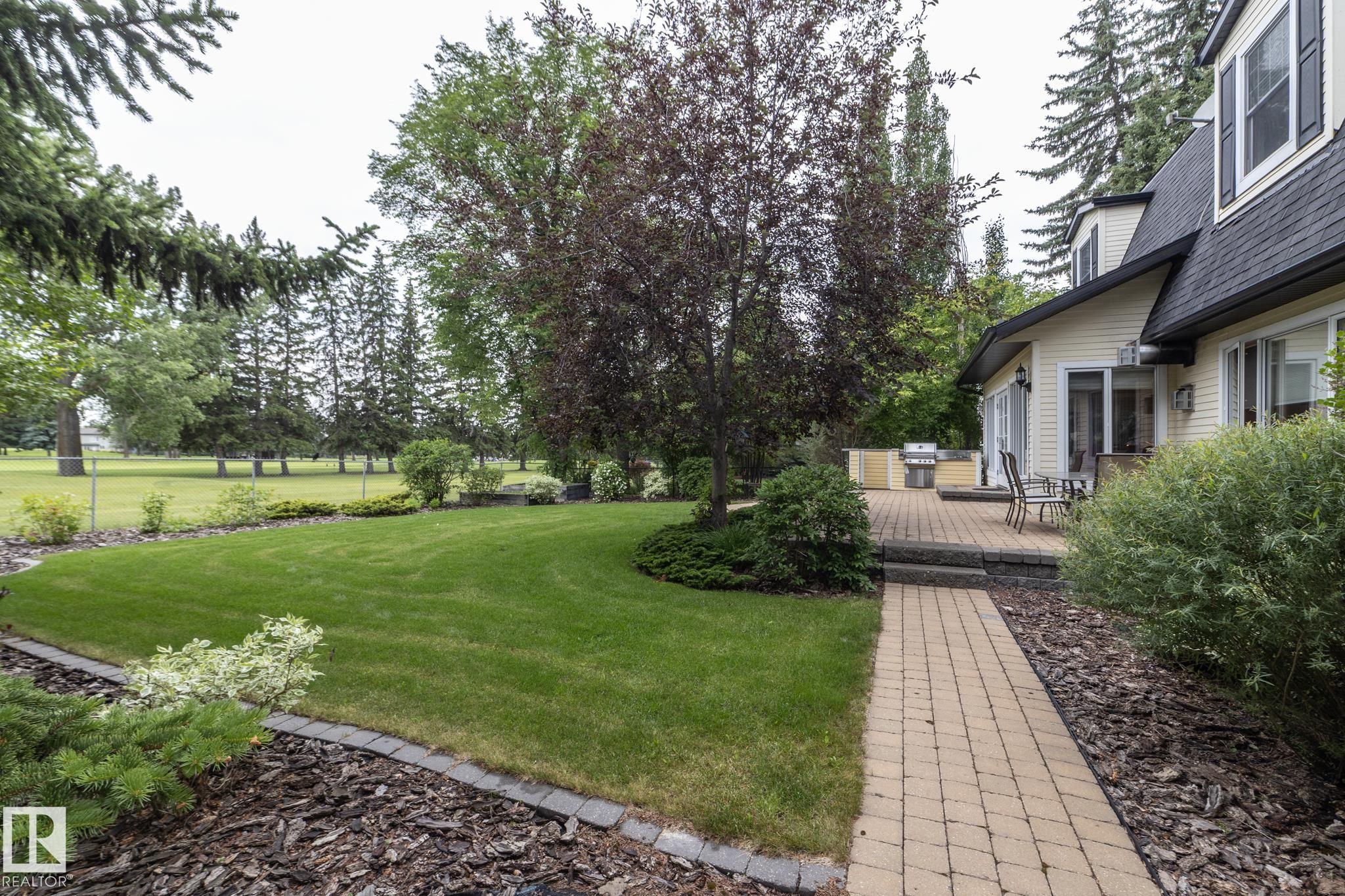 OWN A PIECE OF HISTORY ON FAIRWAY DRIVE! Backing directly onto hole #6 of the Derrick Golf & Winter Club, this 3,562 sqft masterpiece (built 1967, expanded 2005, renovated 2009) fuses timeless craftsmanship w/ modern luxury. A sun-splashed open plan showcases hardwood, marble tile, crown mouldings, wainscoting, LED pots & built-in speakers framing a true chef?s kitchen w/ granite counters, two-tone island & pro-grade appliances. Unwind beside the classic wood-burning hearth or the sleek electric FP. Two lavish primary suites, one on the main, one upstairs, offer spa-inspired baths (claw-foot & Jacuzzi tubs). Plus two more bedrooms: one upstairs & one in the finished bsmt, for a total of four, all served by five elegant baths. Dual laundry rooms add everyday ease. Outside, a stone patio w/ built-in BBQ overlooks the meticulously landscaped, irrigated yard. Hardie-board exterior, oversized heated garage w/ sink & drain, BurBer carpet, two A/C units?move-in perfection on Edmonton?s most prestigious street!