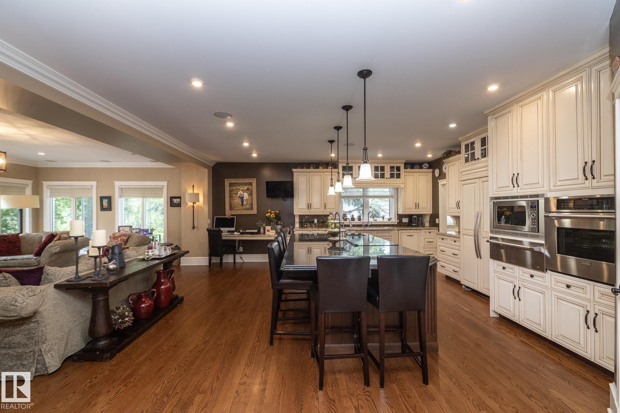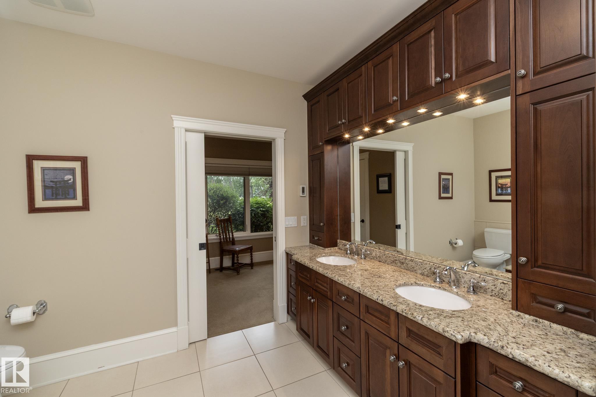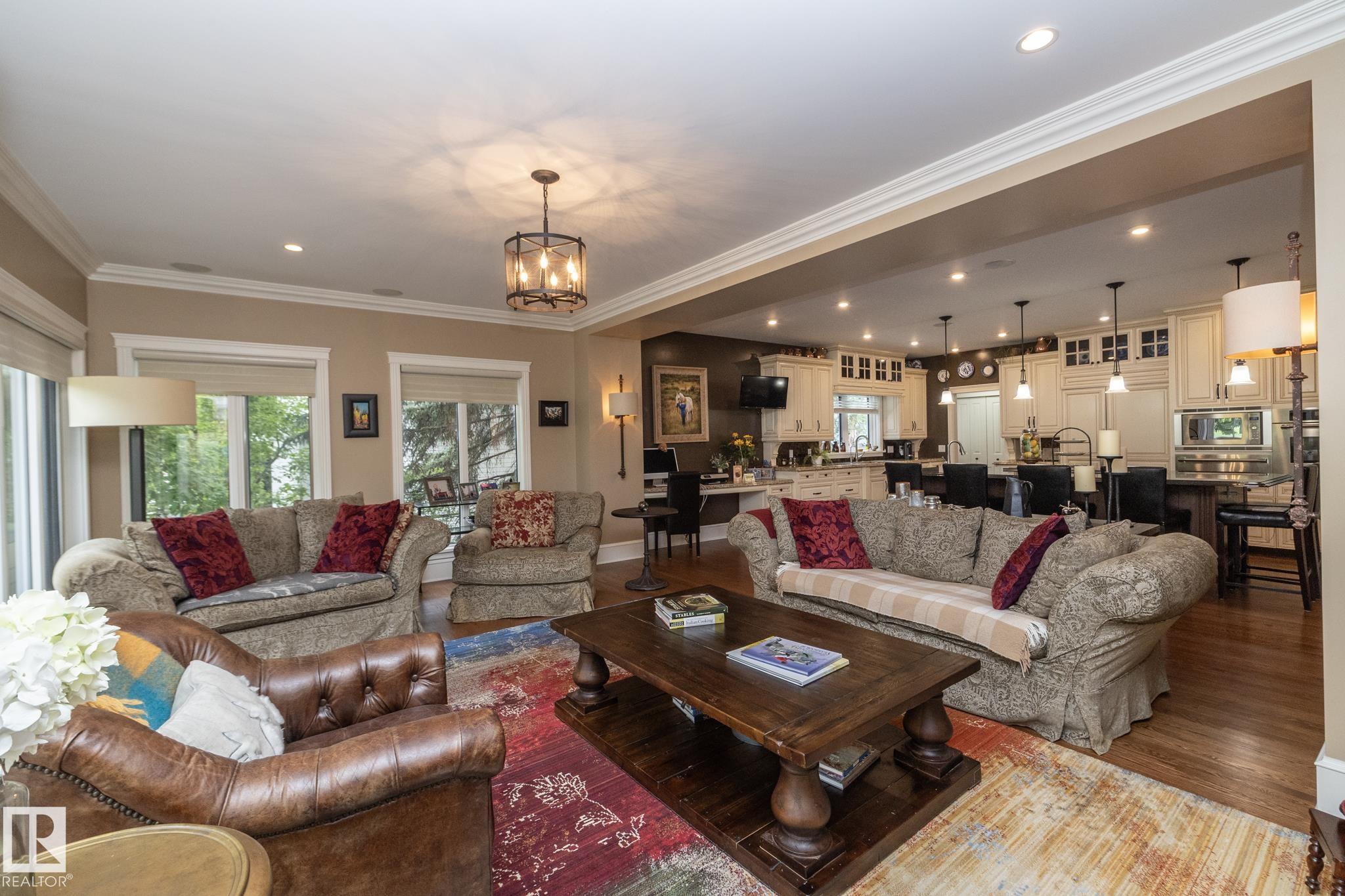OWN A PIECE OF HISTORY ON FAIRWAY DRIVE! Backing directly onto hole #6 of the Derrick Golf & Winter Club, this 3,562 sqft masterpiece (built 1967, expanded 2005, renovated 2009) fuses timeless craftsmanship w/ modern luxury. A sun-splashed open plan showcases hardwood, marble tile, crown mouldings, wainscoting, LED pots & built-in speakers framing a true chef?s kitchen w/ granite counters, two-tone island & pro-grade appliances. Unwind beside the classic wood-burning hearth or the sleek electric FP. Two lavish primary suites, one on the main, one upstairs, offer spa-inspired baths (claw-foot & Jacuzzi tubs). Plus two more bedrooms: one upstairs & one in the finished bsmt, for a total of four, all served by five elegant baths. Dual laundry rooms add everyday ease. Outside, a stone patio w/ built-in BBQ overlooks the meticulously landscaped, irrigated yard. Hardie-board exterior, oversized heated garage w/ sink & drain, BurBer carpet, two A/C units?move-in perfection on Edmonton?s most prestigious street!