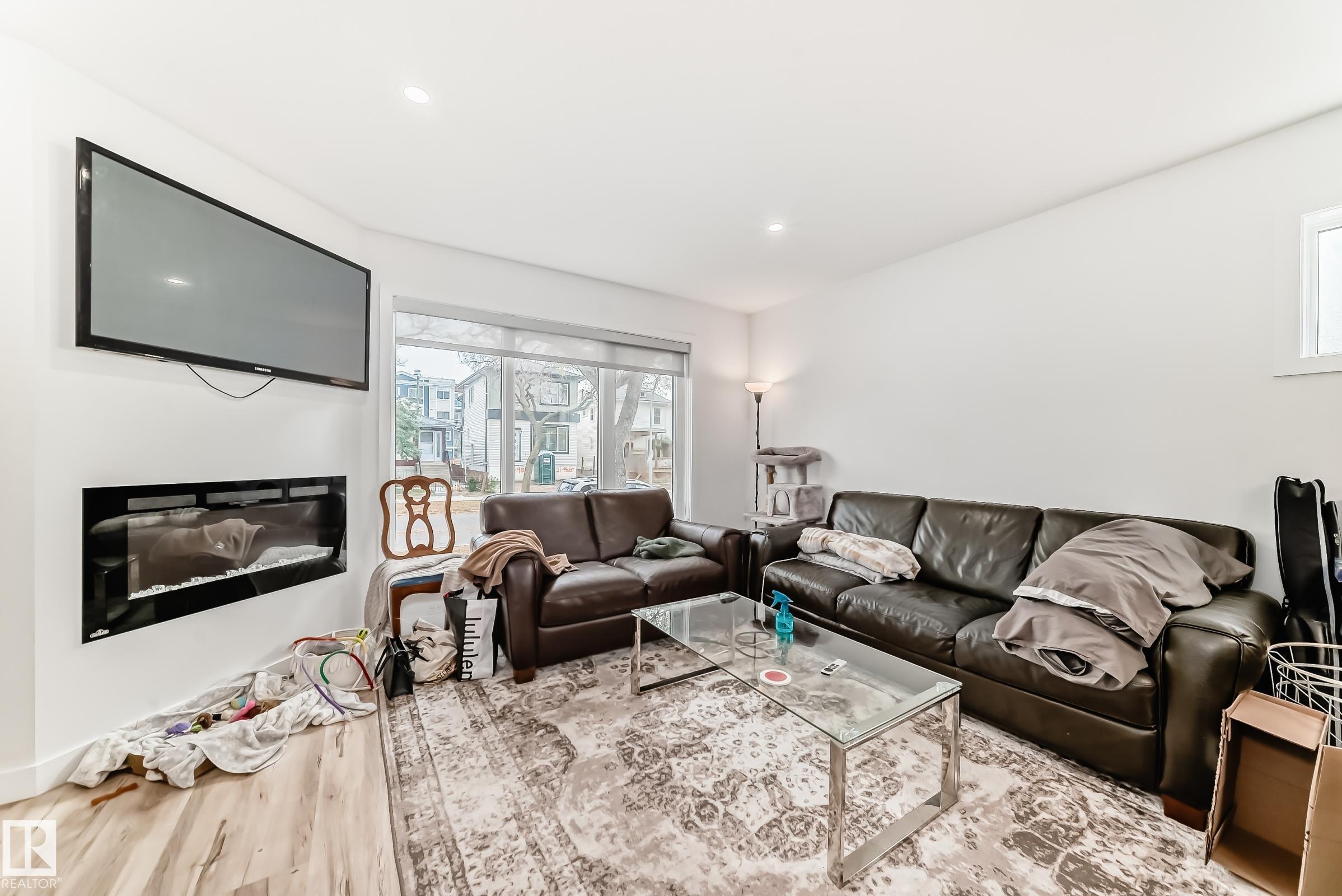 Gorgeous half duplex with legal basement suite & NO condo fees!! Qualify for a larger mortgage with the rental income! One of a kind real estate investment! A turn-key home that includes all appliances (even for suite!), fencing, and landscaping! Includes detached single car garage. Modern open concept design with high-end finishing, including vinyl-plank flooring, pot lights & electric fireplace! Perfect design for entertaining! Kitchen features quartz counter tops, modern cabinets, soft close drawers & Samsung stainless steel appliances. 2 dueling master bedrooms with two stylish full bathrooms and walk-in closets. Upstairs laundry and NO CONDO FEES! The legal basement suite features a living area, full kitchen, laundry and one spacious bedroom. All with the same high end finishings as upstairs. A truly great investment property! Close to Kingsway Mall, Yellowhead Trail and the Royal Alex Hospital.
