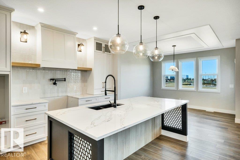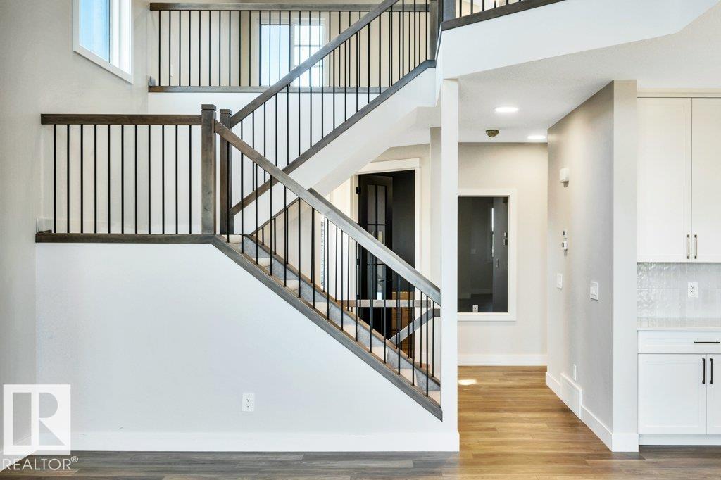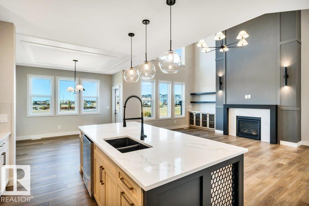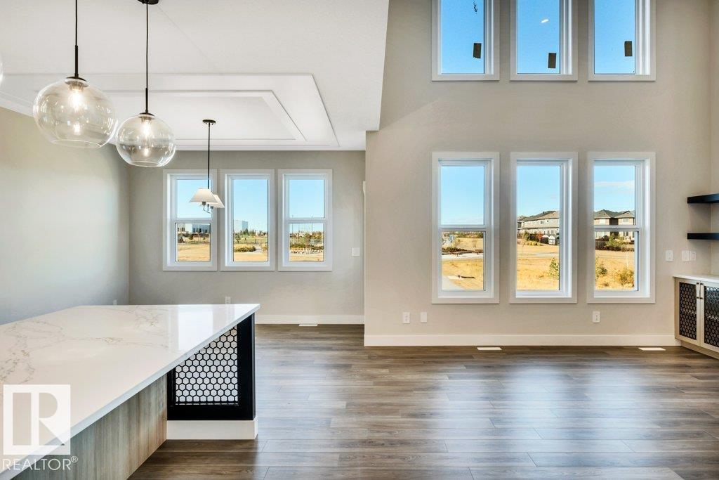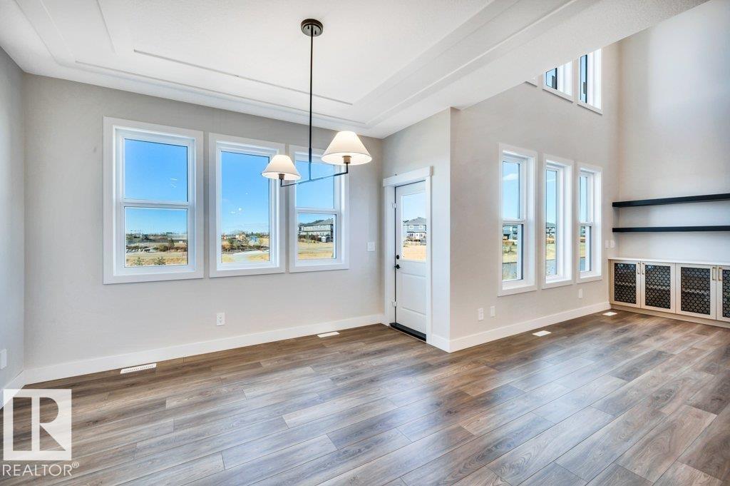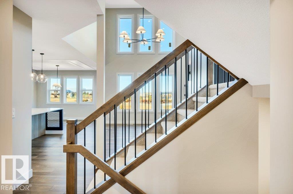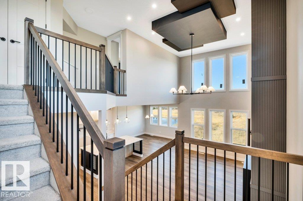 Welcome to this exquisite two-story walk-out home by Homexx in Erin Ridge North backing a park with pond views. The main floor features an open-concept layout, ideal for entertaining, along with a convenient main floor office. The chef-inspired kitchen boasts a large island, custom cabinetry, stainless steel appliances, and overlooks the dining area and great room. Upstairs, you'll find four spacious bedrooms, including a luxurious primary suite, a bonus room with a vaulted ceiling, a laundry room, and two bathrooms. The primary bedroom is bright and airy, offering a 5-piece ensuite with a separate shower and tub, plus an impressive walk-through closet leading to the laundry. Additional highlights include quartz countertops, elegant lighting, luxury vinyl plank flooring, a gas fireplace, 8-foot interior doors, and stylish railings with wrought iron spindles. With excellent curb appeal, a double oversized attached garage, and proximity to walking trails, this home has it all.