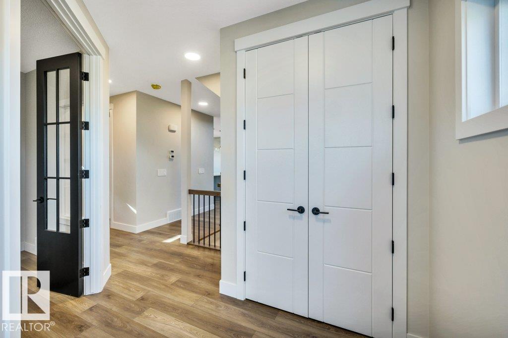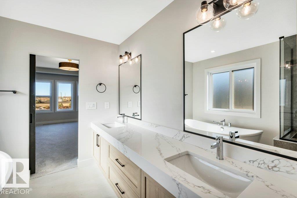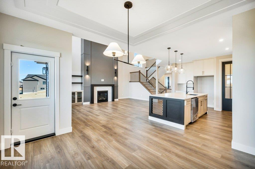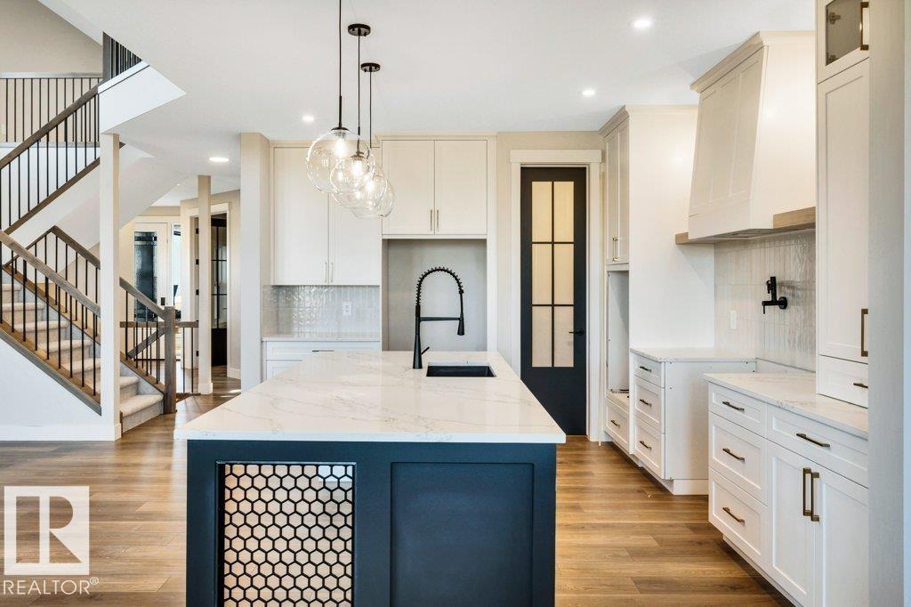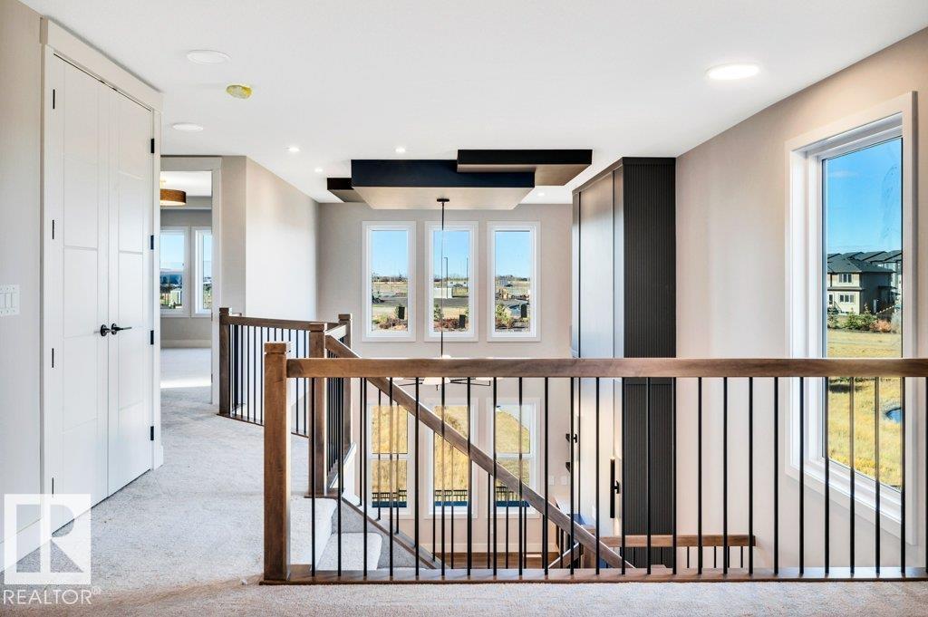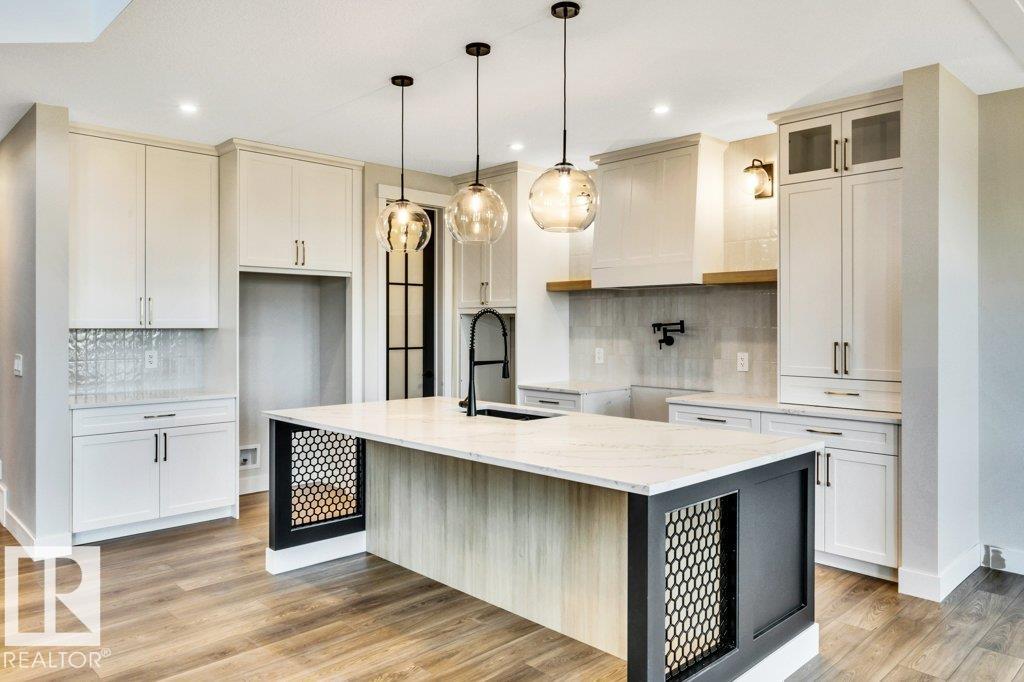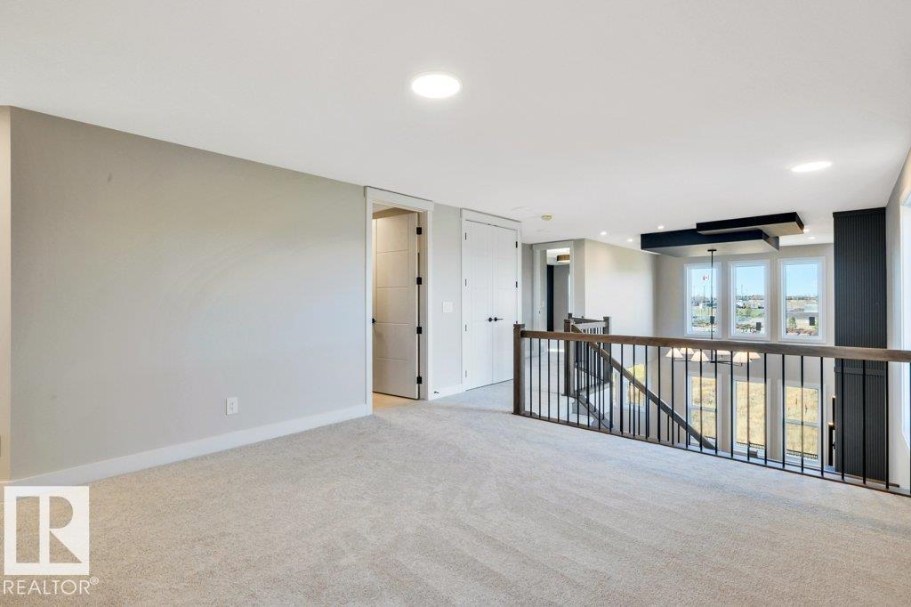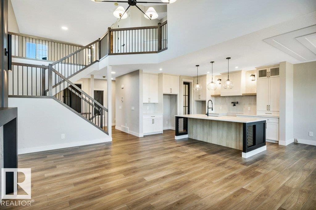 Welcome to this exquisite two-story walk-out home by Homexx in Erin Ridge North backing a park with pond views. The main floor features an open-concept layout, ideal for entertaining, along with a convenient main floor office. The chef-inspired kitchen boasts a large island, custom cabinetry, stainless steel appliances, and overlooks the dining area and great room. Upstairs, you'll find four spacious bedrooms, including a luxurious primary suite, a bonus room with a vaulted ceiling, a laundry room, and two bathrooms. The primary bedroom is bright and airy, offering a 5-piece ensuite with a separate shower and tub, plus an impressive walk-through closet leading to the laundry. Additional highlights include quartz countertops, elegant lighting, luxury vinyl plank flooring, a gas fireplace, 8-foot interior doors, and stylish railings with wrought iron spindles. With excellent curb appeal, a double oversized attached garage, and proximity to walking trails, this home has it all.