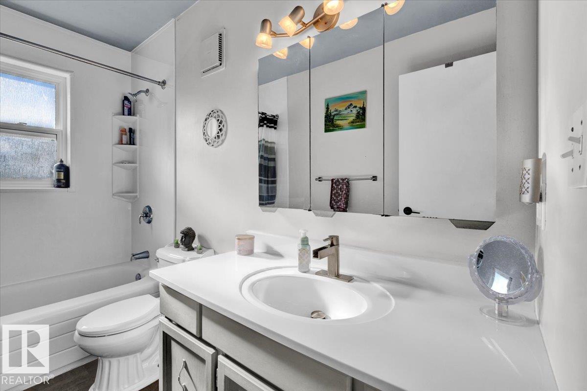 Tucked away in a peaceful cul-de-sac, this beautiful 4-bed, 2-bath home offers an ideal opportunity for families or a first time buyer looking to break into the market and enjoy a place to truly feel at home. This move-in ready property has plenty of space to live, grow, and relax. The main floor features 2 beds, a 4 pc bath, and thoughtful upgrades throughout. In the basement you'll find a spacious rec room, 3 pc bath, and 2 additional bedrooms at the end of the hall. The oversized attached double garage is a standout ? offering ample room for parking, storage, or even a workshop. The backyard is fully fenced and includes a cozy fire pit ? perfect for weekend hangouts, family BBQs, or unwinding under the stars. Whether you're entertaining or just enjoying your space, this home delivers! *Windows/shingles 2016, Furnace 2021, HWT 2019, Appliances 2020, Floors 2018, Backyard professionally graded/new sod 2024** Close to parks, schools, local amenities, and situated in a mature neighbourhood in Stony Plain.