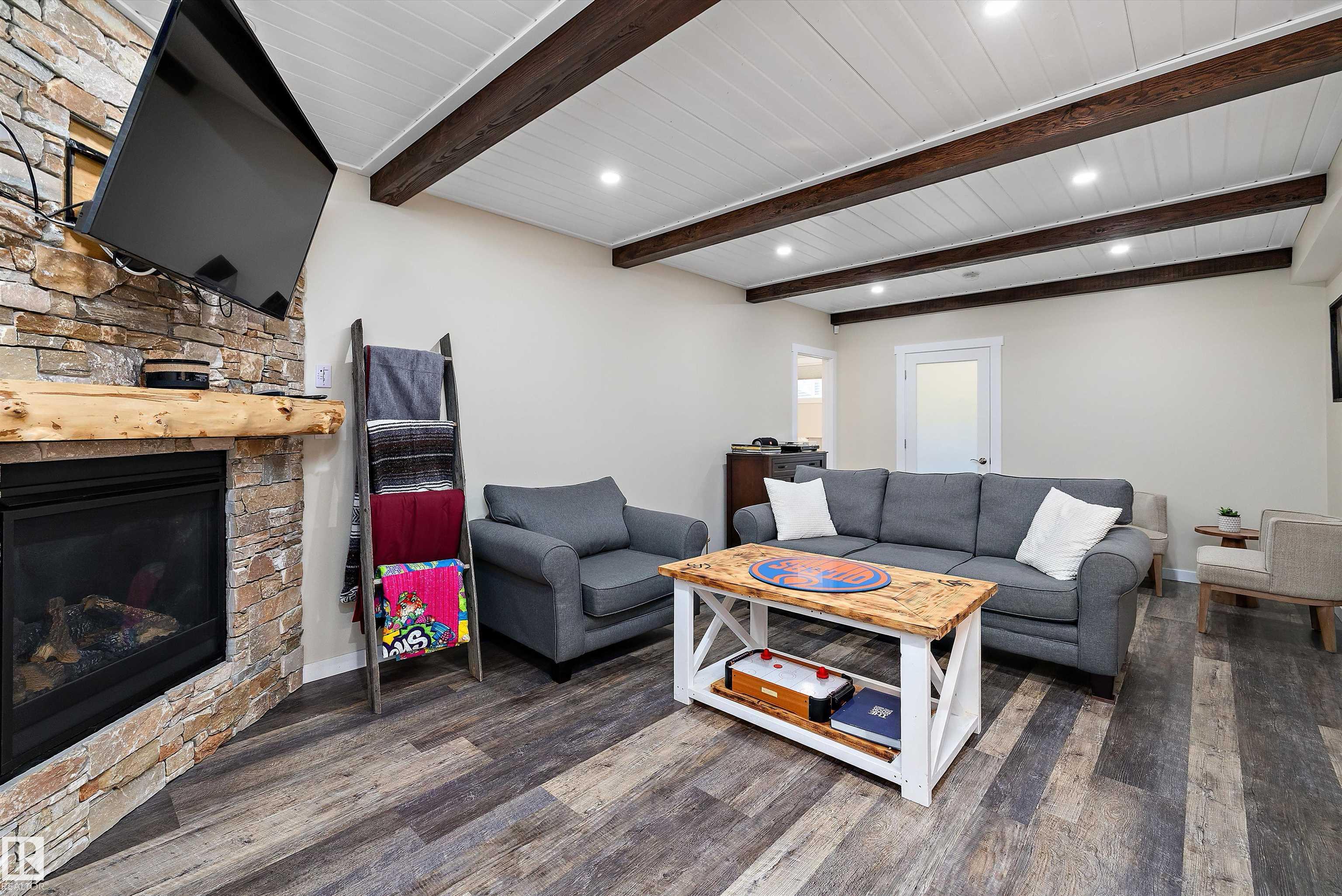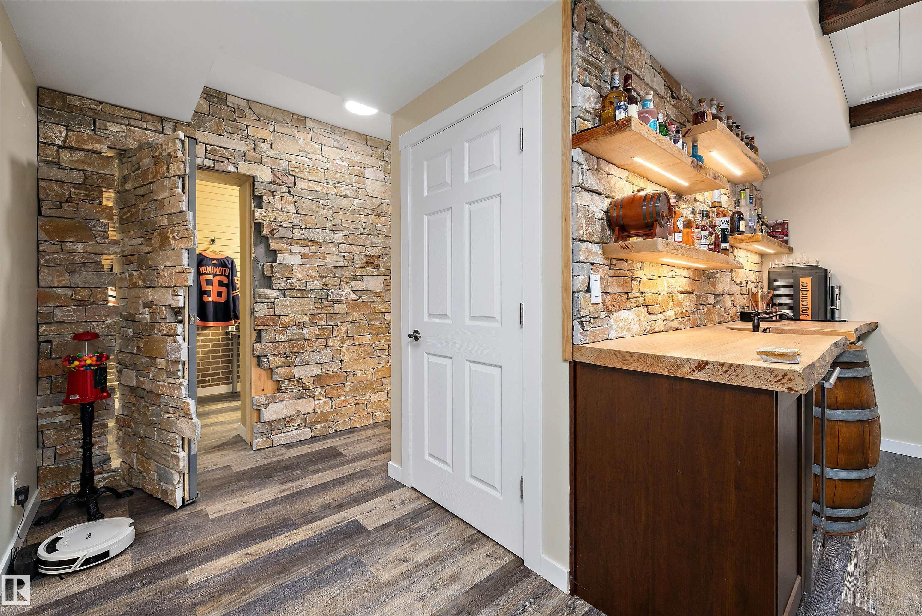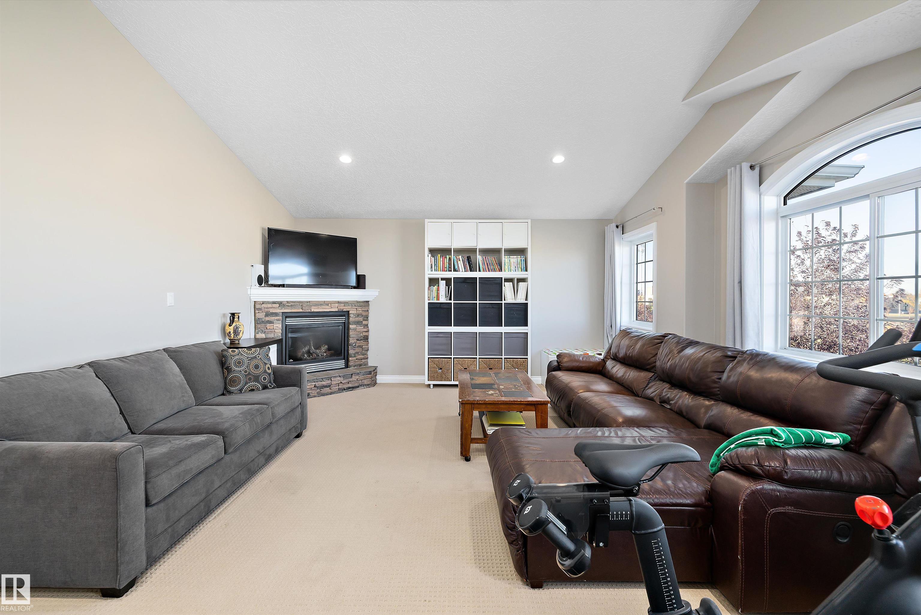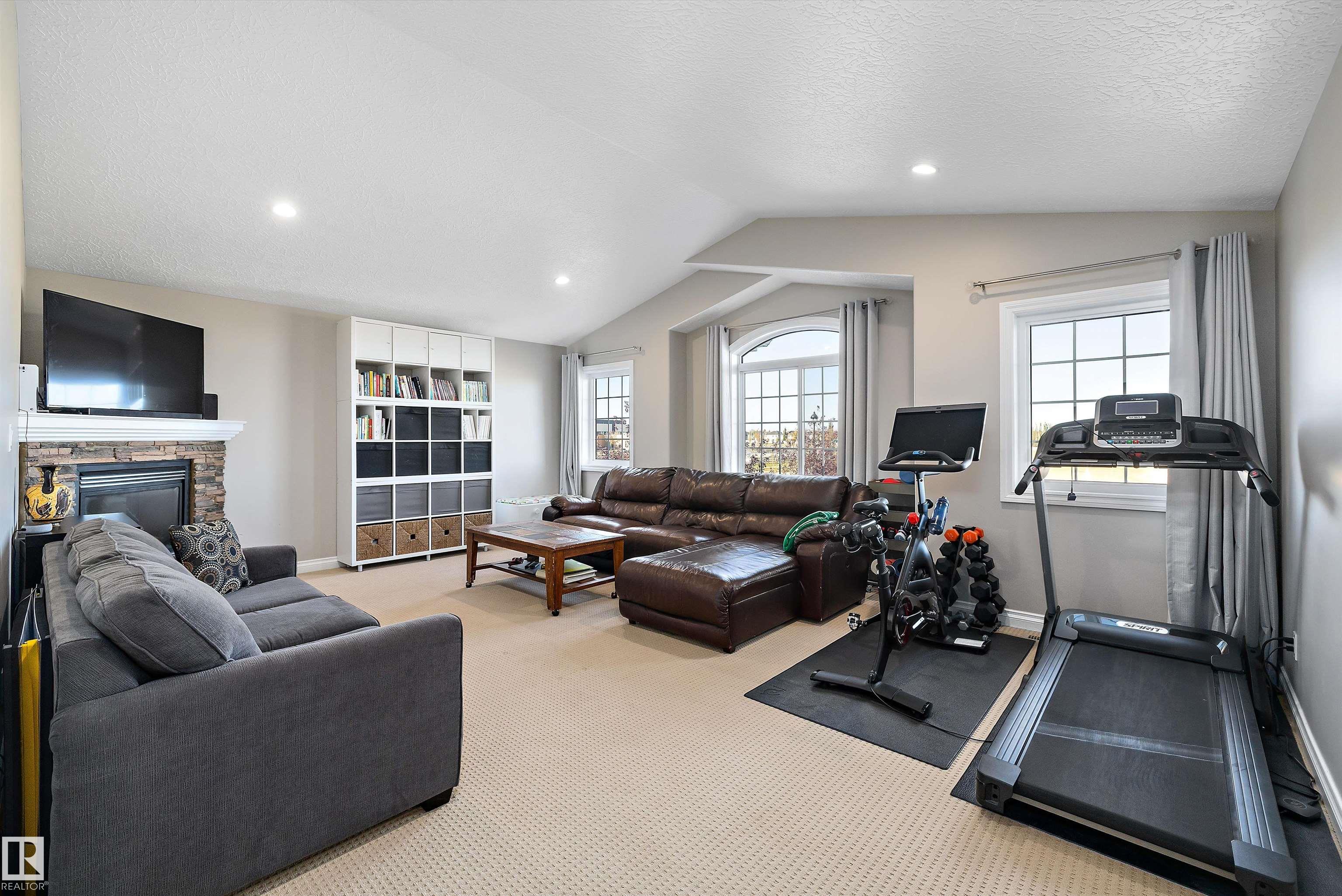 Welcome to this beautifully finished home showcasing quality craftsmanship and exceptional value throughout. The main floor offers a bright open layout with elegant engineered hardwood and ceramic tile, a stylish kitchen with granite countertops, and stainless steel appliances. Upstairs features a spacious bonus room with a cozy gas fireplace and a luxurious 5-piece primary ensuite. The basement is perfect for entertaining, complete with a bedroom, 3-piece bath, laminate flooring, wet bar with beverage cooler, and another gas fireplace. A hidden bonus room adds versatility?ideal for a private wine cellar, gun room, or extra storage. The triple attached garage is heated, insulated, and finished with laminate tile and built-in cabinets. Enjoy outdoor living on the large deck, perfect for family gatherings or relaxing evenings. Additional highlights include an on-demand hot water system, water softener, air conditioning, and all window coverings. Don?t miss this opportunity!