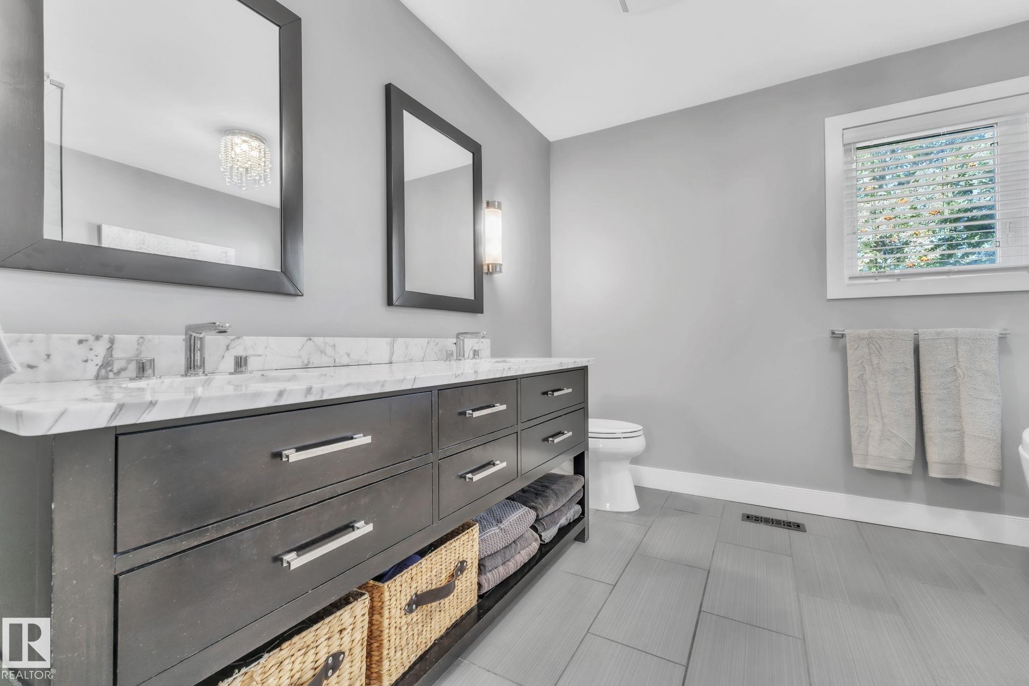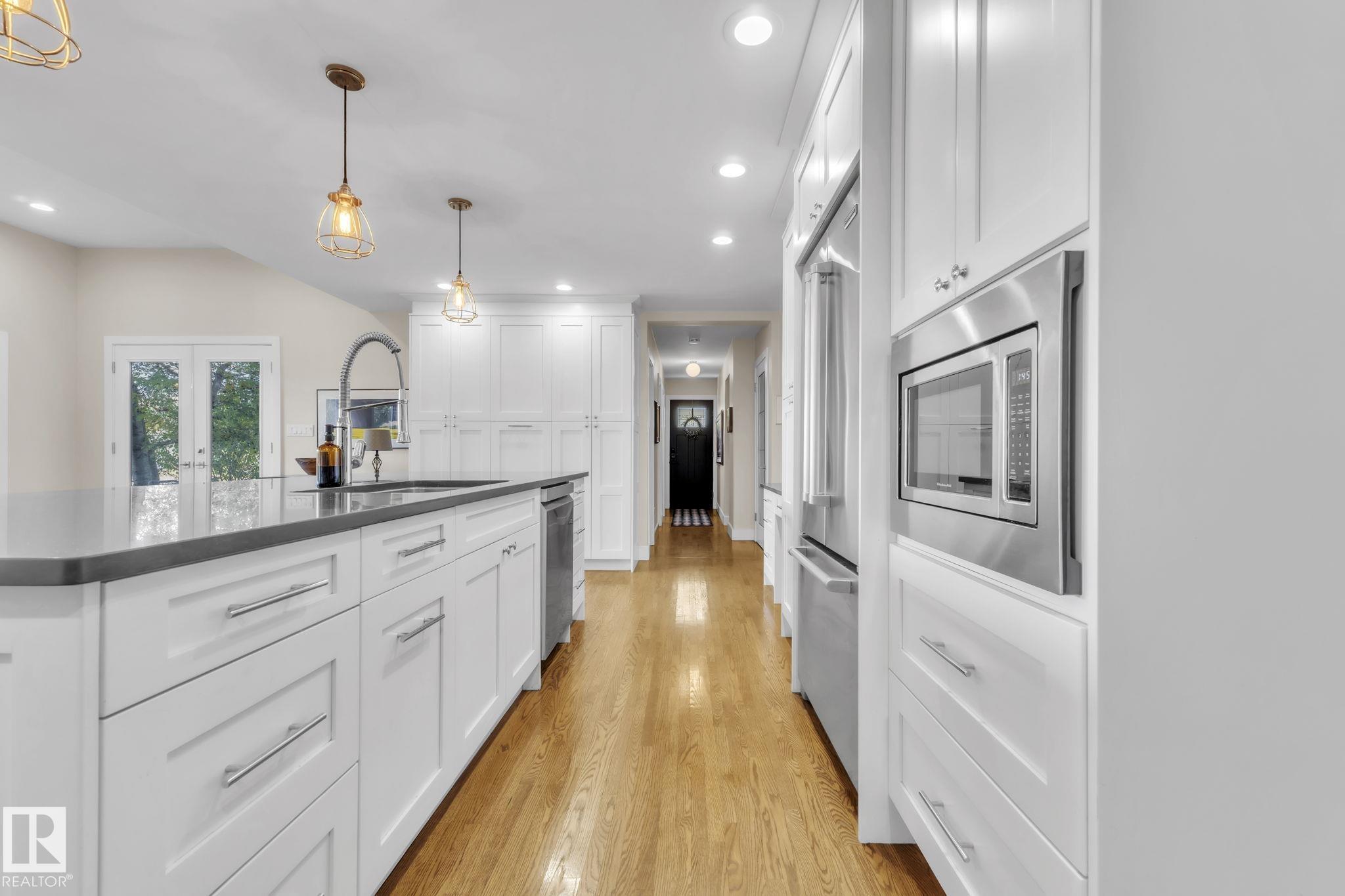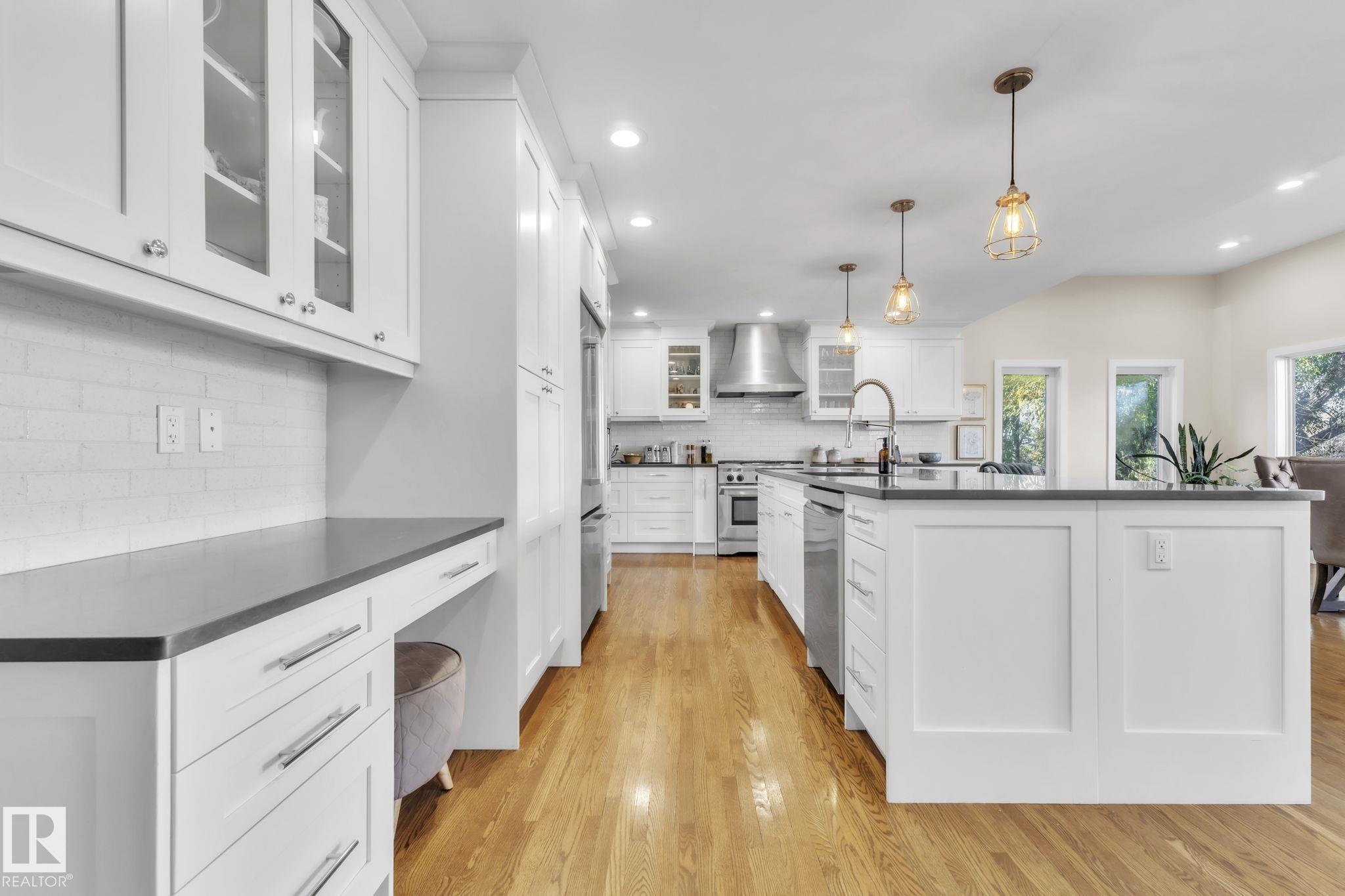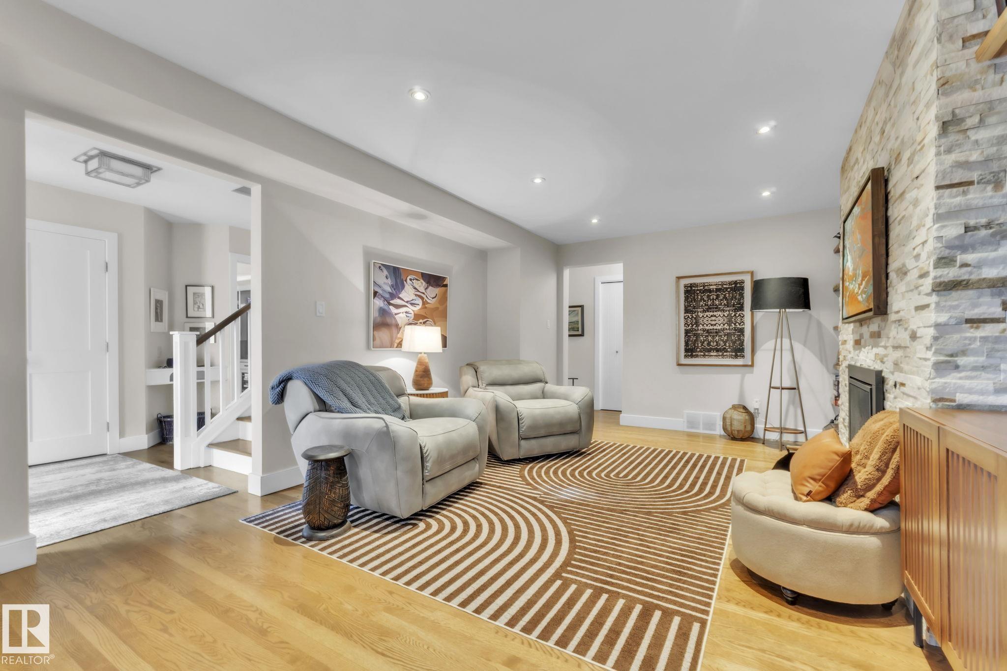 This STUNNING 5-bedroom home offers luxurious living with an unbeatable setting backing directly onto the 15th tee box!. The main floor features gleaming hardwood - bright and spacious family room AND living room, custom-designed chef inspired kitchen with massive quartz island and a wall of windows capturing gorgeous golf course views. The open dining area flows seamlessly to the expansive deck? perfect for outdoor entertaining and relaxation. Upstairs you'll find three generous bedrooms plus a massive primary bedroom complete with a spa-inspired 5 piece ensuite and a private dressing area. The fully finished basement provides additional living space for family and guests alike. No need for major upgrades - the work's been done including the roof, windows, kitchen ? all adding to the home?s exceptional quality. Located on one of the most sought-after streets in Sherwood Park "Beauvista Drive", this property combines timeless elegance, modern updates, and an unbeatable golf course lifestyle.