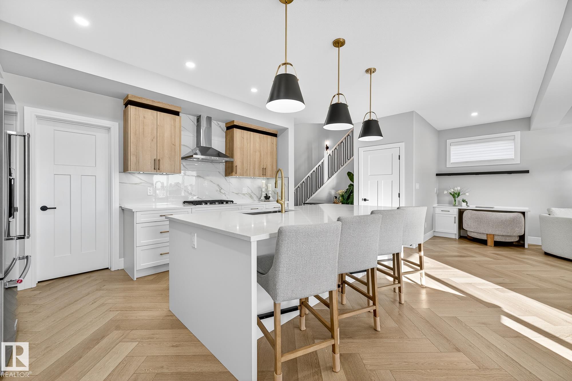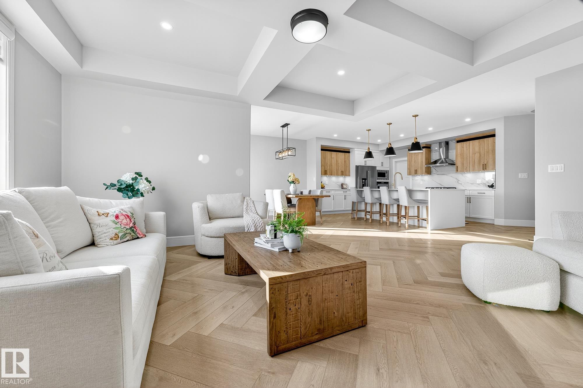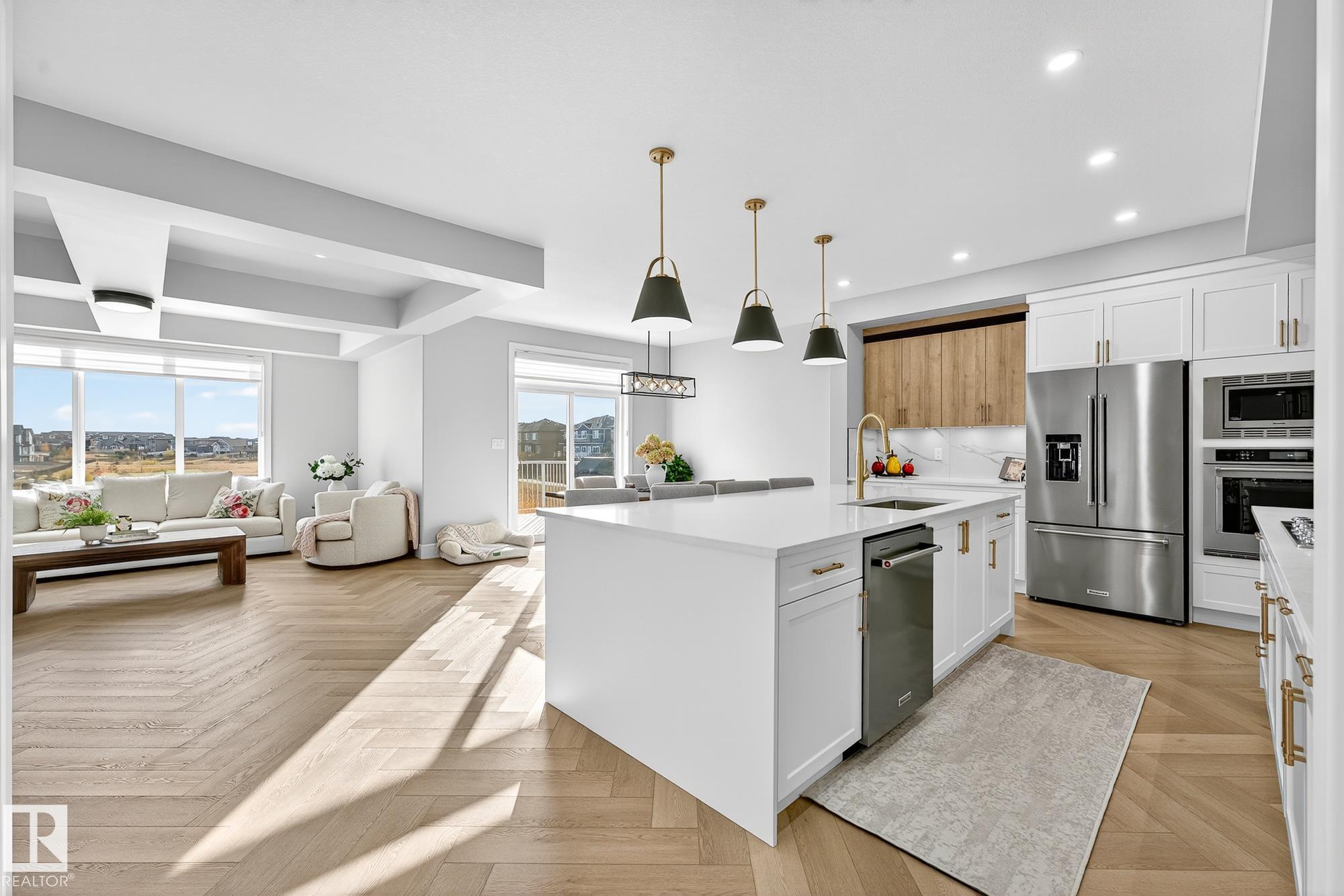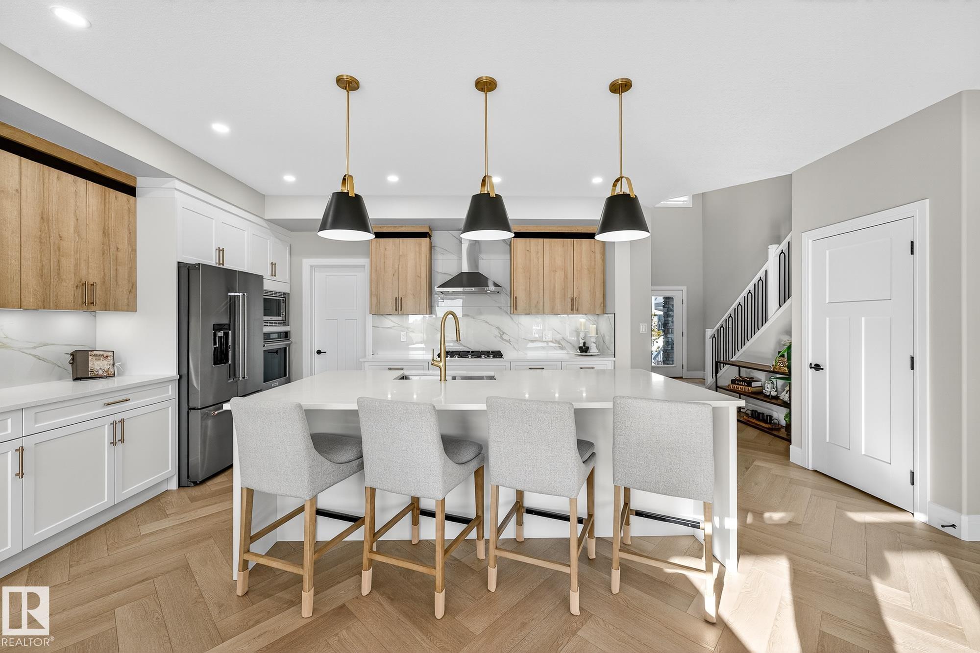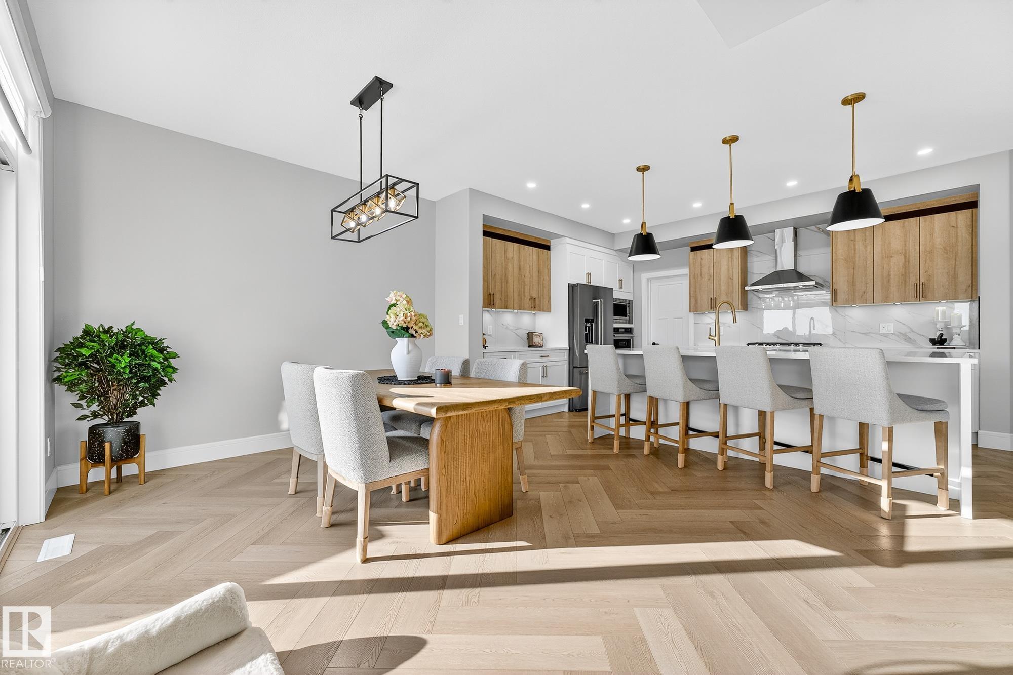 Every detail of this Erin Ridge North lake home feels intentional?crafted for those who love light, flow, and effortless elegance. From the sunlit herringbone floors to the designer kitchen with quartz surfaces and a walk-through pantry, every space invites you to linger and connect. The living room glows with warmth from a sleek fireplace and expansive windows framing tranquil water views. Upstairs, the primary suite feels like a private spa with a soaker tub, glass shower, and generous closet, while two additional bedrooms and a luminous bonus room add comfort for family or guests. The walkout basement extends your lifestyle with a wet bar, rec area, and access to the covered patio, where peaceful lake views set the tone for quiet mornings or sunset gatherings. With low-maintenance landscaping, a deck off the dining area, and a seamless blend of modern design and timeless warmth, this home also features a heated garage?an ideal space for hobbyists, projects, or year-round tinkering.