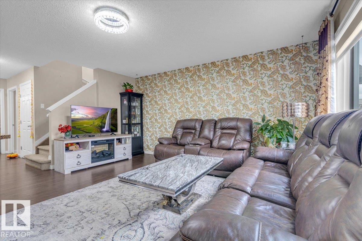 Welcome to this stunning 4 bed, 3.5 bath PLUS den half duplex in CHARLESWORTH, offering over 2400 sq. ft. of living space and a 22x19 double attached garage, just steps from scenic ponds and walking trails! This home features a fully finished basement with rough-ins for a second kitchen, modern light fixtures, and custom built-in closet shelving throughout. The basement includes a spacious rec area, bedroom, and 3pc bath. The open-concept main floor boasts a granite island with seating, 5 stainless steel appliances, corner pantry, and a dining area overlooking the fully fenced backyard with deck, gas BBQ hookup, and built-in shed under the deck. A private front den/office, large entryway, main floor laundry, and powder room add convenience. Upstairs features a generous primary suite with walk-in closet and ensuite, plus two additional bedrooms, each with their own walk-in closet. Located within walking distance to K?9 schools, minutes from shopping, parks, and transit, with quick access to Anthony Henday.