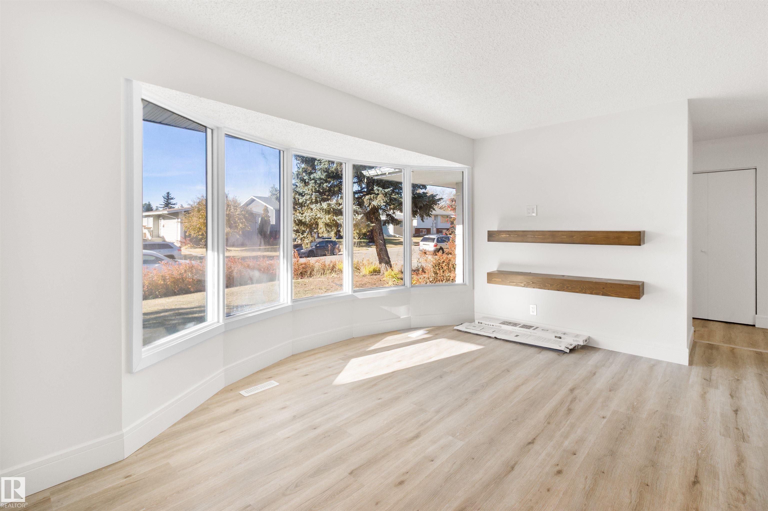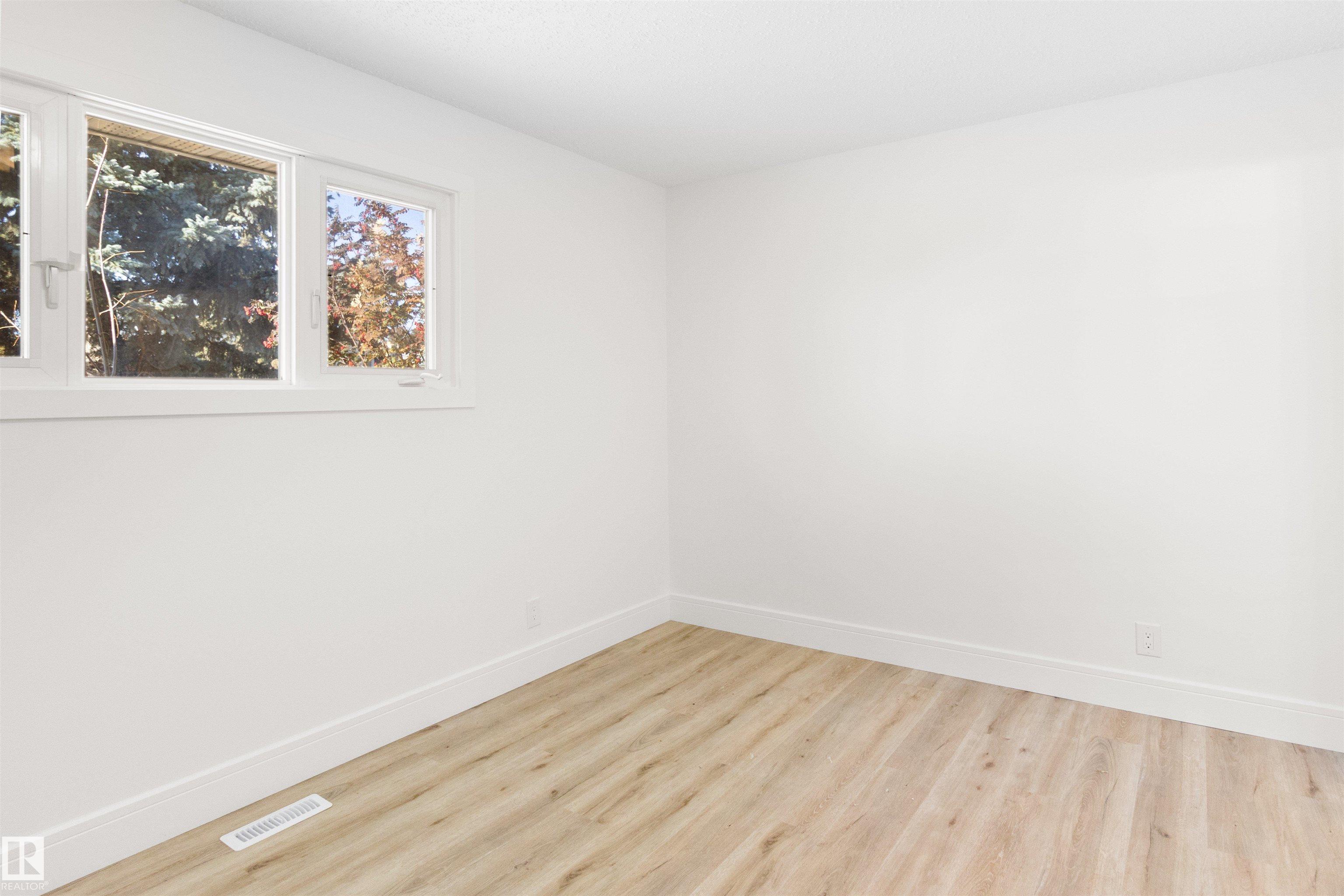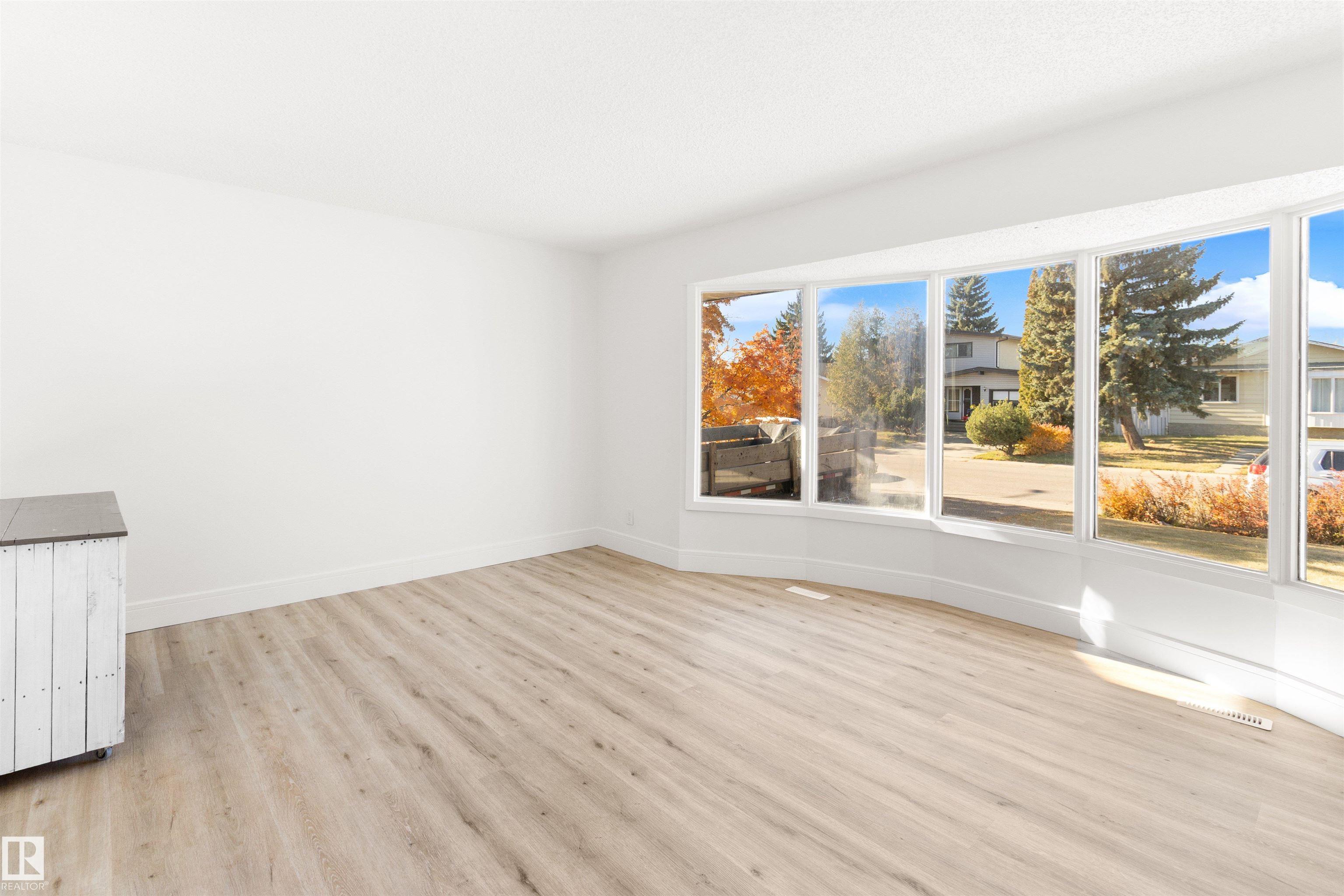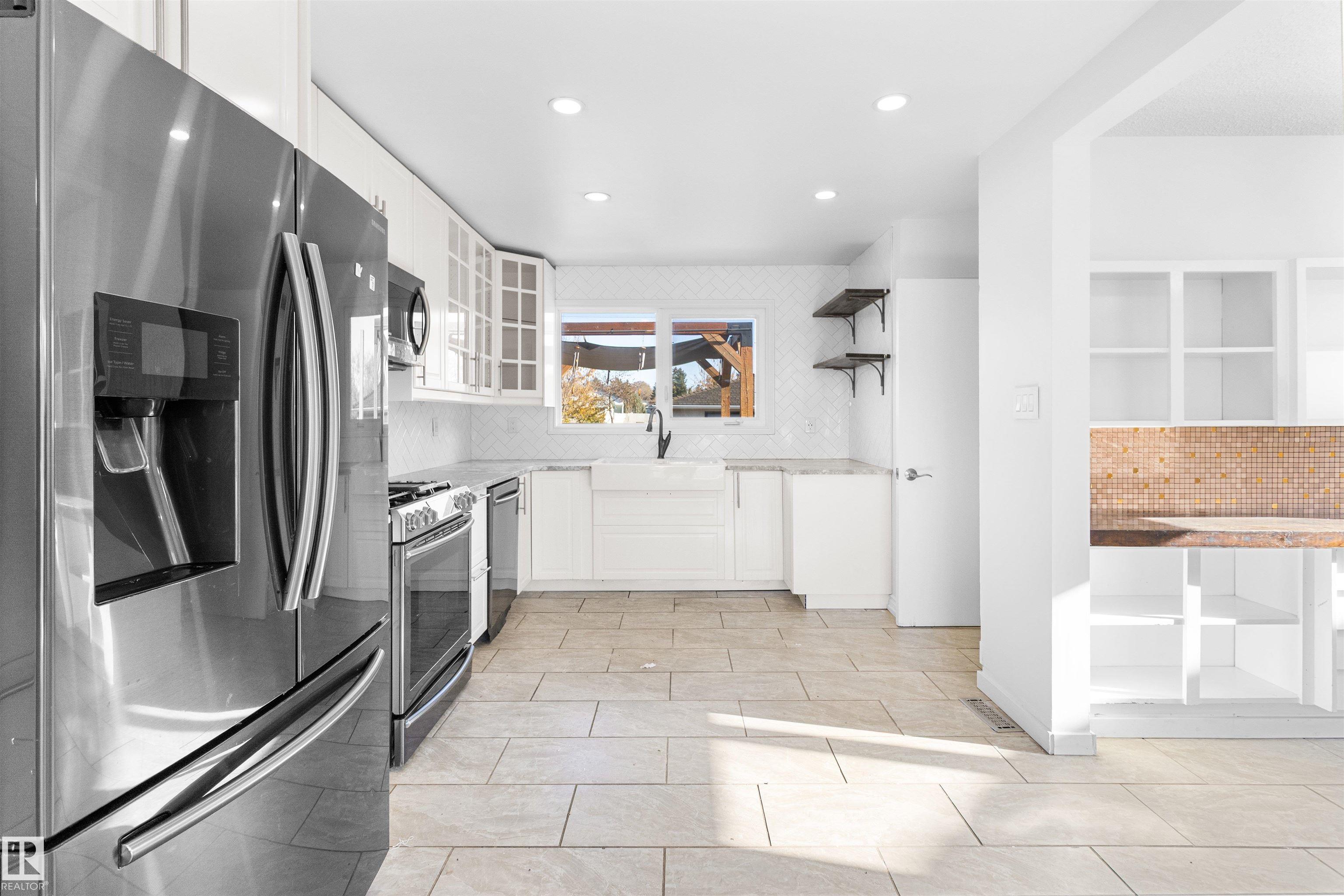 Welcome to this beautifully updated 1,200 sq. ft. open-concept bungalow, ideally situated in quiet cresent near transit, the Henday, and shopping. Step inside to discover a bright, modern main floor featuring new flooring, fresh paint, and three spacious bedrooms. The updated kitchen is perfect for entertaining, with generous counter space and storage for all your culinary needs. New patio doors lead to a massive backyard and large custom deck ? an inviting space for summer BBQs and outdoor fun. The double detached garage includes a durable Euroshield roof, adding long-term value and peace of mind. The fully finished basement, with its own entrance, offers exceptional flexibility ? complete with a second kitchen, laundry, two bedrooms, and a full bath, making it perfect for guests or extended family. Additional highlights include a 2020 furnace and a tankless water heater, combining comfort, efficiency, and style in one move-in-ready home.