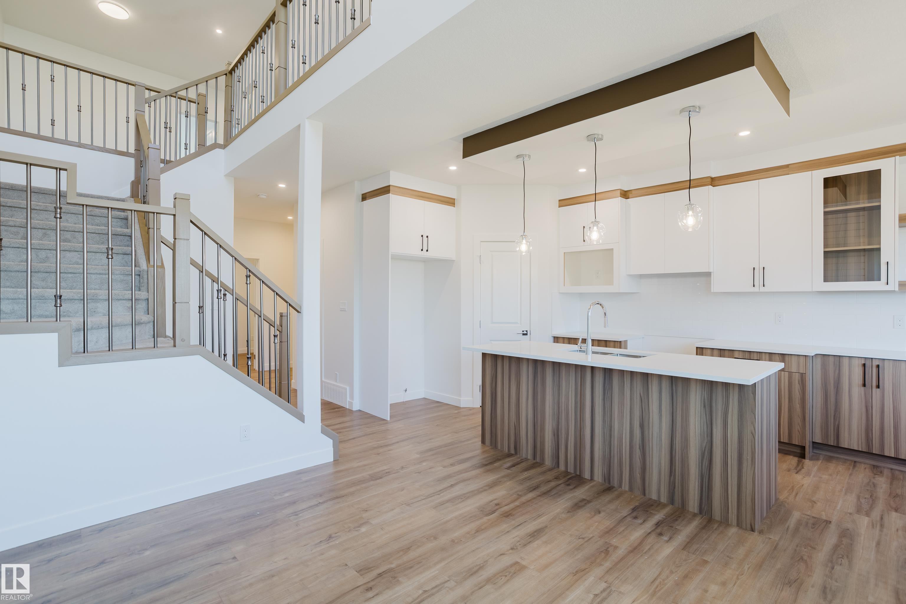 Welcome to this half duplex in the desirable Meadowview community of Leduc. The main floor offers a spacious layout with vinyl flooring, an extended kitchen with ample cabinetry and counter space, a versatile den, and a full bathroom with standing shower. The open to above living room provides abundant natural light and a sense of space. Upstairs you will find three bedrooms including a primary suite with a five piece ensuite, as well as a bonus room. The basement is unfinished and ready for your personal design. Located close to schools, shopping, and parks, this home offers functionality and convenience while being peacefully set away from the busyness of the city.