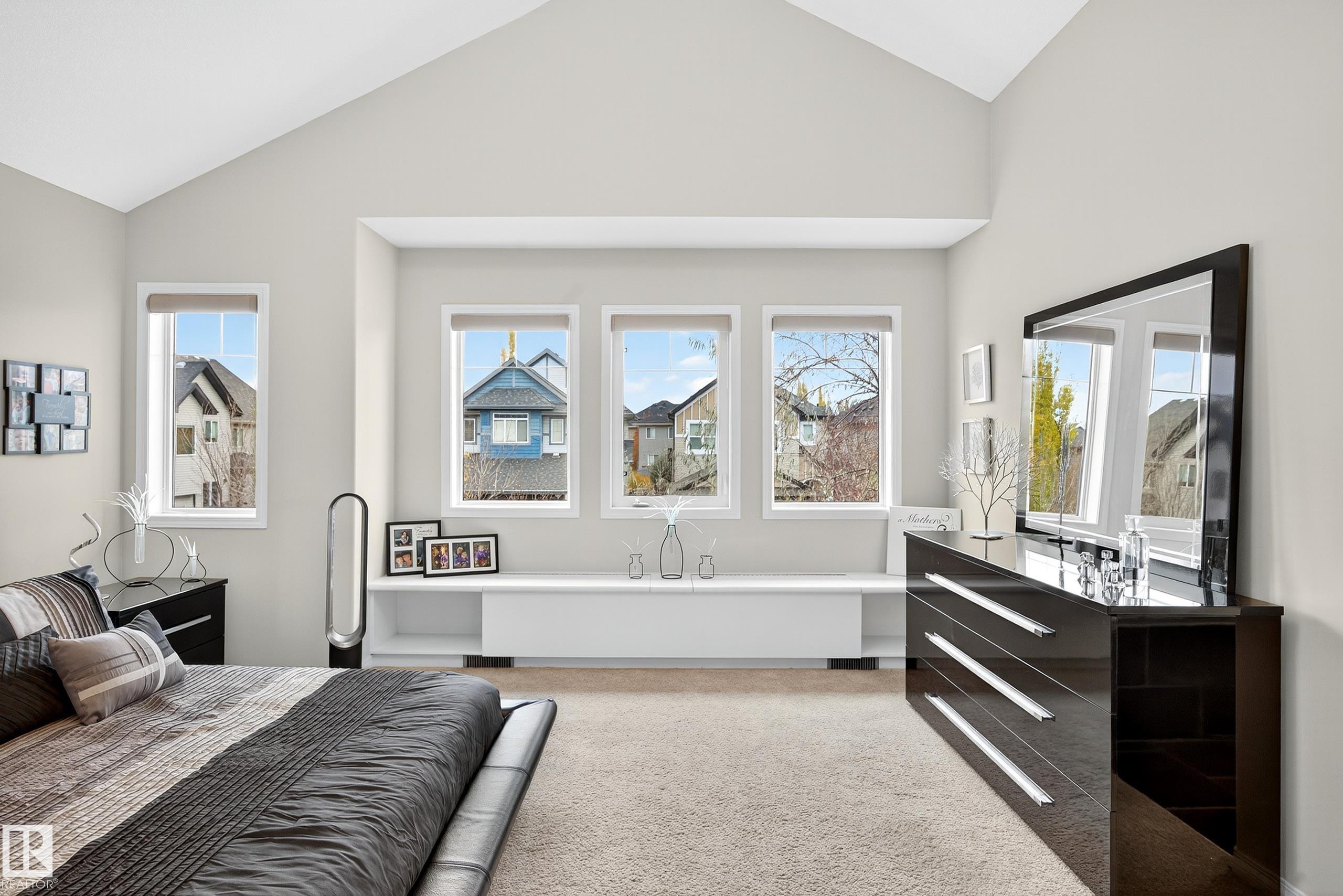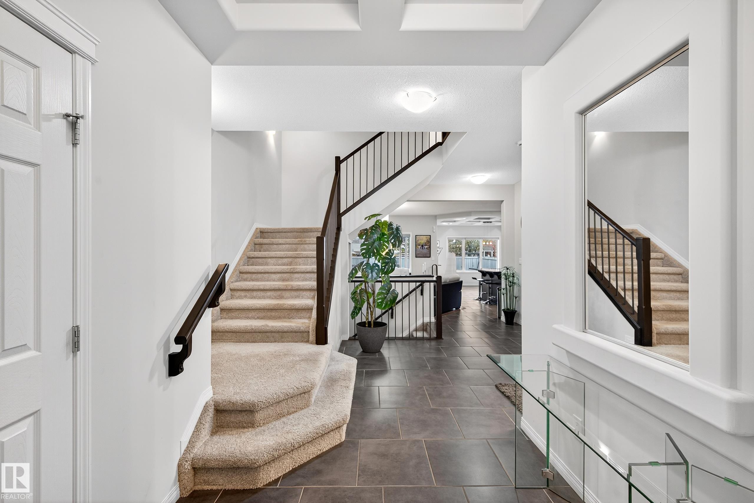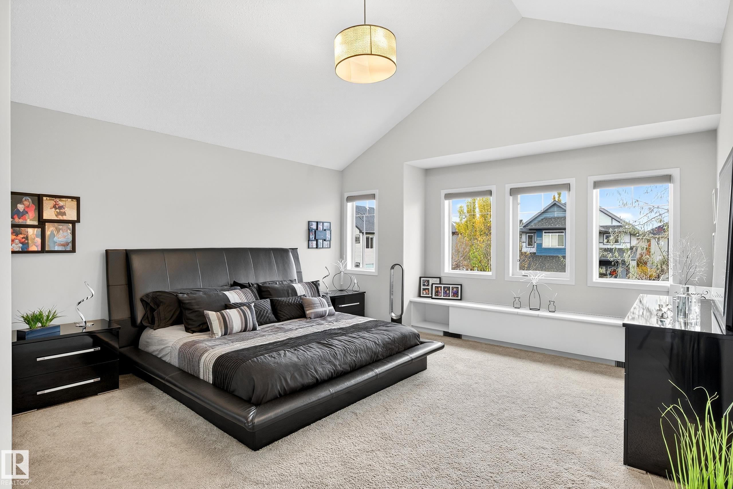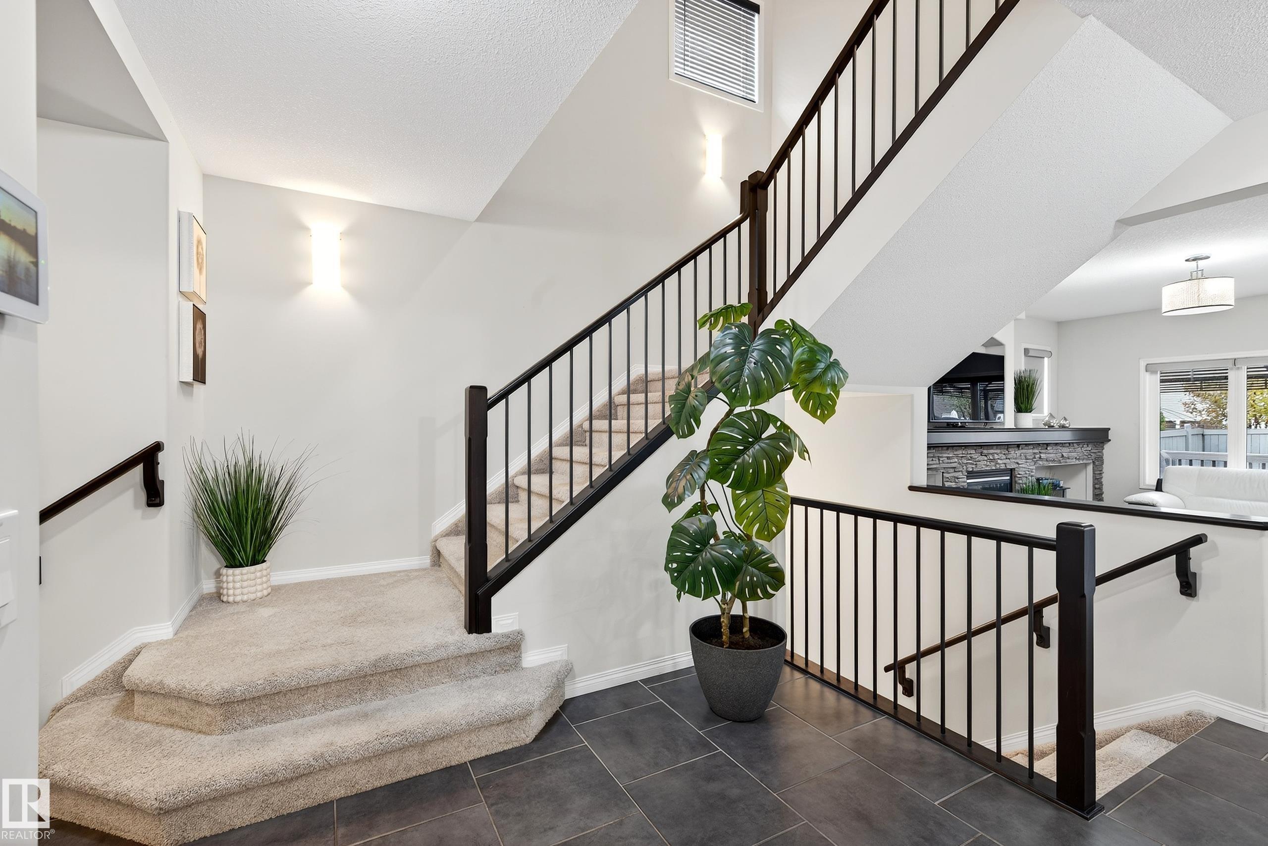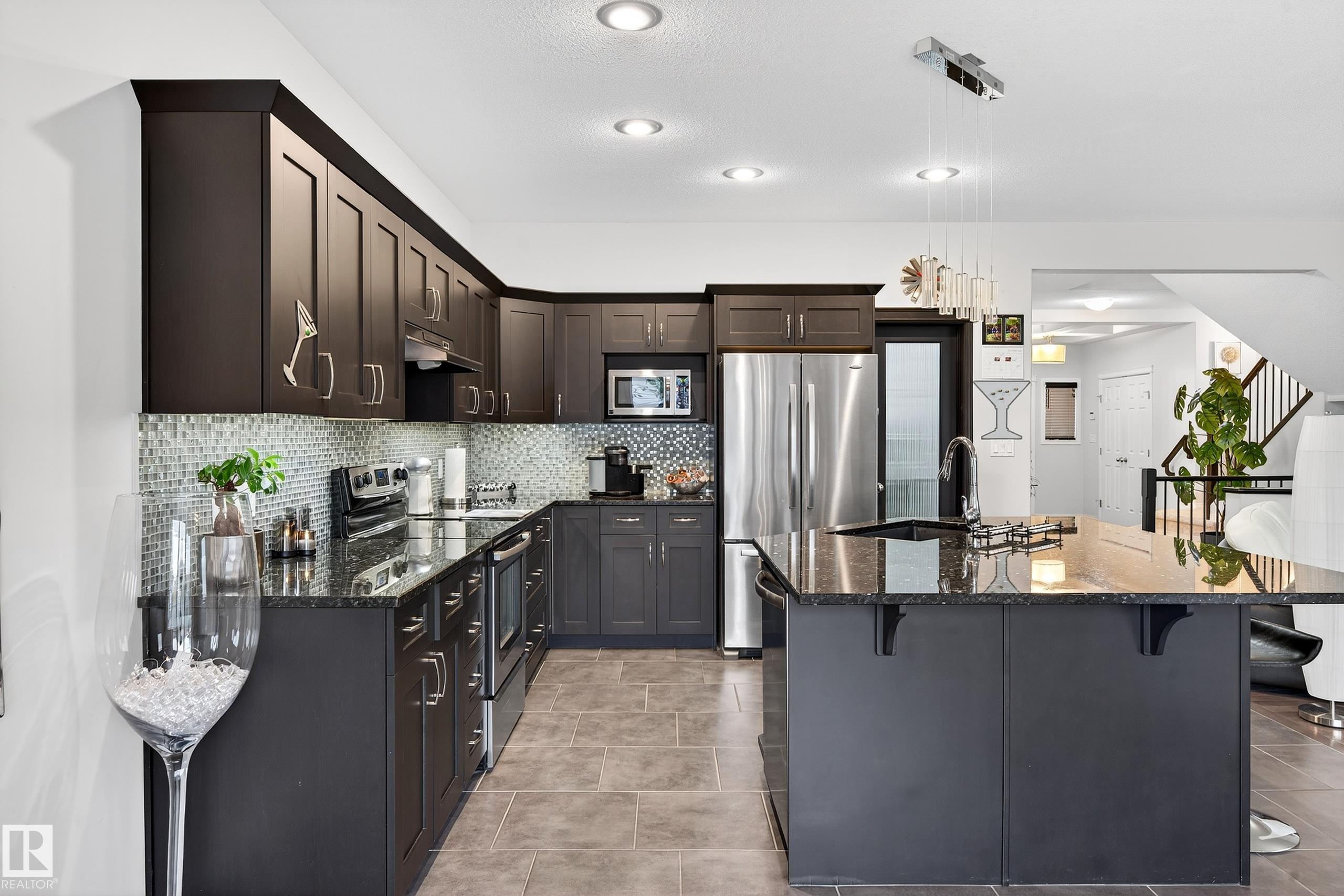 Welcome to a masterpiece of custom-built luxury in prestigious Trumpeter! This stunning 2-storey home offers an unparalleled blend of elegance, comfort, and nature-inspired living in Edmonton's coveted Big Lake area. Spanning 2,411 square feet, this 3-bedroom, 2.5-bathroom home boasts a beautiful open-concept floor plan with 9-foot ceilings on both the main and upper levels, creating a grand, airy feel throughout. The heart of the home is the chef's dream kitchen, featuring a stylish granite island and countertops, and a walk-through pantry, also including a gas fireplace in the living room. Escape to your private retreat with a huge primary bedroom complete with vaulted ceilings, a spacious walk-in closet, and a lavish ensuite bathroom. Upstairs also features a large bonus room perfect for movie nights or a play area, plus two additional bedrooms that each have a walk-in closet and share a clever Jack & Jill bathroom. The tandem, heated garage has hot & cold water taps, and will easily house 3 vehicles!