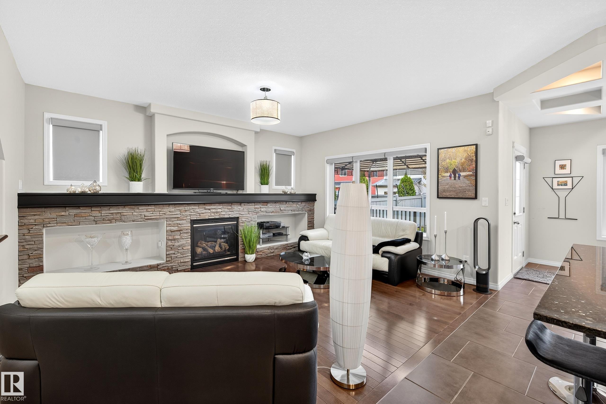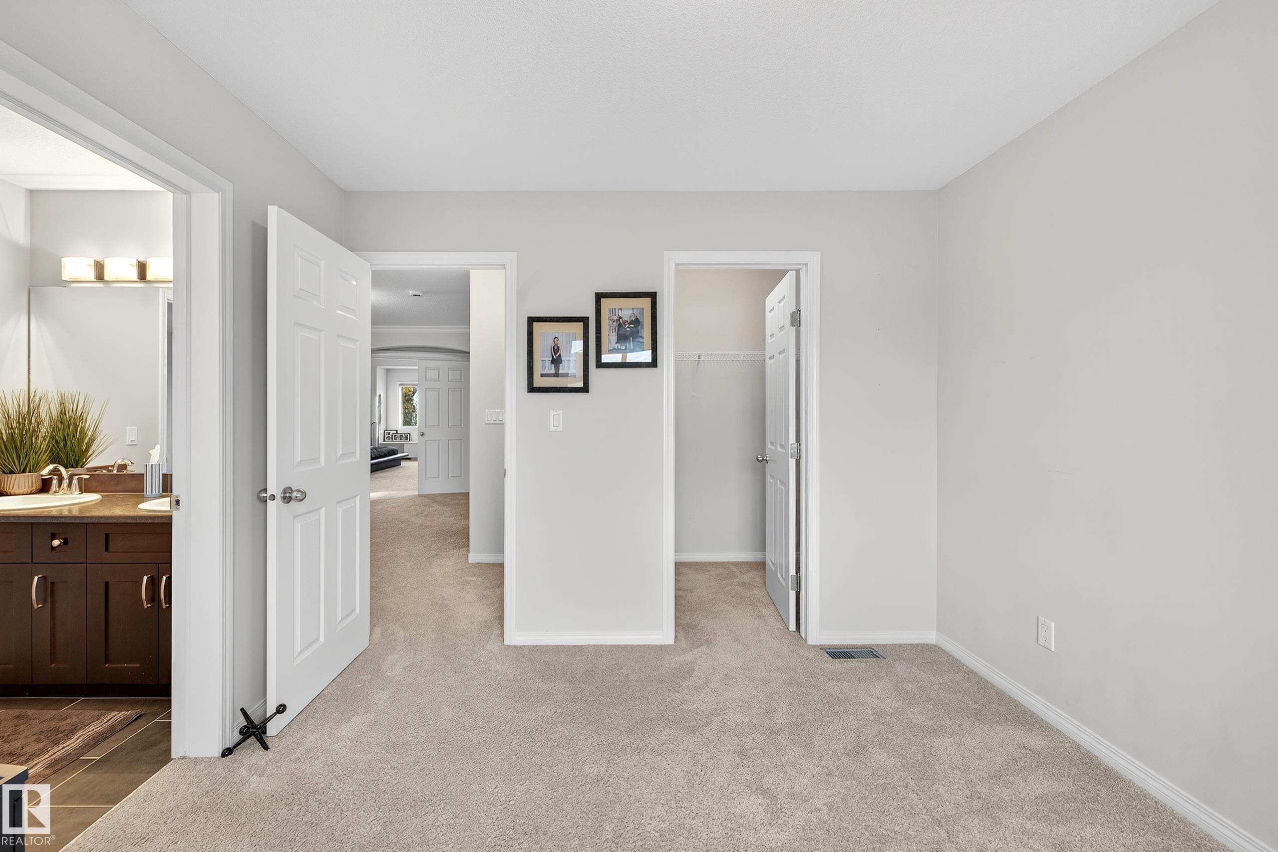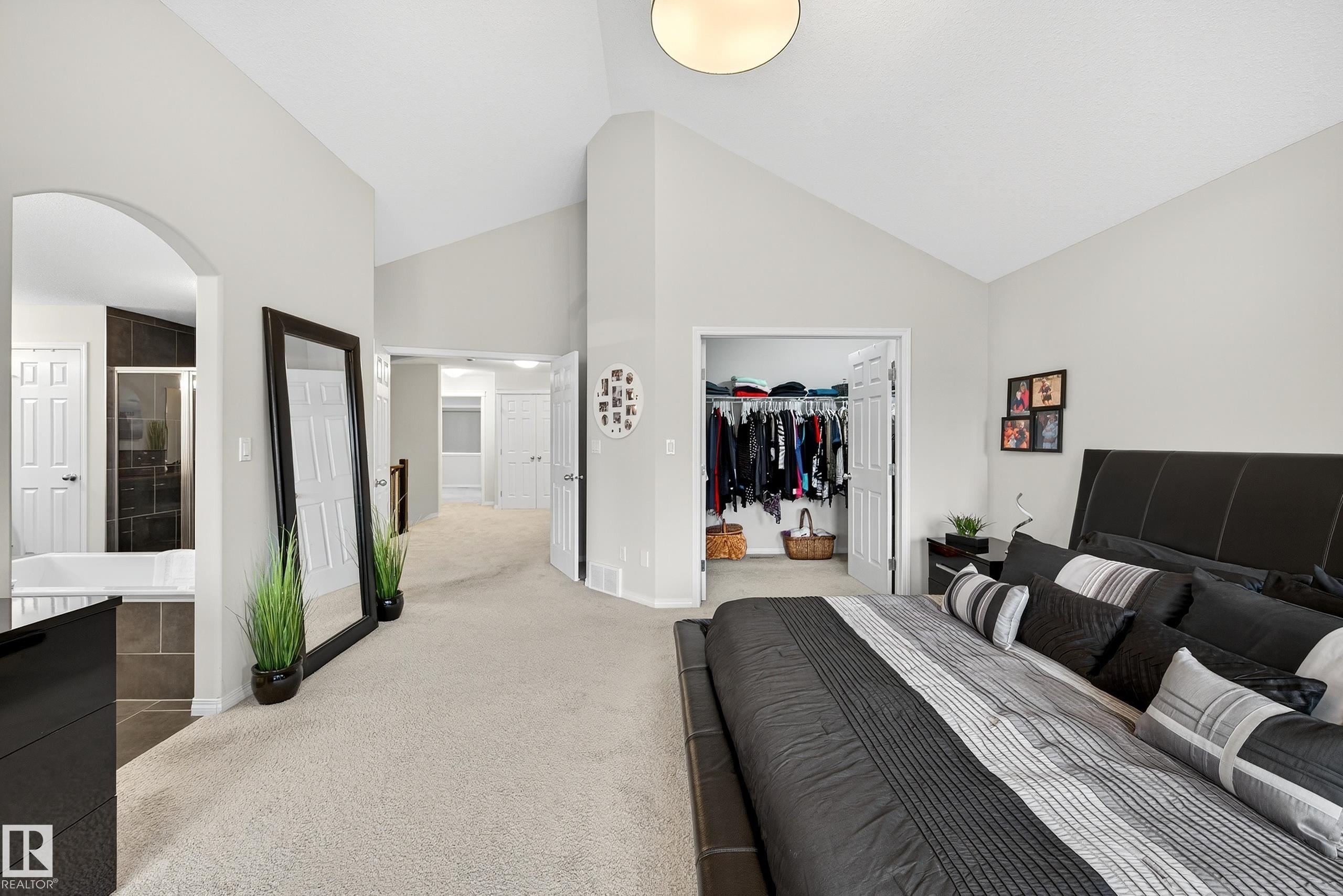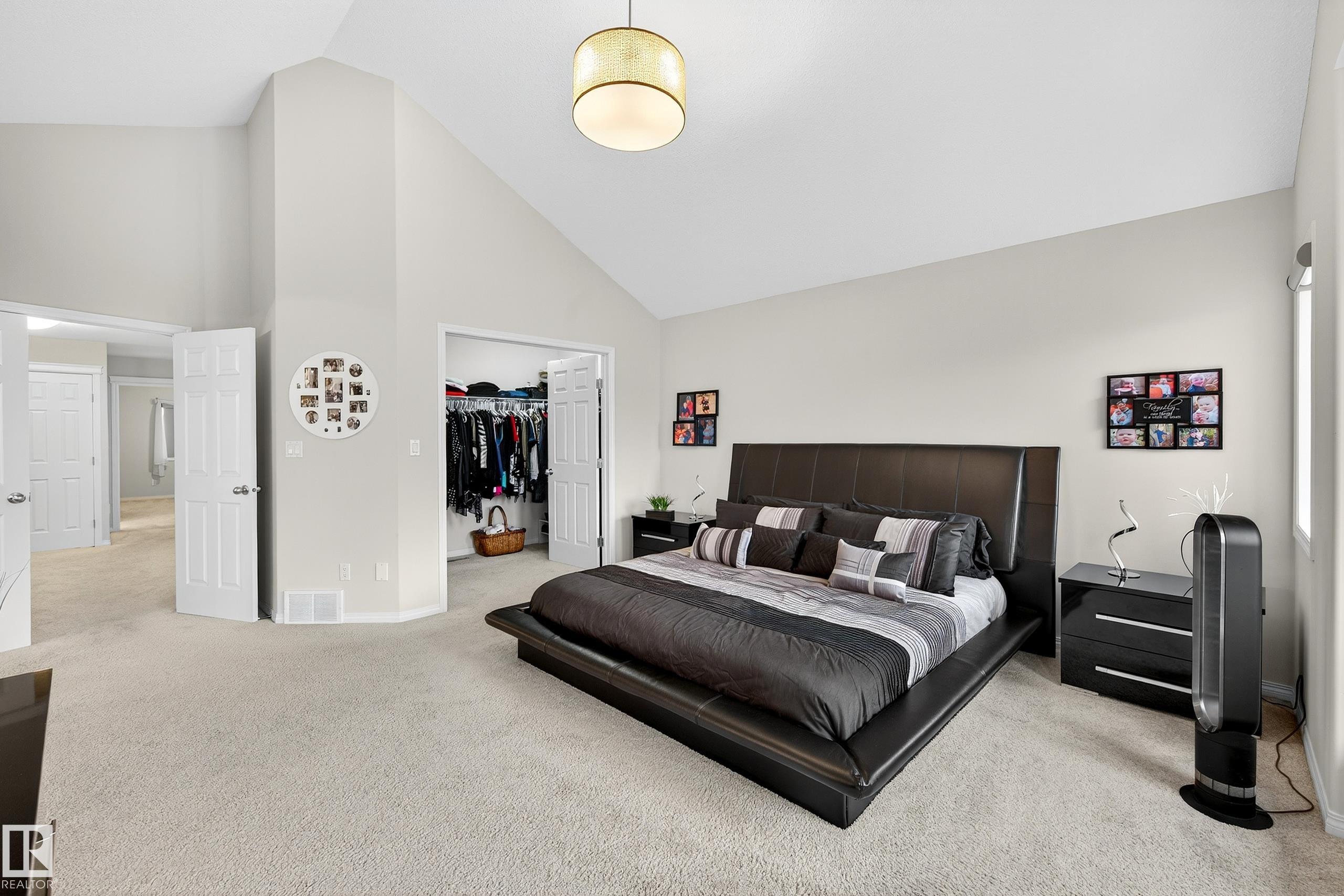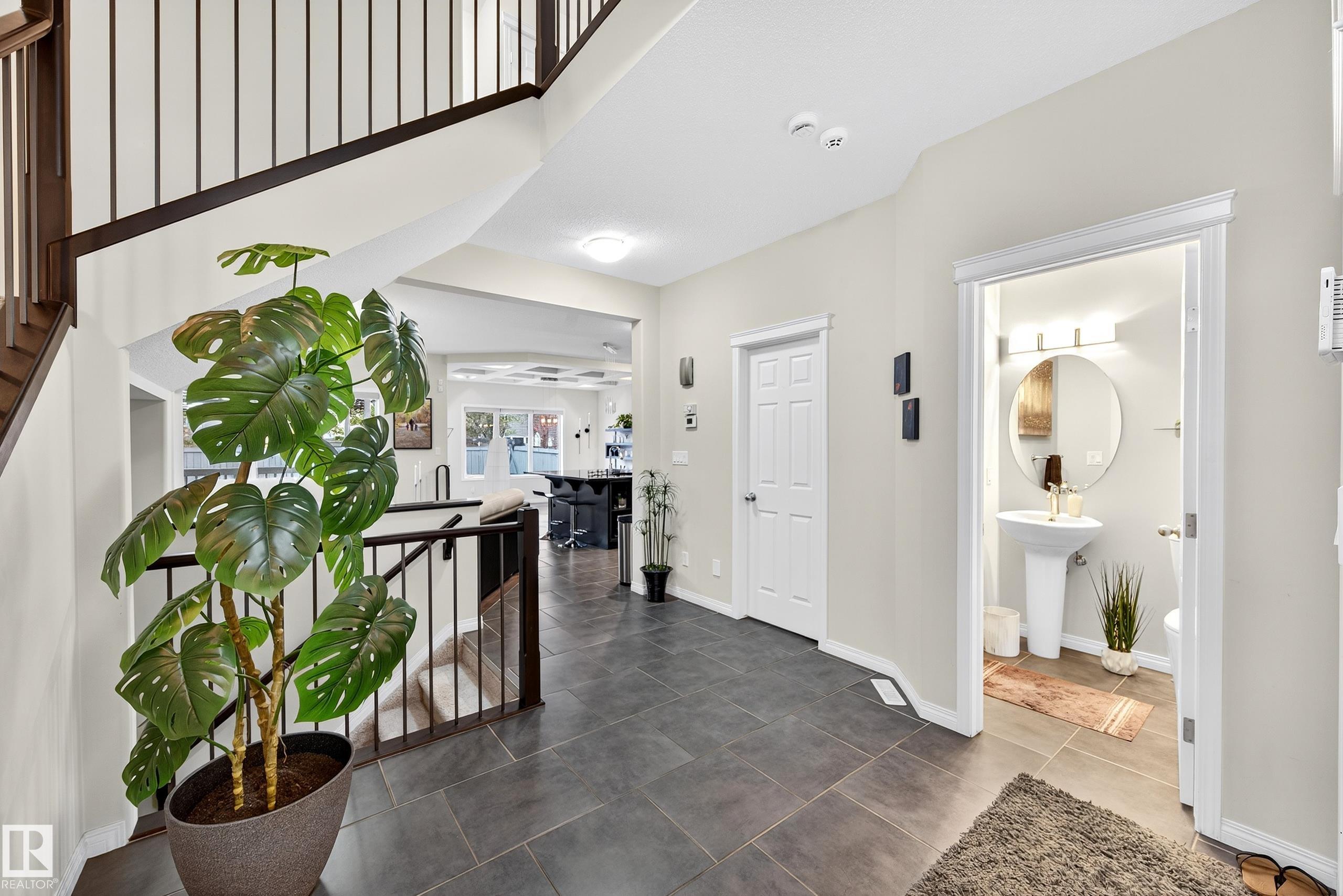Welcome to a masterpiece of custom-built luxury in prestigious Trumpeter! This stunning 2-storey home offers an unparalleled blend of elegance, comfort, and nature-inspired living in Edmonton's coveted Big Lake area. Spanning 2,411 square feet, this 3-bedroom, 2.5-bathroom home boasts a beautiful open-concept floor plan with 9-foot ceilings on both the main and upper levels, creating a grand, airy feel throughout. The heart of the home is the chef's dream kitchen, featuring a stylish granite island and countertops, and a walk-through pantry, also including a gas fireplace in the living room. Escape to your private retreat with a huge primary bedroom complete with vaulted ceilings, a spacious walk-in closet, and a lavish ensuite bathroom. Upstairs also features a large bonus room perfect for movie nights or a play area, plus two additional bedrooms that each have a walk-in closet and share a clever Jack & Jill bathroom. The tandem, heated garage has hot & cold water taps, and will easily house 3 vehicles!