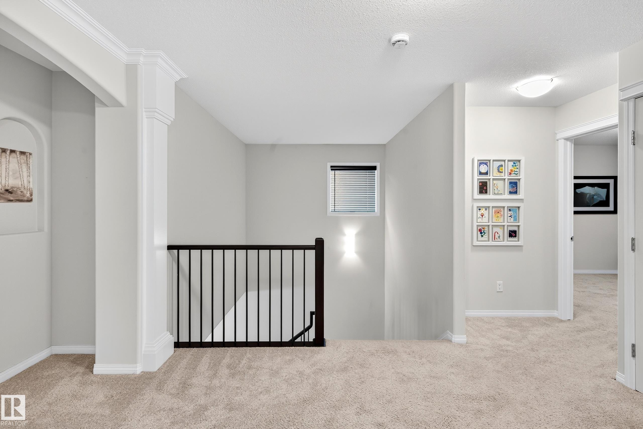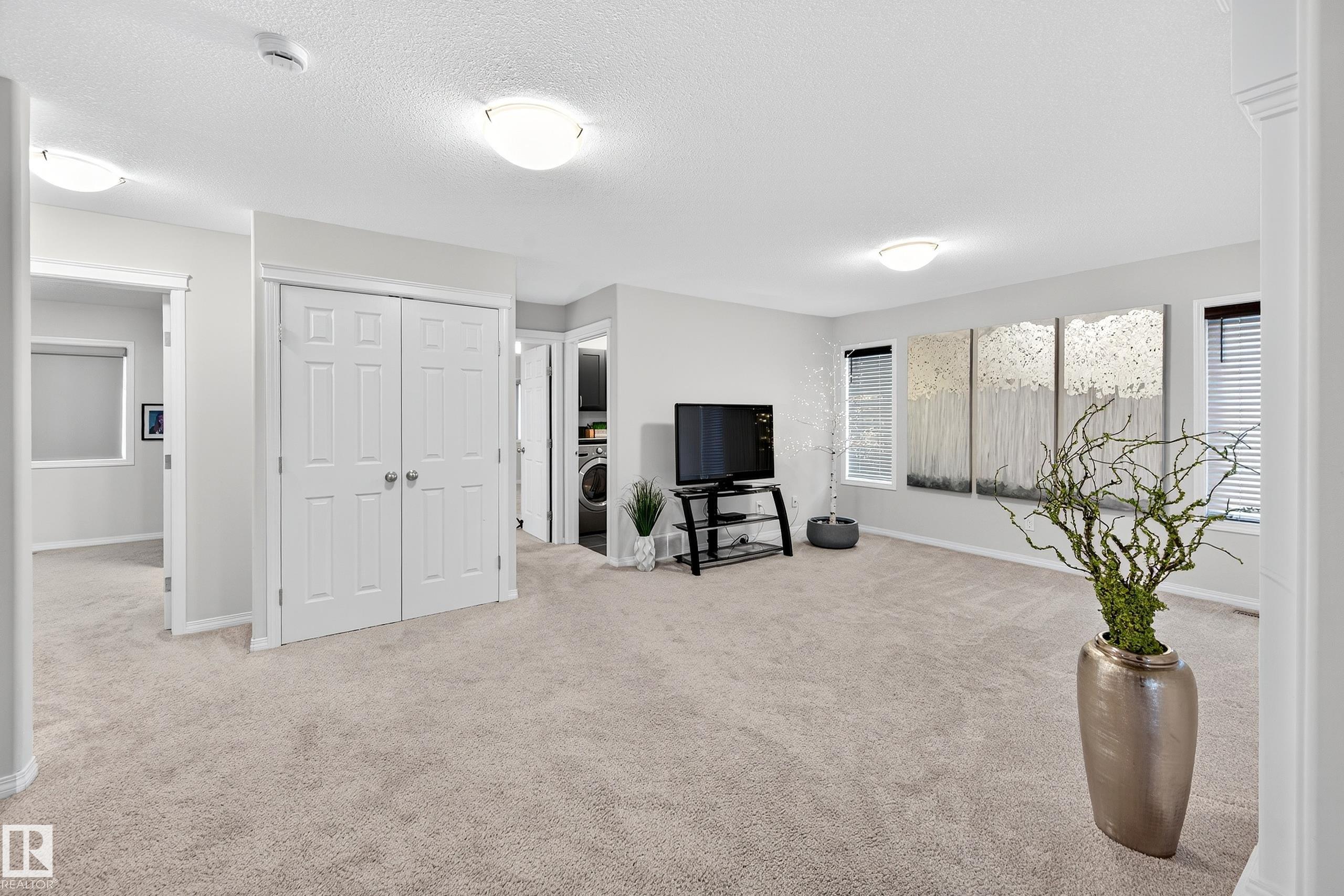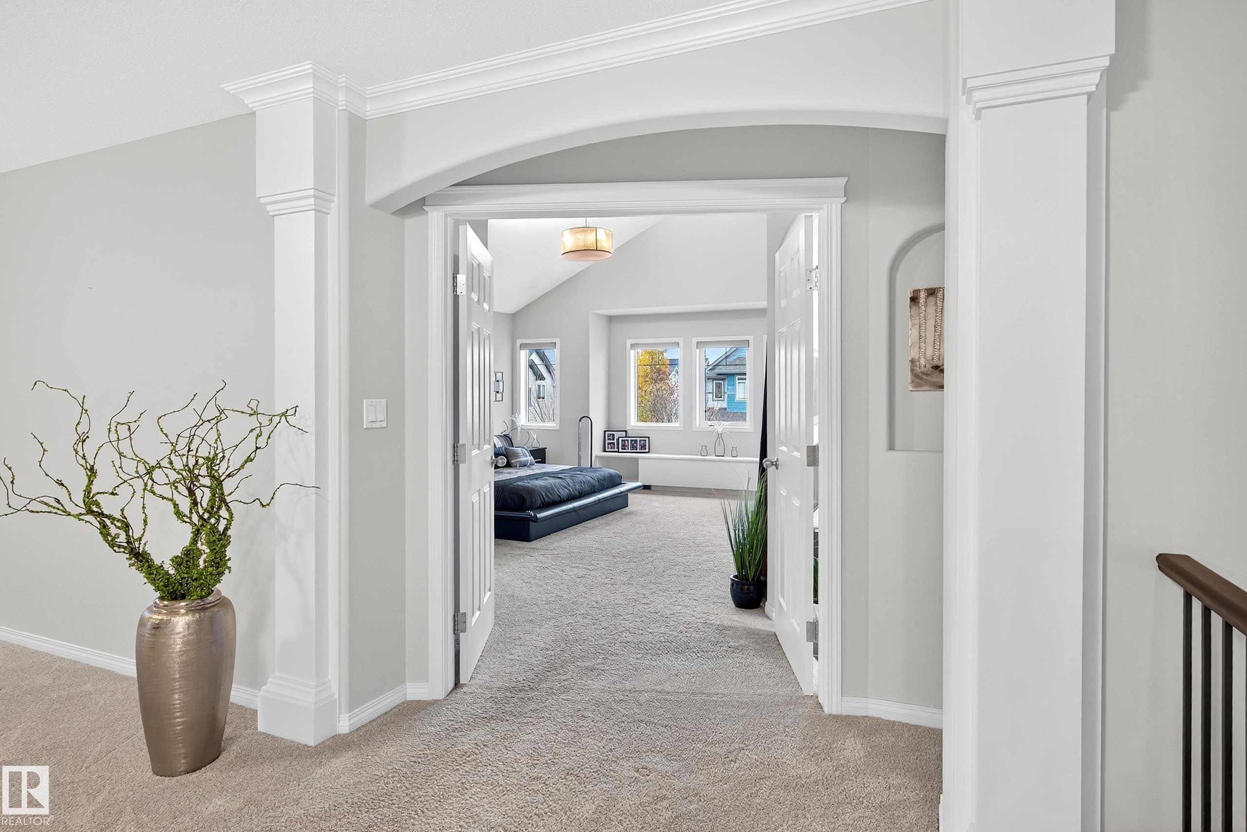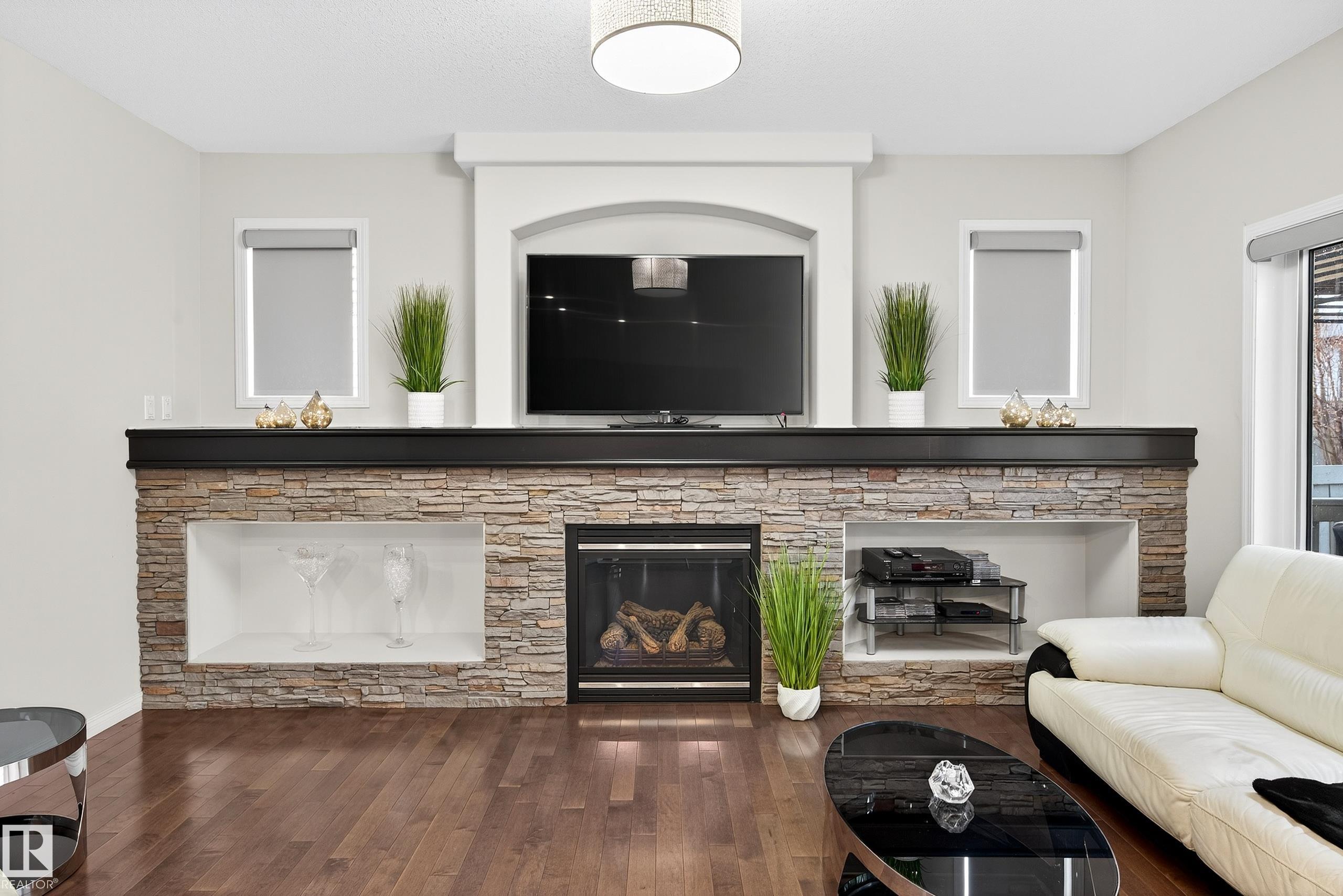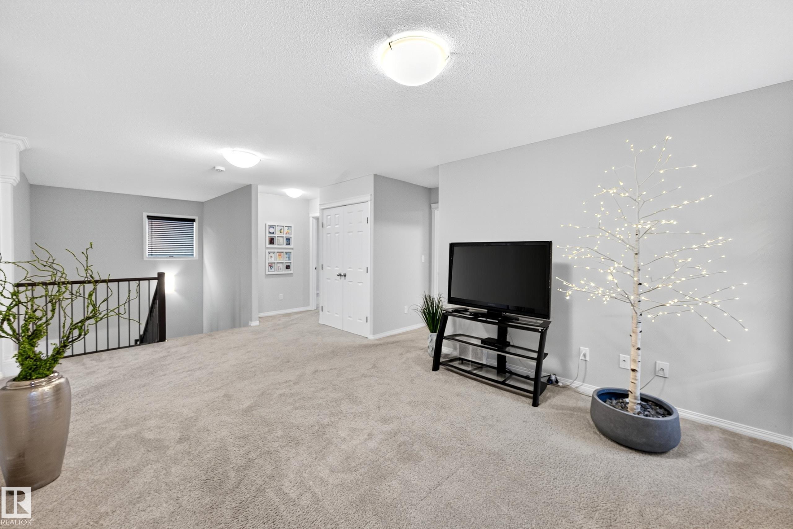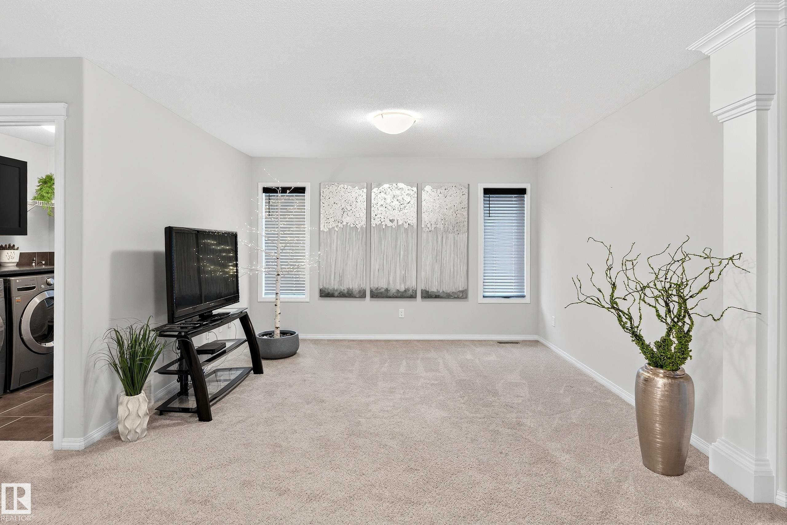 Welcome to a masterpiece of custom-built luxury in prestigious Trumpeter! This stunning 2-storey home offers an unparalleled blend of elegance, comfort, and nature-inspired living in Edmonton's coveted Big Lake area. Spanning 2,411 square feet, this 3-bedroom, 2.5-bathroom home boasts a beautiful open-concept floor plan with 9-foot ceilings on both the main and upper levels, creating a grand, airy feel throughout. The heart of the home is the chef's dream kitchen, featuring a stylish granite island and countertops, and a walk-through pantry, also including a gas fireplace in the living room. Escape to your private retreat with a huge primary bedroom complete with vaulted ceilings, a spacious walk-in closet, and a lavish ensuite bathroom. Upstairs also features a large bonus room perfect for movie nights or a play area, plus two additional bedrooms that each have a walk-in closet and share a clever Jack & Jill bathroom. The tandem, heated garage has hot & cold water taps, and will easily house 3 vehicles!