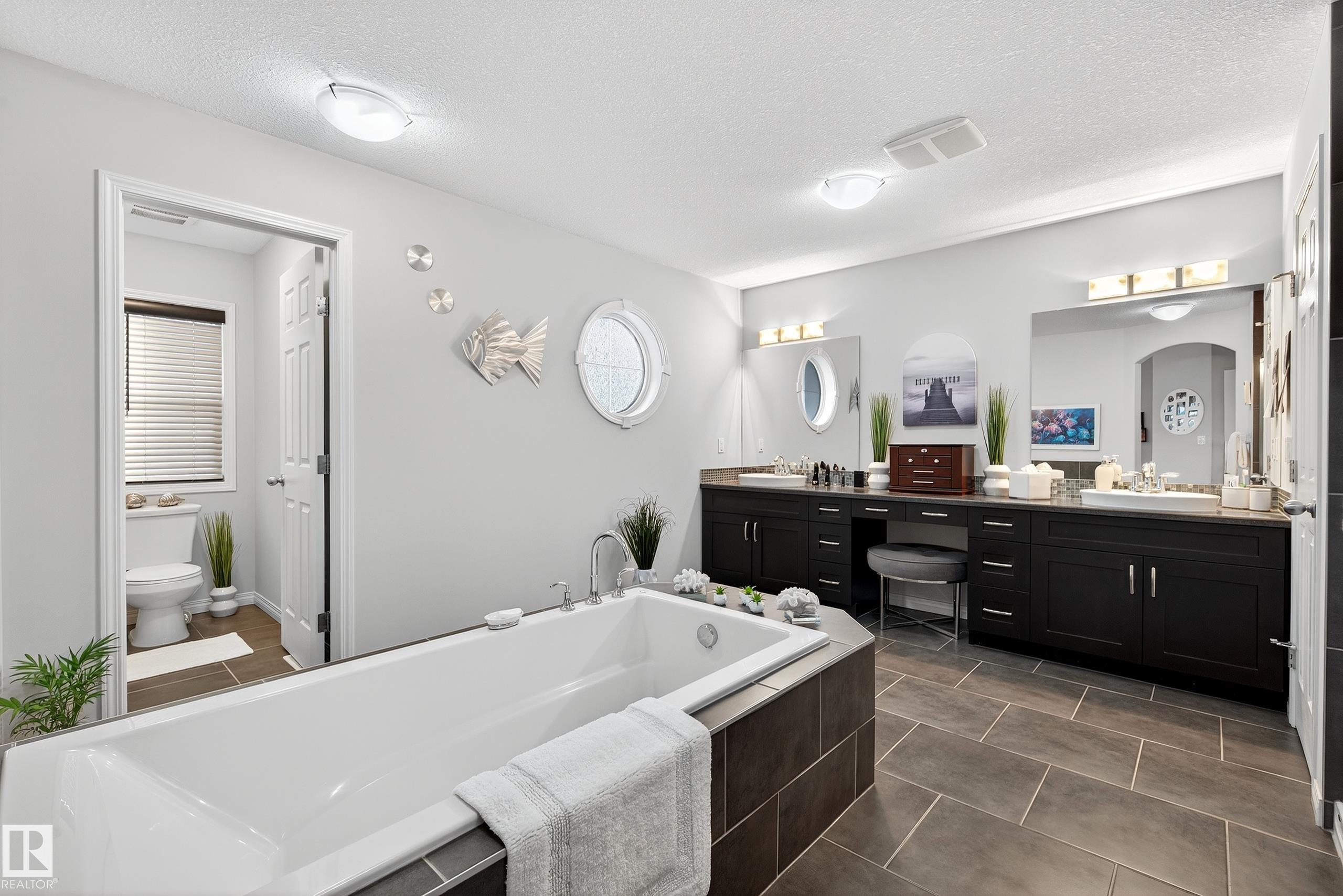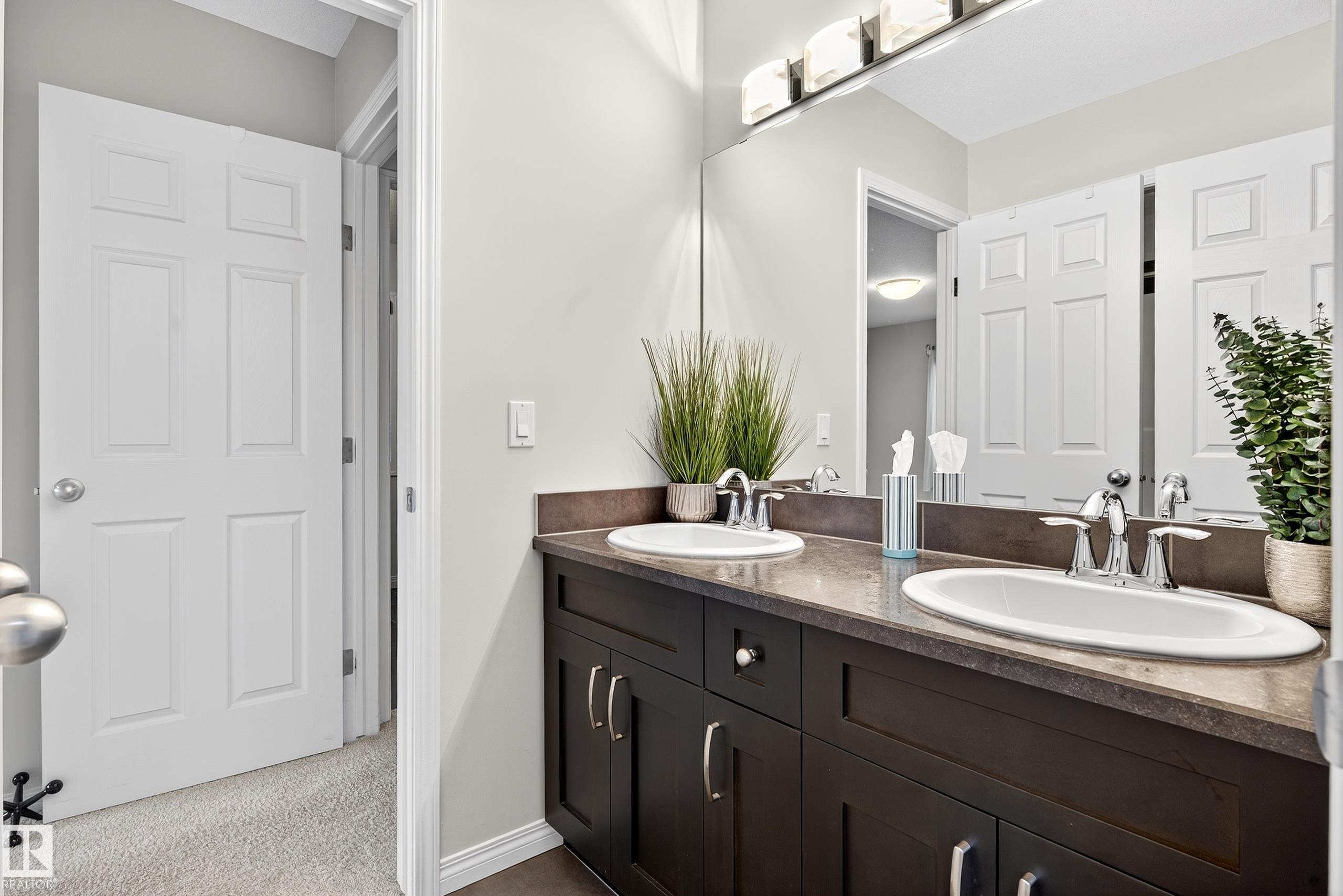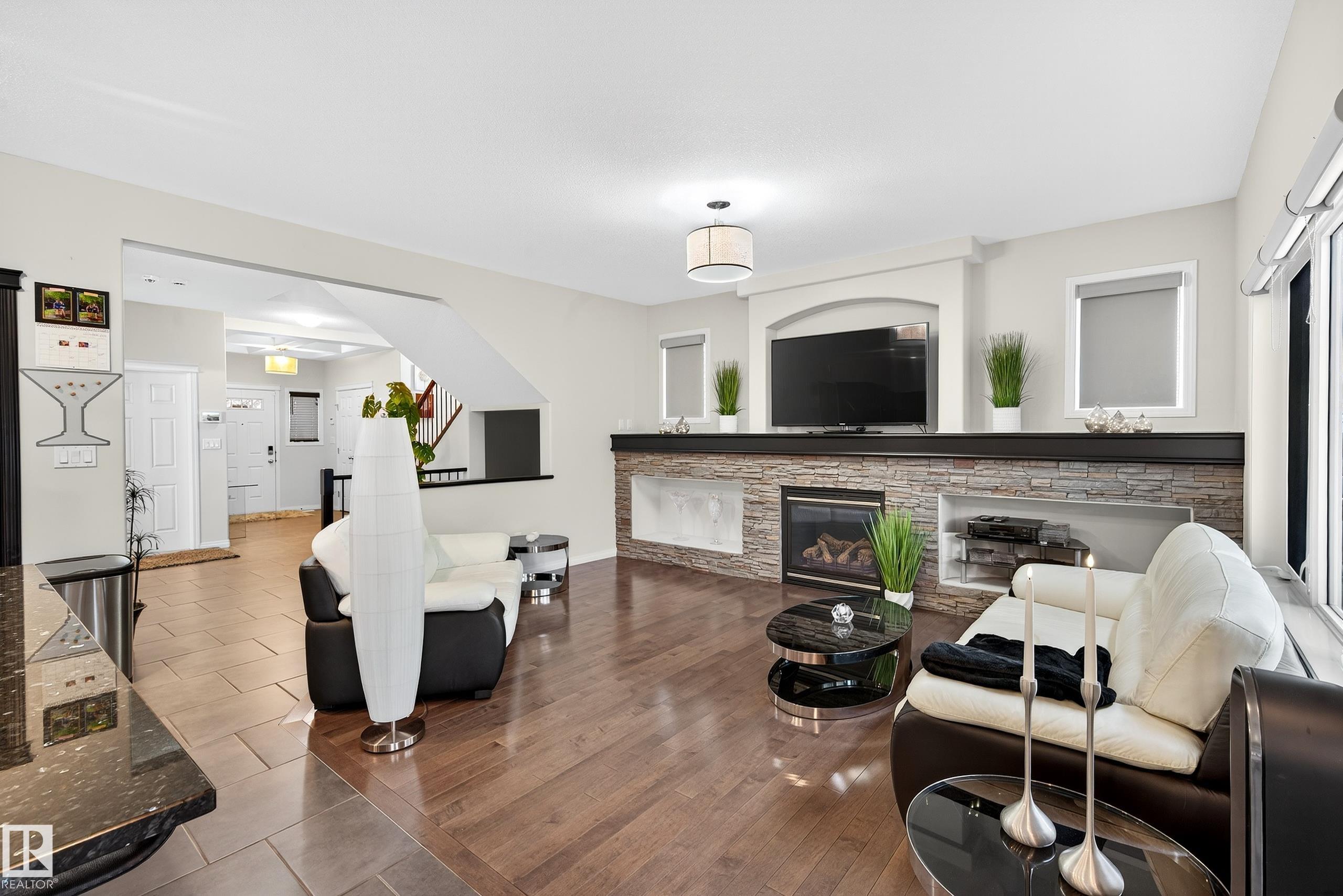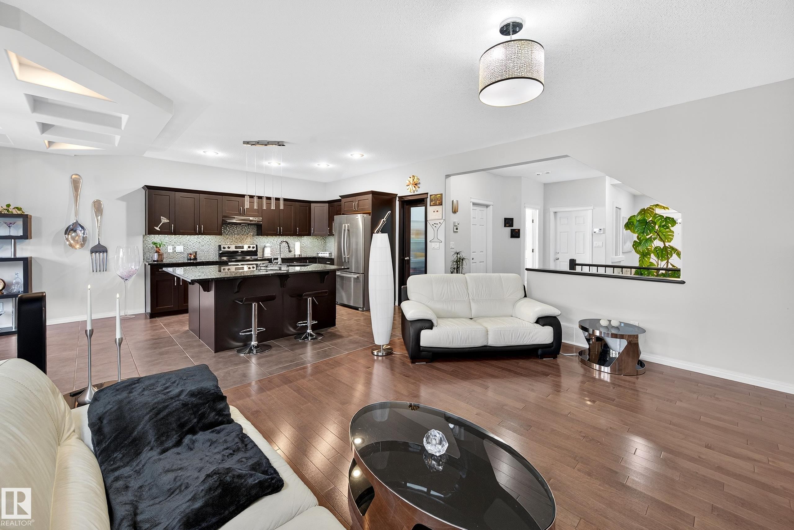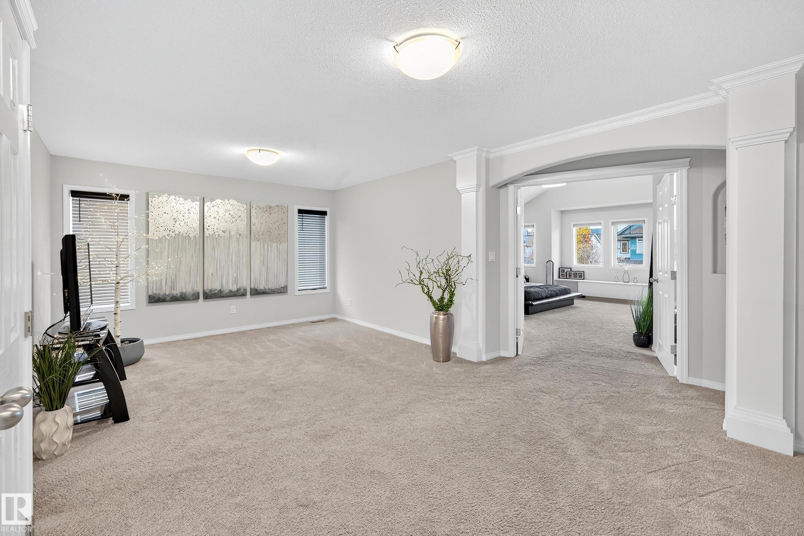 Welcome to a masterpiece of custom-built luxury in prestigious Trumpeter! This stunning 2-storey home offers an unparalleled blend of elegance, comfort, and nature-inspired living in Edmonton's coveted Big Lake area. Spanning 2,411 square feet, this 3-bedroom, 2.5-bathroom home boasts a beautiful open-concept floor plan with 9-foot ceilings on both the main and upper levels, creating a grand, airy feel throughout. The heart of the home is the chef's dream kitchen, featuring a stylish granite island and countertops, and a walk-through pantry, also including a gas fireplace in the living room. Escape to your private retreat with a huge primary bedroom complete with vaulted ceilings, a spacious walk-in closet, and a lavish ensuite bathroom. Upstairs also features a large bonus room perfect for movie nights or a play area, plus two additional bedrooms that each have a walk-in closet and share a clever Jack & Jill bathroom. The tandem, heated garage has hot & cold water taps, and will easily house 3 vehicles!