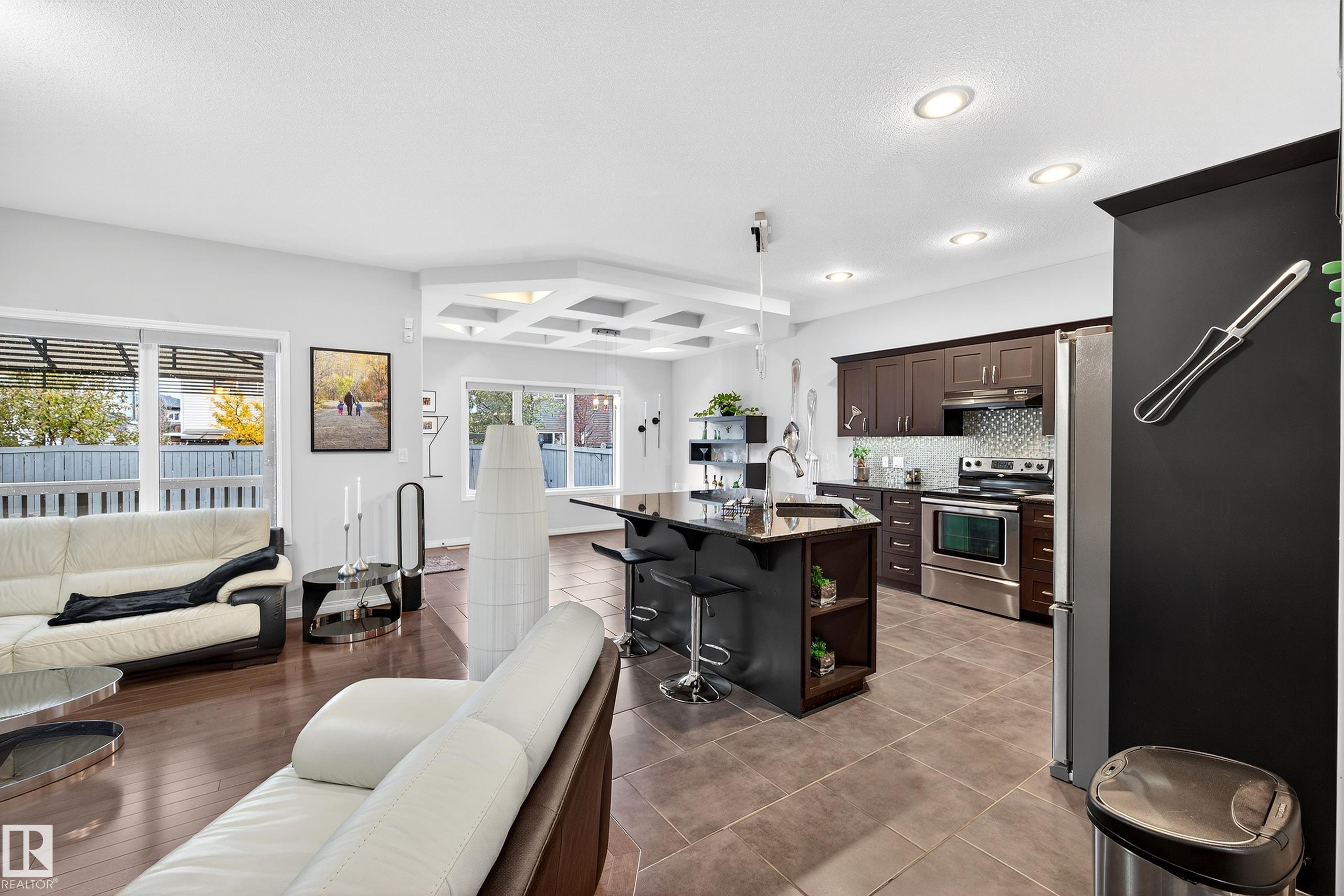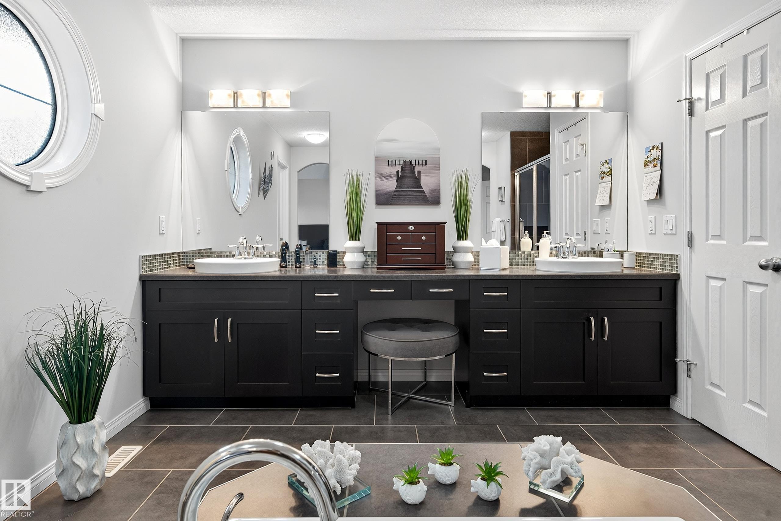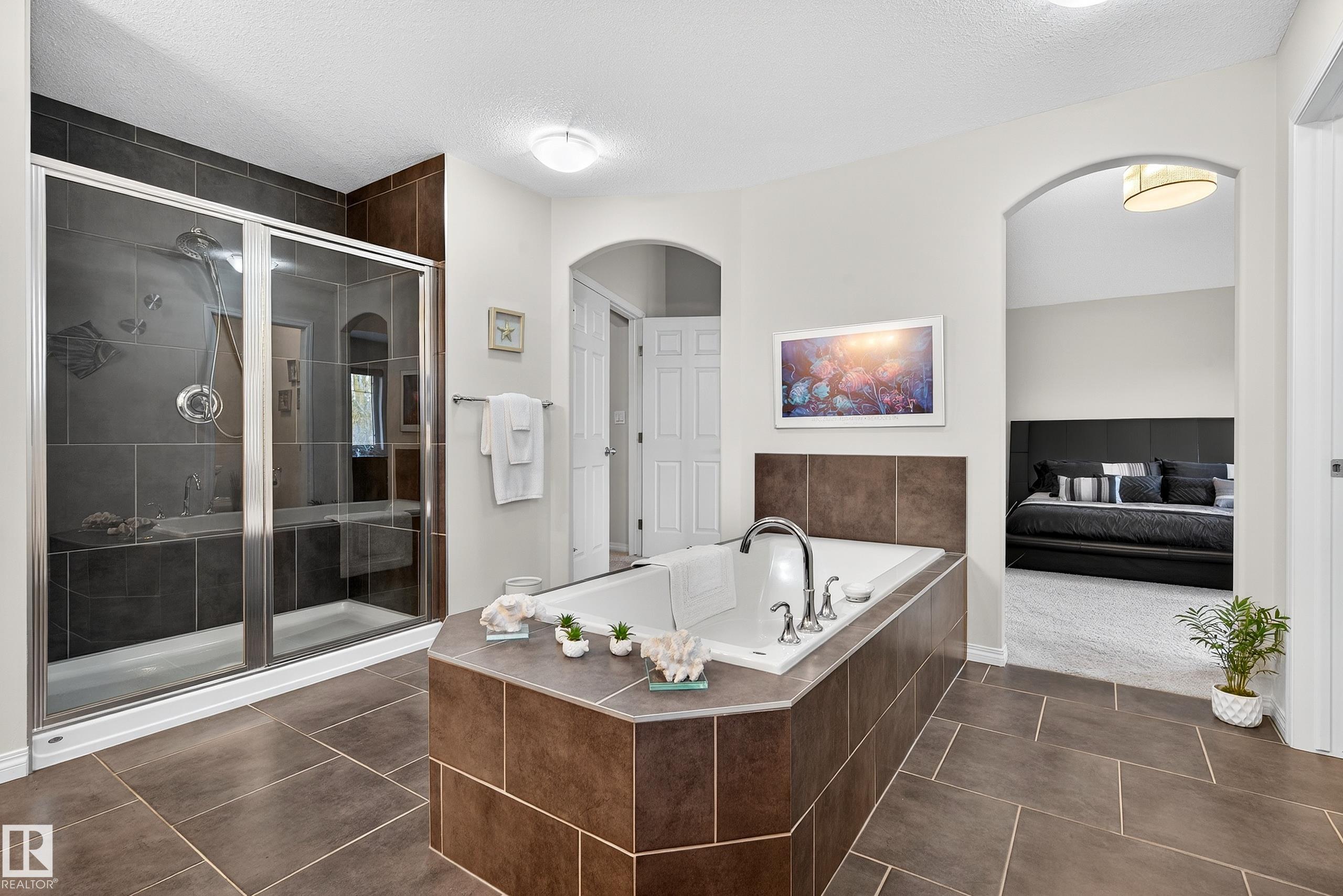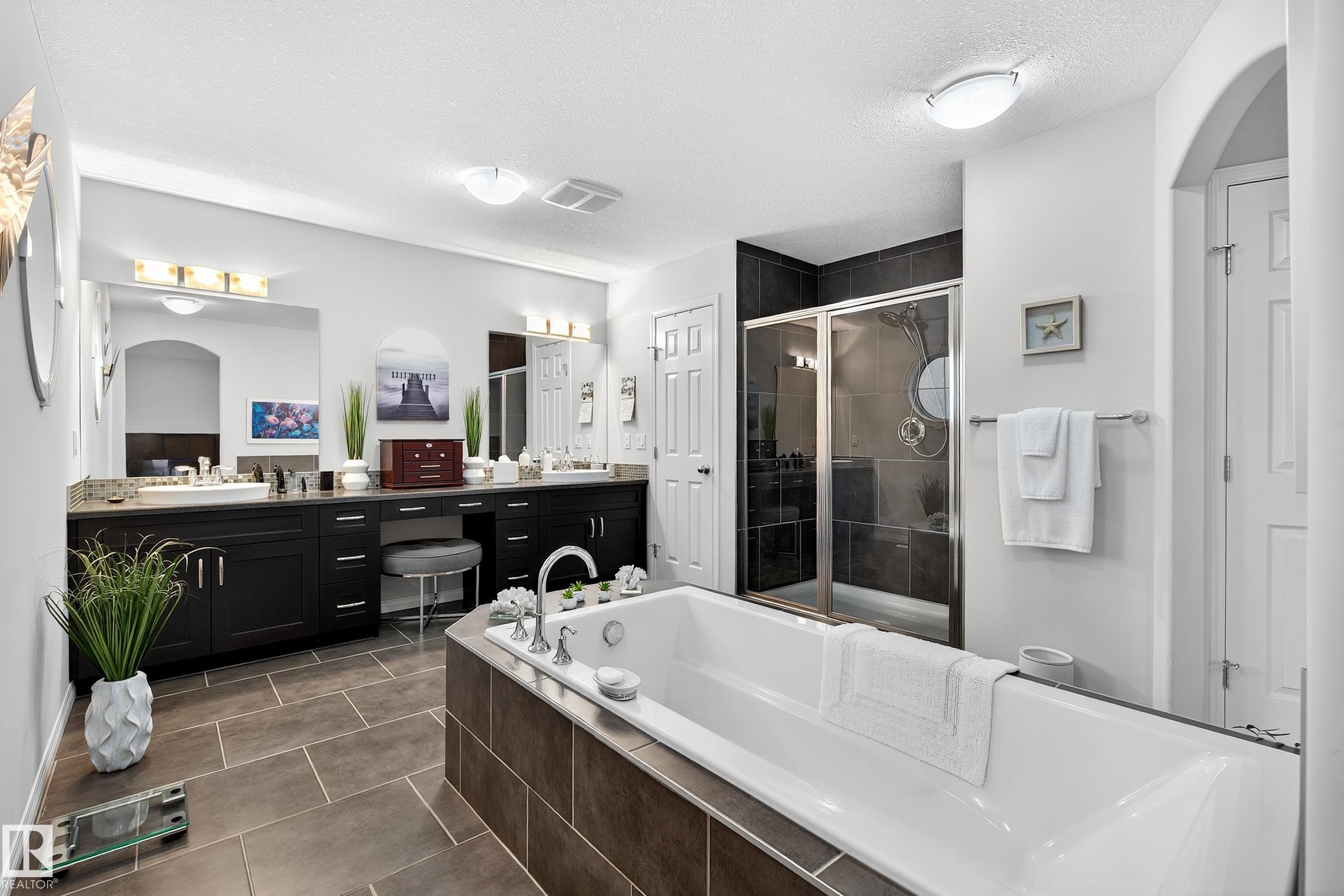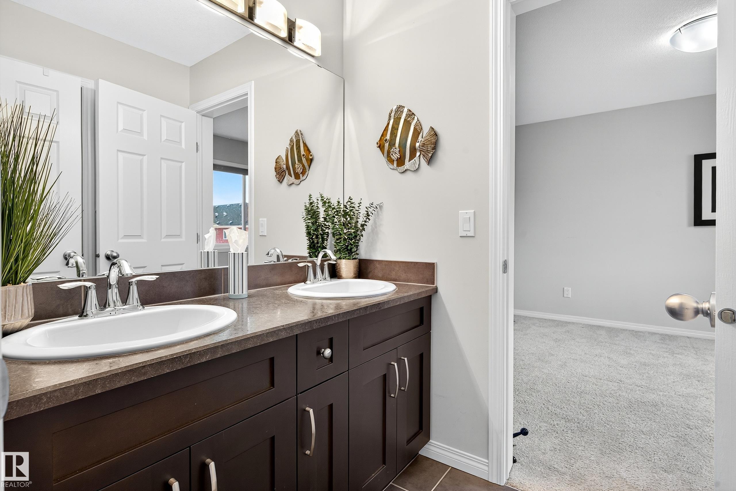 Welcome to a masterpiece of custom-built luxury in prestigious Trumpeter! This stunning 2-storey home offers an unparalleled blend of elegance, comfort, and nature-inspired living in Edmonton's coveted Big Lake area. Spanning 2,411 square feet, this 3-bedroom, 2.5-bathroom home boasts a beautiful open-concept floor plan with 9-foot ceilings on both the main and upper levels, creating a grand, airy feel throughout. The heart of the home is the chef's dream kitchen, featuring a stylish granite island and countertops, and a walk-through pantry, also including a gas fireplace in the living room. Escape to your private retreat with a huge primary bedroom complete with vaulted ceilings, a spacious walk-in closet, and a lavish ensuite bathroom. Upstairs also features a large bonus room perfect for movie nights or a play area, plus two additional bedrooms that each have a walk-in closet and share a clever Jack & Jill bathroom. The tandem, heated garage has hot & cold water taps, and will easily house 3 vehicles!