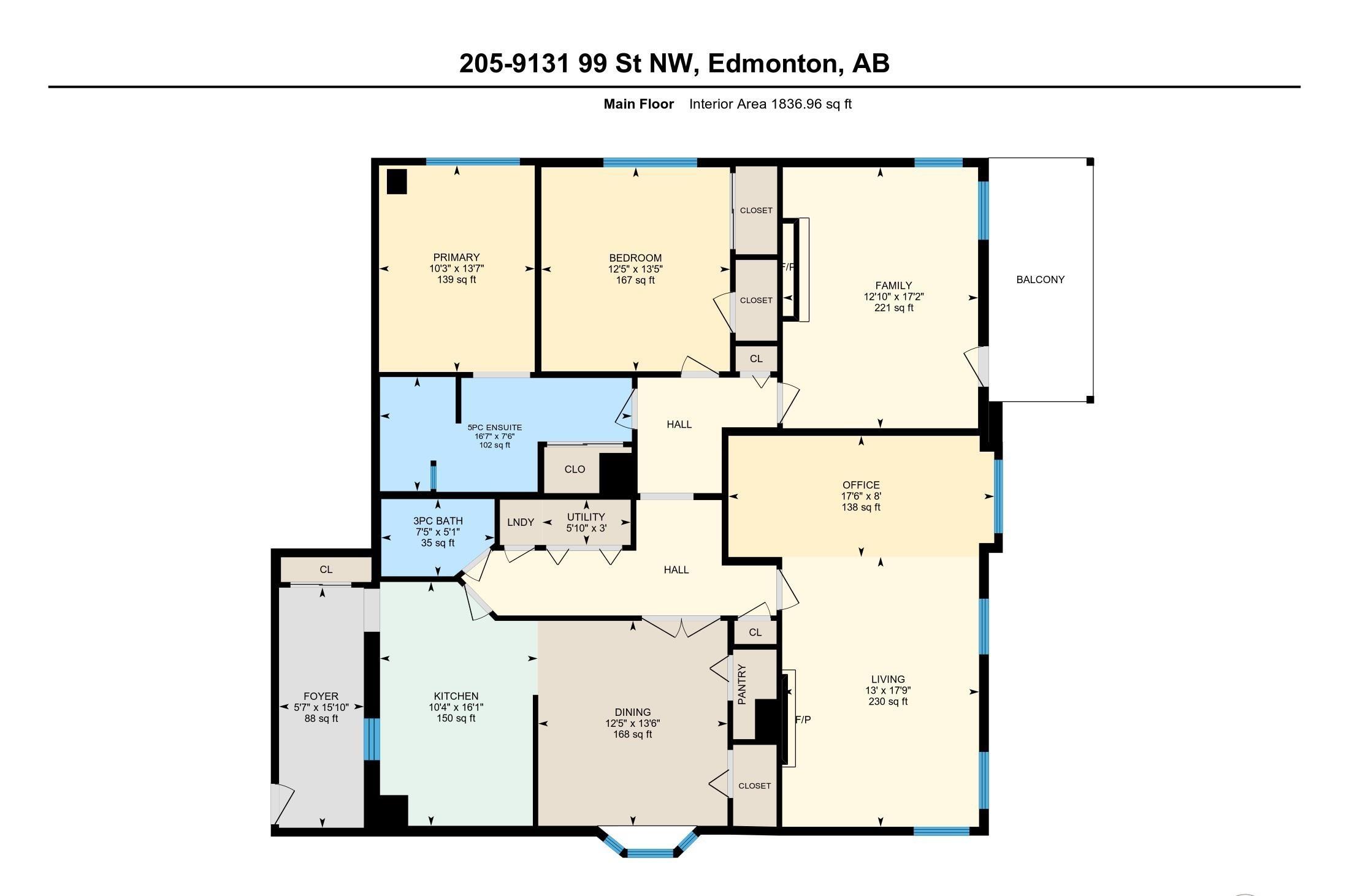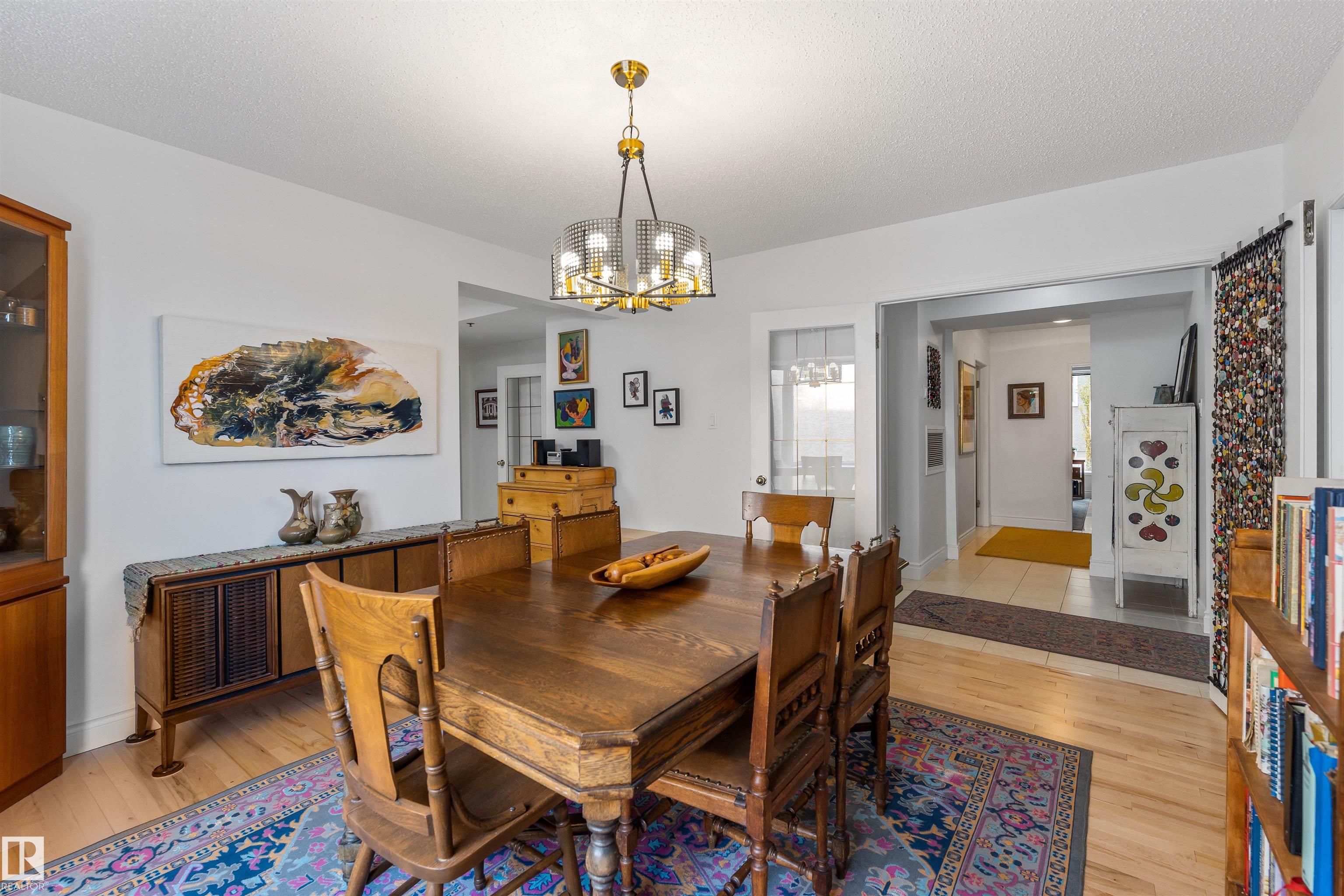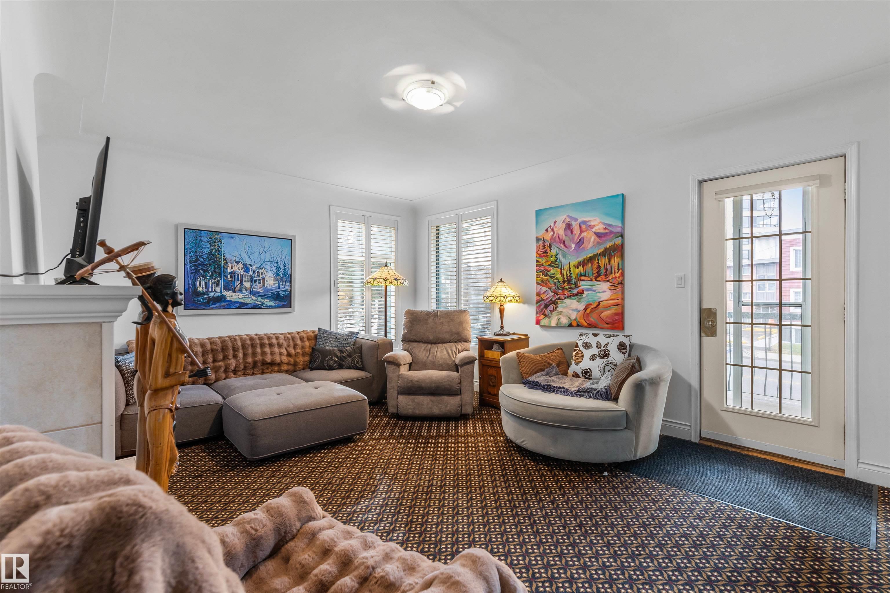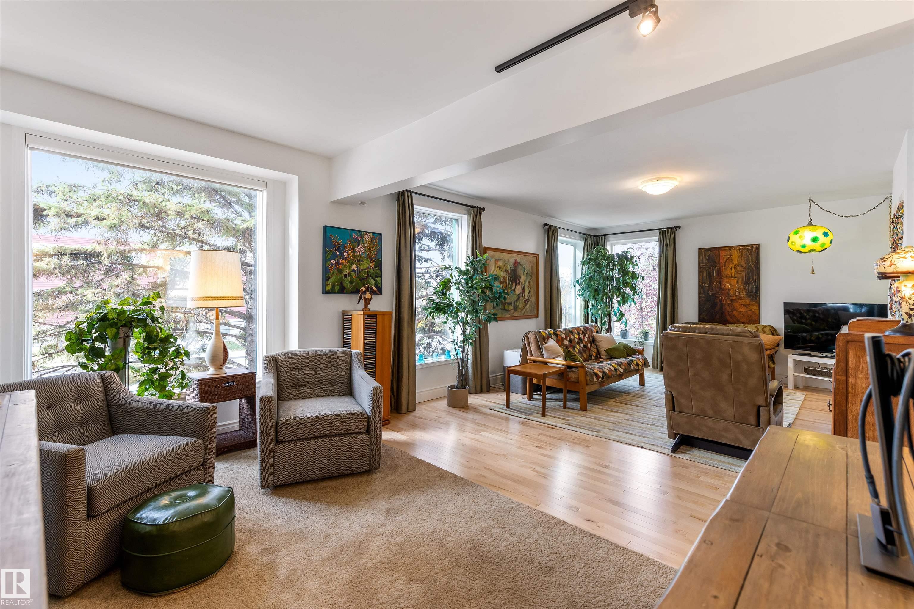 Steps from the Edmonton River Valley discover this SPACIOUS ONE OF A KIND CONDO in the Rembrandt. The private entrance is a beautiful spot to greet guests. The unit opens into the kitchen with European style cabinetry, tiled back splash, pot/pan drawers & loads of counter space. The dining room can easily accommodate entertaining, has HARDWOOD FLOORING & an abundance of storage with 2 closets. French doors separate the dining room from the central hall. The living room is huge with walls of windows & features a stunning electric fireplace. The living room has additional flex space on one end to accommodate an office. There are 2 BEDROOMS. The primary bedroom features a 5 piece ensuite with double sinks. There is a 3-piece bathroom, in suite laundry & a den with access to the outdoor balcony. The den has a 2nd electric fireplace. This is a unique building with only 16 suites. This is a pet friendly building. Heat & electricity are included in the condo fee. 1 assigned HEATED PARKING stall.