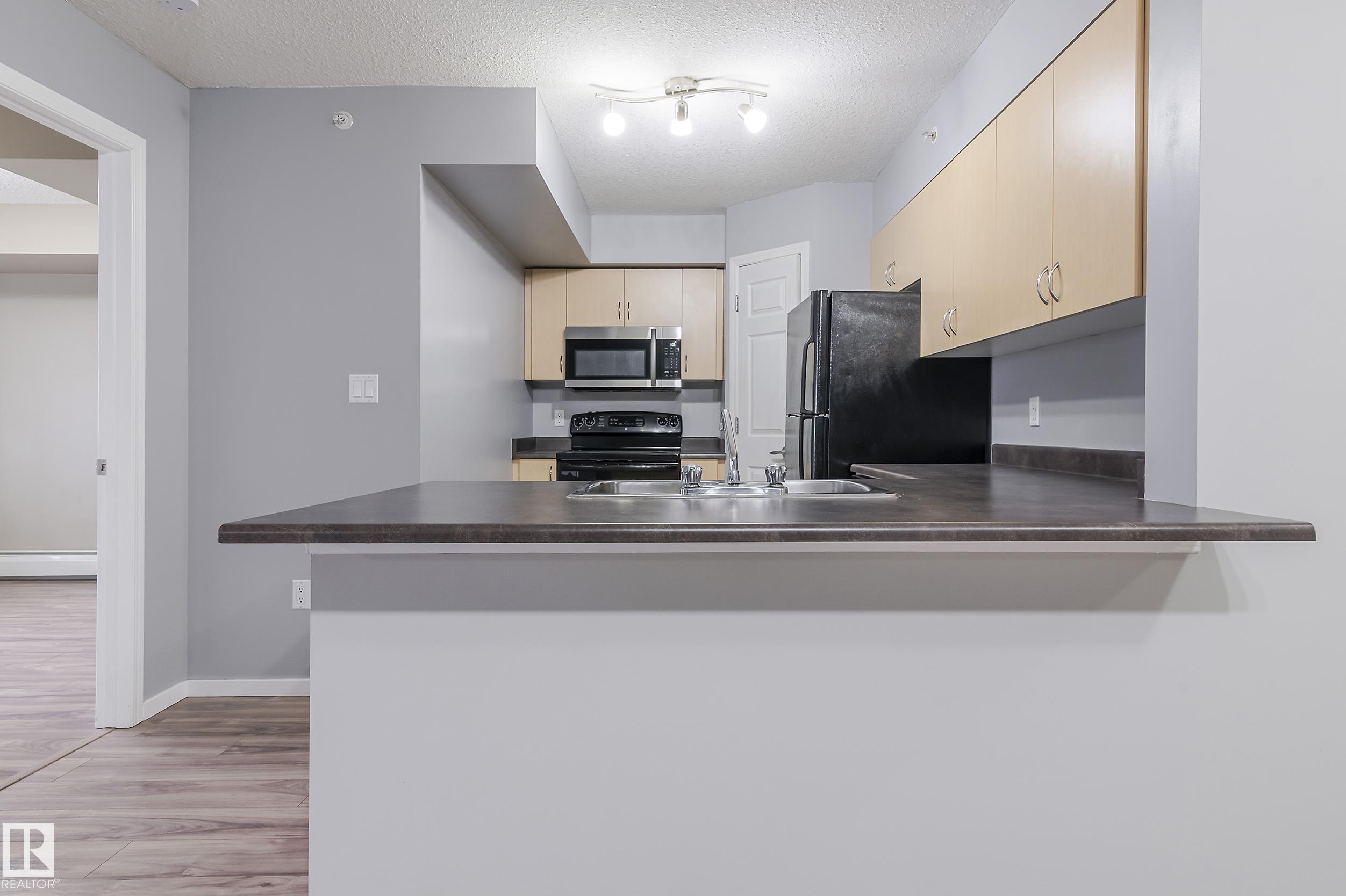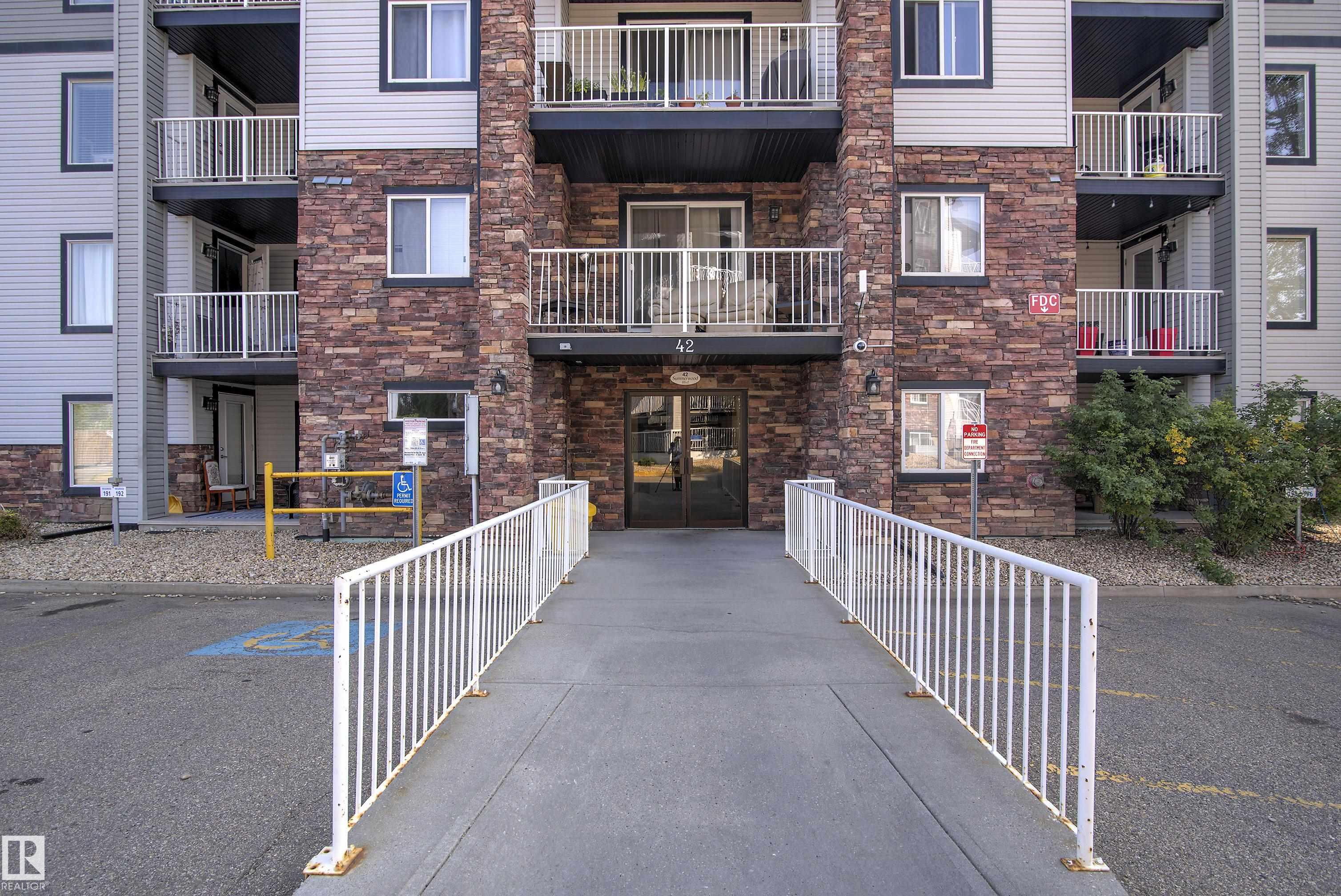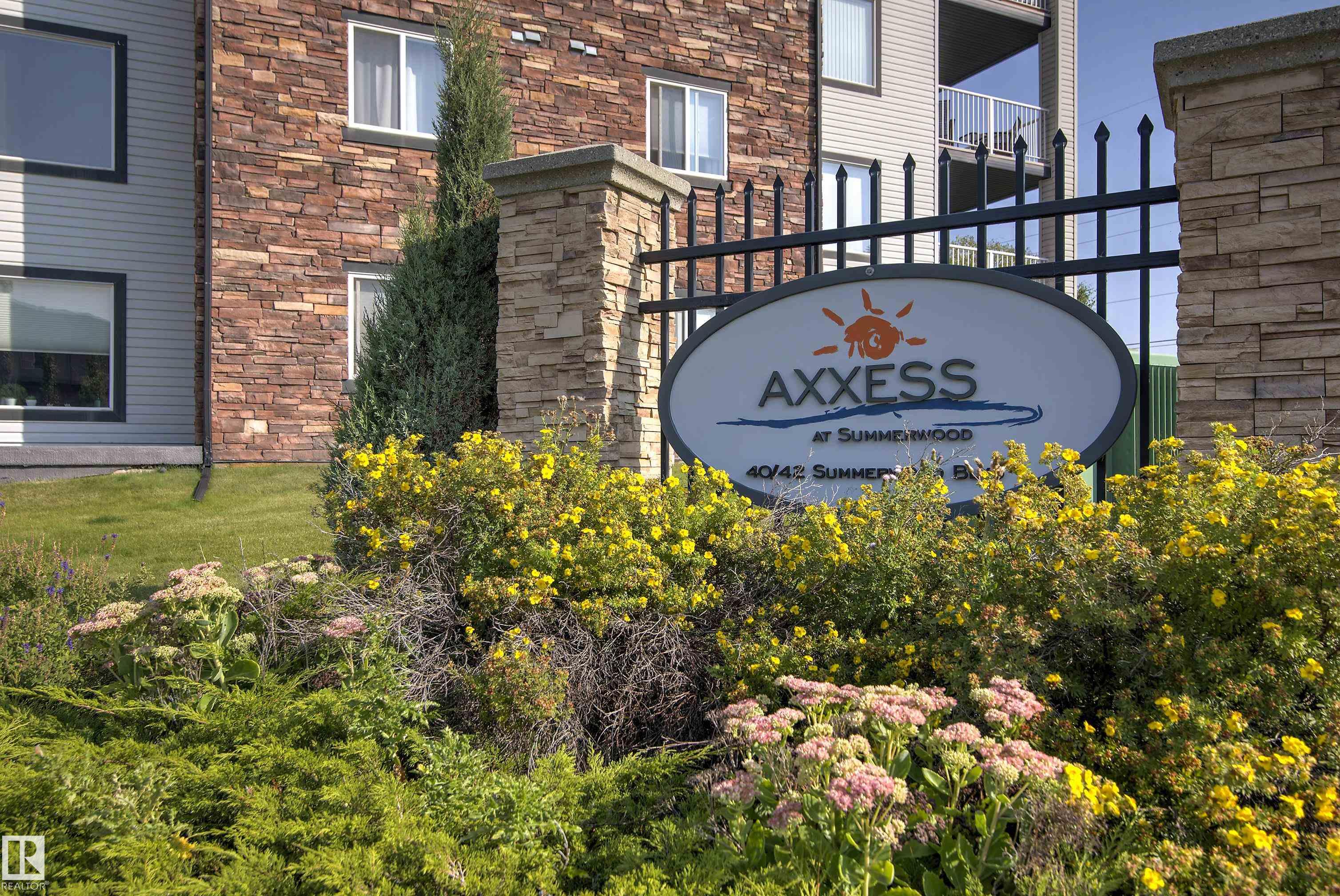 Welcome to this spacious 920 sq ft top floor condo nestled in the beautiful community of Summerwood. Designed with an open-concept layout, this home offers a seamless flow between the kitchen, dining, and living areas making it perfect for entertaining or relaxing in comfort. With 2 bedrooms and 2 baths, this unit is ideal for small families, roommates or guests. The primary bedroom features a generous walk-in closet and convenient 4 pc ensuite. This 4th floor unit offers in suite laundry, a brand new microwave oven, a spacious balcony with natural gas hook-up, and TWO parking stalls with 1 titled underground parking stall and 1 outdoor stall - ideal for multiple vehicles or guests. Close to gorgeous walking trails, parks, schools, shopping centers, and quick access to major highways for easy commuting. This condo is a must see.