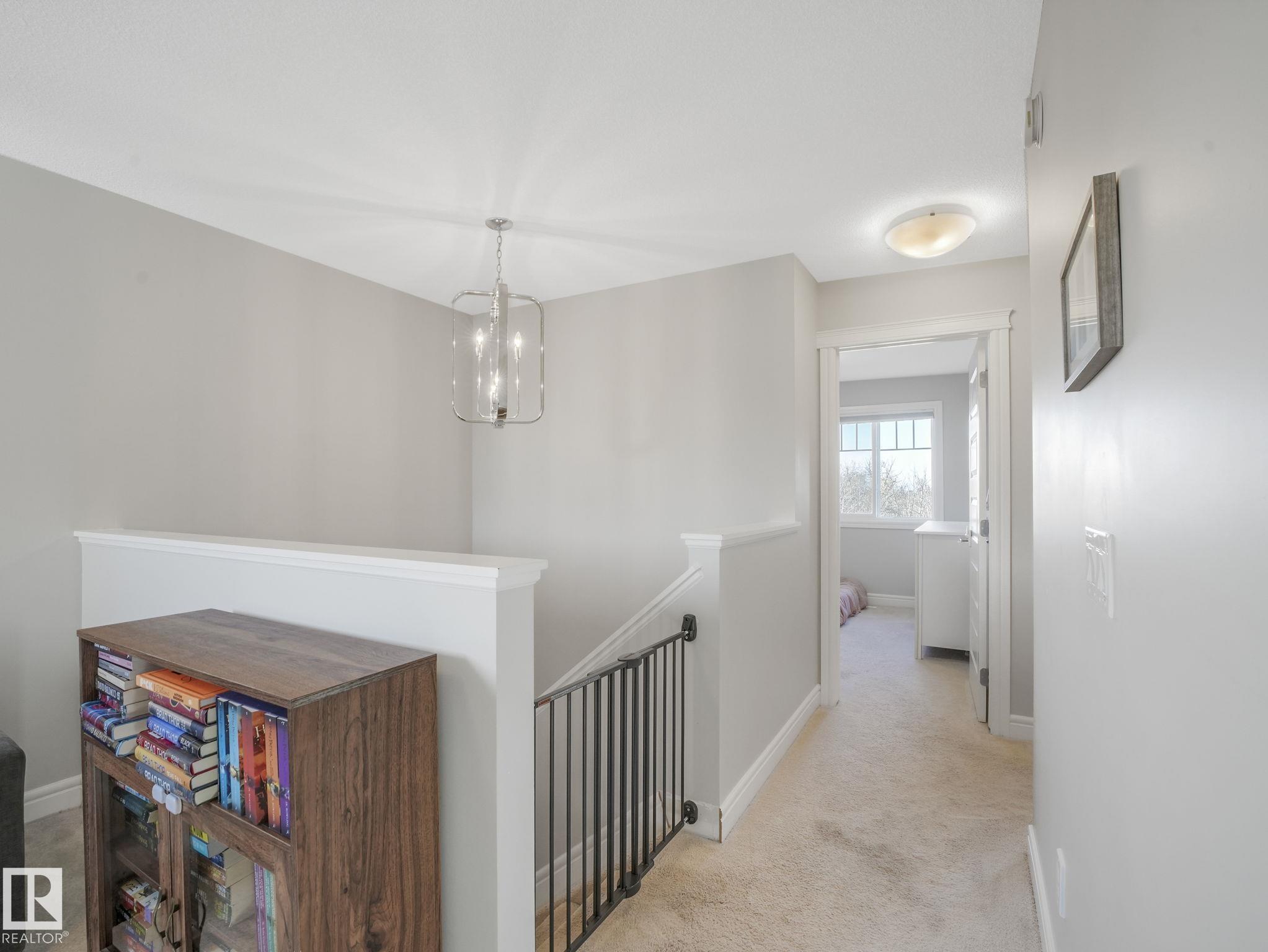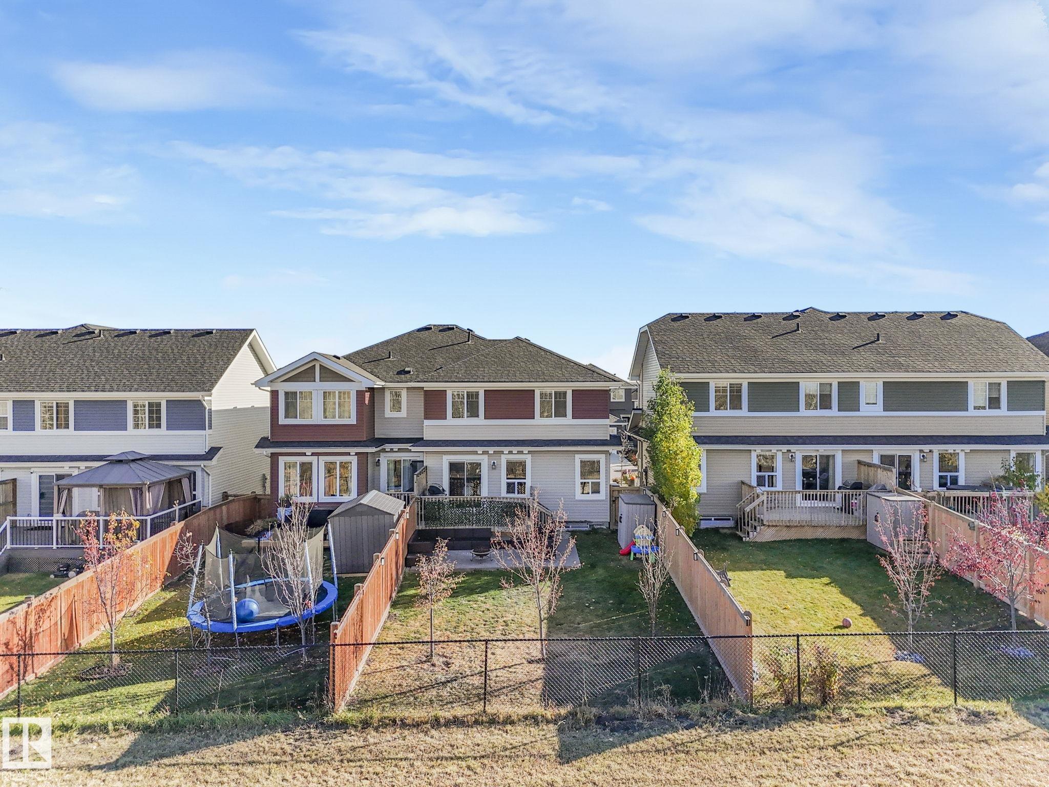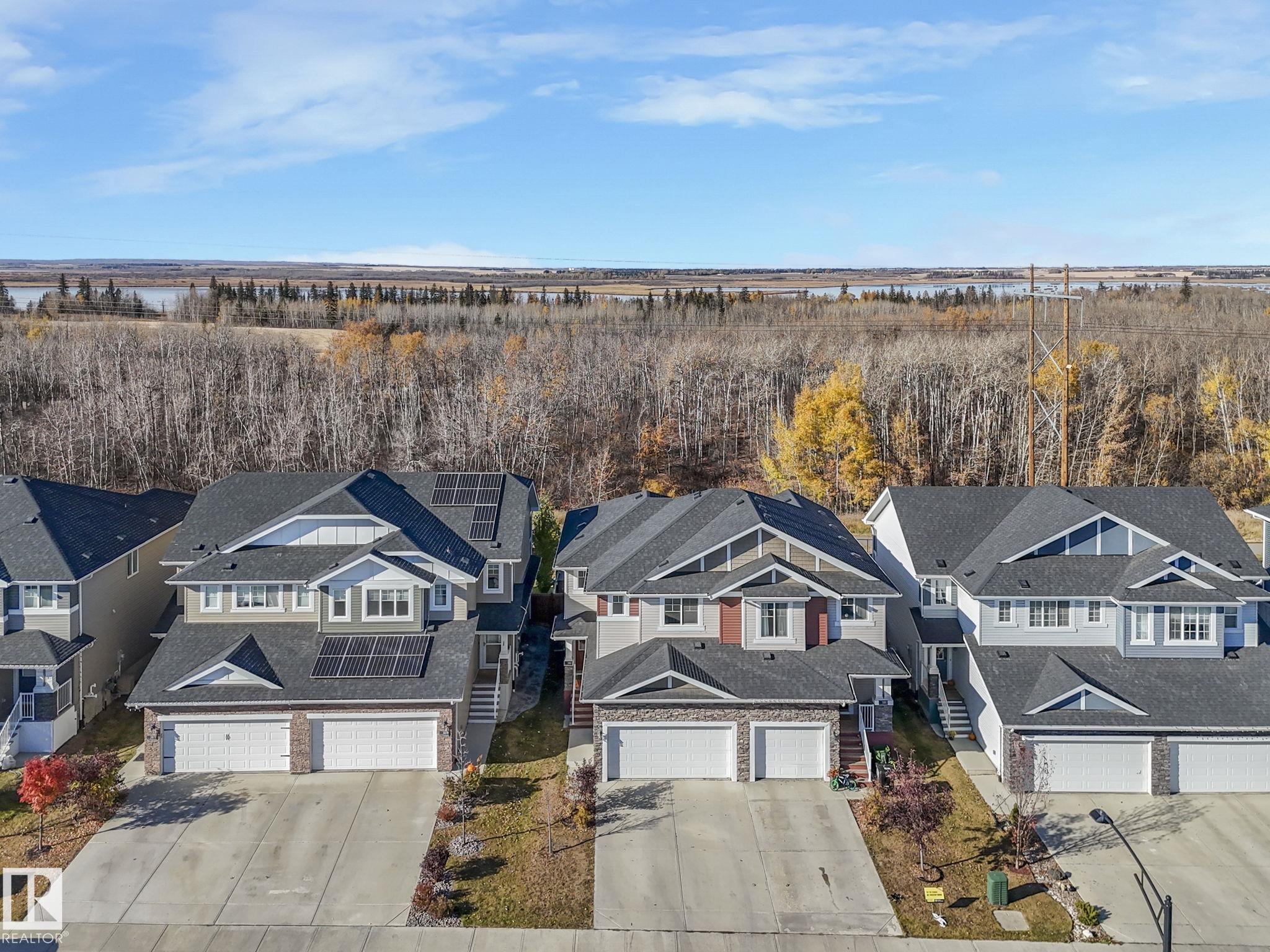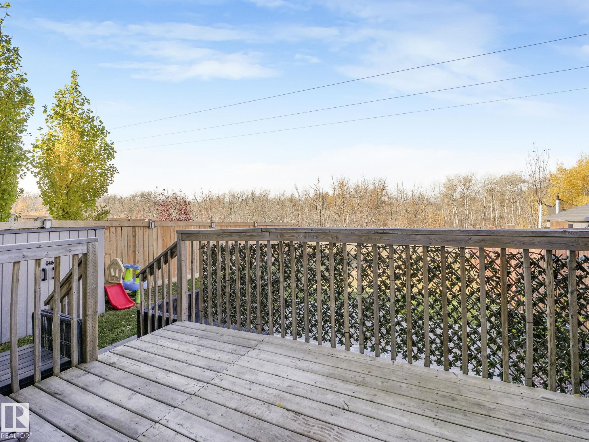 Beautifully maintained half duplex, backing onto Ravine and walking trails in desirable Starling! This modern 3 bed, 2.5 bath home features an open-concept layout with quartz countertops, white cabinetry, tiled backsplash, and a functional eat-up island. New appliances including the fridge and dishwasher. Upstairs offers a spacious primary suite with walk-in closet and ensuite, plus laundry and bonus space. Upstairs you will also find 2 additional bedrooms. Enjoy year-round comfort with NEW central A/C, a fully landscaped yard, large rear deck, and double attached garage. Steps to parks, trails, and minutes to St. Albert and the Anthony Henday! The incredible view from the home and backyard make this one truly exceptional!