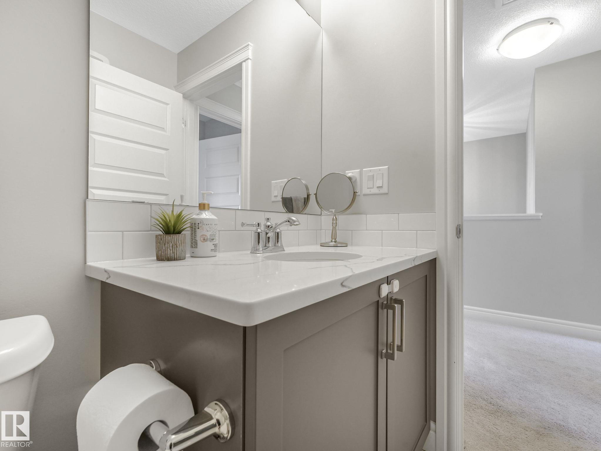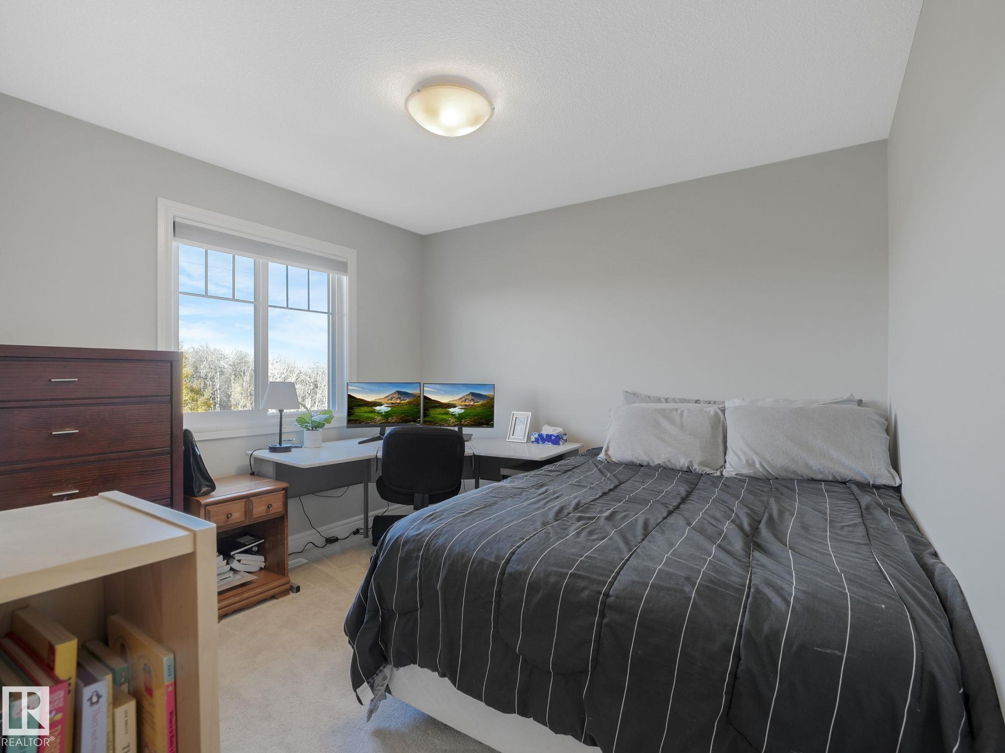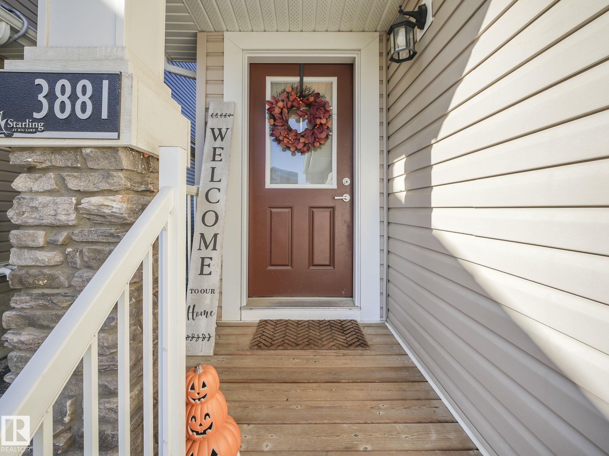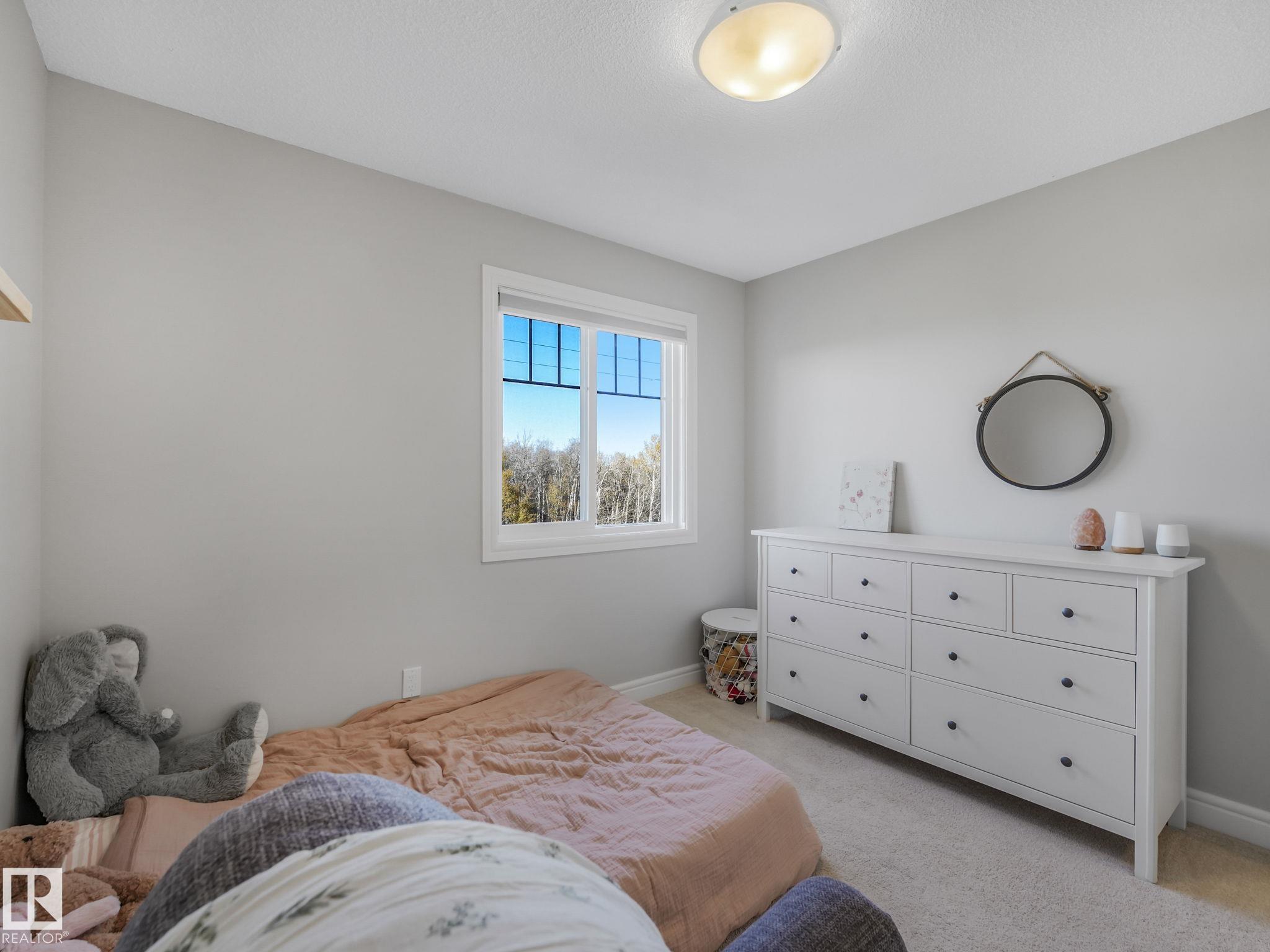 Beautifully maintained half duplex, backing onto Ravine and walking trails in desirable Starling! This modern 3 bed, 2.5 bath home features an open-concept layout with quartz countertops, white cabinetry, tiled backsplash, and a functional eat-up island. New appliances including the fridge and dishwasher. Upstairs offers a spacious primary suite with walk-in closet and ensuite, plus laundry and bonus space. Upstairs you will also find 2 additional bedrooms. Enjoy year-round comfort with NEW central A/C, a fully landscaped yard, large rear deck, and double attached garage. Steps to parks, trails, and minutes to St. Albert and the Anthony Henday! The incredible view from the home and backyard make this one truly exceptional!