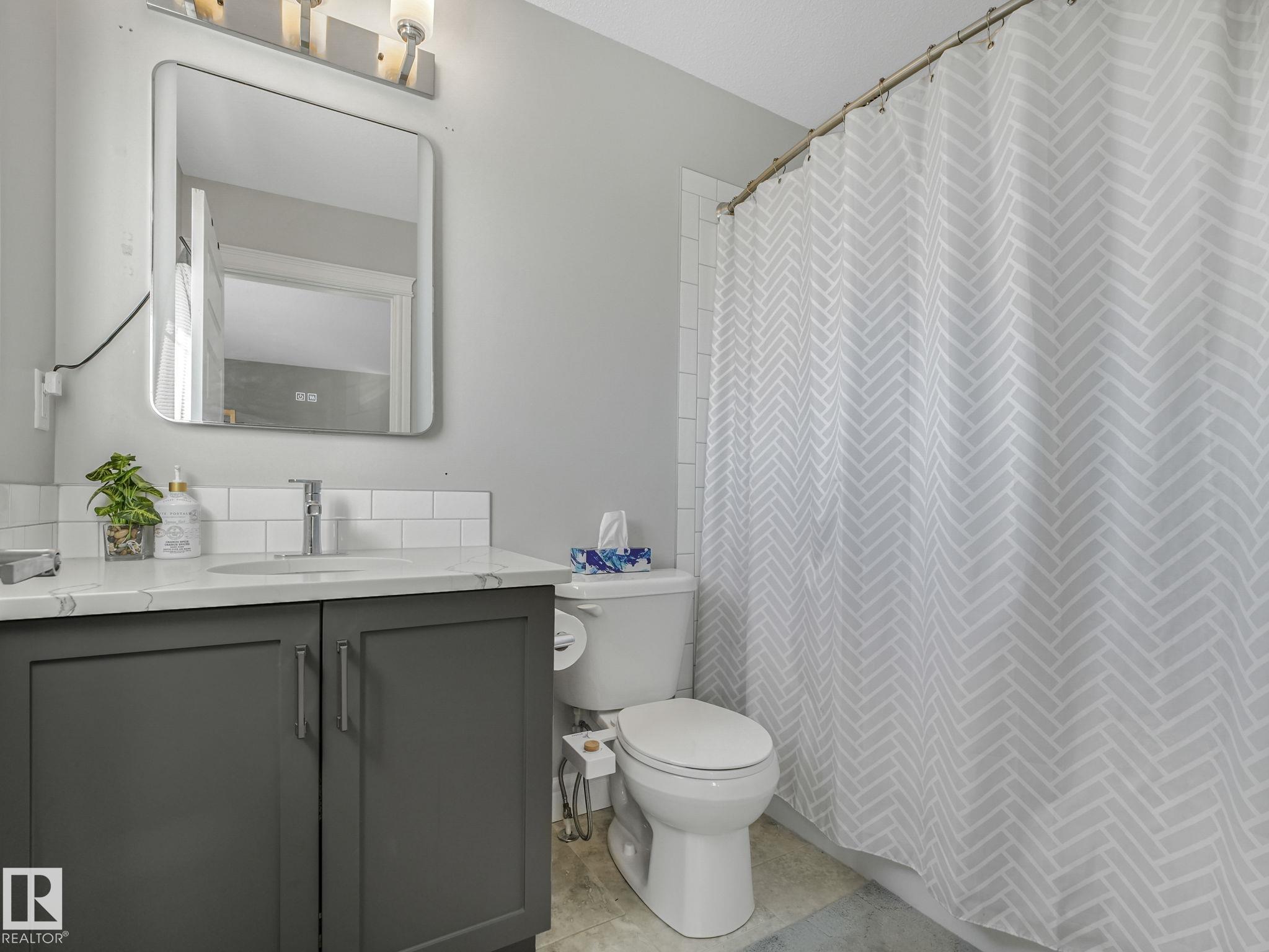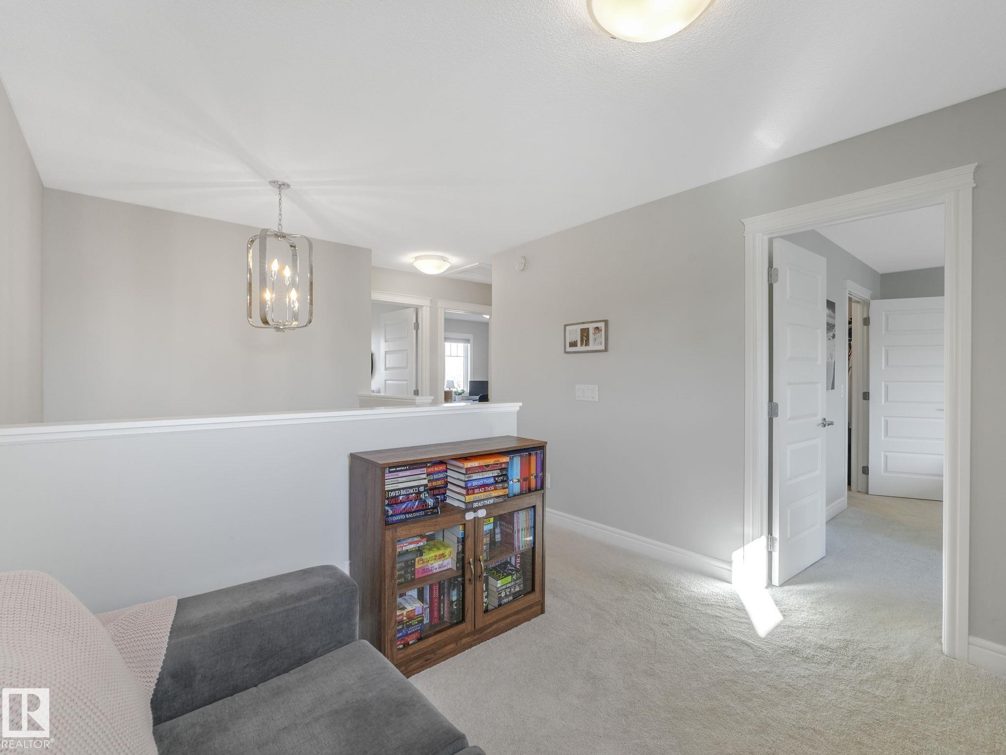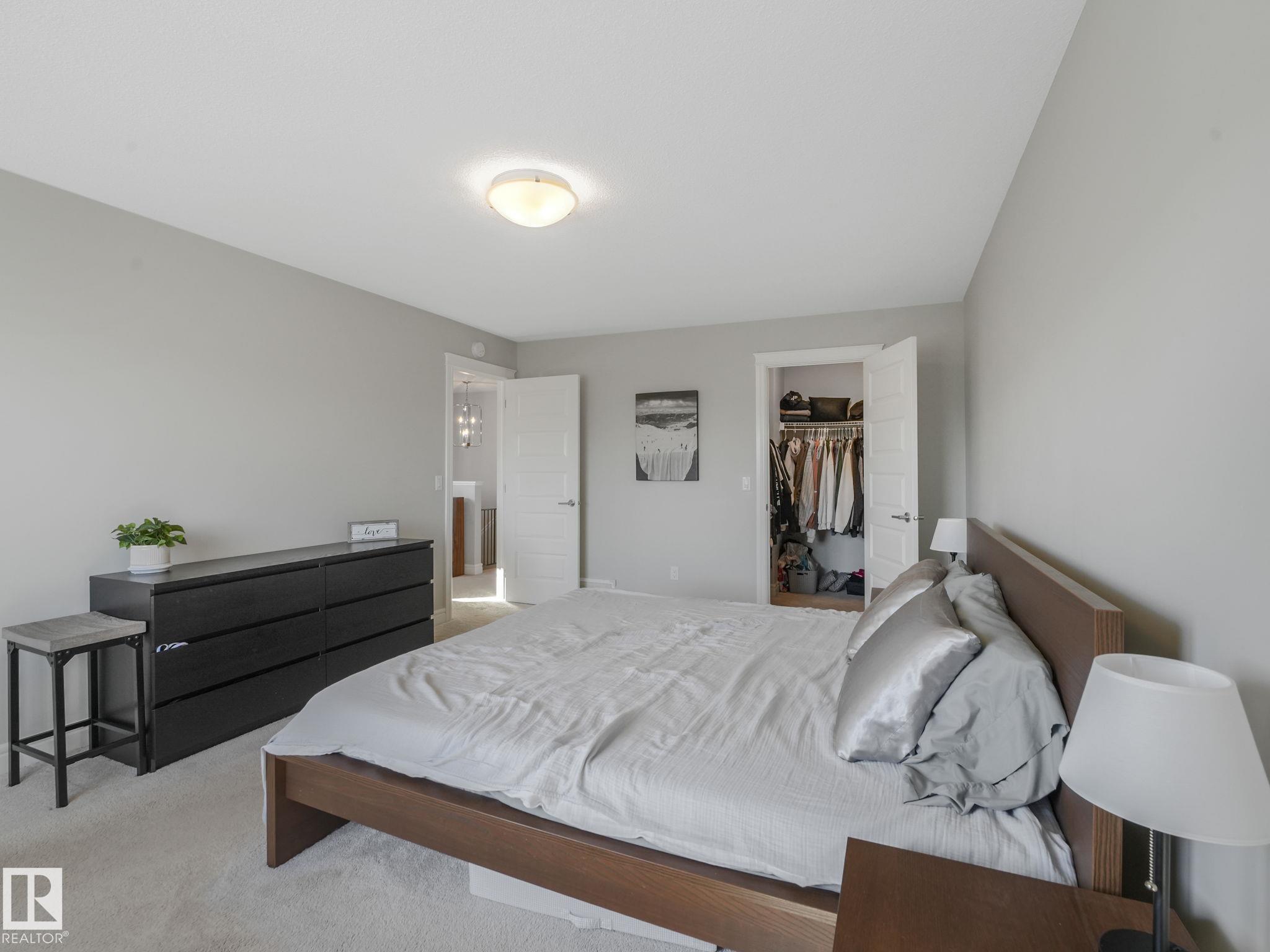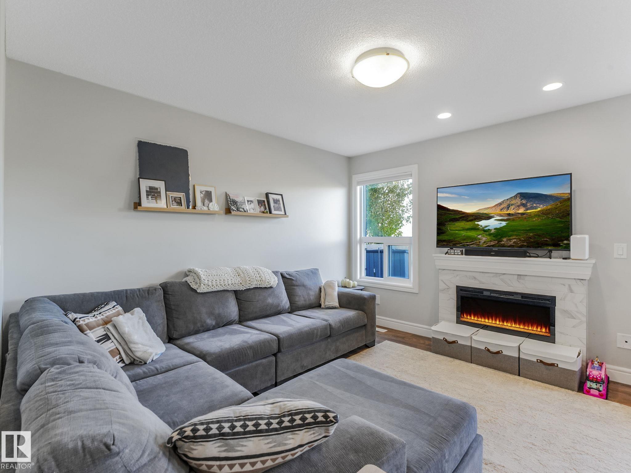 Beautifully maintained half duplex, backing onto Ravine and walking trails in desirable Starling! This modern 3 bed, 2.5 bath home features an open-concept layout with quartz countertops, white cabinetry, tiled backsplash, and a functional eat-up island. New appliances including the fridge and dishwasher. Upstairs offers a spacious primary suite with walk-in closet and ensuite, plus laundry and bonus space. Upstairs you will also find 2 additional bedrooms. Enjoy year-round comfort with NEW central A/C, a fully landscaped yard, large rear deck, and double attached garage. Steps to parks, trails, and minutes to St. Albert and the Anthony Henday! The incredible view from the home and backyard make this one truly exceptional!