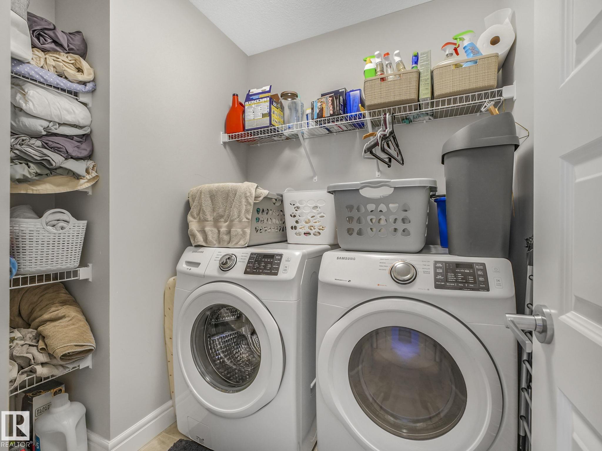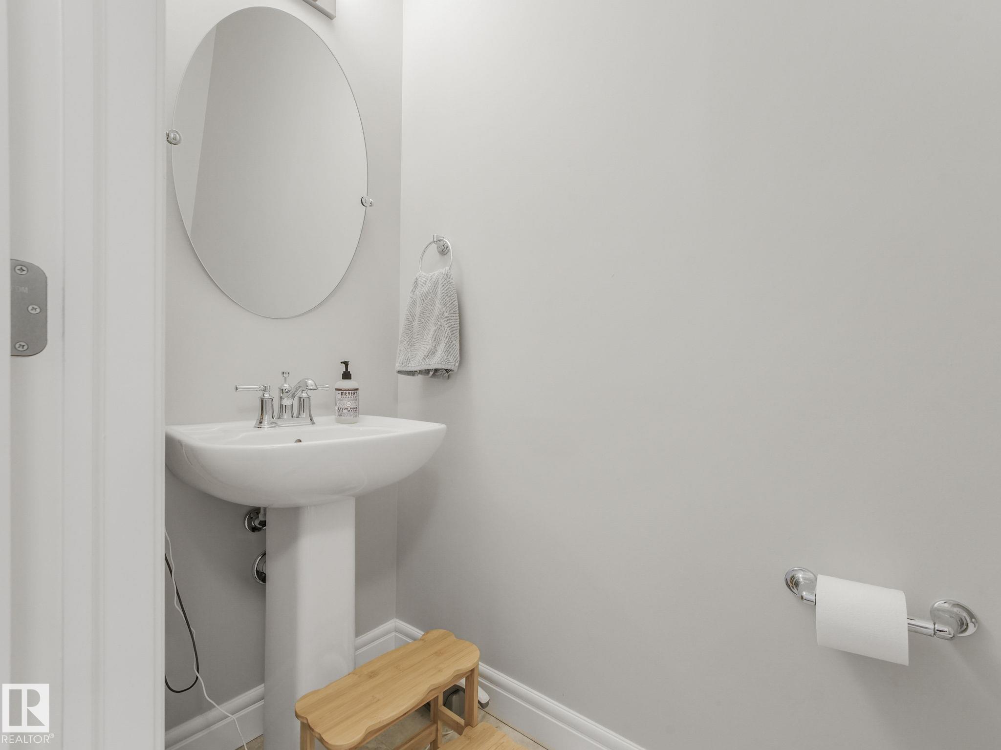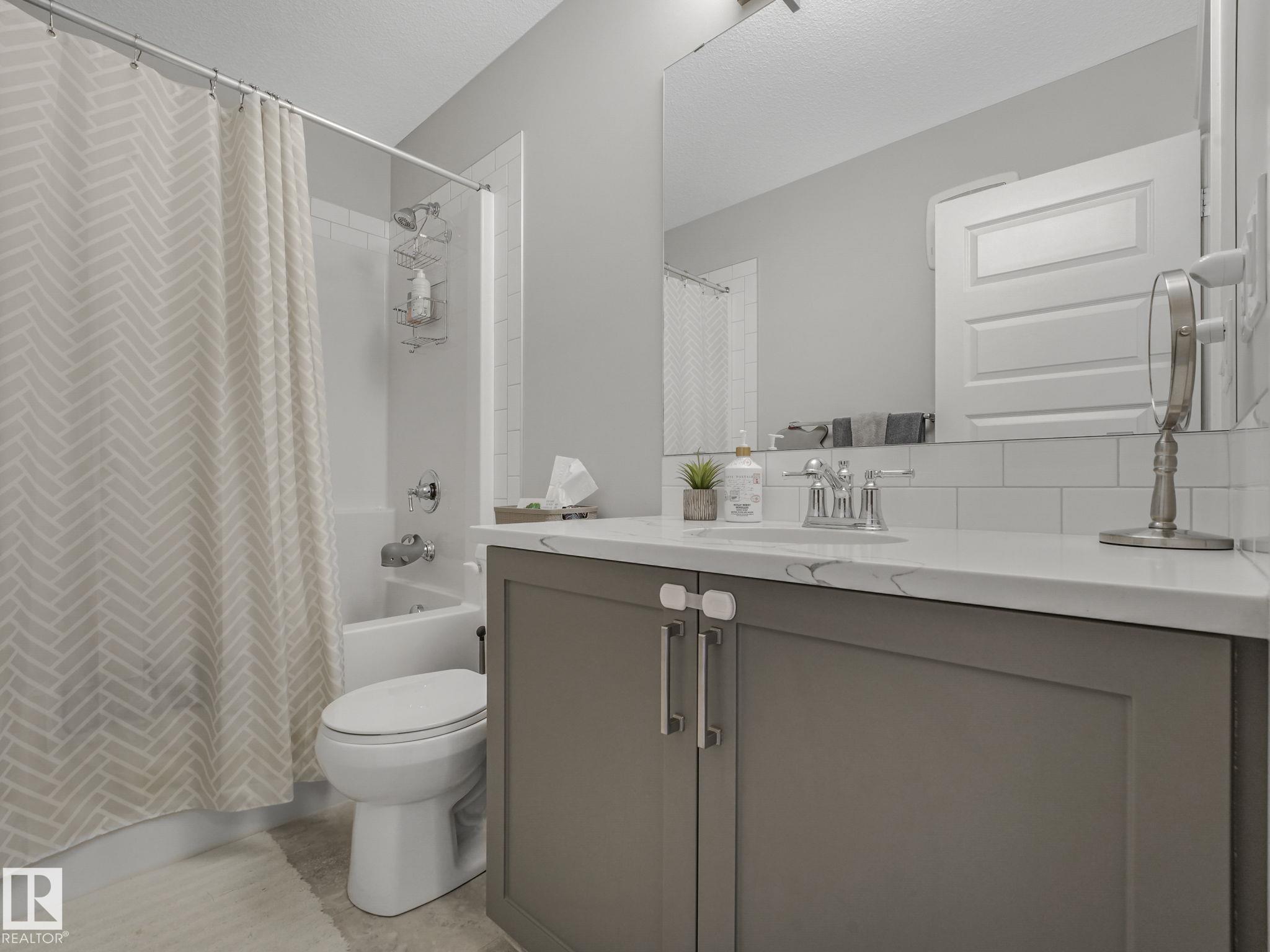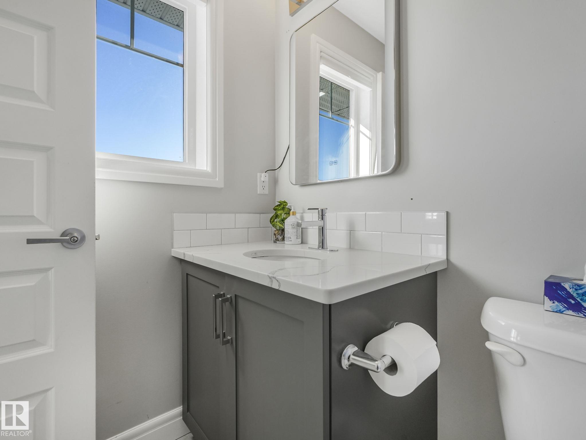 Beautifully maintained half duplex, backing onto Ravine and walking trails in desirable Starling! This modern 3 bed, 2.5 bath home features an open-concept layout with quartz countertops, white cabinetry, tiled backsplash, and a functional eat-up island. New appliances including the fridge and dishwasher. Upstairs offers a spacious primary suite with walk-in closet and ensuite, plus laundry and bonus space. Upstairs you will also find 2 additional bedrooms. Enjoy year-round comfort with NEW central A/C, a fully landscaped yard, large rear deck, and double attached garage. Steps to parks, trails, and minutes to St. Albert and the Anthony Henday! The incredible view from the home and backyard make this one truly exceptional!