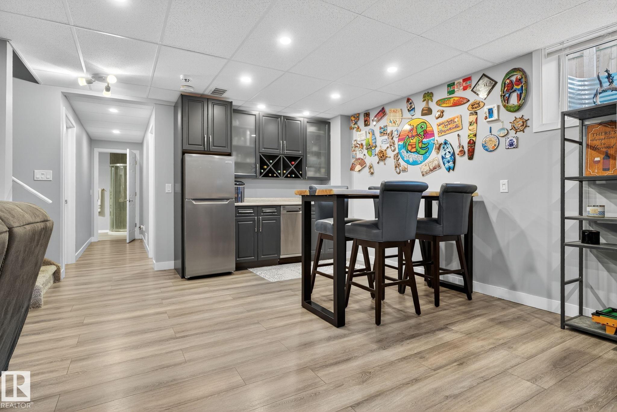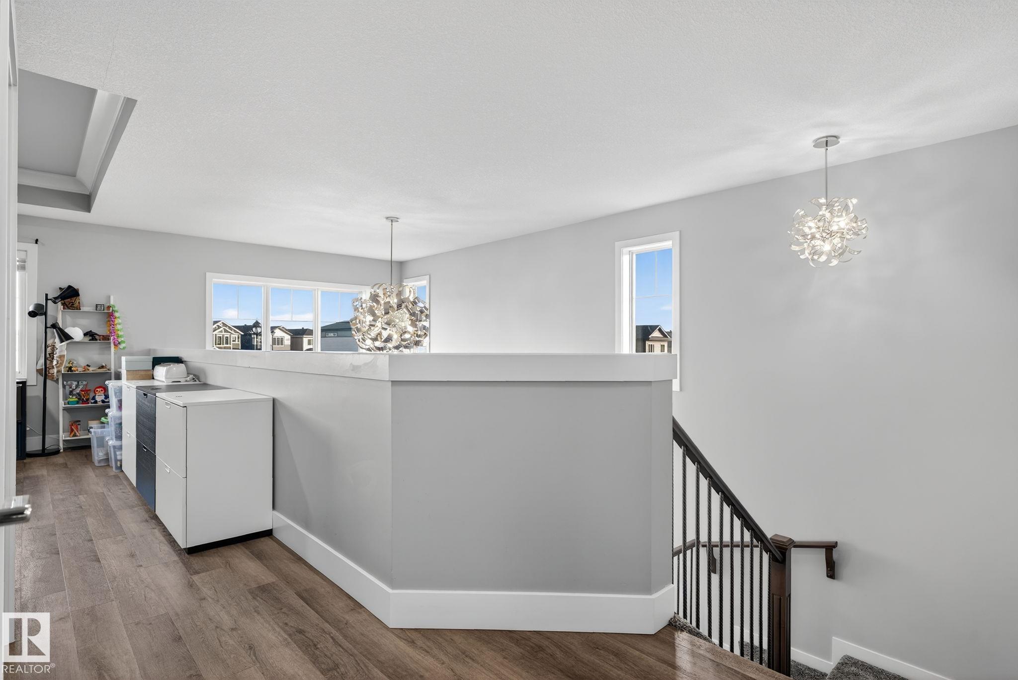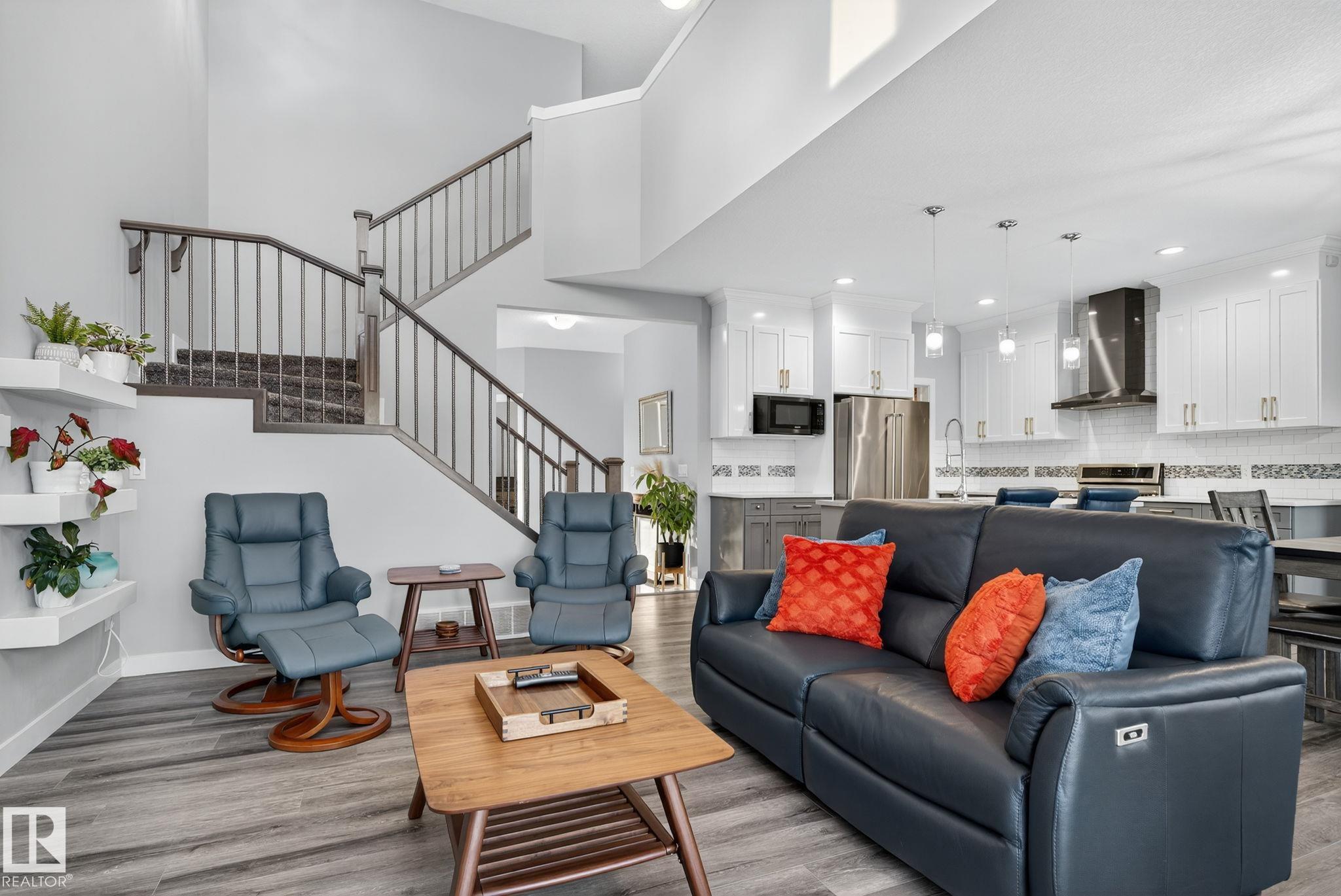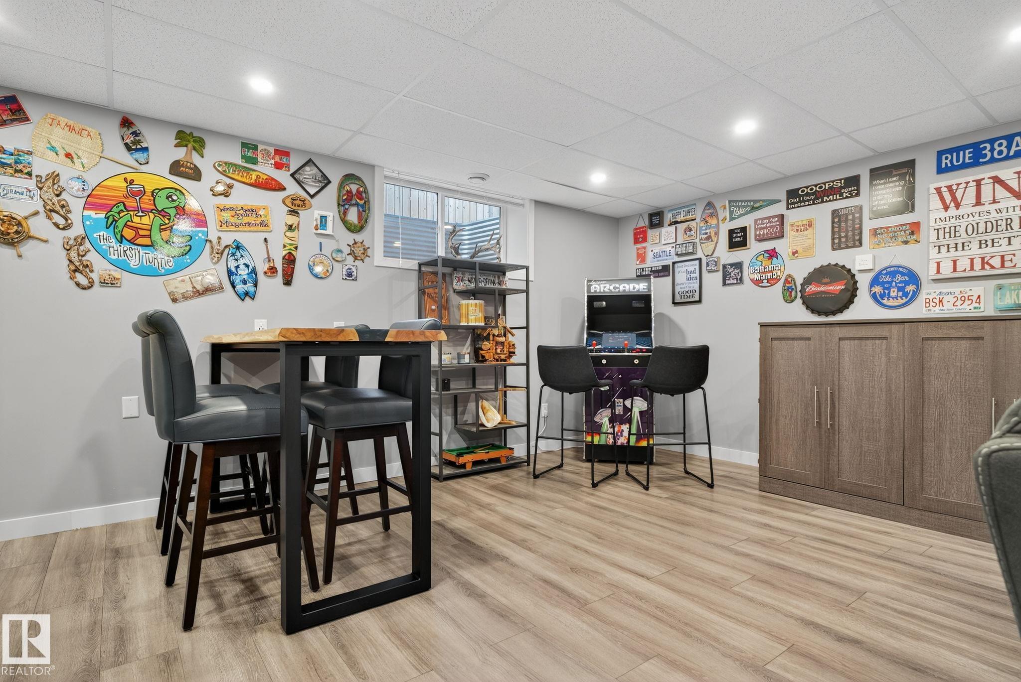 This corner-lot home in Triomphe Estates is move-in ready with upgrades that add real value to everyday living. The main floor has a bright living area open to above, a dining space, and a kitchen with a central island, upgraded stainless steel appliances, and a gas range. The walk-through pantry leads directly to the oversized heated 18x30 garage. A private office and half bath complete this floor. Upstairs offers a bonus room, a primary suite with walk-in closet and dual-vanity tiled-shower ensuite, two additional bedrooms, a full bathroom, and laundry. The finished basement includes a built-in bar with bar fridge and dishwasher, a large rec area, fourth bedroom, and full bathroom. Outside, the yard is landscaped and fenced with a custom deck, gas BBQ hookup, shed, and Astoria LED exterior lighting (2021). Briggs & Stratton backup generator (2024). Recent updates also include new flooring throughout (2025), upgraded gas range (2025), washer and dryer (2023), fridge (2022), and central AC. Come see it.