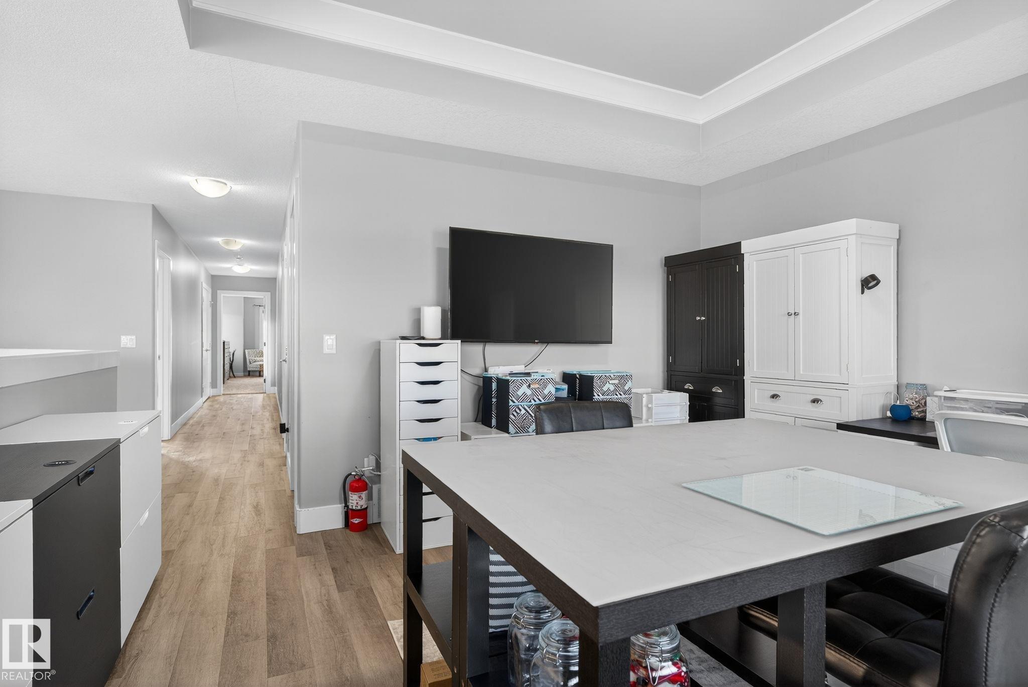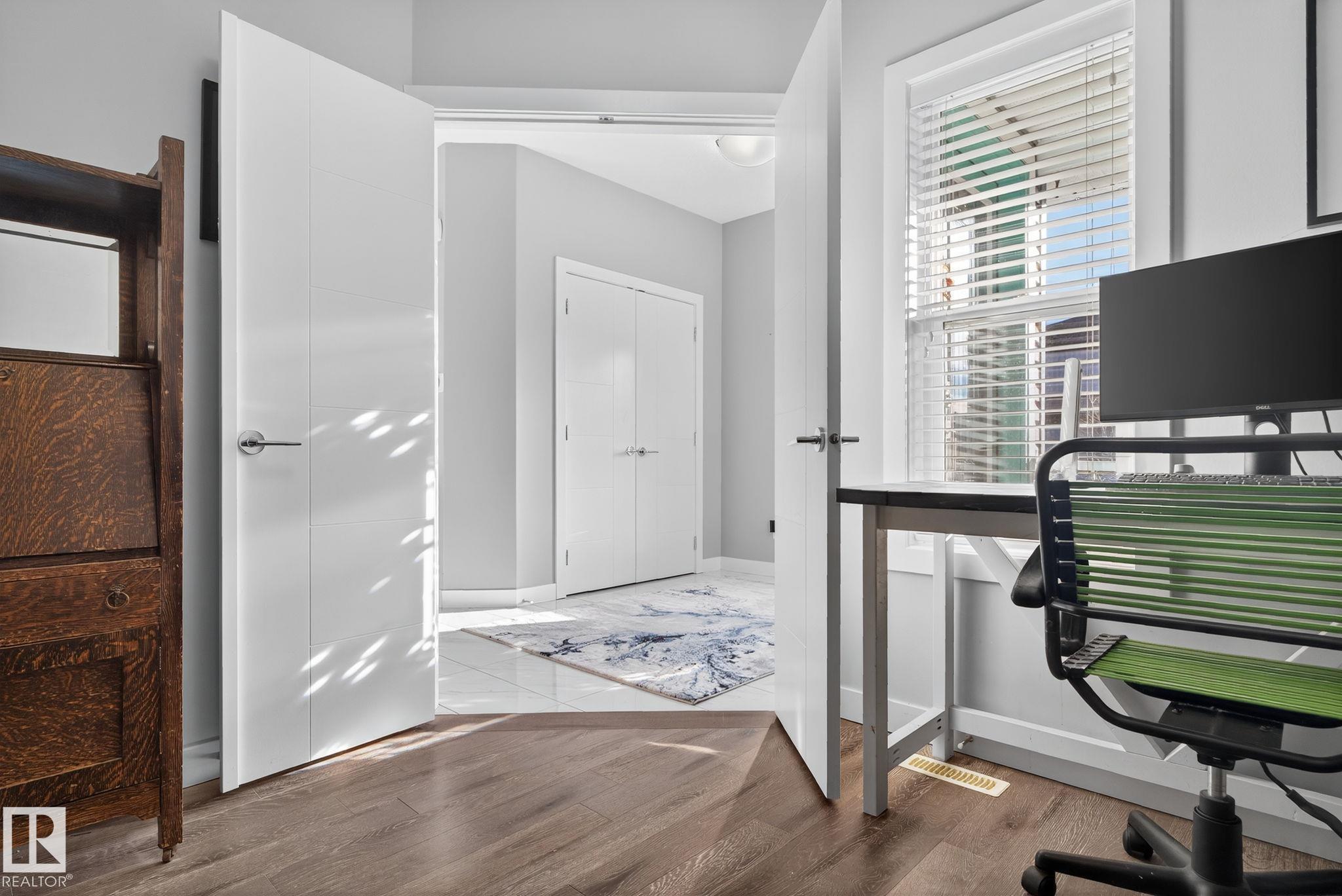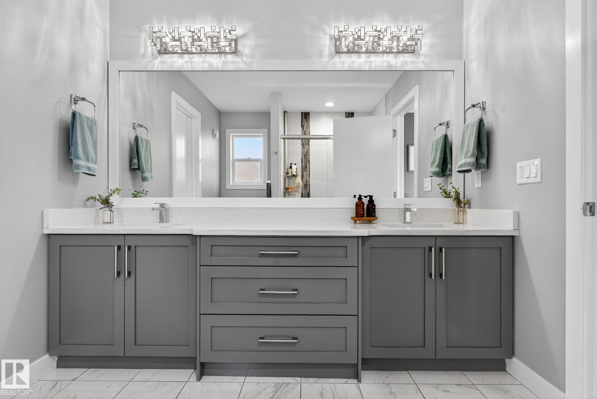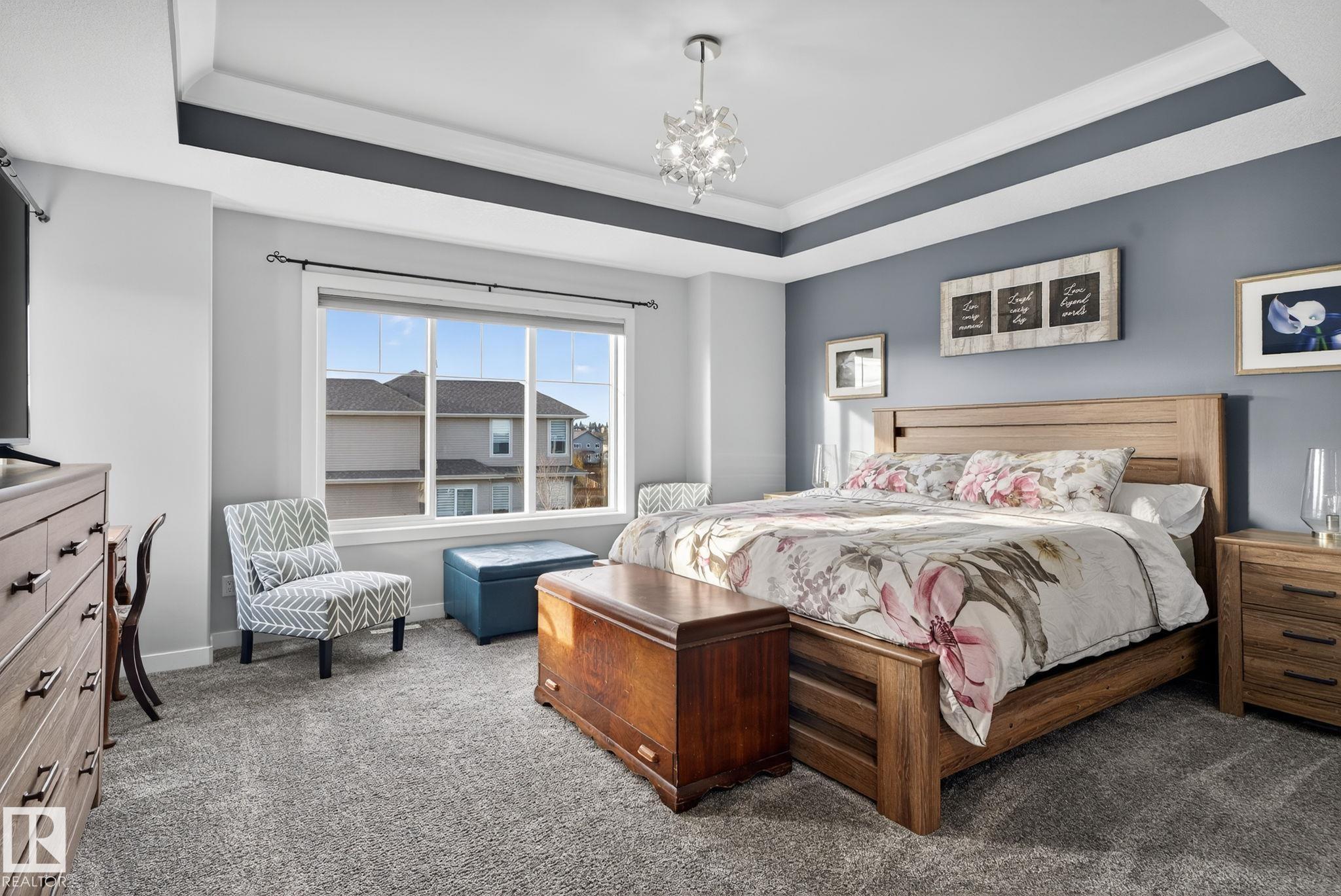 This corner-lot home in Triomphe Estates is move-in ready with upgrades that add real value to everyday living. The main floor has a bright living area open to above, a dining space, and a kitchen with a central island, upgraded stainless steel appliances, and a gas range. The walk-through pantry leads directly to the oversized heated 18x30 garage. A private office and half bath complete this floor. Upstairs offers a bonus room, a primary suite with walk-in closet and dual-vanity tiled-shower ensuite, two additional bedrooms, a full bathroom, and laundry. The finished basement includes a built-in bar with bar fridge and dishwasher, a large rec area, fourth bedroom, and full bathroom. Outside, the yard is landscaped and fenced with a custom deck, gas BBQ hookup, shed, and Astoria LED exterior lighting (2021). Briggs & Stratton backup generator (2024). Recent updates also include new flooring throughout (2025), upgraded gas range (2025), washer and dryer (2023), fridge (2022), and central AC. Come see it.