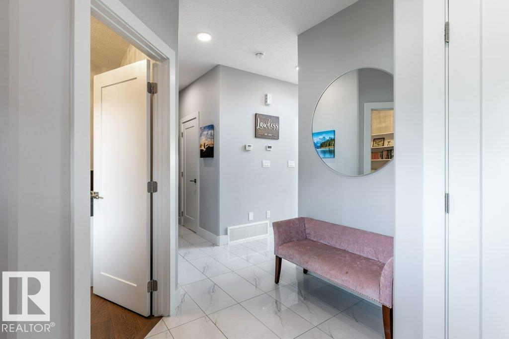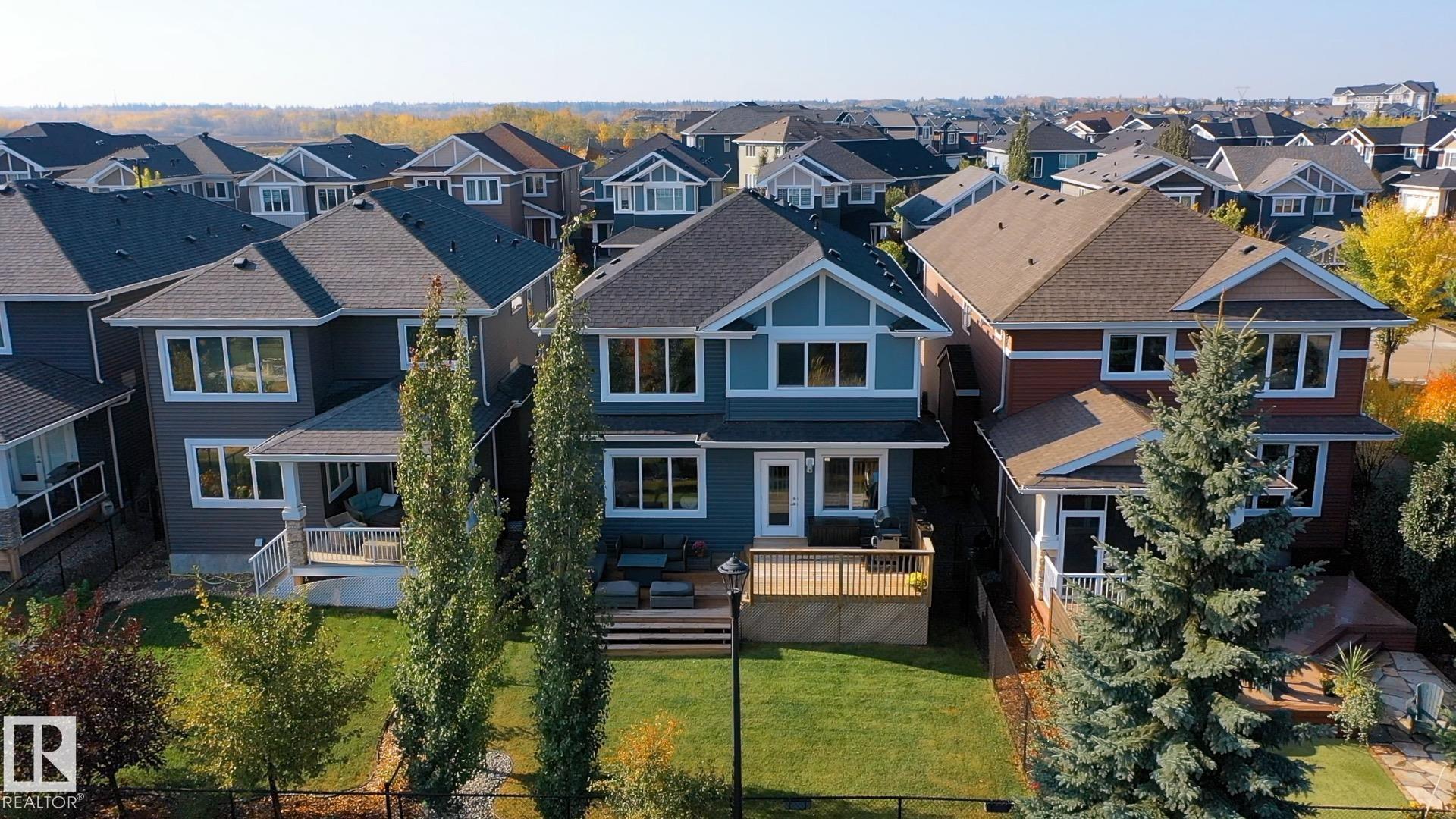 Stunning 2,261 sq ft 2 story with a bonus room and backing onto parks and trails is the perfect family home! Features include soaring 18-ft coffered ceilings, custom millwork, and quartz accents throughout. Sun-drenched rooms with large windows, a gourmet chef?s quartz kitchen with a breakfast bar island, s/s appliances, soft-close cabinets and a walk-through pantry. The spacious dining nook offers access to a two-tiered deck overlooking the greenspace and a fully landscaped yard. The main floor also includes a private office, a floor-to-ceiling tiled feature-wall fireplace, a glass-railed staircase, and a large mudroom with built-ins. Upstairs, you?ll find three generous bedrooms including the primary suite with a spa-like ensuite featuring a jacuzzi tub, double vanity, tiled shower, and walk-in closet. A large bonus room, upper-level laundry, and a 4-piece bathroom complete the second floor. The unspoiled basement with 9-ft ceilings and a built-in bar offers potential for a man cave, gym or playroom.