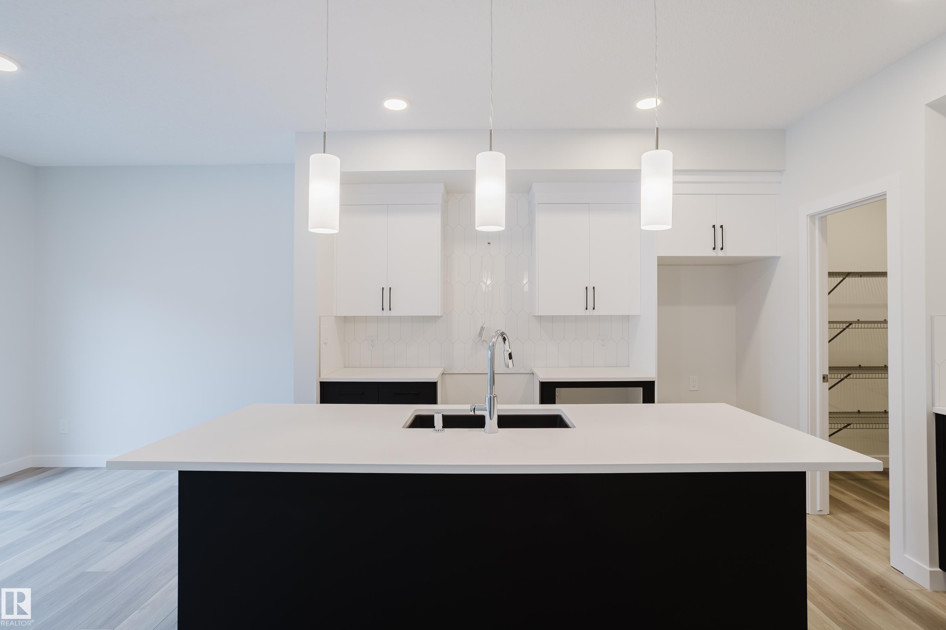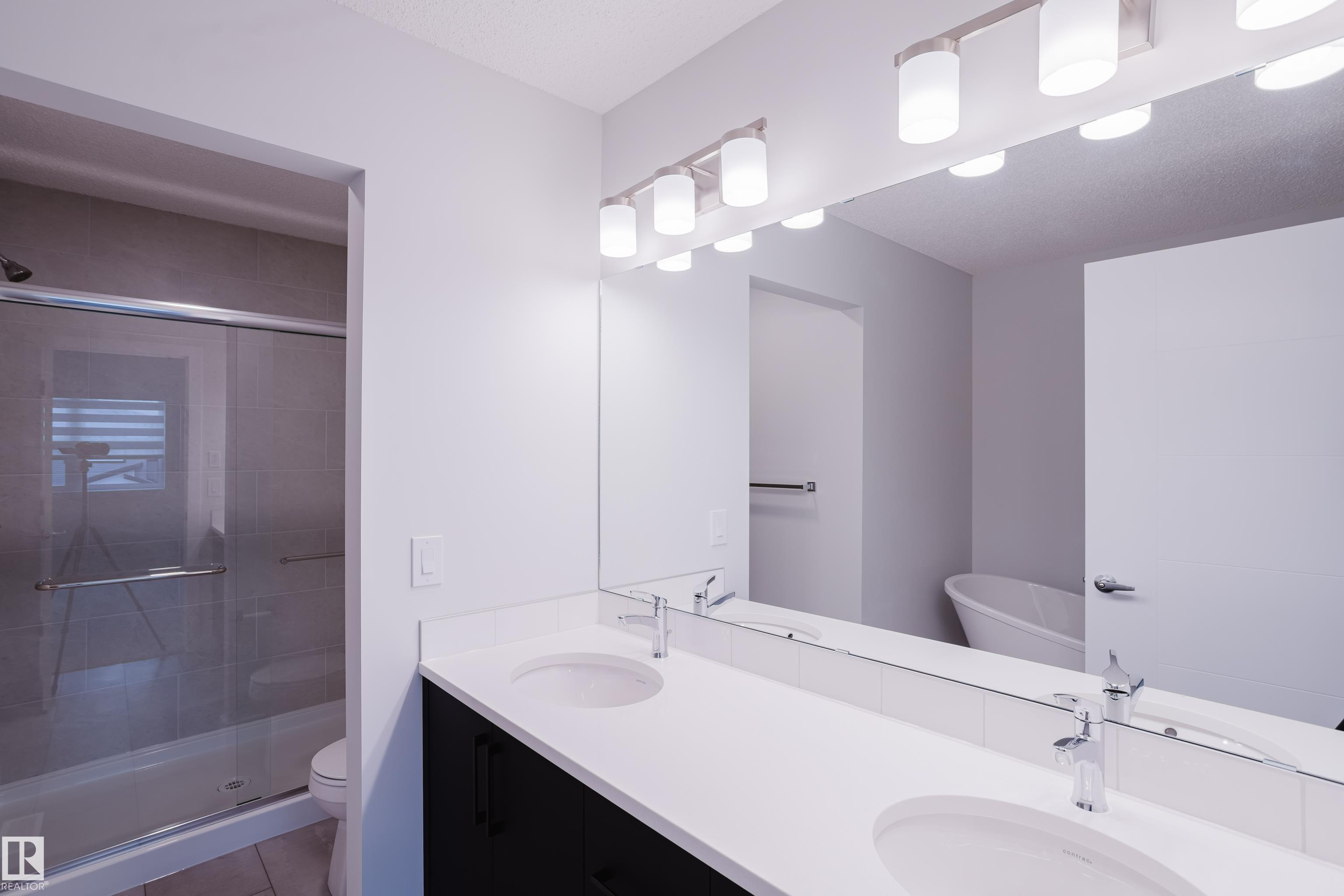 MAJOR PRICE REDUCTION...NOW $44,200 OFF THE ORIGINAL BUILDER PRICE!! The home features 4 bedrooms on the upper level and provides over 2,100 sf of UPGRADED family living. The main floor is highlighted by a GREAT kitchen with a large center island/eating bar, stone counter tops, an appliance allowance, a water line to the fridge, pot & pan drawers, soft-close doors/drawers plus an upgraded backsplash. Other main floor highlights include 9' ceilings, a functional family room with fireplace, wood & metal spindle railings, and a MAIN FLOOR DEN for working from home. The upper level features a HUGE master bedroom with a vaulted ceiling, double sinks, a free standing soaker tub, a walk-in shower plus the washer/dryer are conveniently located. Other highlightS include a SEPERATE SIDE ENTRANCE to the basement (9',ceilings) with rough-ins for a bathroom, wet bar & laundry. The gas lines for the BBQ and kitchen are also roughed-in PLUS the attached garage has an 8' door and is 2' longer. THIS IS THE ONE TO BUY!