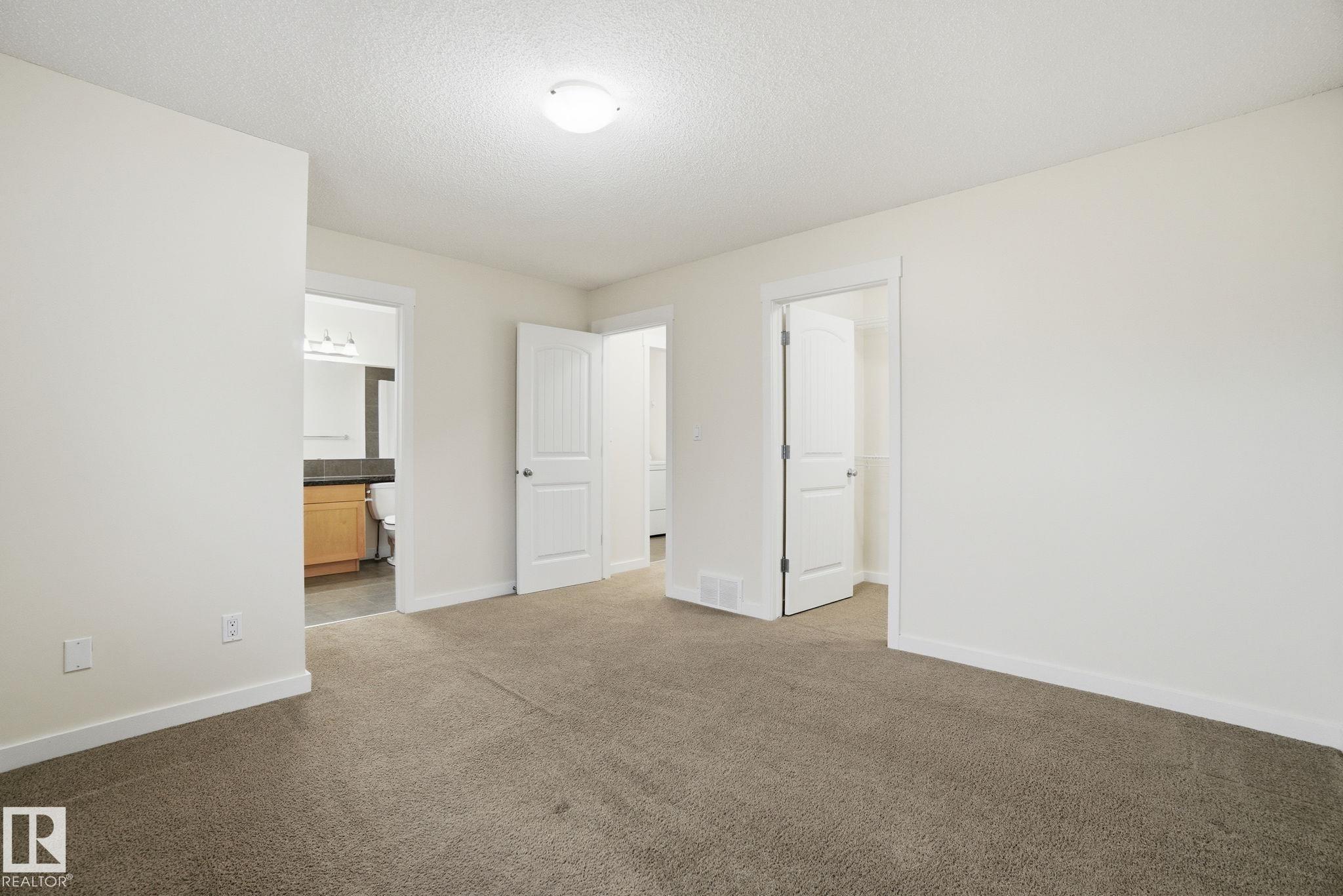 Experience the perfect blend of style and convenience in this Immaculate 2-bedroom and 2.5 bathrooms half duplex nestled in the desirable community of Hollick Kenyon, boasting all the modern upgrades, Freshly Painted and Steam Cleaned the Carpet. The main floor showcases a stunning U-shaped kitchen complete with granite countertops, maple cabinets, stainless steel appliances (including a waterline to the fridge), ceramic tiles, and a beautiful backsplash, all opening onto a cozy living room anchored by a gas fireplace with a mantel. Upstairs, you'll discover two generously sized bedrooms, each a private retreat featuring its own 4-piece ensuite, walk-in closet, and a conveniently located laundry room, all accessible via stairs upgraded with elegant iron rod spindles. The property is fully fenced and landscaped, comes complete with all appliances and window coverings, and offers easy access to amenities, Anthony Henday, and Manning Drive?all with the major benefit of NO CONDO FEES.