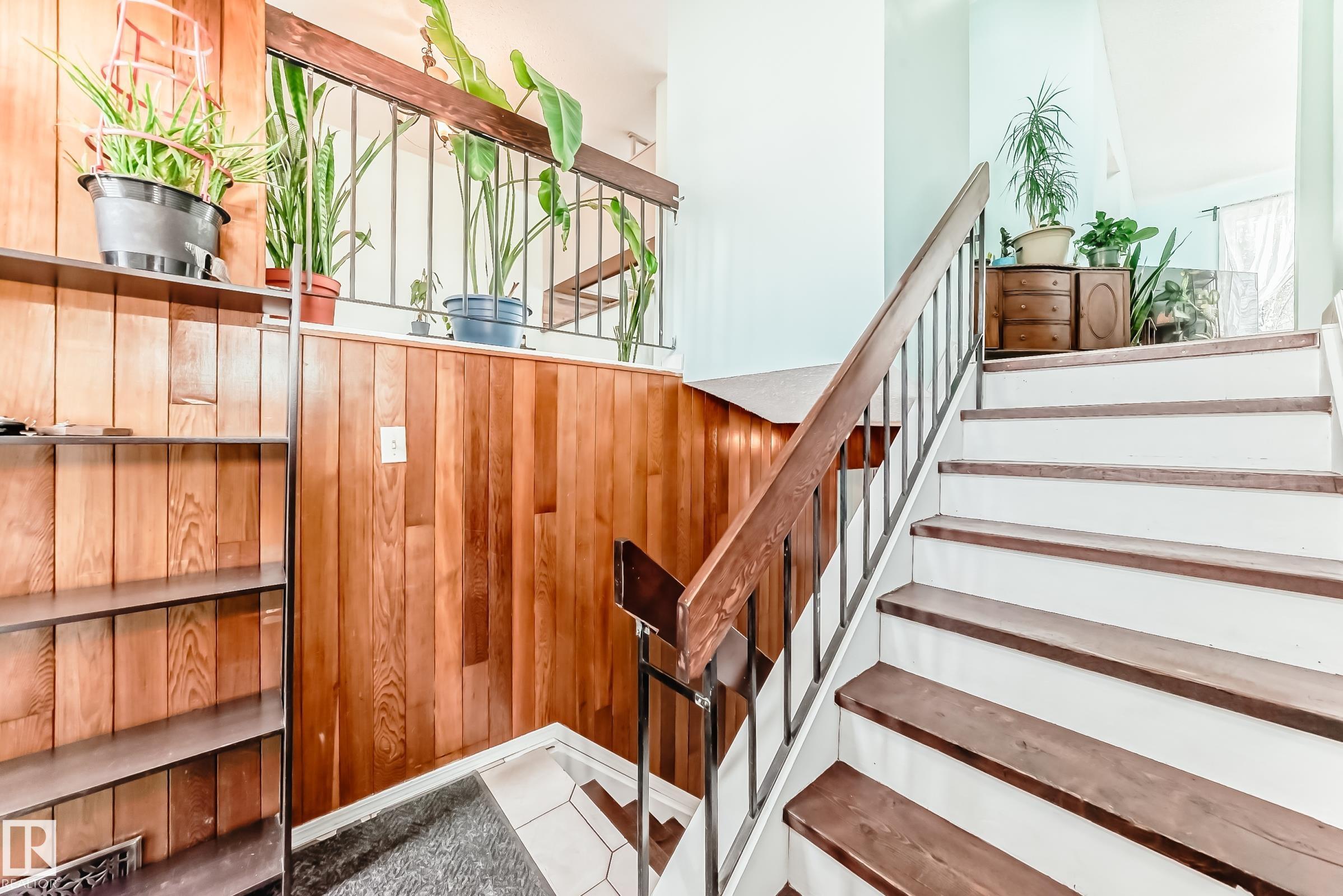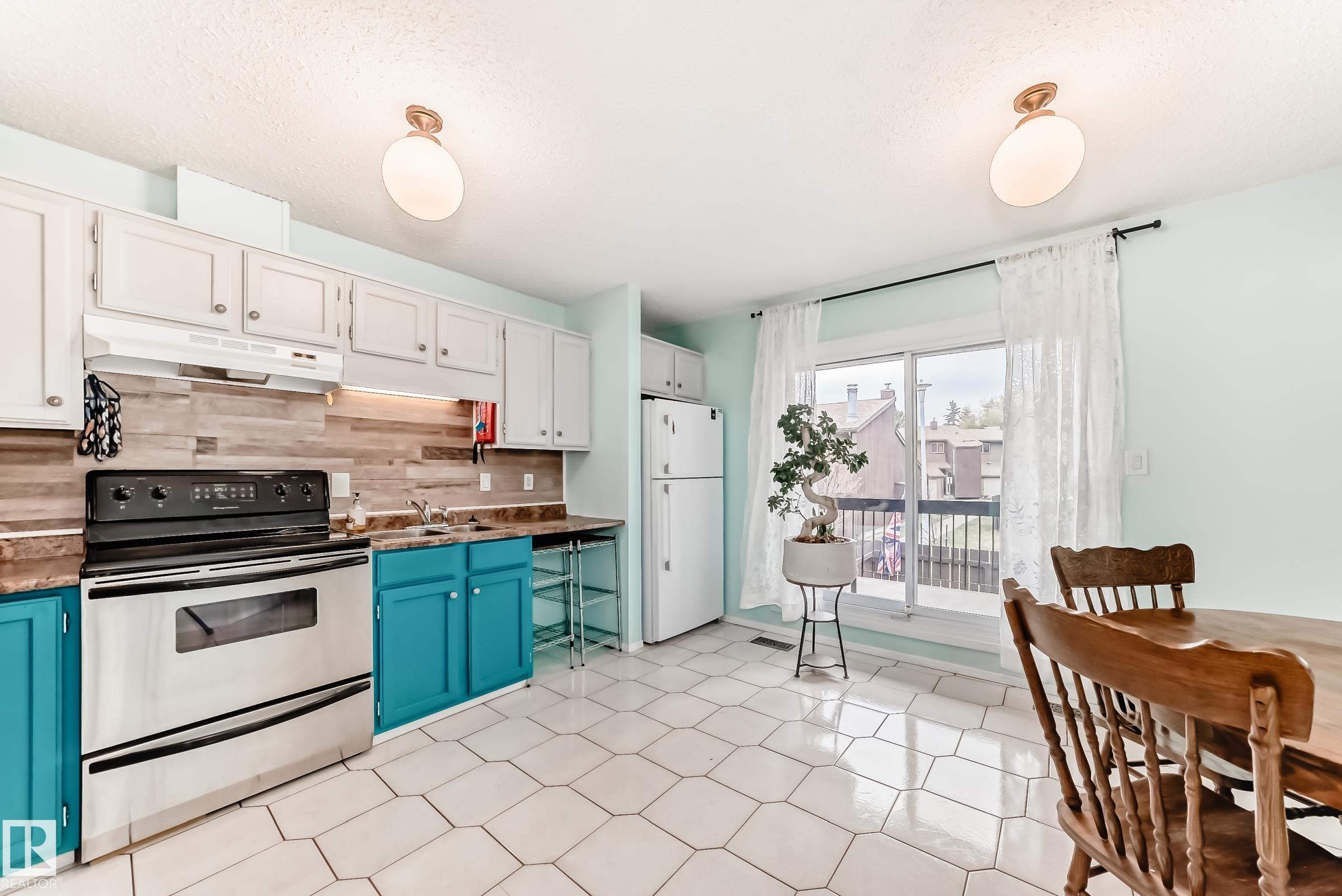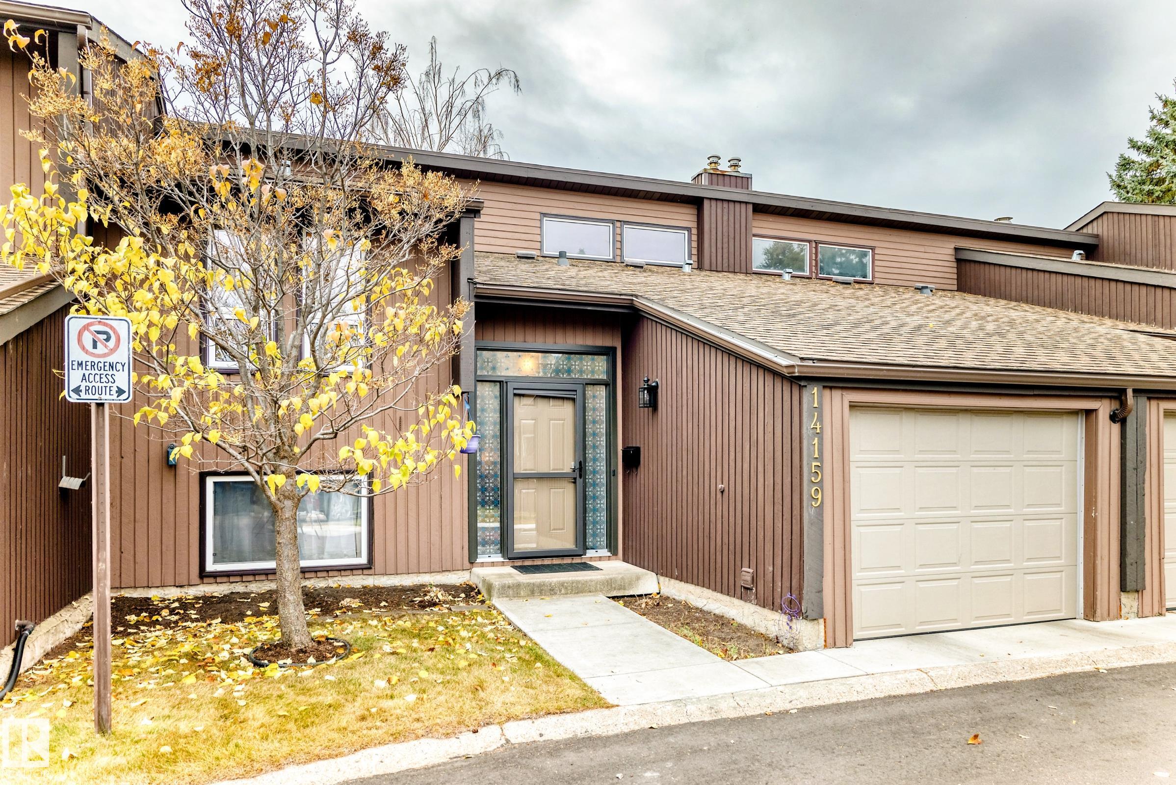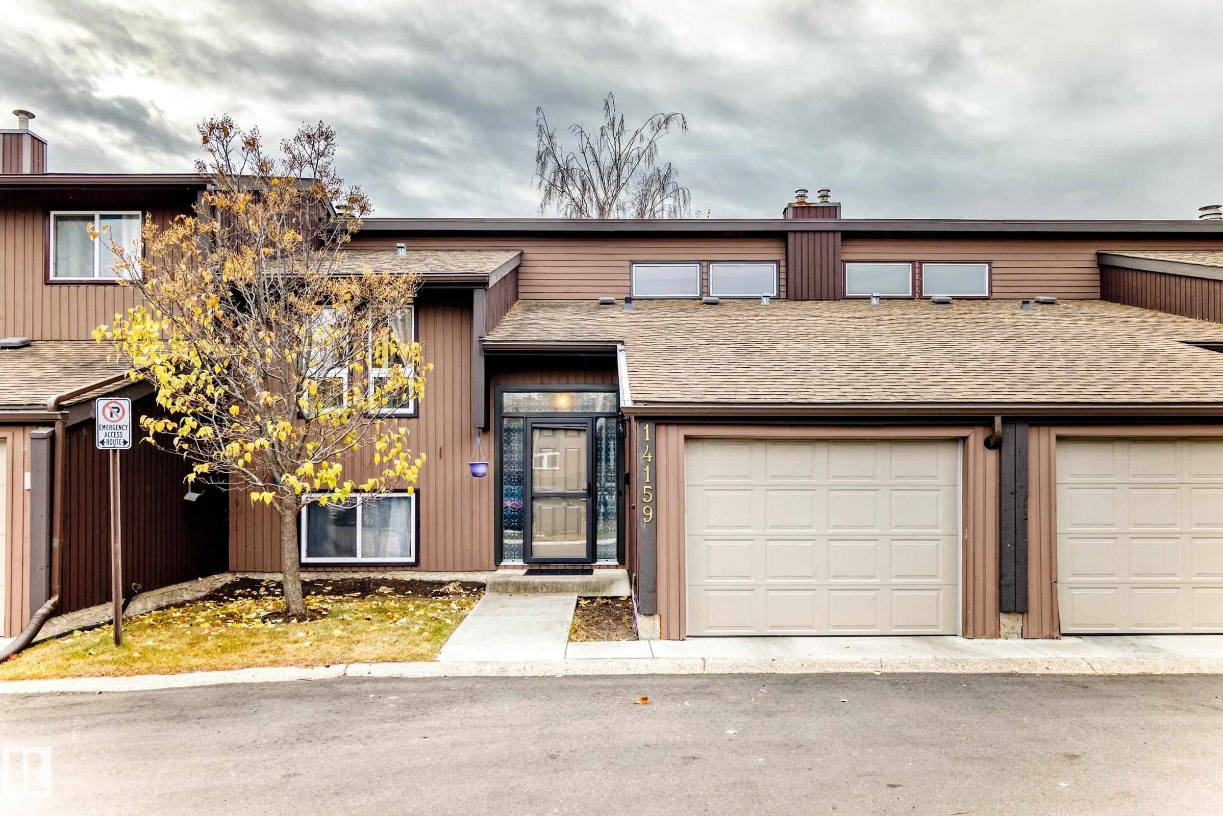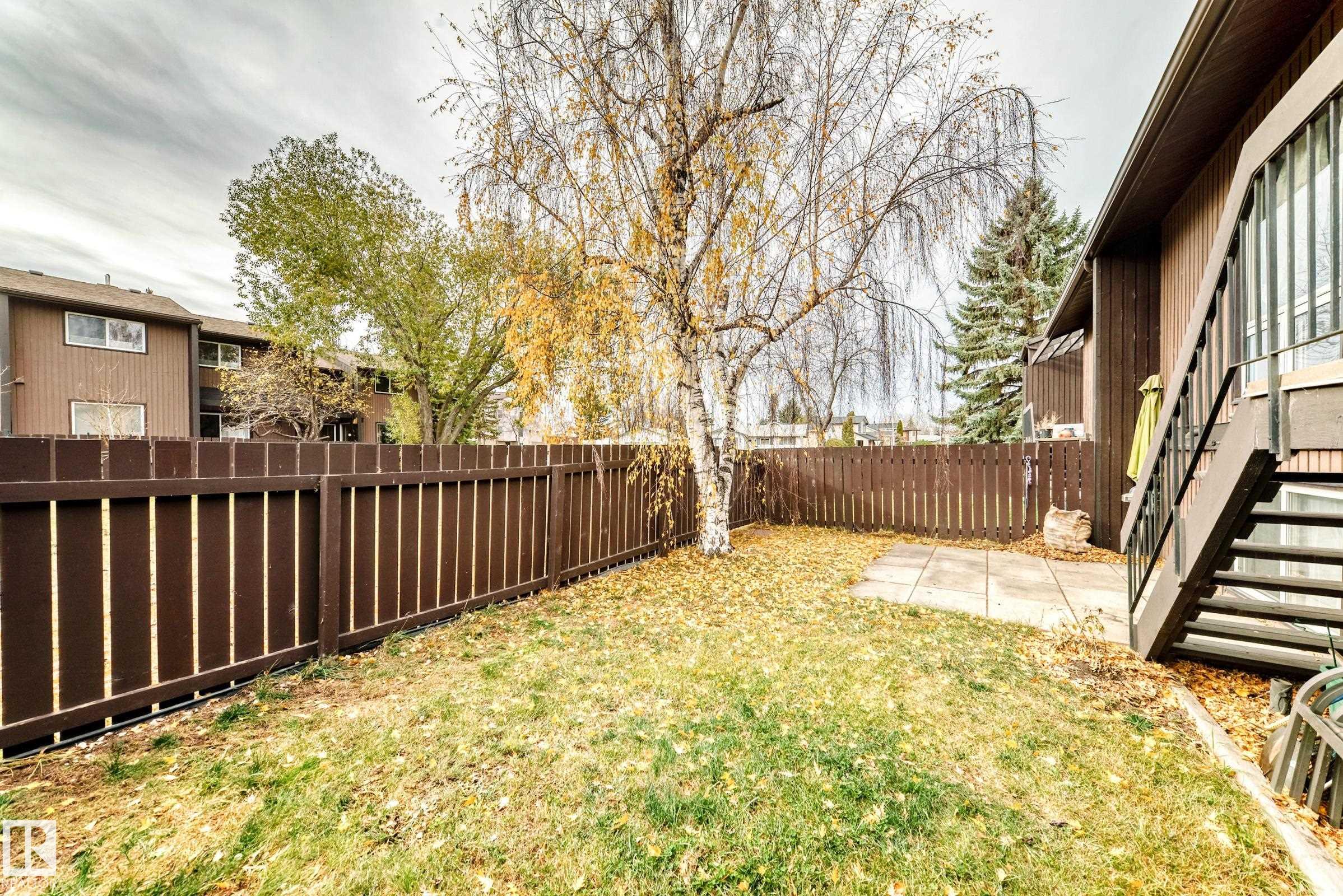 FANTASTIC HOME & COMPLEX! This 3-bedroom bi-level townhouse with an attached garage offers an exceptional layout and bright, welcoming spaces. The main floor features vaulted ceilings, abundant natural light, a spacious kitchen with an eat-in area, and a separate dining room that can easily double as a den or home office. You?ll also find a large living room, a convenient 2-piece bath, and a storage room. The lower level includes three generous bedrooms, a full main bath, laundry/utility area, and large windows that let in plenty of sunlight. Enjoy the south-facing yard backing onto green space ? complete with a covered balcony, extra storage, and a concrete patio for relaxing or entertaining. This well-managed complex has seen numerous recent upgrades, including new windows, doors, shingles, parking lot, and roads. It also sides onto Bannerman Park and the local community league ? perfect for outdoor activities and community living. Furnace and hot water tank have been updated.