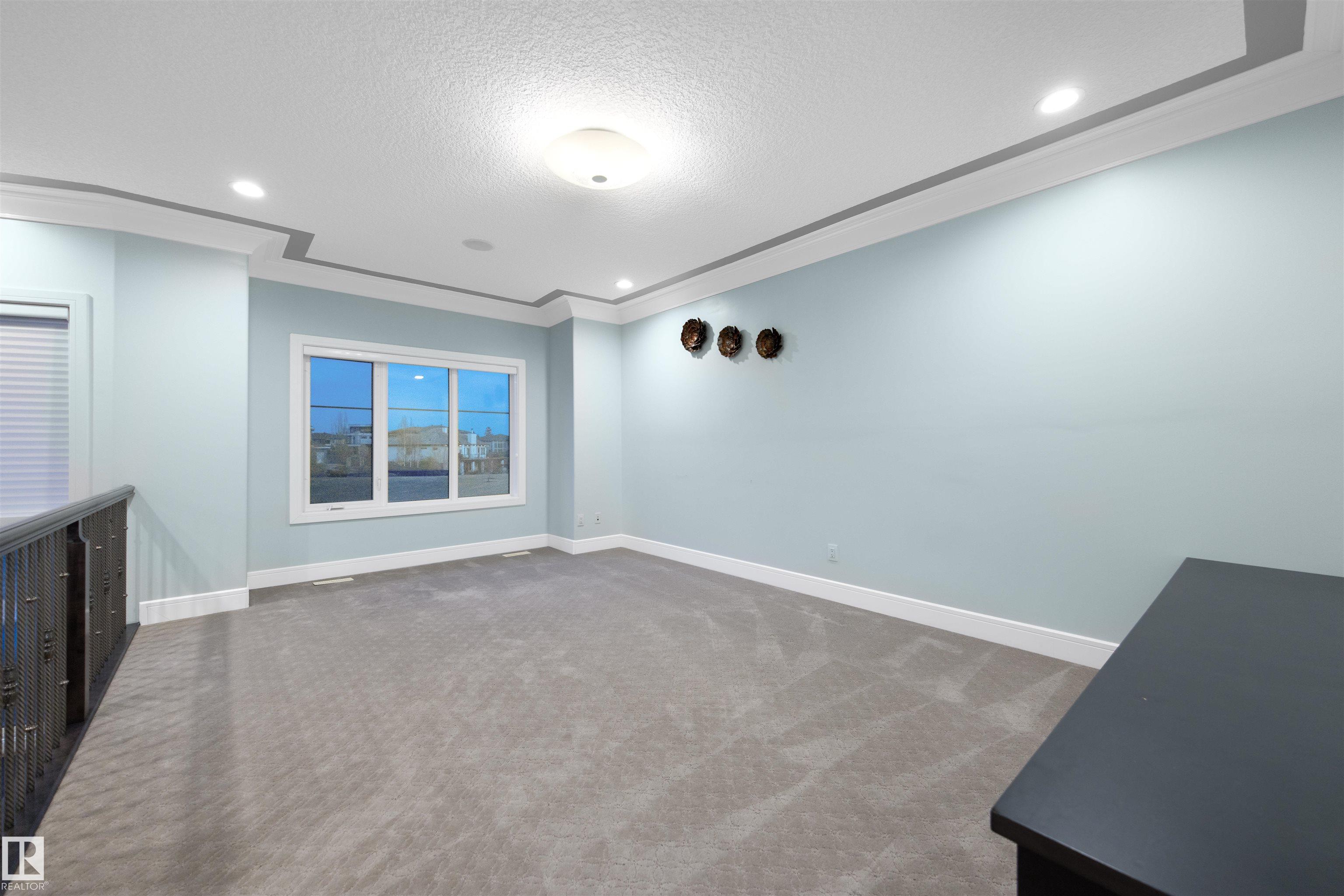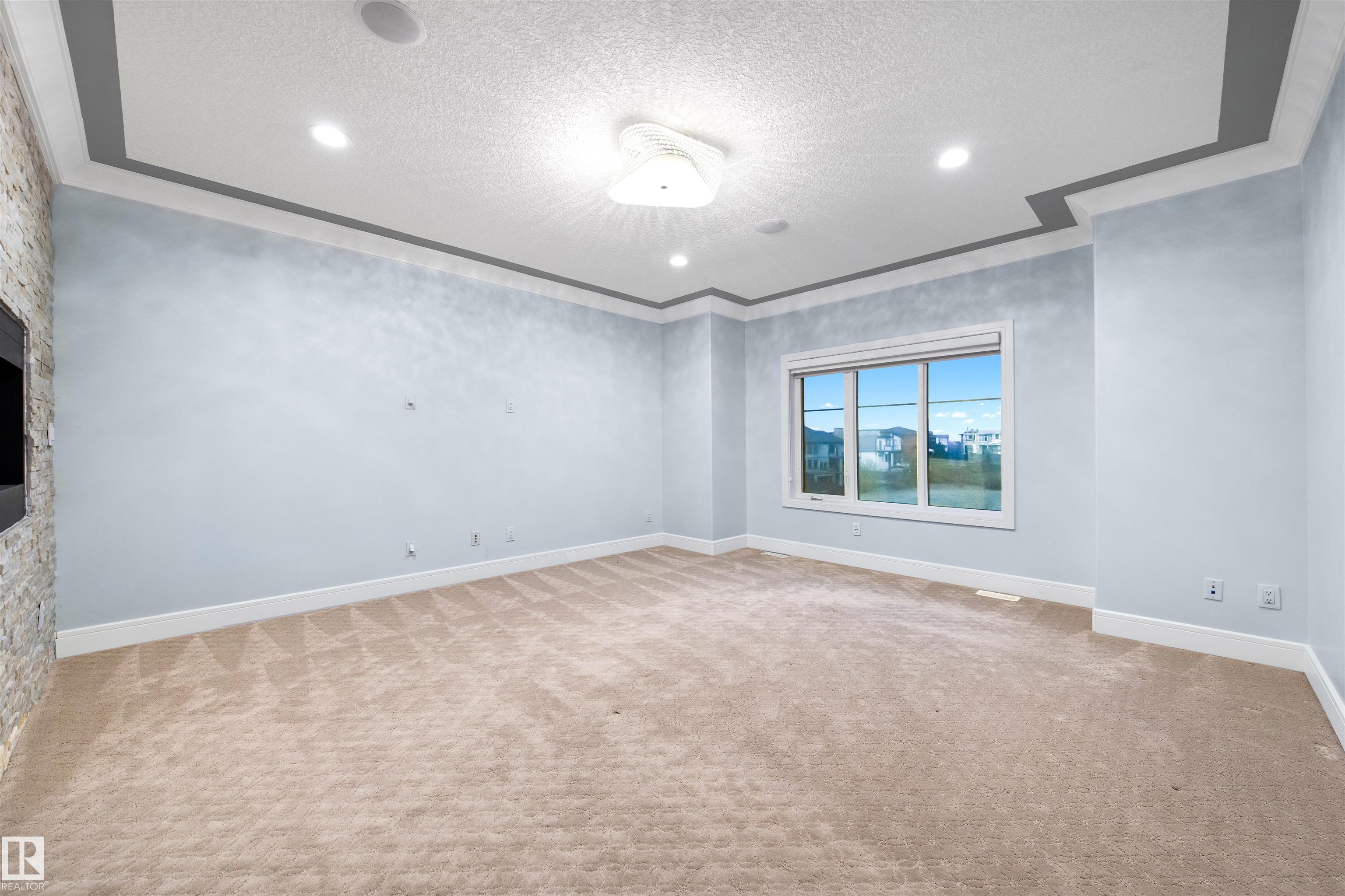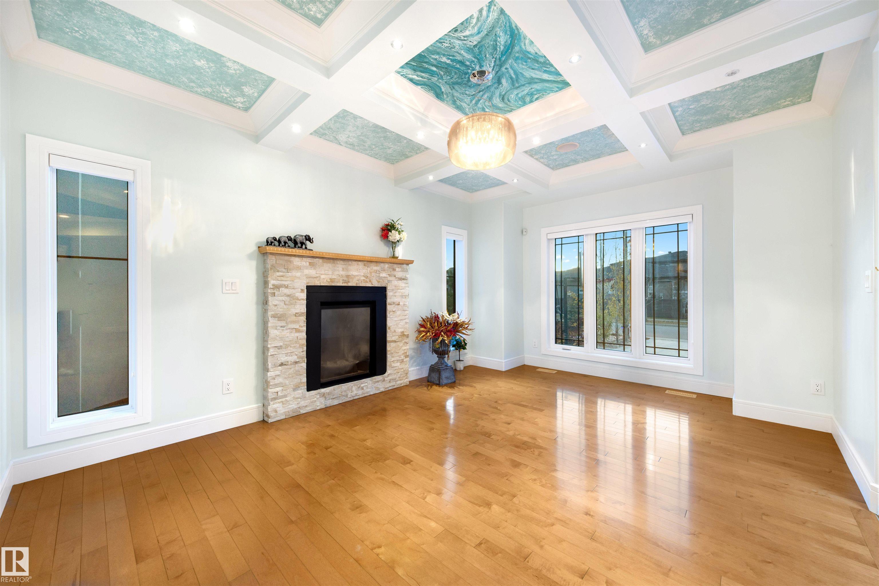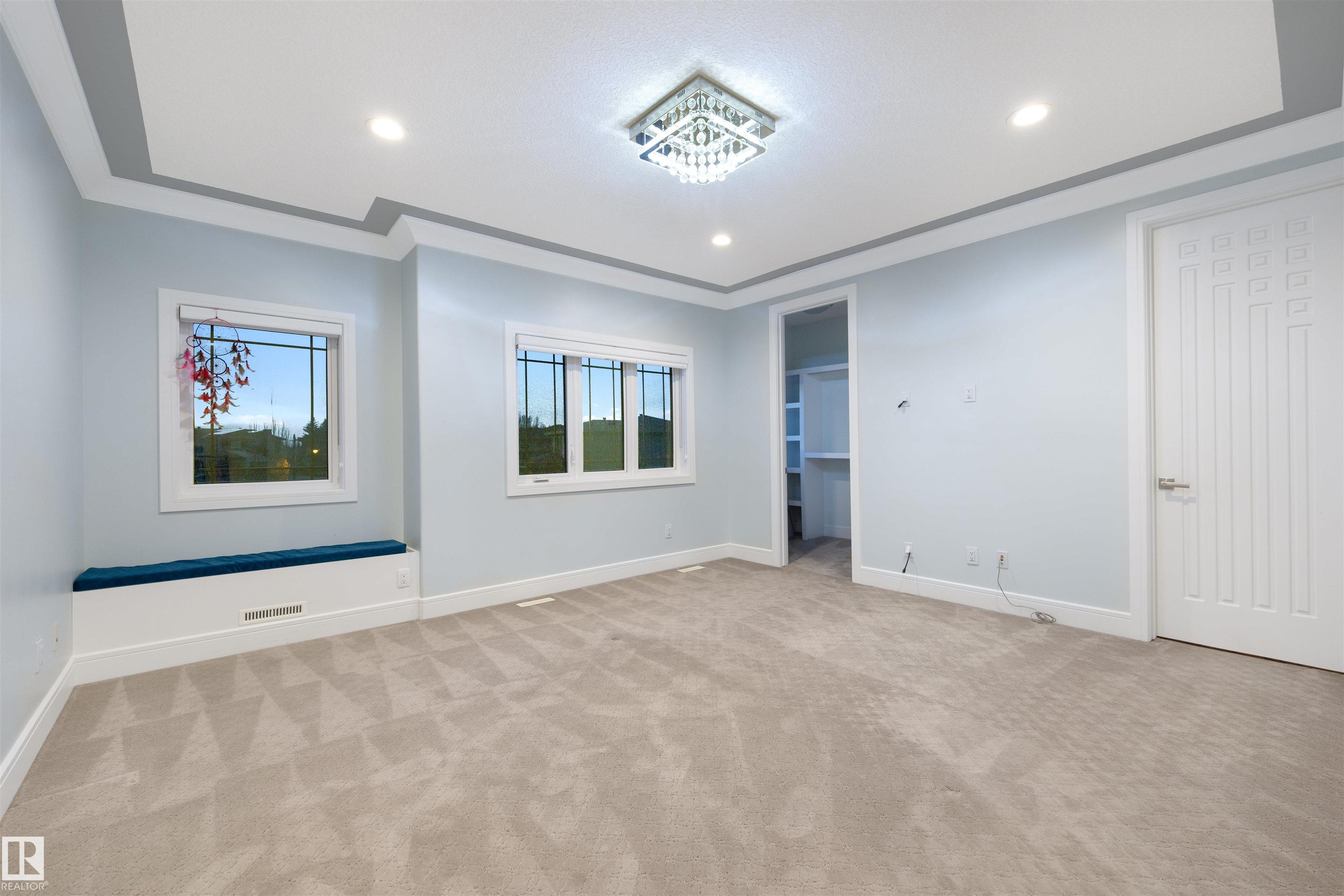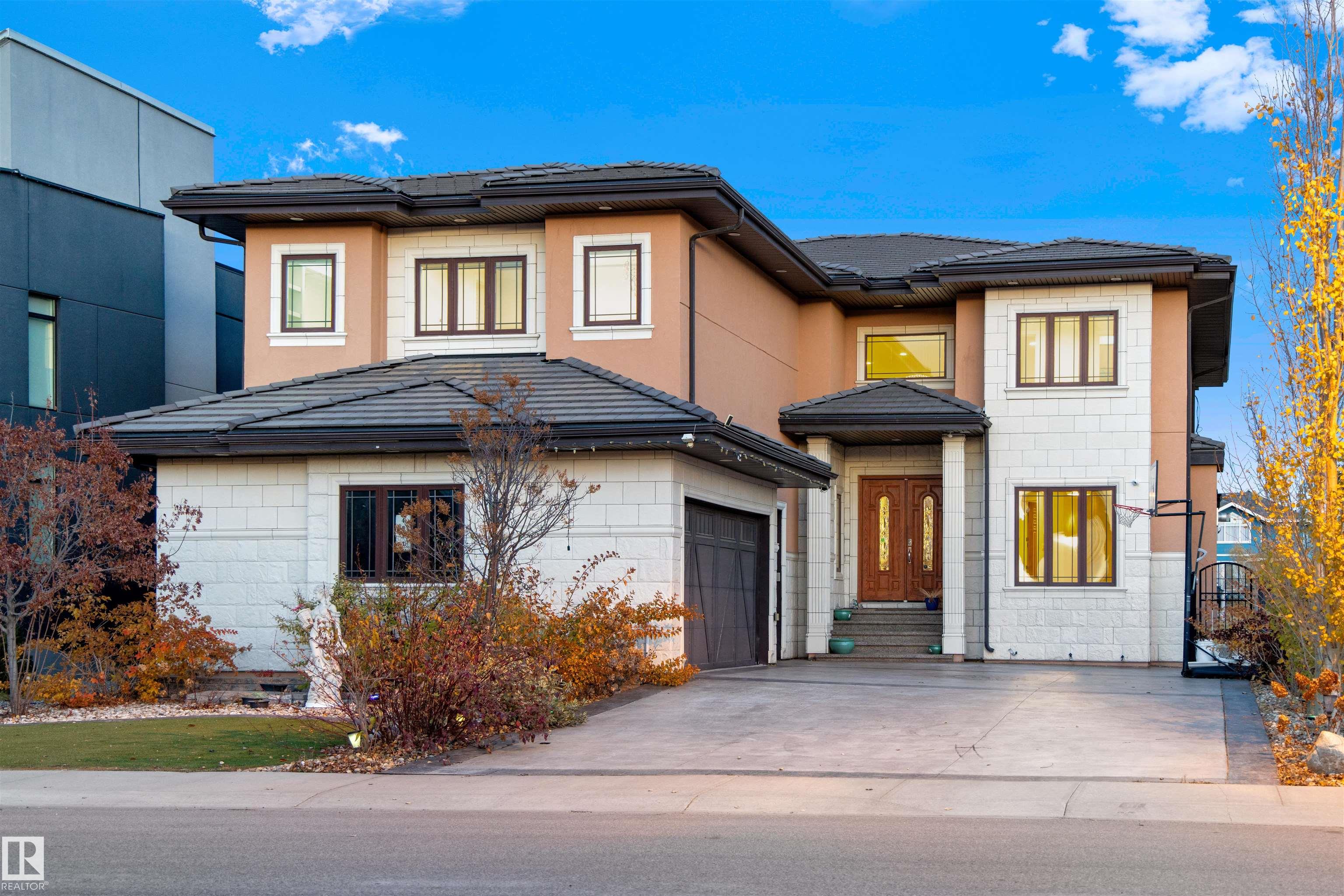 Exquisite WALKOUT ESTATE in prestigious Westpointe of Windermere, offering 6,152 sq.ft. of living space and BACKING ONTO SERENE GREEN SPACE. This thoughtfully designed custom home features: spacious 6 bedrooms, 6 baths (including 4 en-suites), a HEATED TRIPLE GARAGE, central A/C, high-end appliances, spice kitchen, elegant feature walls, open-to-above living area, formal dining & living rooms, BALCONY, HEATED BASEMENT FLOOR, plus a main-floor bedroom with full bath. The upper level includes: a bonus room overlooking the park and a luxurious primary suite with spa-style ensuite, jacuzzi, fireplace, and steam shower. The walkout lower level is designed for entertainment with a large recreation room, gym, bedroom, full bath, and access to a covered patio. Fully landscaped with statues and a fountain, this exceptional home combines elegance, comfort, and craftsmanship.