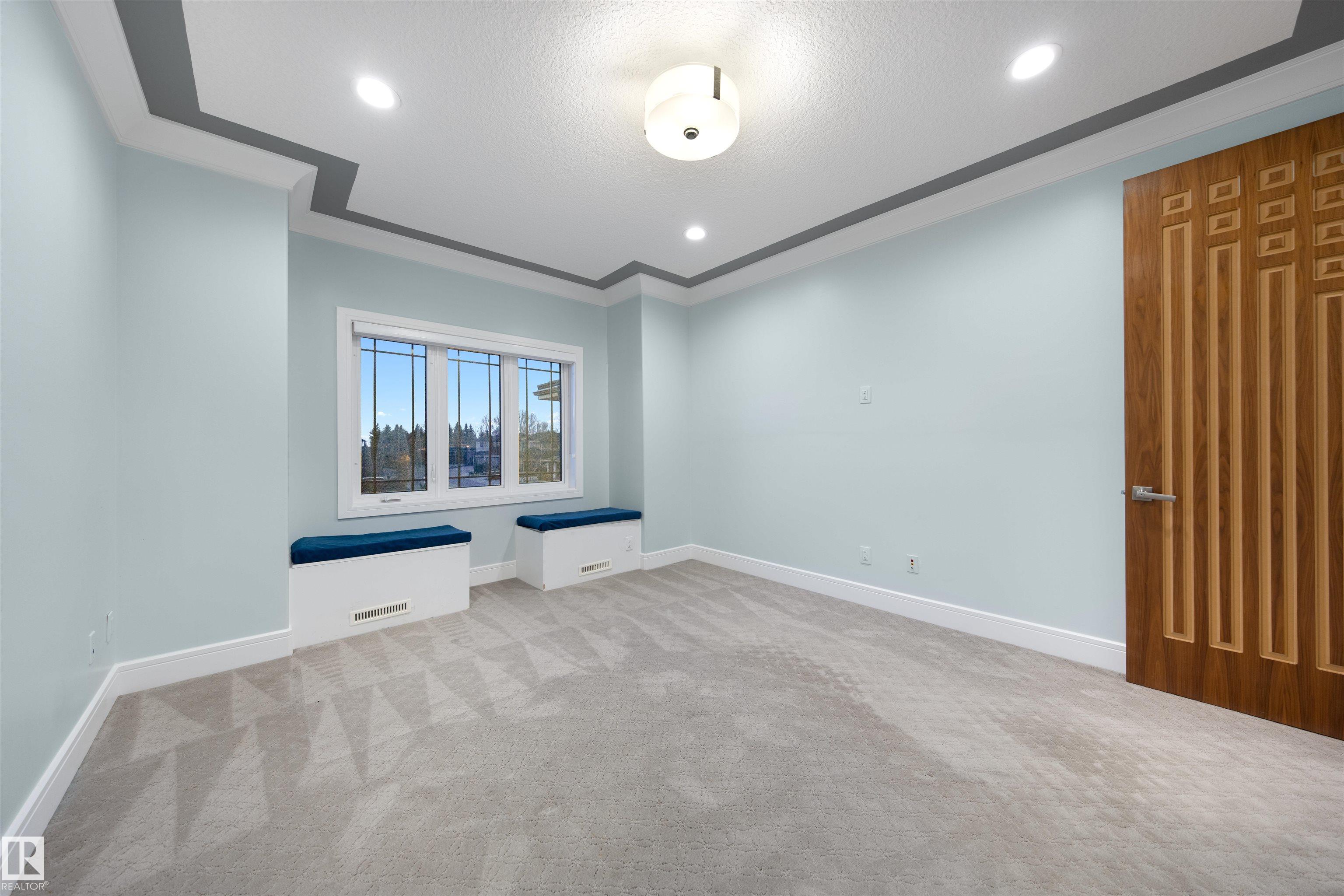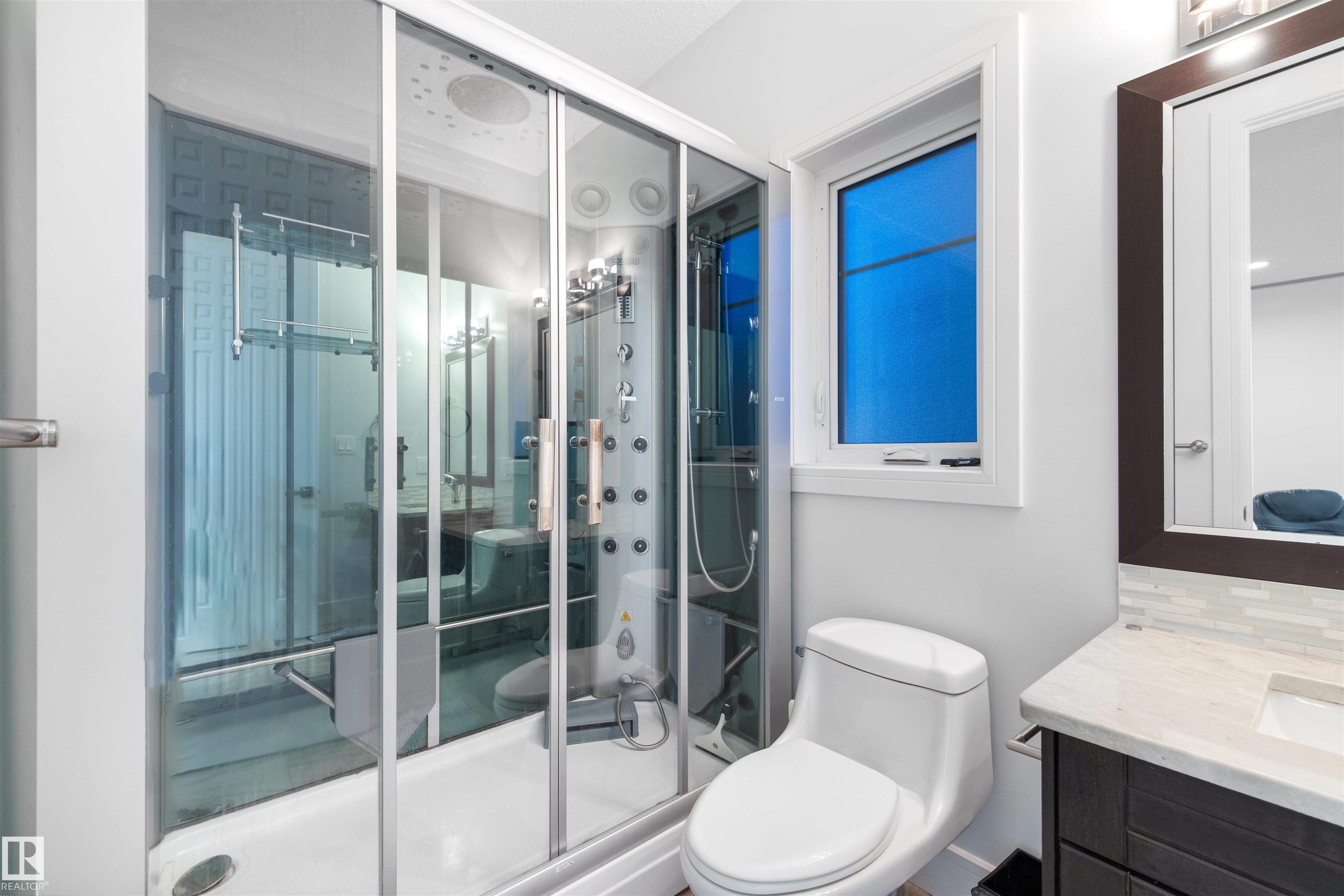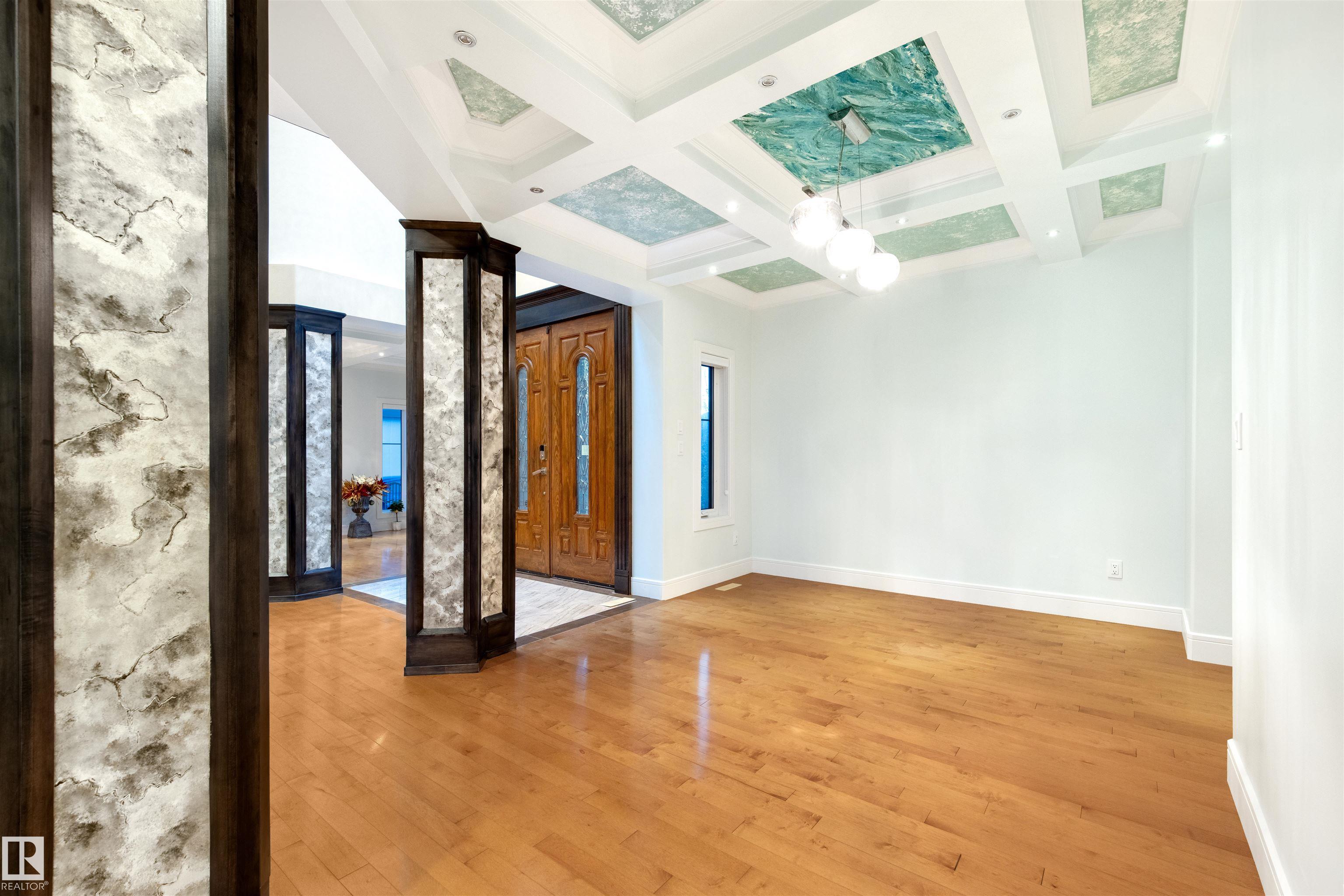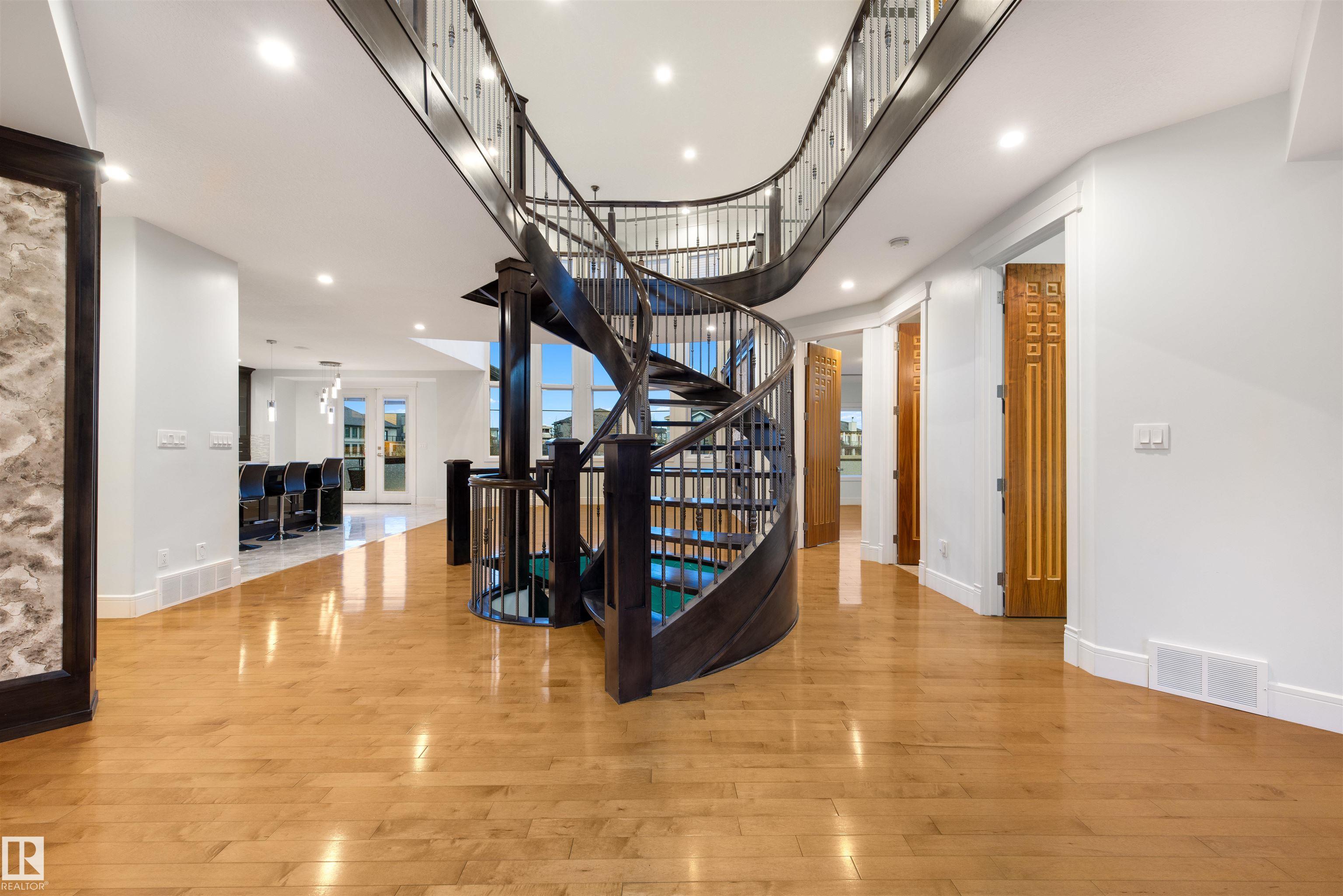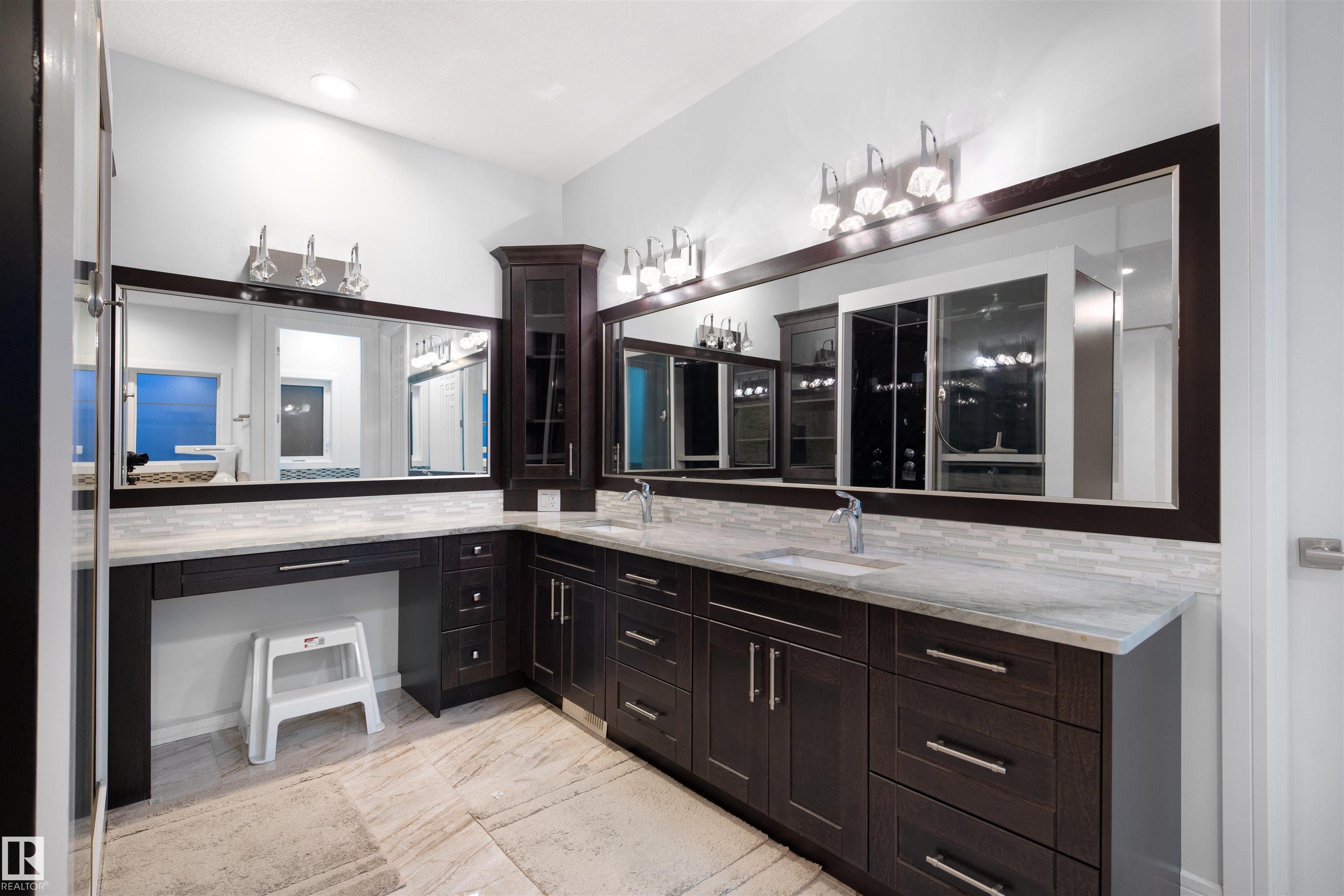 Exquisite WALKOUT ESTATE in prestigious Westpointe of Windermere, offering 6,152 sq.ft. of living space and BACKING ONTO SERENE GREEN SPACE. This thoughtfully designed custom home features: spacious 6 bedrooms, 6 baths (including 4 en-suites), a HEATED TRIPLE GARAGE, central A/C, high-end appliances, spice kitchen, elegant feature walls, open-to-above living area, formal dining & living rooms, BALCONY, HEATED BASEMENT FLOOR, plus a main-floor bedroom with full bath. The upper level includes: a bonus room overlooking the park and a luxurious primary suite with spa-style ensuite, jacuzzi, fireplace, and steam shower. The walkout lower level is designed for entertainment with a large recreation room, gym, bedroom, full bath, and access to a covered patio. Fully landscaped with statues and a fountain, this exceptional home combines elegance, comfort, and craftsmanship.