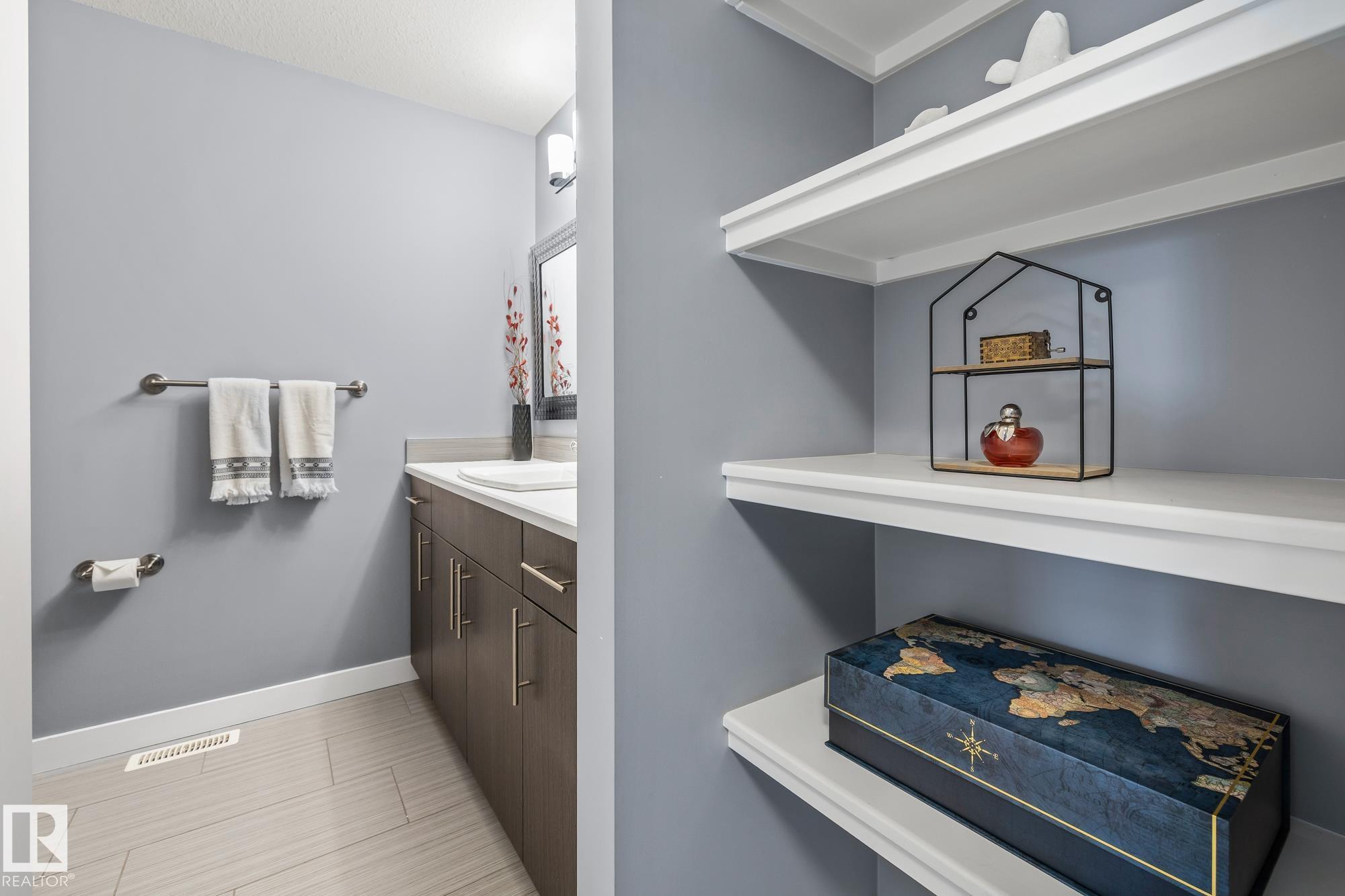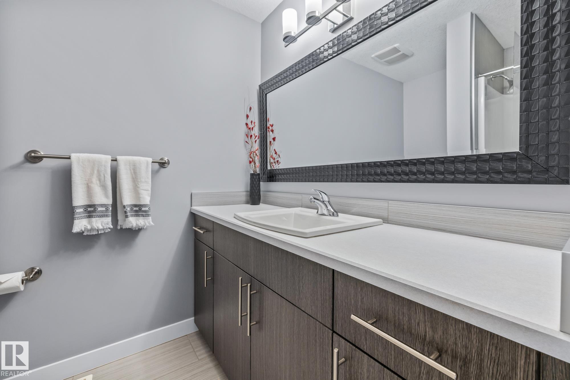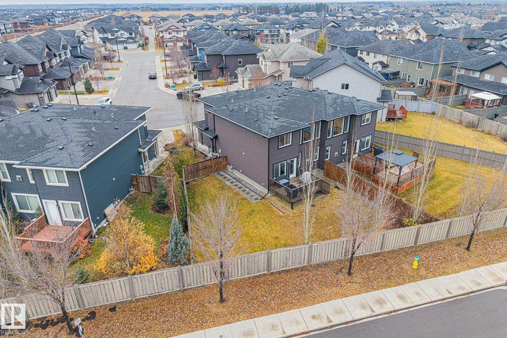Rarely do you come across a half duplex that features an open-to-below concept, making it feel more open and spacious than any others. This fully upgraded Dolce Vita home is located in a quiet cul de sac in the heart of Windermere, which is surrounded by amenities, and even has an upgraded adjoining wall with extra insulation to minimize noise travel. The main floor welcomes you with a large entryway that leads into the cozy living room with soaring 18ft ceilings, a gas fireplace, and large windows that allow in plenty of sunshine. The kitchen boasts a large island w/ seating, quartz countertops, stainless steel appliances, a gas stove, a walk-in pantry, a comfy dining area, and a central vac kick plate. Upstairs hosts the large primary bedroom with a walkthrough ensuite, featuring dual sinks, and a spacious walk-in closet. Upstairs also has 2 more bedrooms, a 4pc bathroom w/ built-in shelving, and a laundry room for added convenience. The basement is roughed-in and awaits your final touch. Welcome home!