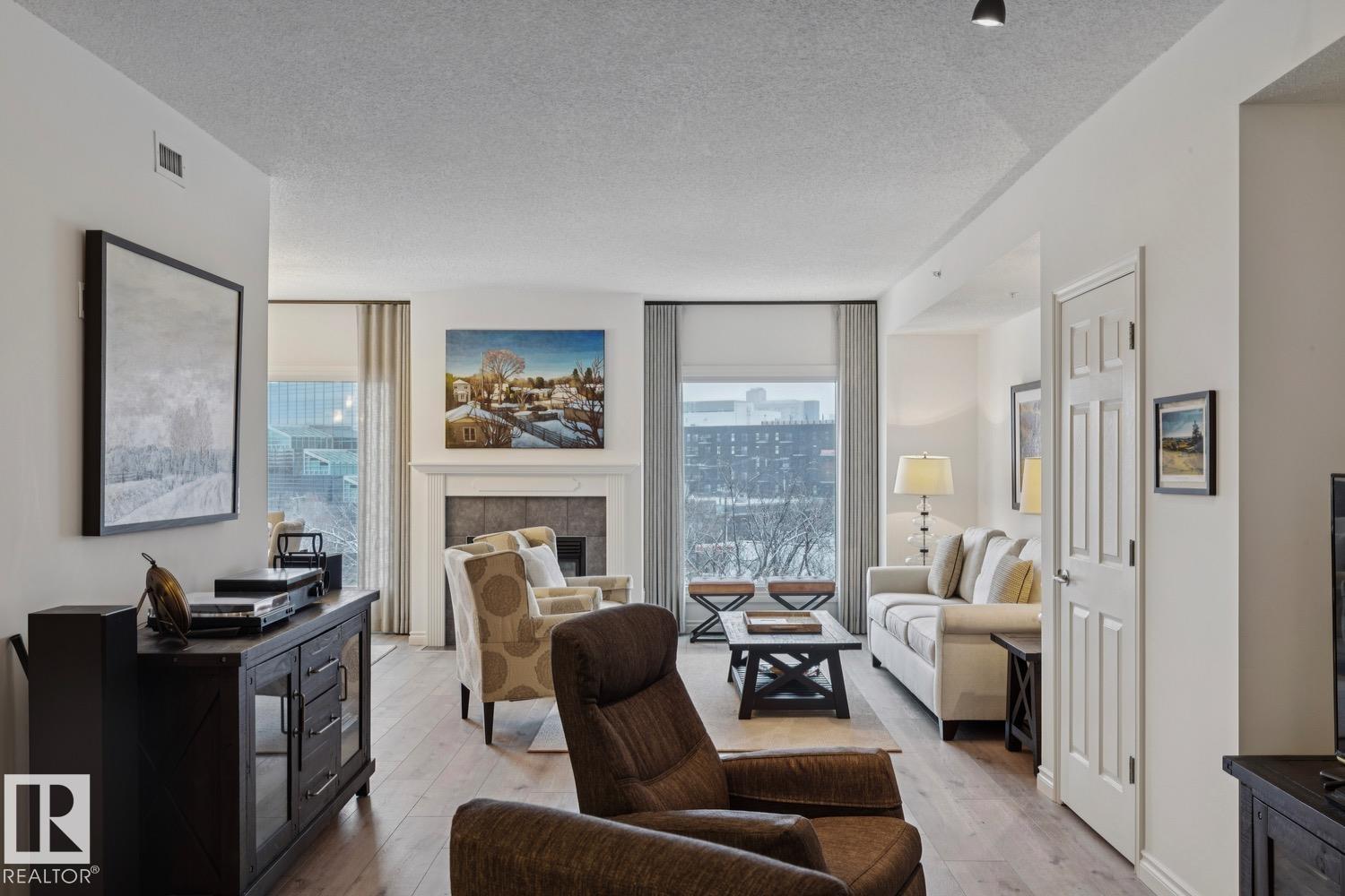 Welcome to this gorgeous renovated condo home in the highly desirable "Properties on High Street"! This luxury two-bedroom unit on the fifth floor is filled with high-end finishings throughout. Walk through the front door and you are greeted by an elegant entry corridor to the open-concept living space. The large living room is spacious & bright with stunning city views - the perfect place to entertain friends or relax with family. Adjacent dining room provides access to good sized private patio. The kitchen features new white cabinetry, granite countertops, stainless steel appliances & good sized pantry. Primary bedroom is your own personal oasis with his & her closets as well as 4pce ensuite with deep tub. Second bedroom is a good size and has 3pce main bathroom just outside the door. Excellent proximity to downtown Edmonton and its many commercial amenities, Grant MacEwan/University of Alberta, & the river valley! ADDITIONAL FEATURES: Underground parking, in-suite laundry, A/C, ample storage & more!