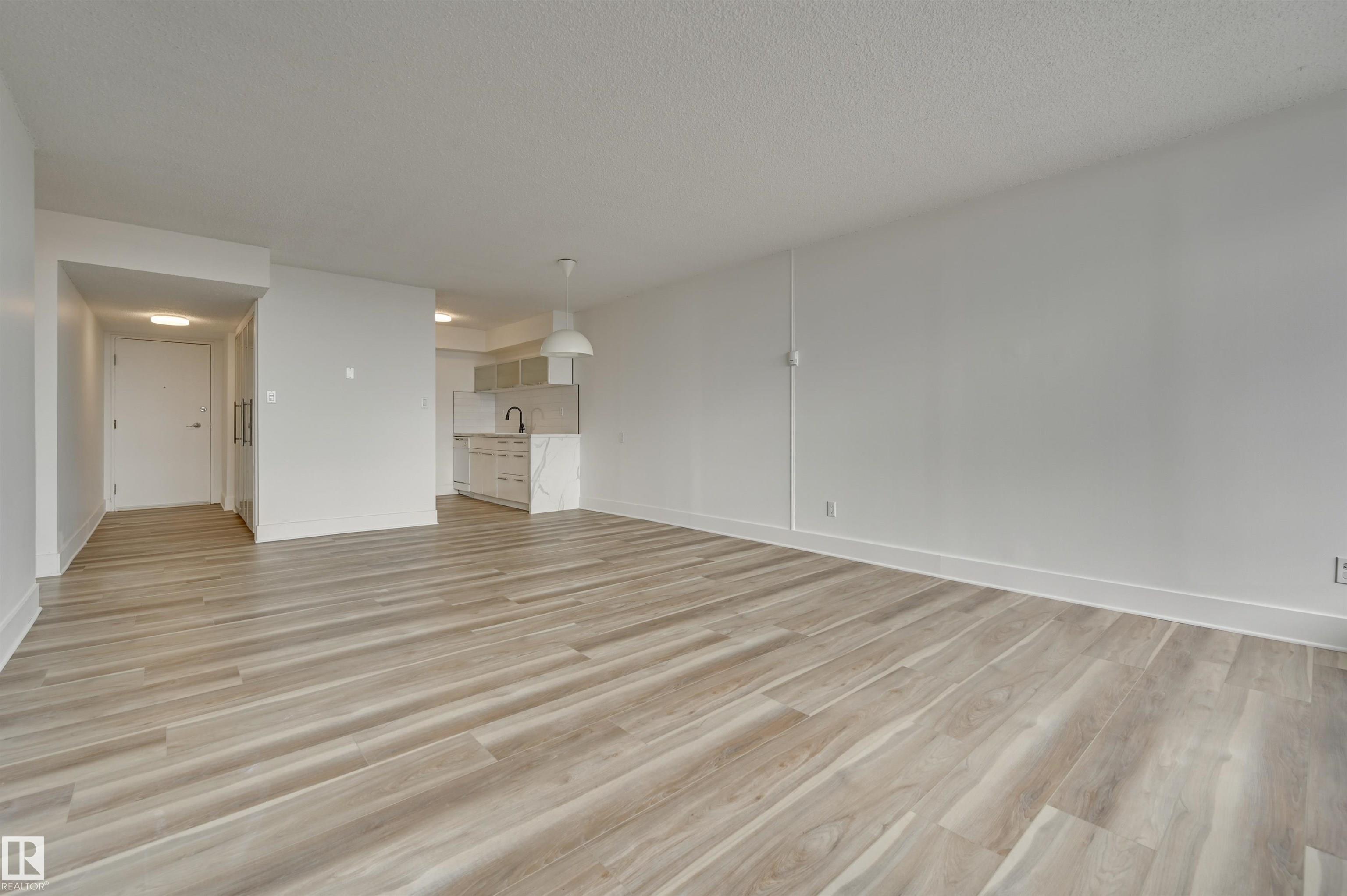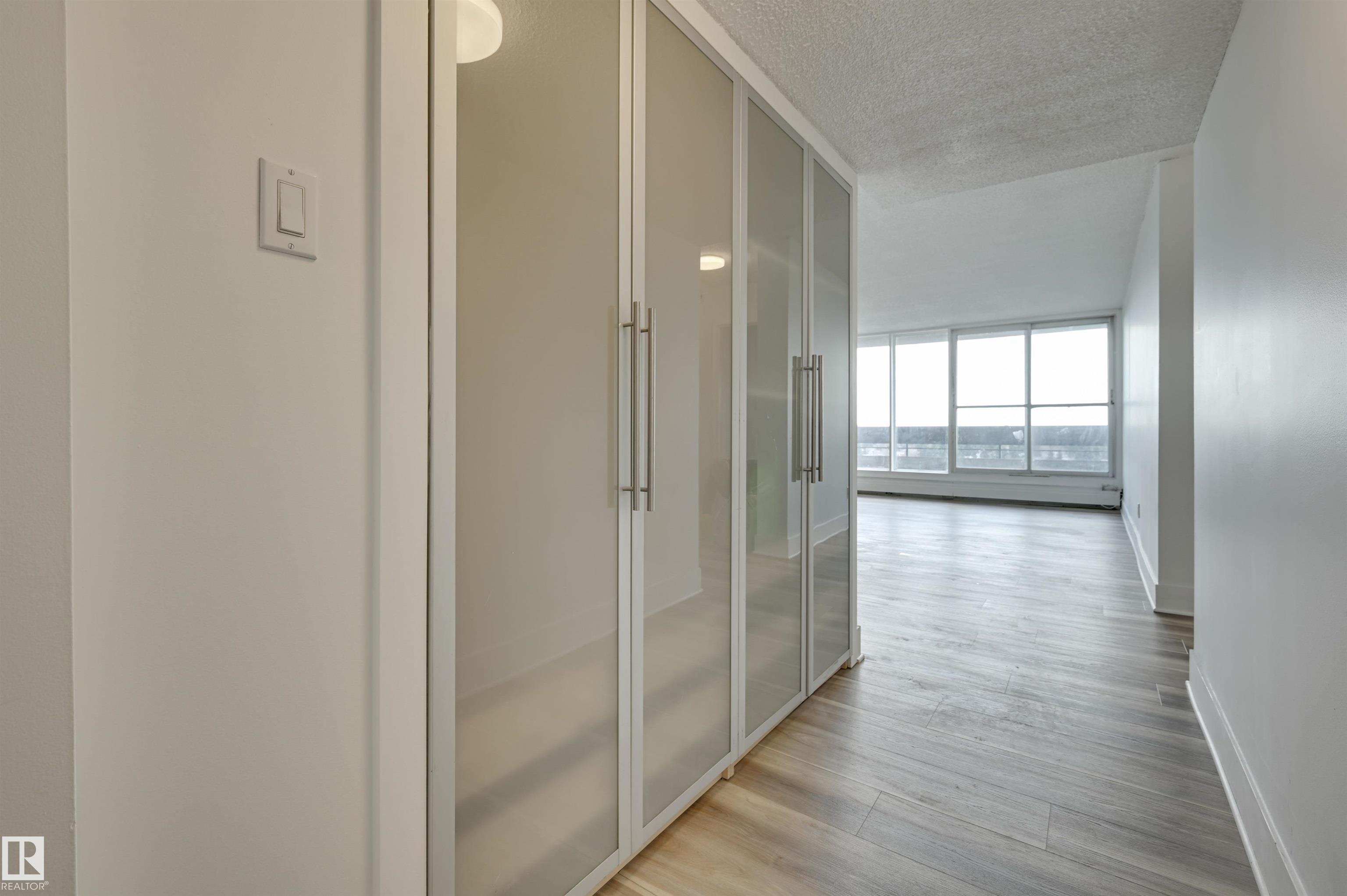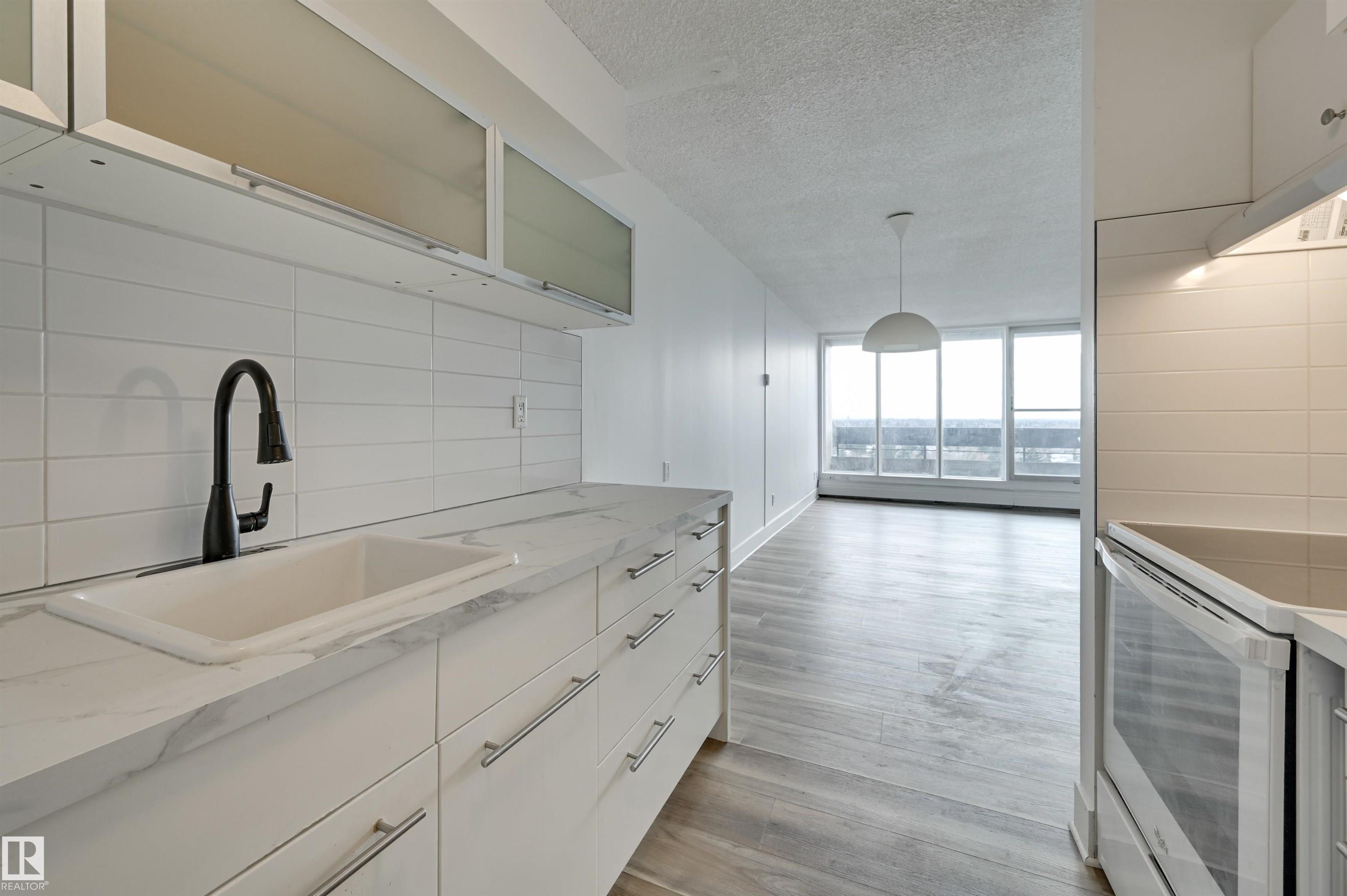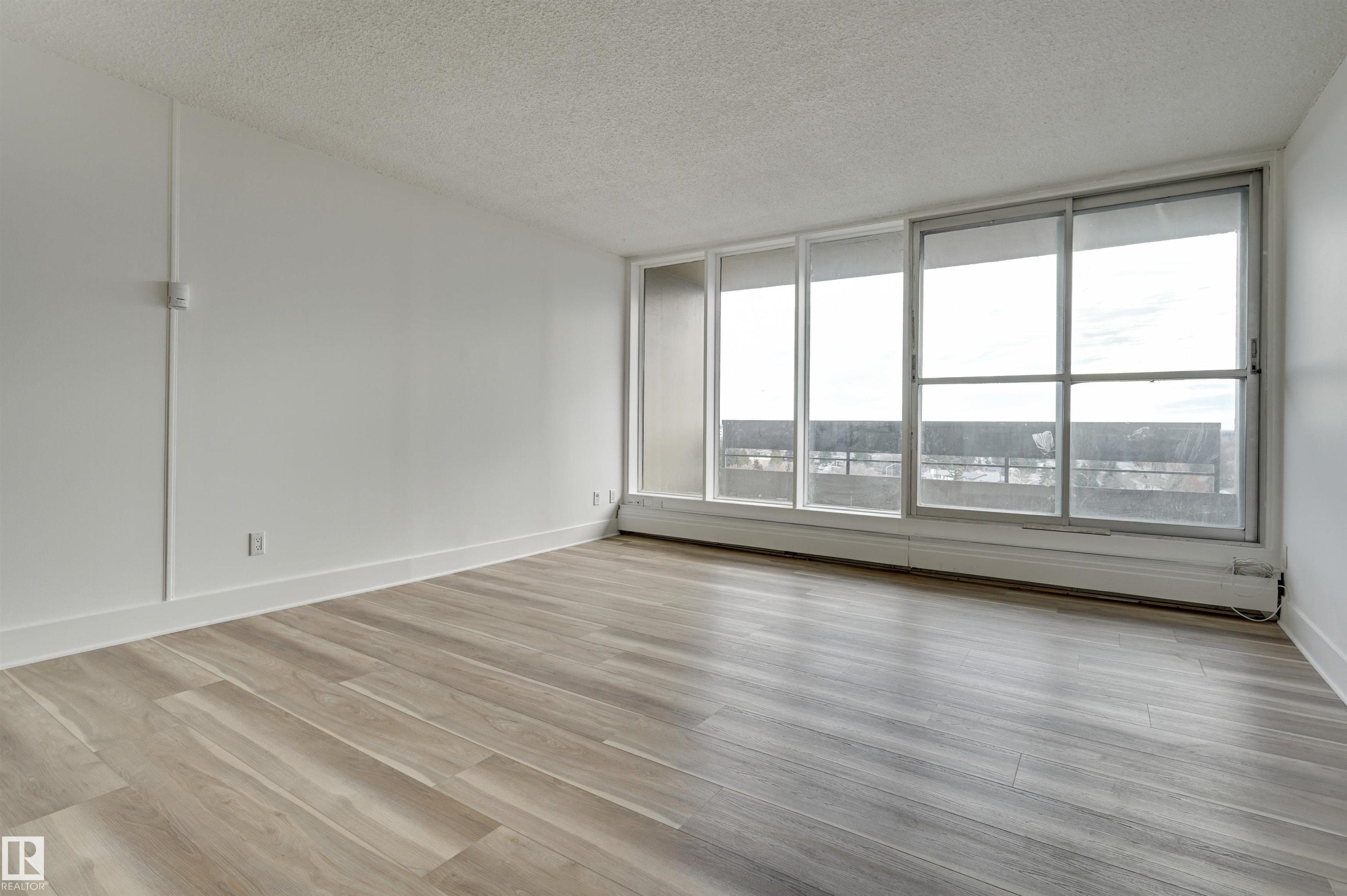 Check out this spacious 1-bedroom condo in a concrete building. The living room is a grand space with doors that open wide to a large Southeast-facing balcony with unobstructed, stunning views. Great living with an upgraded kitchen, new countertop, newer fixtures, freshly painted, lots of closet built-ins, and new flooring. The large primary bedroom fits a king-sized bed and has a large closet, and an additional 4-piece upgraded bathroom completes this home. There is plenty of in-suite storage along with assigned storage in the basement. The unit comes with 1 assigned covered parking stall. Low condo fees cover all utilities: heat, water, and power. This home is move-in ready with quick possession available. Great location; bus stop at your door, walking distance to Misericordia Hospital, upcoming LRT station, WEM, and schools. Easy access to Whitemud Dr. and Anthony Henday. A wonderful opportunity for inexpensive and convenient living.