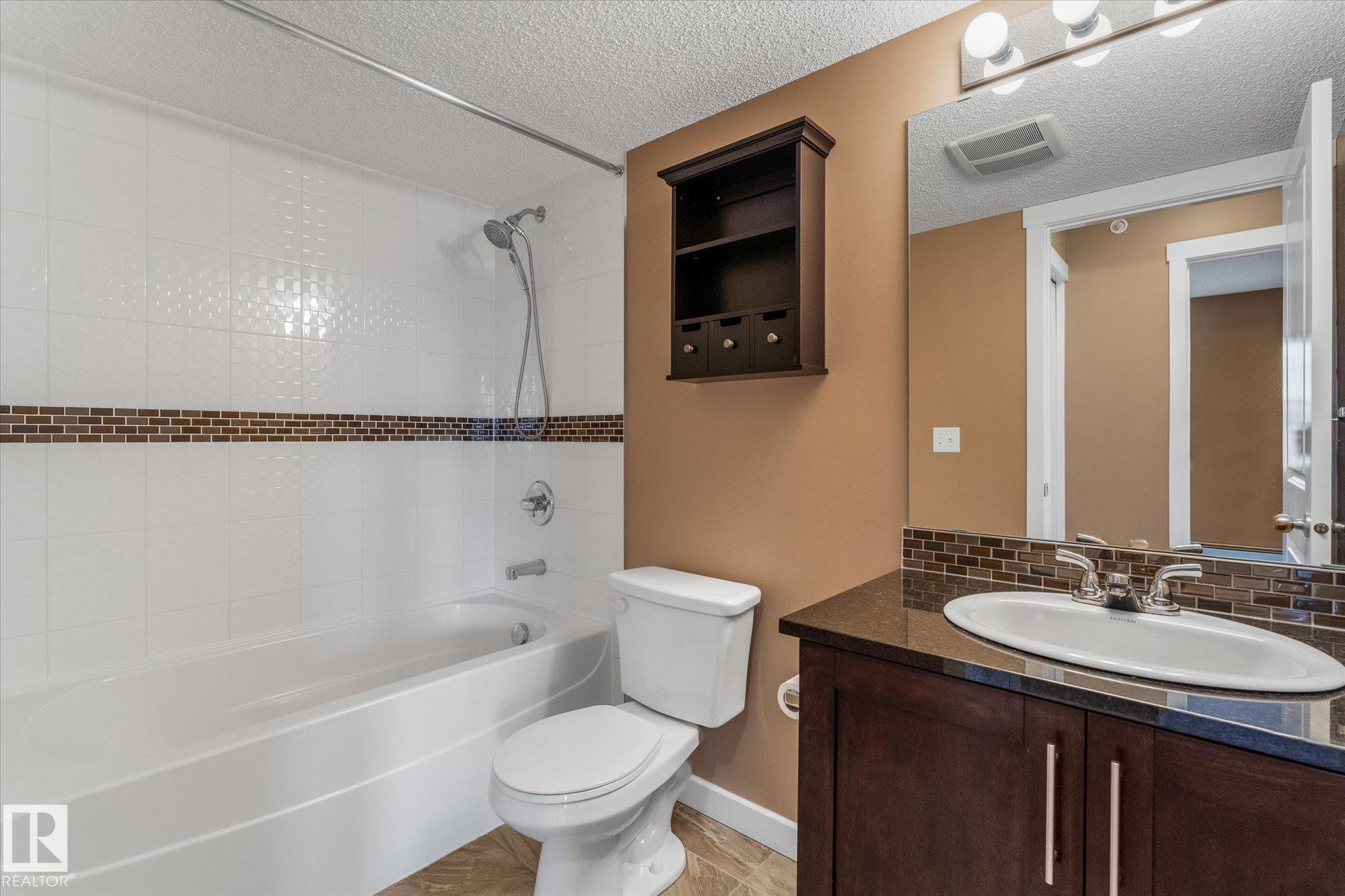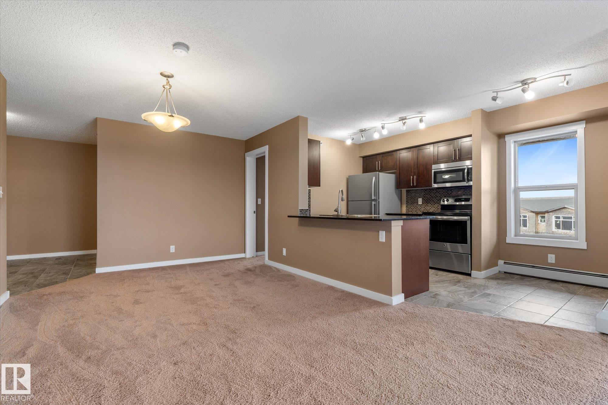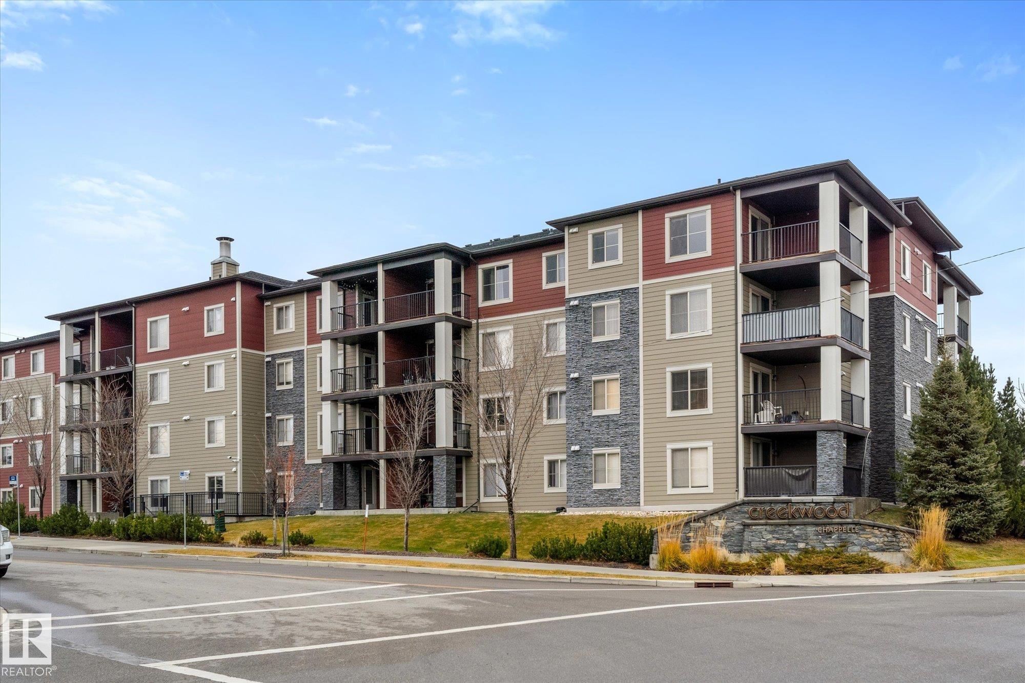 Welcome to one of the most desirable units at Creekwood Landing! This top floor 975 SF corner unit features 2 bedrooms, 2 bathrooms, AND 2 parking stalls! One is underground and the other is above ground. Plenty of natural light and a view over the pond across the street. Other great features of this condo are in-suite laundry, breakfast nook, large kitchen with SS appliances, granite counters, space by the front door could be used for a small office, walk-through closet, 3 pc primary ensuite, patio with a view, visitor parking, and much more. Some photos are virtually staged.