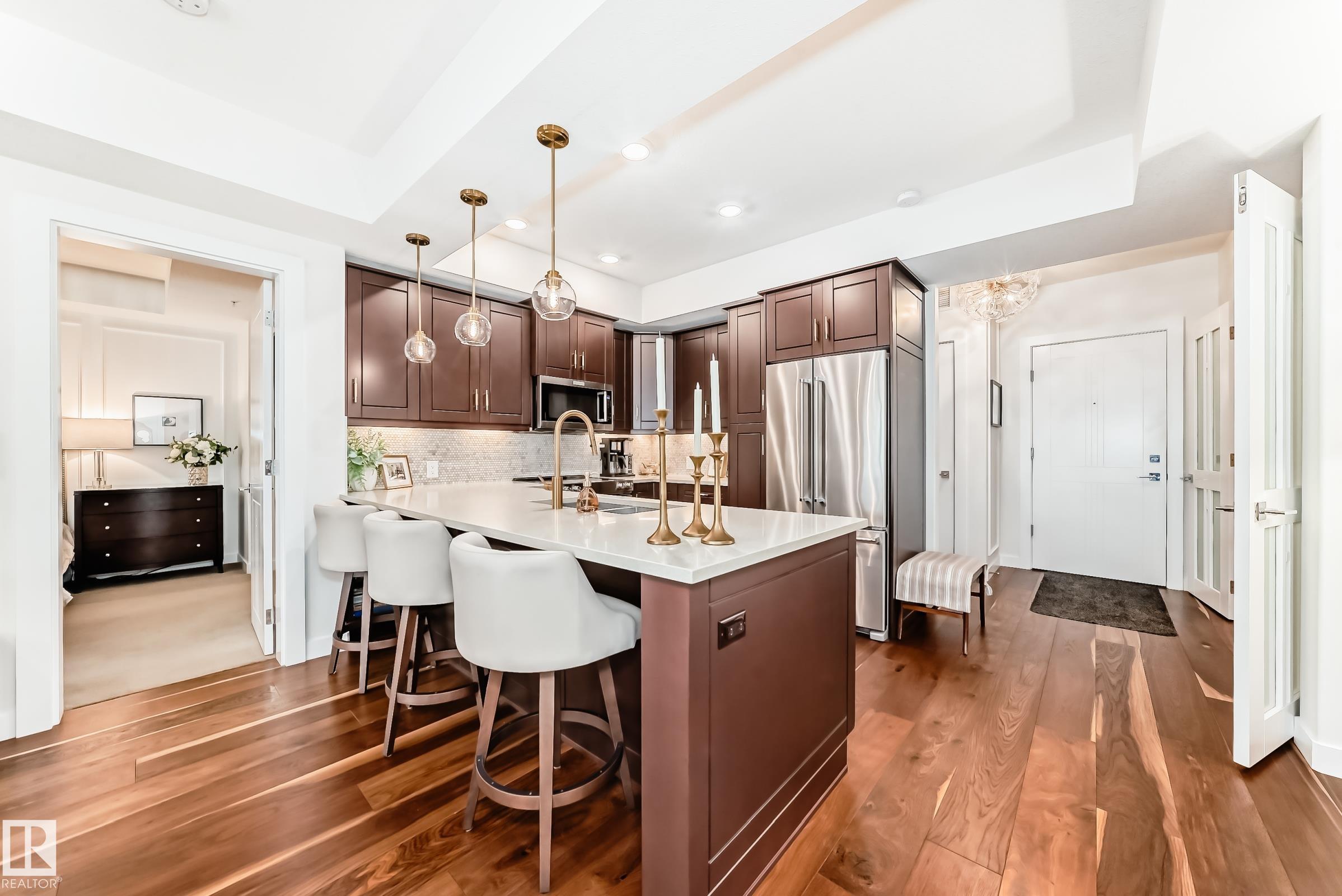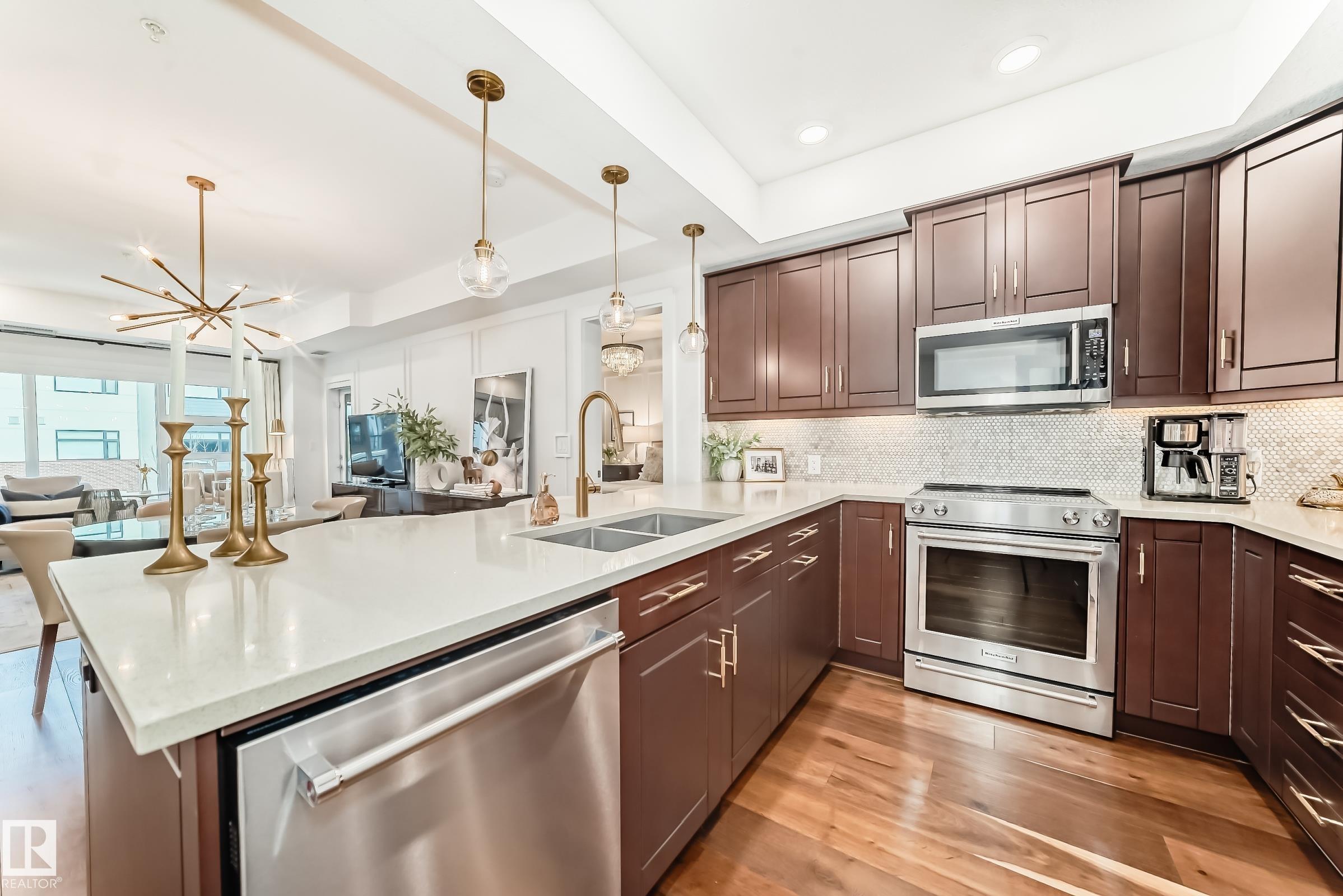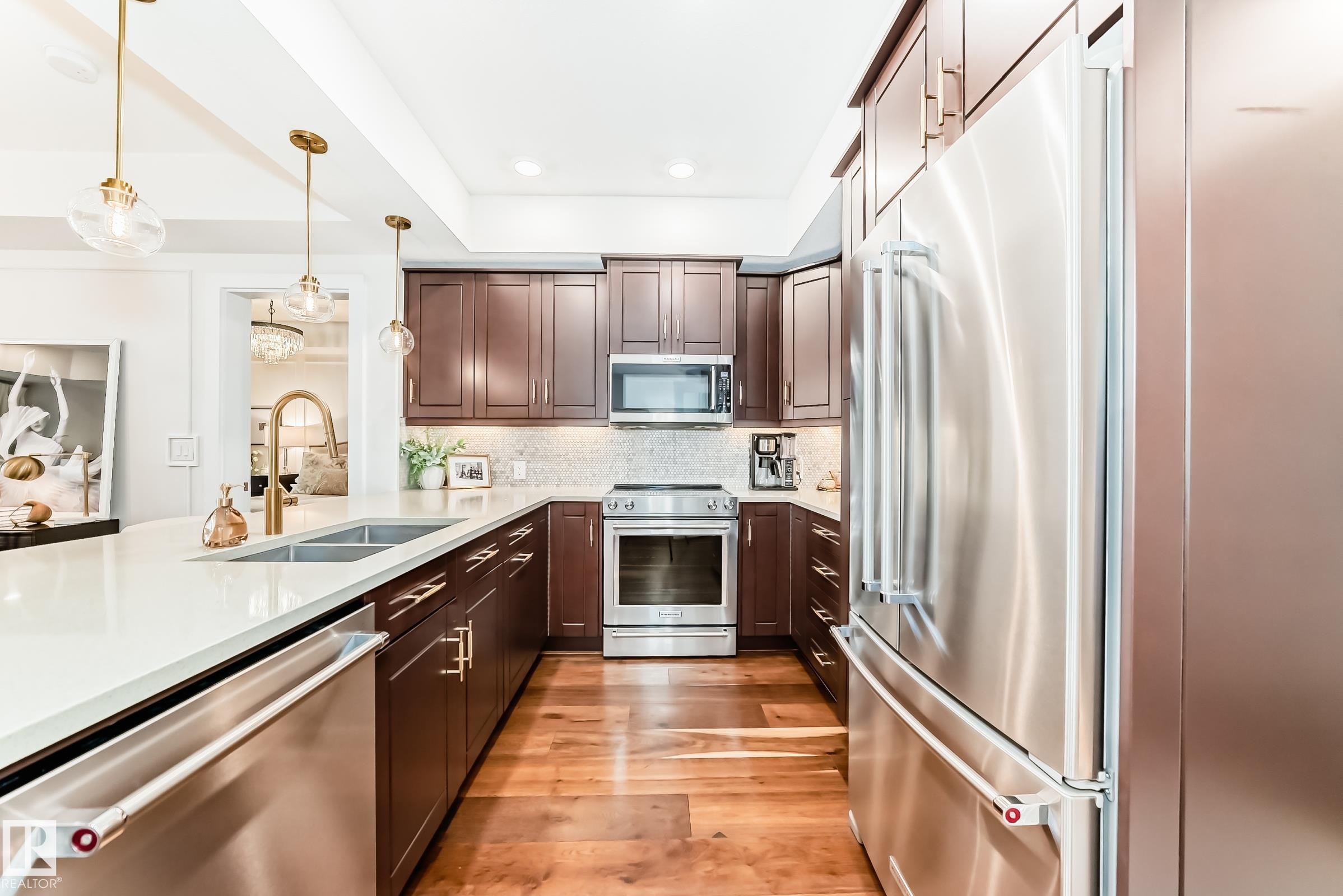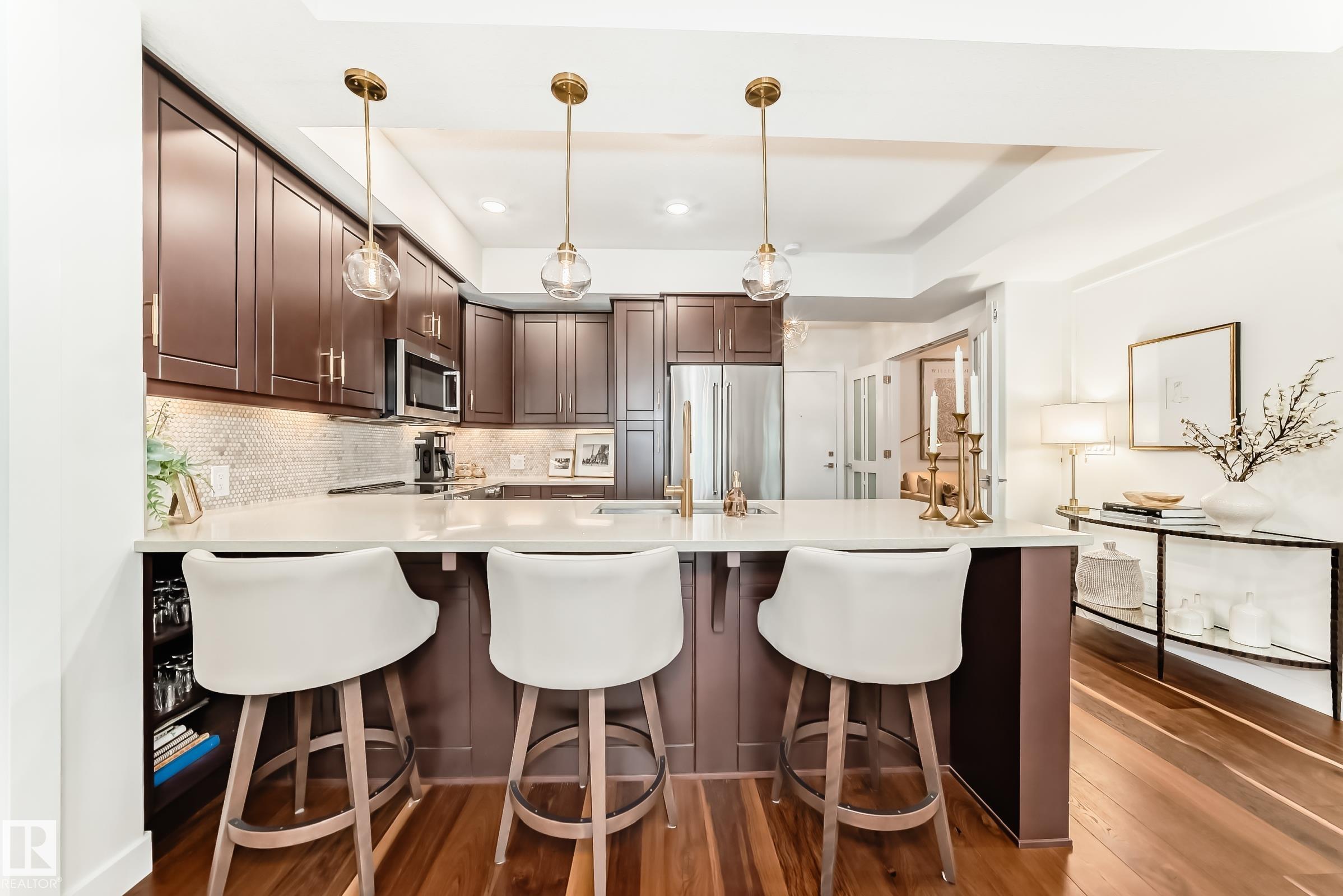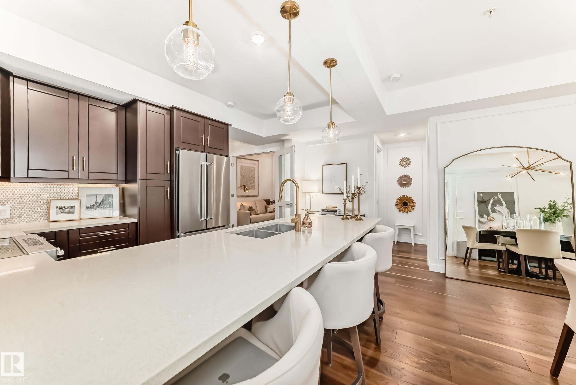Welcome to Savona at Centre in the Park ? Sherwood Park?s premier urban address. This exceptional 2-bedroom + den, 2-bath residence offers the perfect combination of luxury, comfort, and convenience. Enjoy bright, open-concept living with 9-ft ceilings and expansive windows that flood the home with natural light. The chef-inspired kitchen features quartz countertops, sleek cabinetry, and stainless steel appliances, flowing seamlessly into a spacious living area and private balcony. The primary suite includes a walk-through closet and spa-like ensuite, while the second bedroom, den, and full bath provide flexibility for guests or a home office. Additional highlights include in-suite laundry, central A/C, and heated underground parking with storage. Steps from Festival Place, Broadmoor Lake, shops, and restaurants ? Savona offers refined living in the heart of Sherwood Park.