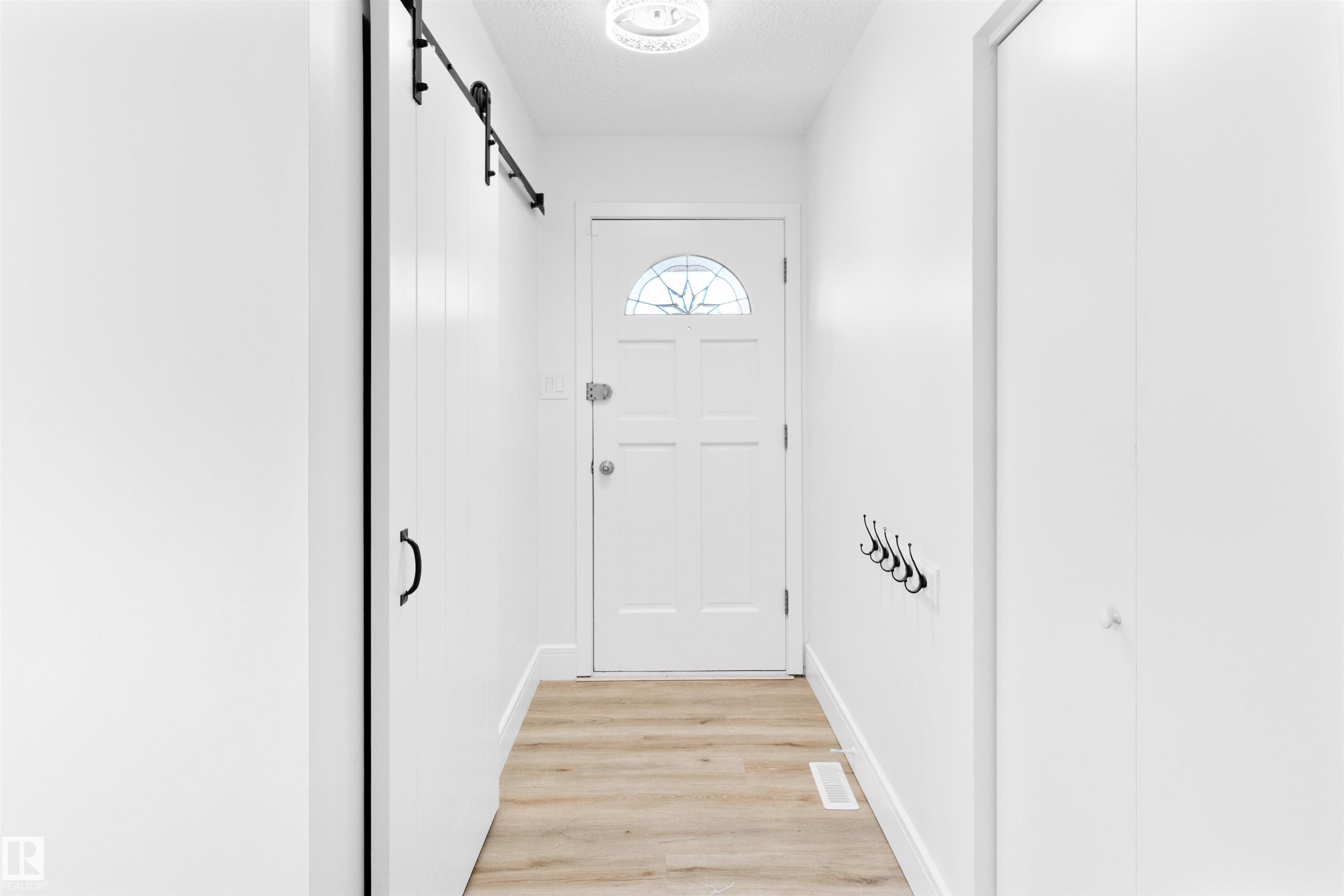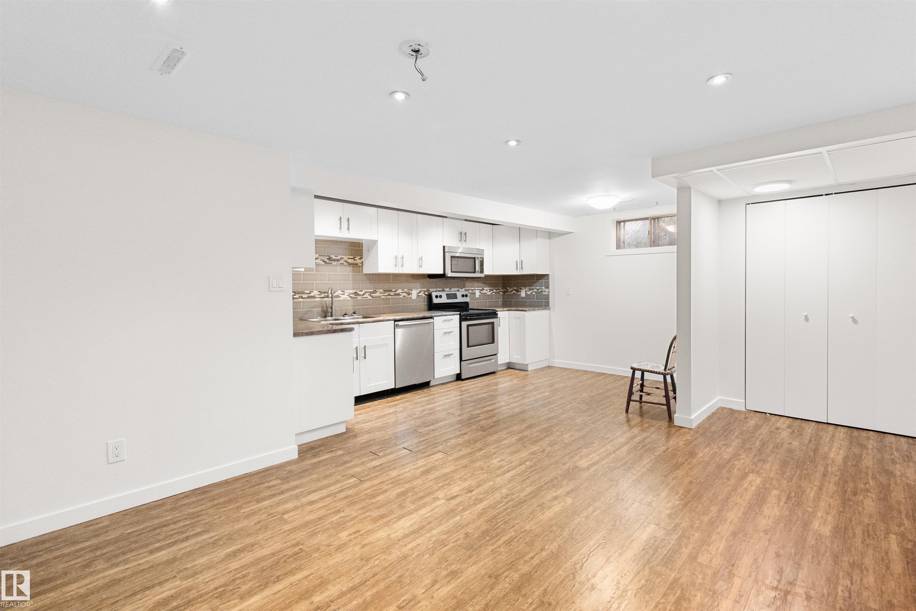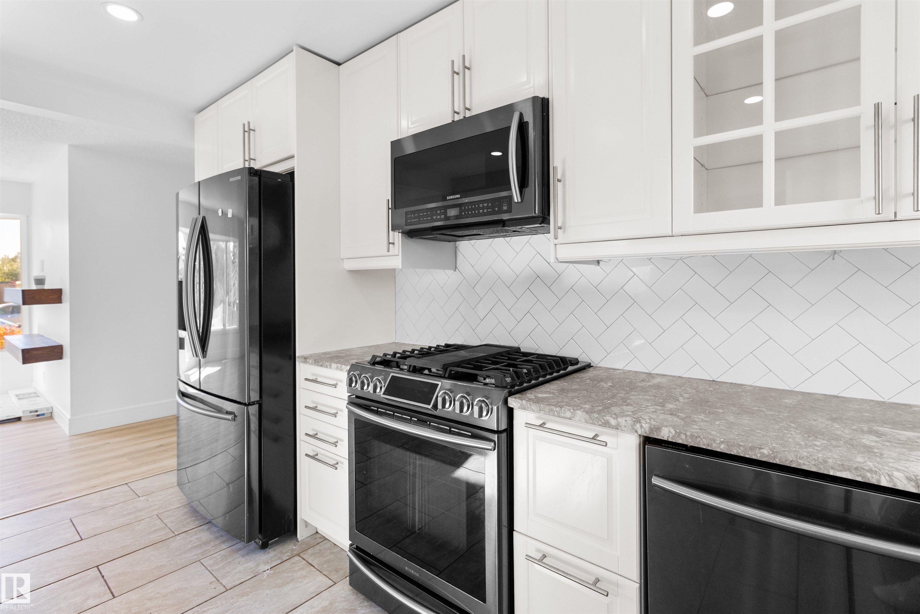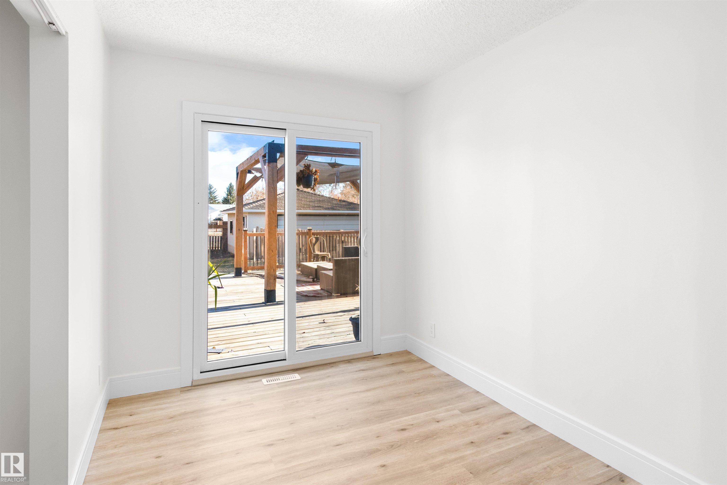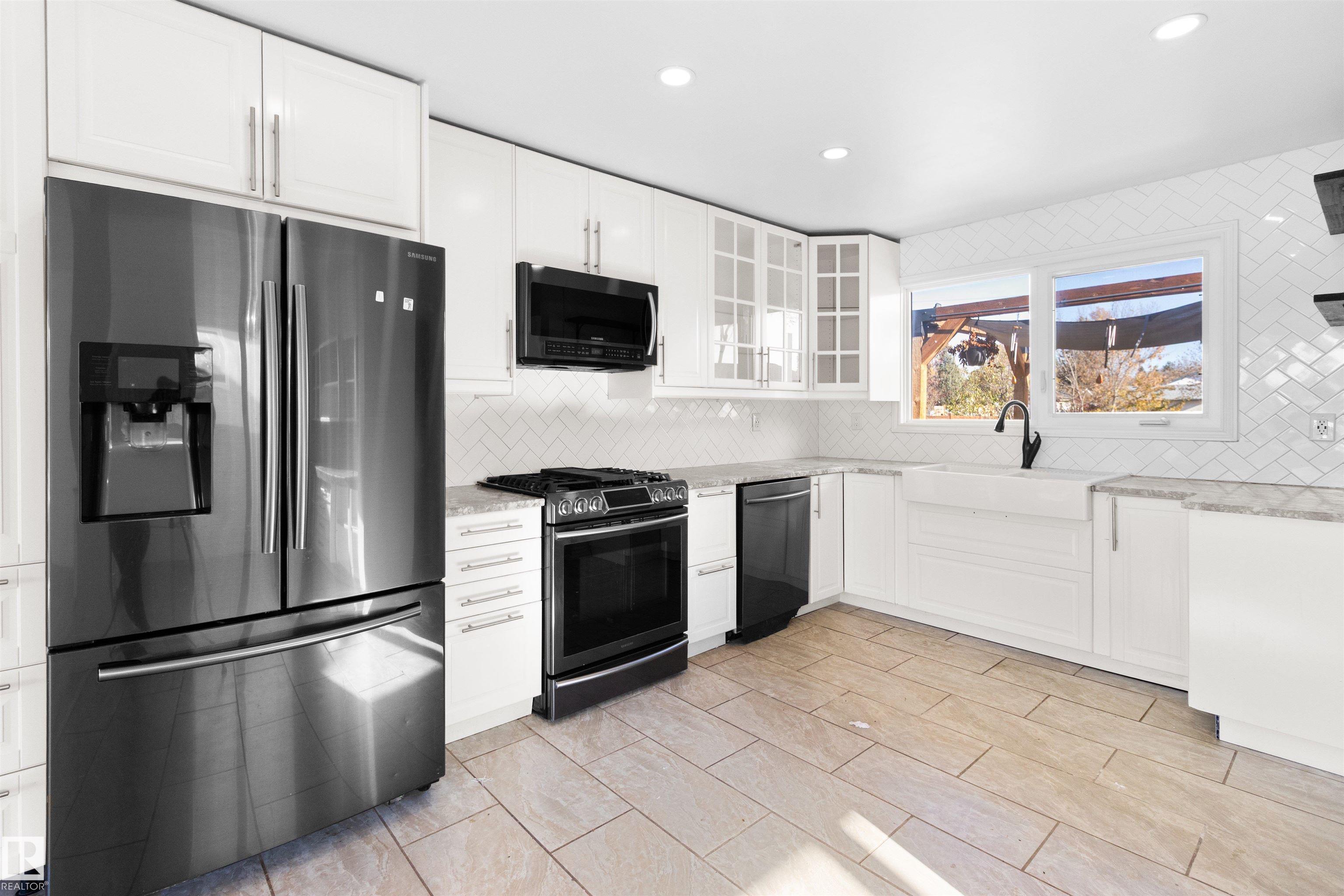 Welcome to this beautifully updated 1,200 sq. ft. open-concept bungalow, ideally situated in quiet cresent near transit, the Henday, and shopping. Step inside to discover a bright, modern main floor featuring new flooring, fresh paint, and three spacious bedrooms. The updated kitchen is perfect for entertaining, with generous counter space and storage for all your culinary needs. New patio doors lead to a massive backyard and large custom deck ? an inviting space for summer BBQs and outdoor fun. The double detached garage includes a durable Euroshield roof, adding long-term value and peace of mind. The fully finished basement, with its own entrance, offers exceptional flexibility ? complete with a second kitchen, laundry, two bedrooms, and a full bath, making it perfect for guests or extended family. Additional highlights include a 2020 furnace and a tankless water heater, combining comfort, efficiency, and style in one move-in-ready home.