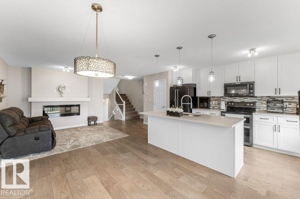 Welcome to 2104 Price Landing SW ? an exceptional half-duplex in Paisley, one of Southwest Edmonton's most sought-after communities! This beautifully upgraded home boasts a rare split-level design with a versatile bonus room, perfect for work, play, or entertaining. The primary suite enjoys its own private level, complete with a walk-in closet plus a second closet, and a lovely 4-piece ensuite. A convenient 2-piece bathroom rounds out this level for added comfort. Upstairs, you?ll find two spacious bedrooms, a 4-piece bath, and UPPER FLOOR laundry, combining functionality and style. The open-concept main floor features a bright living area with a stylish fireplace, and a modern kitchen with upgraded cabinetry, quartz countertops, an eating bar, a pantry, beautiful black stainless steel appliances and a generous dining space. Step outside to your relaxing OUTDOOR OASIS: a two-tier deck, hot tub with privacy curtain, fire pit, and a fully landscaped, LOW MAINTENANCE YARD!