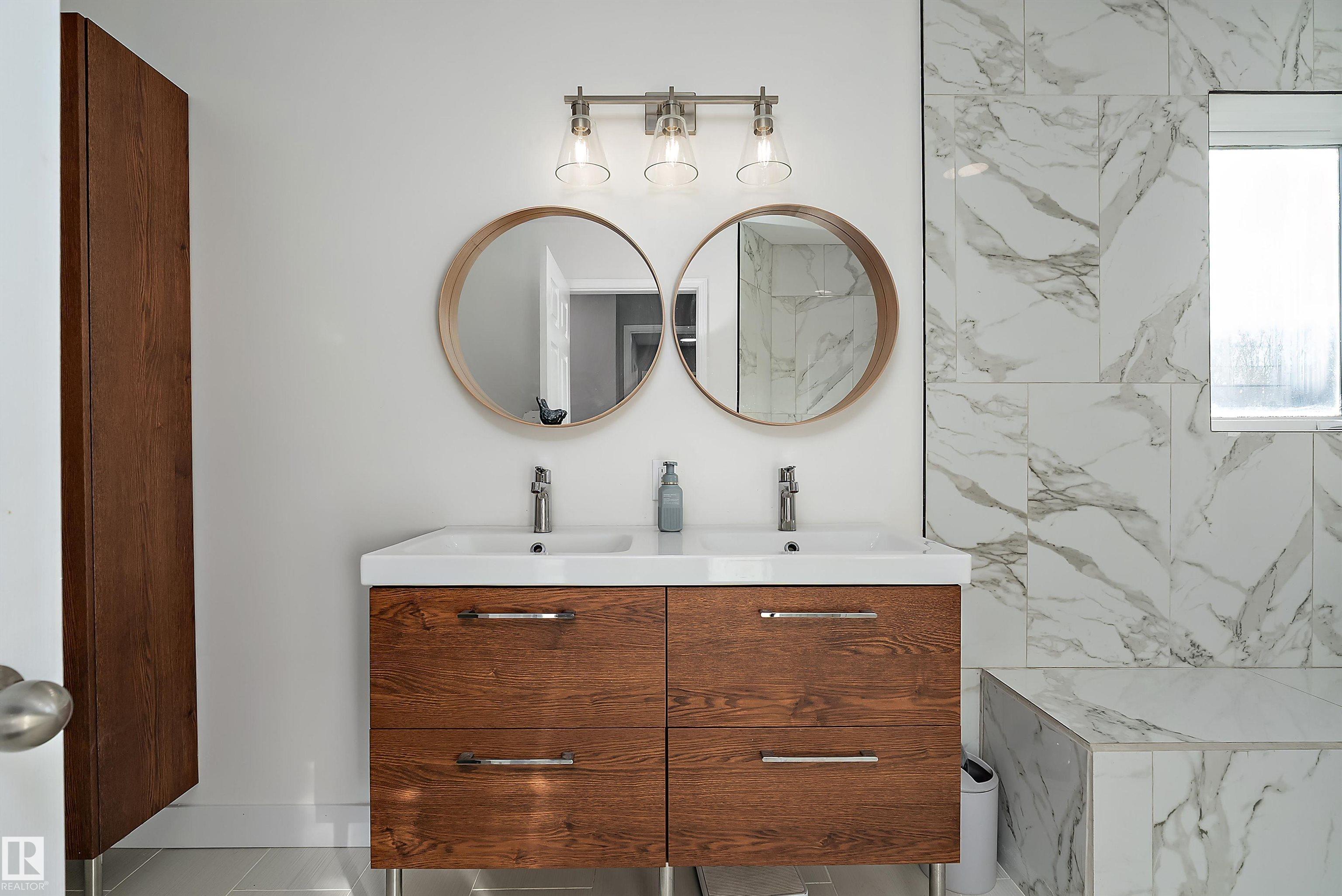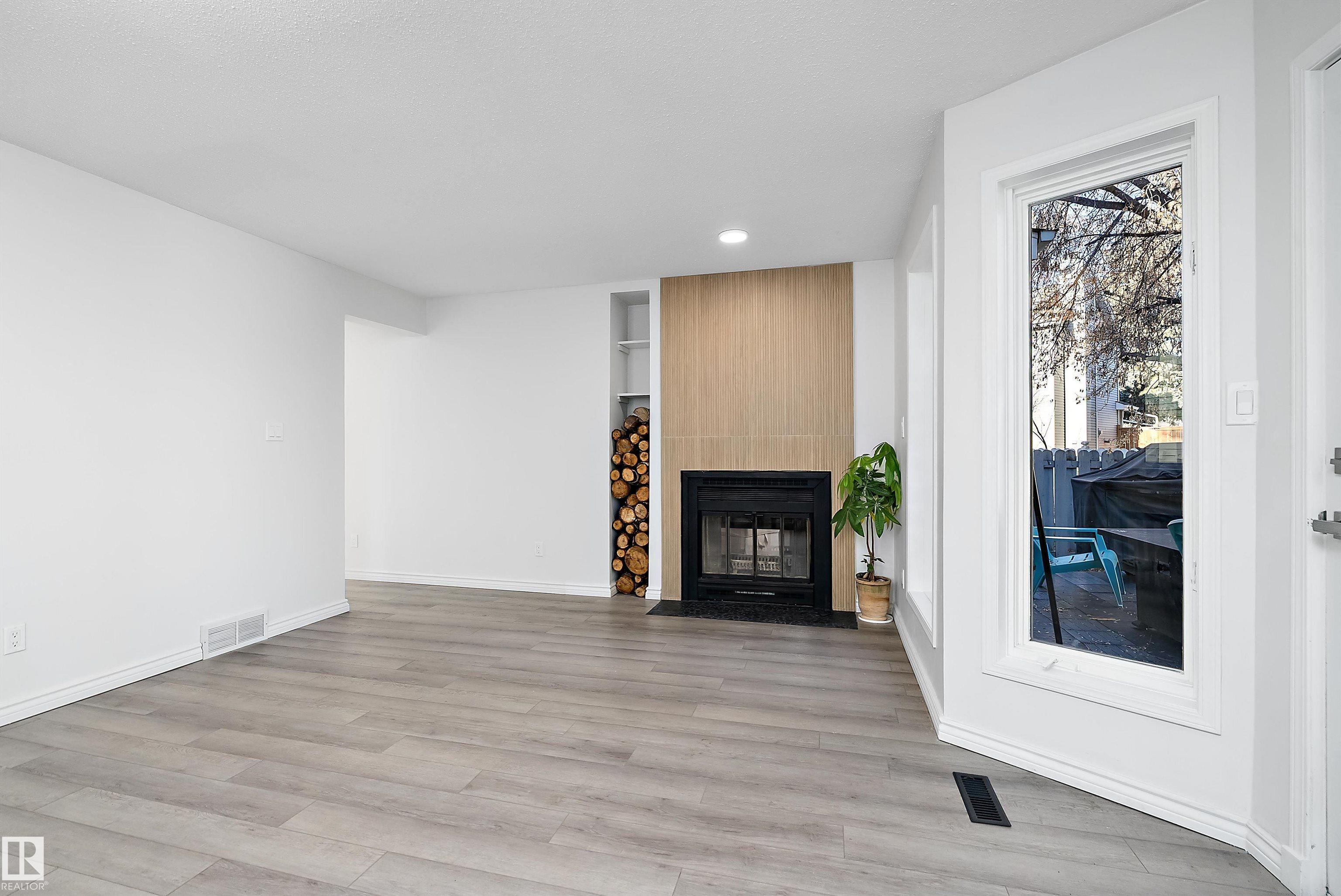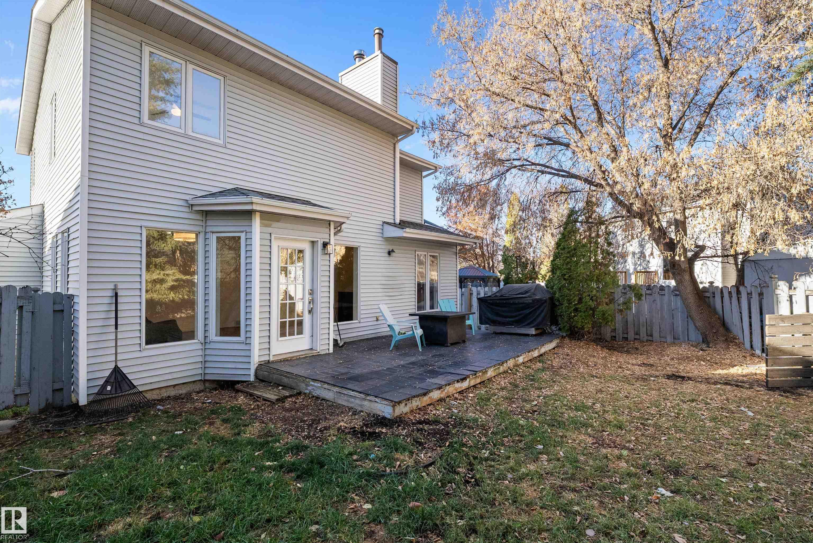 PRICED TO SELL! If cookie cutter isn't for you, Discover this exceptional value in Woodbridge Farms! Updated 2 storey home on a mature, treed pie lot located on a cul-de-sac offers over 2000 sq. ft. of stylish, unique living space, featuring 3 bedrooms plus den/office up and 2.5 baths. Recent renovations showcase newer flooring, trim, doors, fresh paint, a stunning custom kitchen with premium finishes, ample storage, and abundant natural light. The incredible primary suite is a true retreat with a luxurious ensuite shower featuring a custom tiled double walk-in shower, while two additional bedrooms and a bright den/4th bedroom provide flexibility for family or work-from-home living. Enjoy a private balcony off the second bedroom, a spacious living room, and a formal dining area anchored by a two-sided tile-surround fireplace?perfect for cozy winter evenings. Additional highlights include main floor laundry and mudroom, unspoiled basement & double attached insulated garage.
