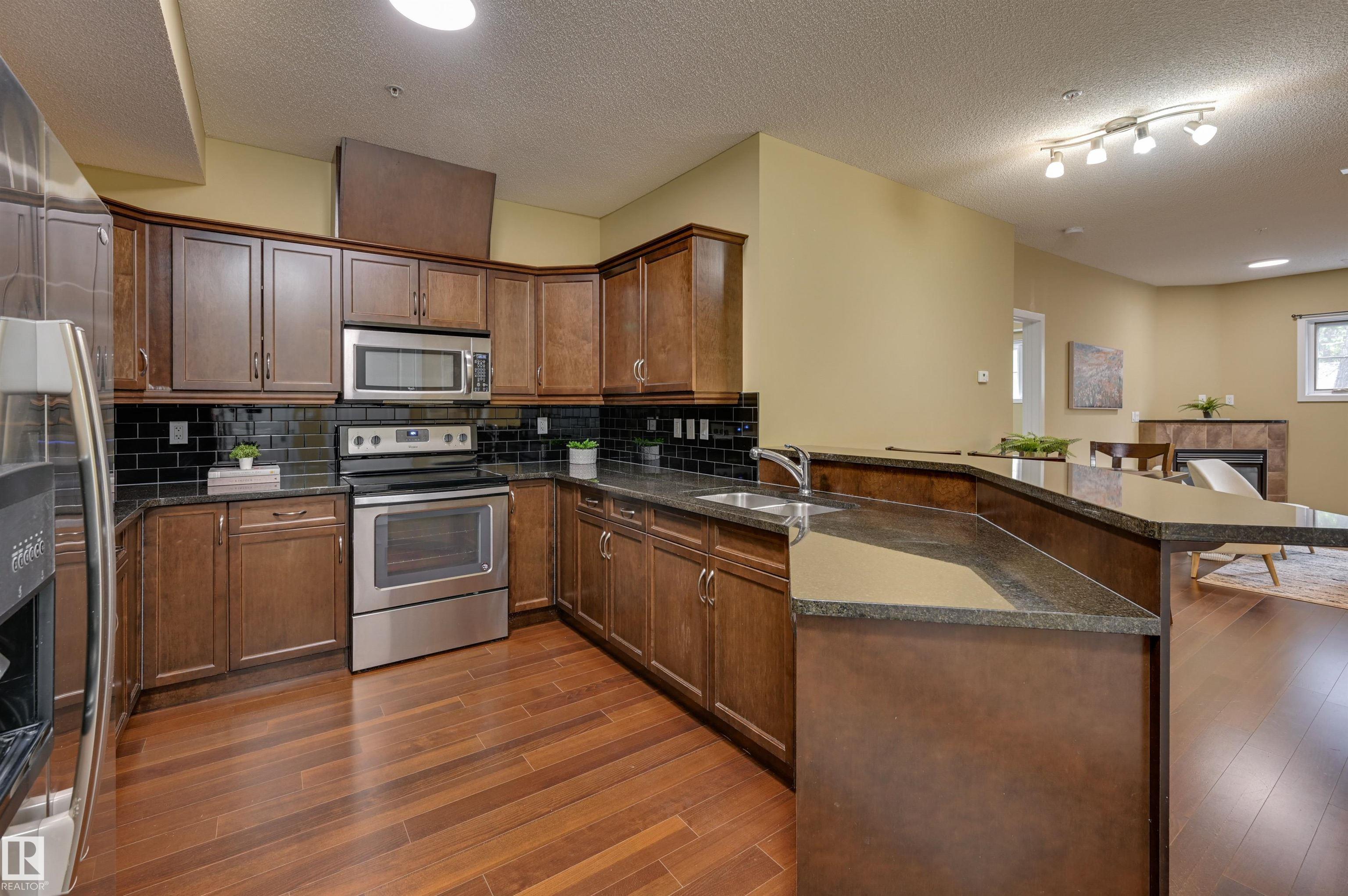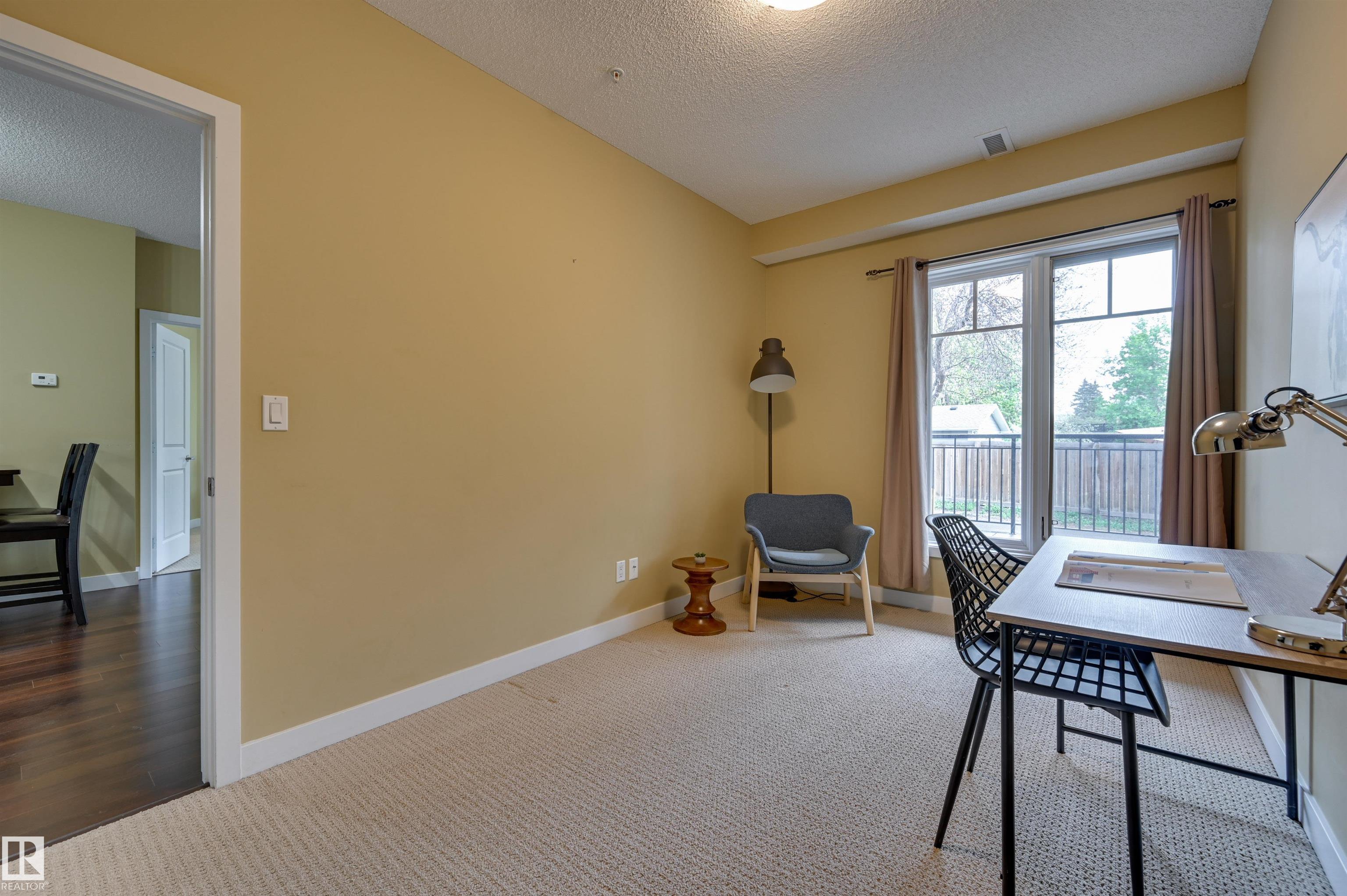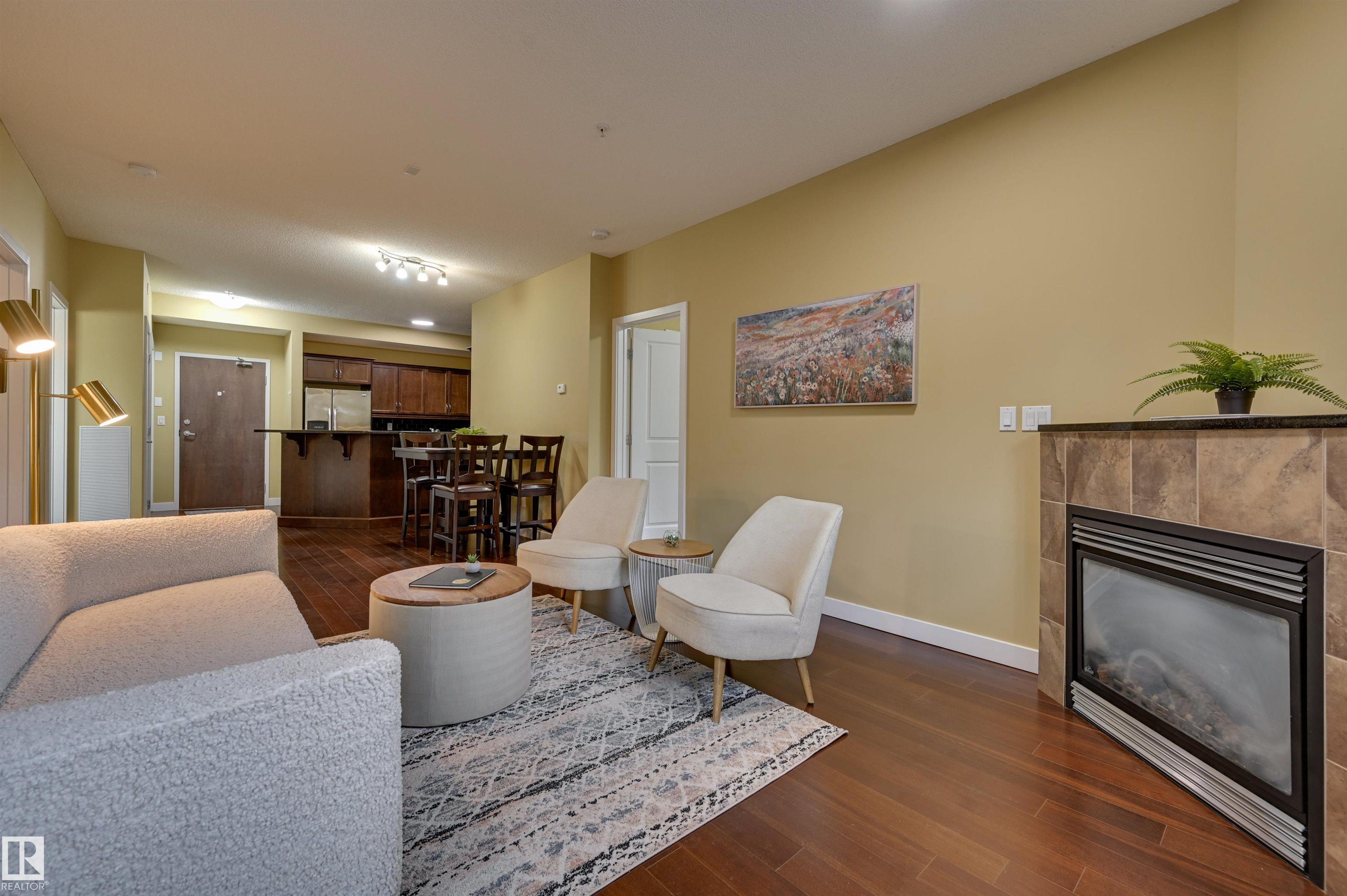 Welcome to University Properties, where urban luxury meets modern living! This stylish 2 bed + 2 bath ground floor condo is meticulously maintained with a functional design. Cozy up next to your gas fireplace for the upcoming fall evenings and sip your morning coffee on your private balcony in the mornings! Meal prep is a breeze thanks to your functional and spacious U-shaped kitchen that boasts stainless steel appliances. Unwind in your primary bedroom and enjoy the privacy of your ensuite. Another bedroom is down the hall, perfect for a home office or loved ones! In-suite laundry makes your day-to-day life convenient and easy. Nestled into the vibrant Queen Alexandra neighbourhood near the U of A, Whyte Avenue, River Valley, and some of the city?s best shopping and restaurants, this lovely condo is not to be missed!